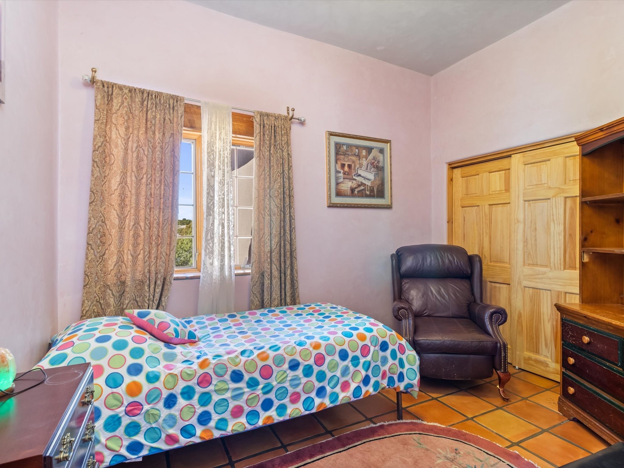 Spacious Santa Fe Retreat on 2.4 Acres with Stunning Mountain ViewsEscape to the serenity of this beautiful Santa Fe home, nestled on 2.4 acres of land with no close neighbors, offering privacy and breathtaking mountain views. This expansive 3,034 sq. ft. residence features six generously sized bedrooms and 3.5 bathrooms, perfect for comfortable living or entertaining guests.Step inside to discover the charm of traditional kiva fireplaces, tile floors, and a tile roof, blending Southwestern character with modern convenience. The well-designed floor plan provides ample space for relaxation and gatherings, while the outdoor gazebo invites you to soak in the peaceful surroundings.Located just a 10-minute drive from the historic Santa Fe Plaza, this home offers the perfect balance of seclusion and accessibility. Enjoy an easy commute to Los Alamos and Albuquerque, with quick access to Highway 566.Don't miss this rare opportunity to own a piece of Santa Fe's stunning landscape. Schedule your private tour today!