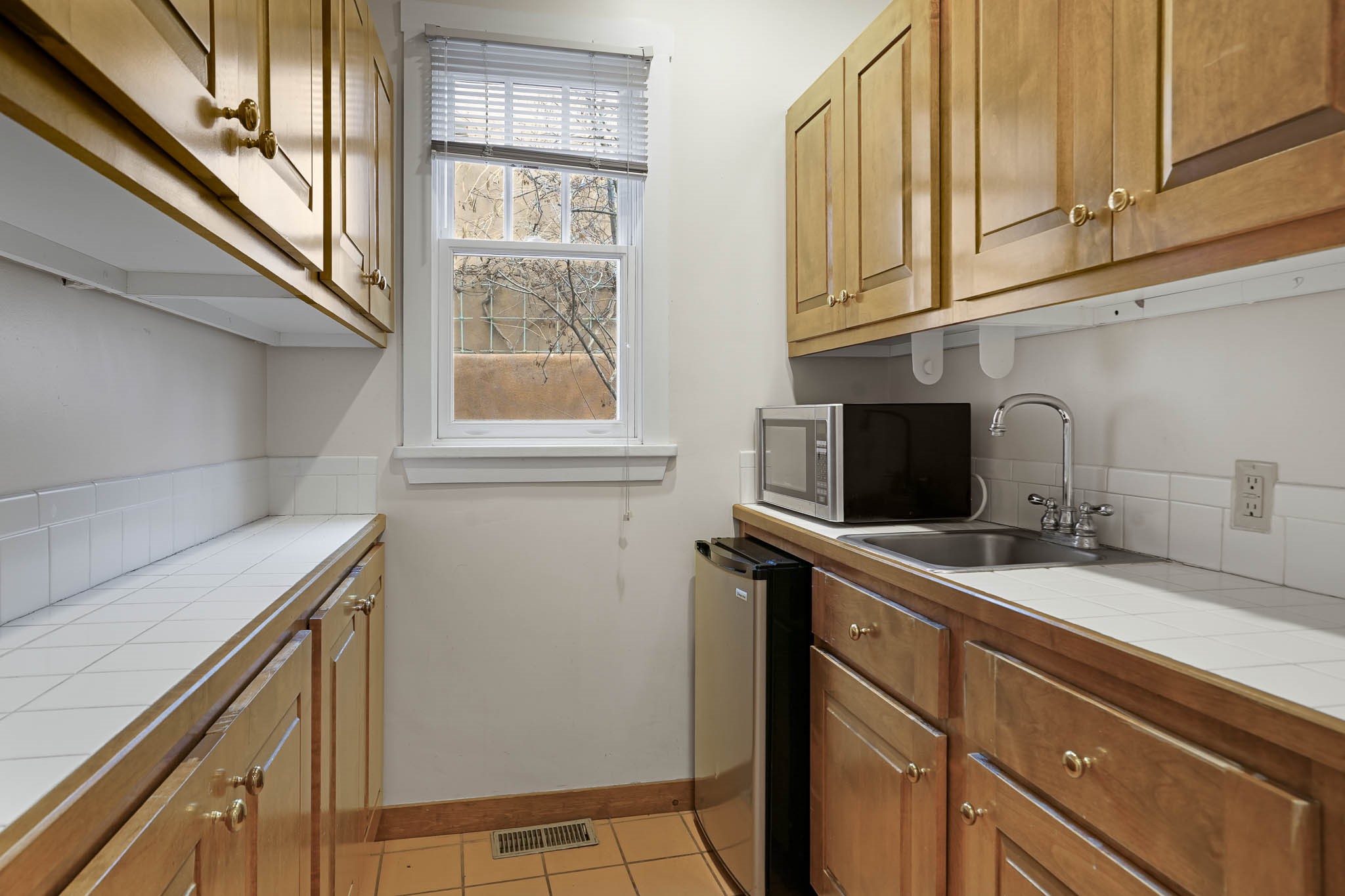 Premier free-standing retail/office building, ideal for an owner-user. Situated near the heart of Downtown Santa Fe along the tranquil Santa Fe River, the property features a charming reception area with a fireplace and viga ceilings, four private offices, and two in-suite restroom, and a large conference area and break room. There are four off-street parking spaces with easy accessibility. Prominent signage and excellent visibility fronting East Alameda. BCD zoning allows for an array of uses--from retail/gallery to general office--or it can be converted into a private residence. Don't miss this rare opportunity to own a versatile property that combines historic charm with modern convenience in the heart of Santa Fe.