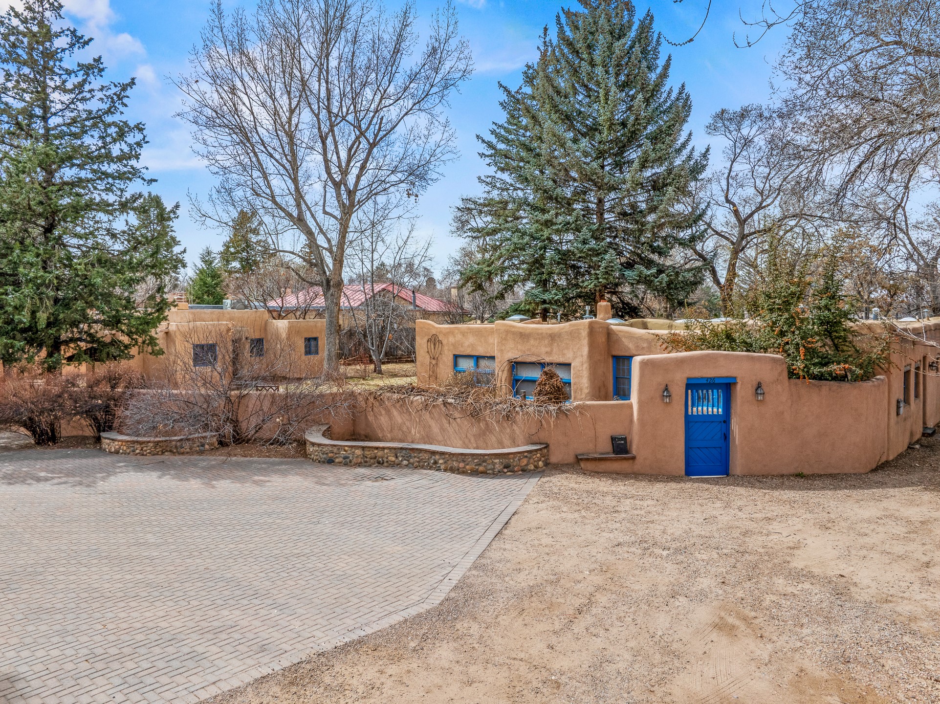 Located at the end of Santa Fe's covetable and quiet Delgado Lane, yet in the "center of it all", lies this incredibly rare find -hitting the market for the first time since its construction in the 1920s. Poised on an expansive .4-acre lot, this opportunity offers the perfect combination of Santa Fe charm and tranquility paired with the best of Santa Fe at your fingertips. The adobe 3BD-2.5BA main house exudes classic pueblo style architecture, viga ceilings, wood floors, and charming wood burning fireplaces. The 1BD-1BA detached guest house, added in the 1990s, offers a well equipped kitchen, its own laundry, and is privately sited offering a comfortable space for visitors and friends, or presents an interesting income generating opportunity. The property's captivating grounds are equally impressive. A true gardener's paradise, the lot is adorned with apple, apricot, pear, nectarine, and cherry trees, as well as mature cottonwood and pine trees. Colorful rose bushes (some of which are circa 80 years old) and peonies also decorate the gardens. The grounds benefit from water drawn from the property's private well (irrigation only), sprinkler system and drip irrigation are already in-place. Located steps away from Acequia Madre and Canyon Road, known for its world-class galleries and dining options, this is an exceptional opportunity to own and reimagine a slice of Santa Fe's rich history. A remarkable melding of privacy, outdoor beauty, space to entertain, and easy access to the heart of the city, this is a canvas that rarely becomes available.
