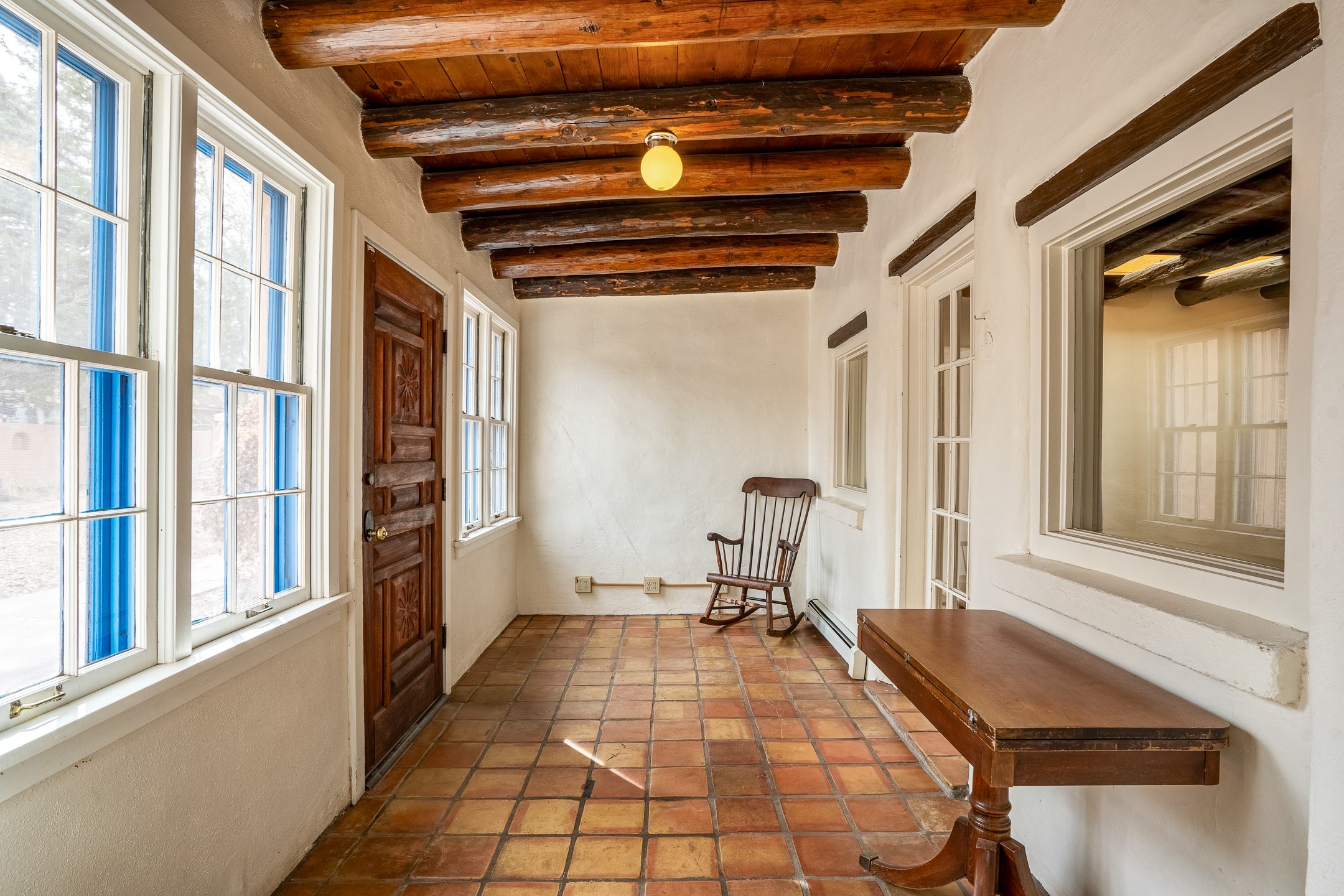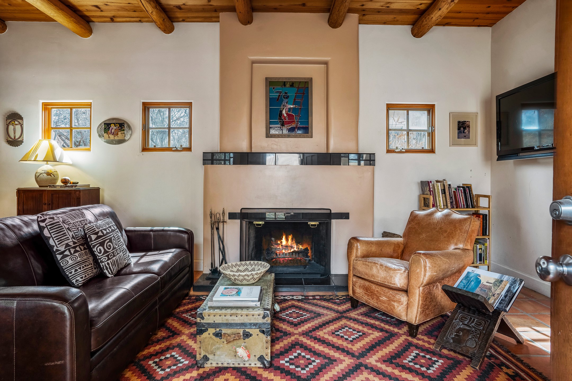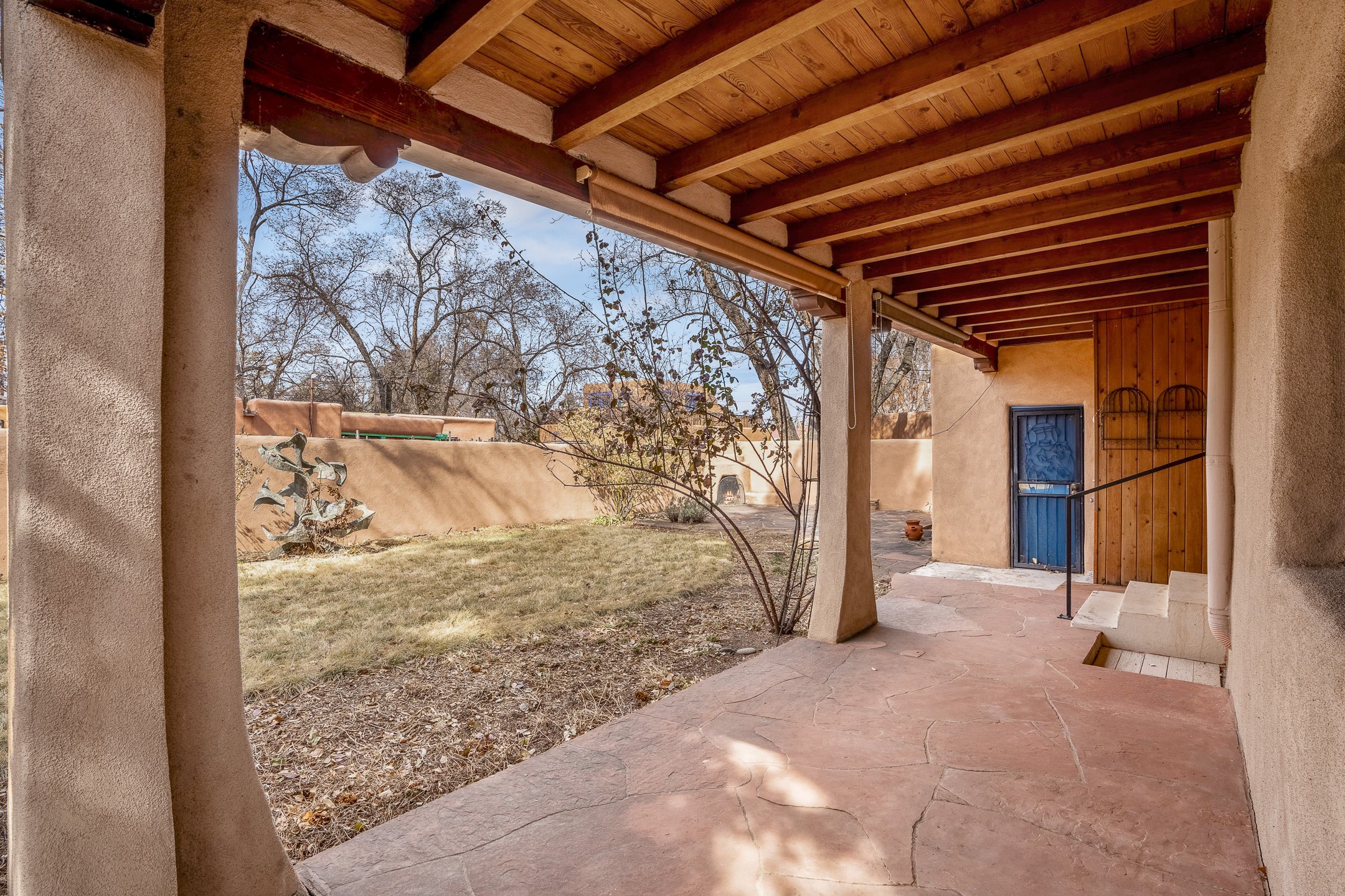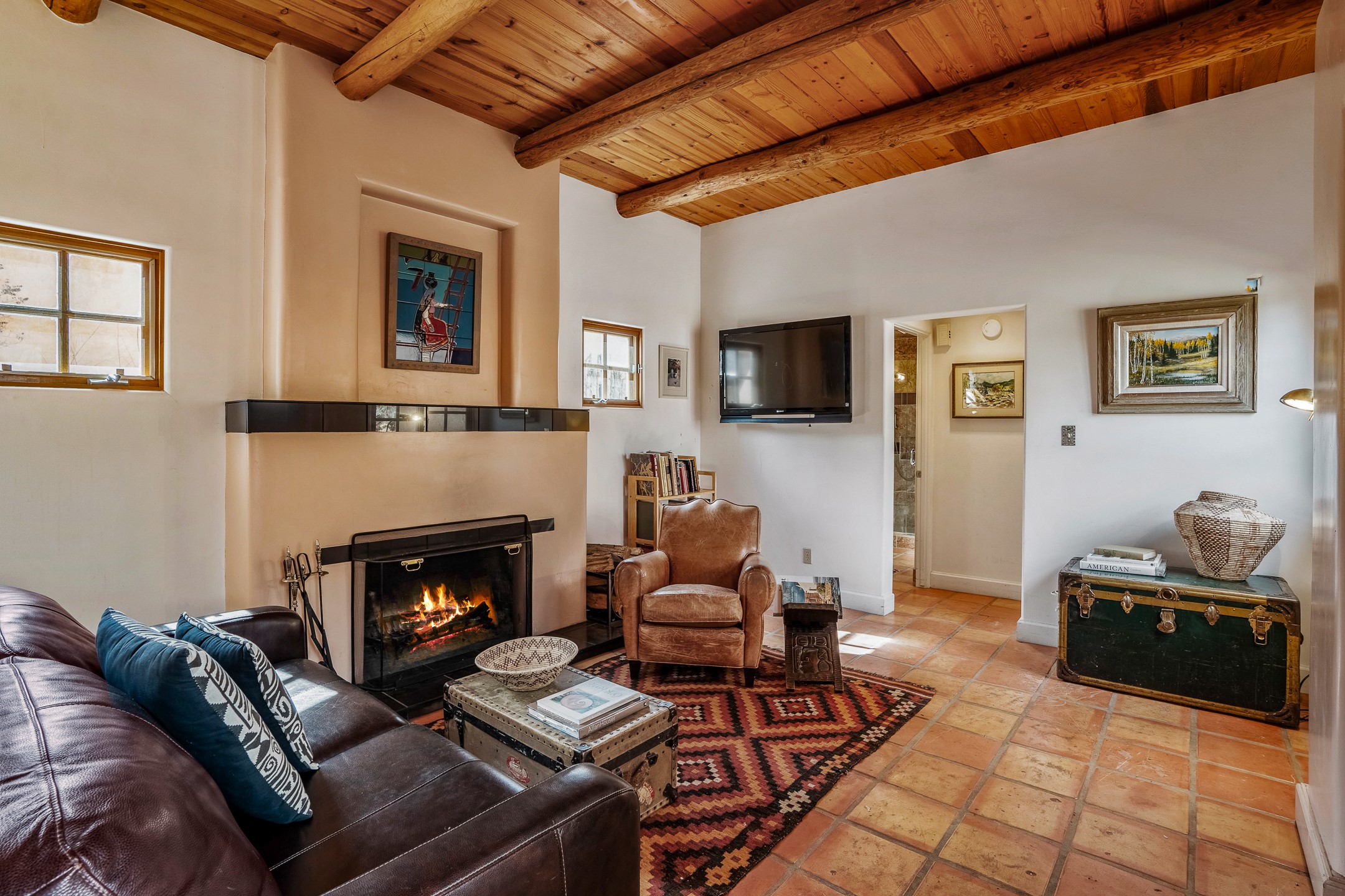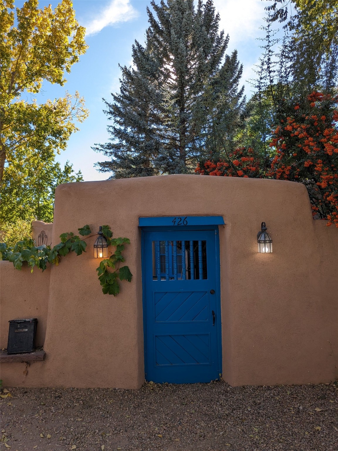 Located at the end of Santa Fe's covetable and quiet Delgado Lane, yet in the "center of it all", lies this incredibly rare find -hitting the market for the first time since its construction in the 1920s. Poised on an expansive .4-acre lot, this opportunity offers the perfect combination of Santa Fe charm and tranquility paired with the best of Santa Fe at your fingertips. The adobe 3BD-2.5BA main house exudes classic pueblo style architecture, viga ceilings, wood floors, and charming wood burning fireplaces. The 1BD-1BA detached guest house, added in the 1990s, offers a well equipped kitchen, its own laundry, and is privately sited offering a comfortable space for visitors and friends, or presents an interesting income generating opportunity. The property's captivating grounds are equally impressive. A true gardener's paradise, the lot is adorned with apple, apricot, pear, nectarine, and cherry trees, as well as mature cottonwood and pine trees. Colorful rose bushes (some of which are circa 80 years old) and peonies also decorate the gardens. The grounds benefit from water drawn from the property's private well (irrigation only), sprinkler system and drip irrigation are already in-place. Located steps away from Acequia Madre and Canyon Road, known for its world-class galleries and dining options, this is an exceptional opportunity to own and reimagine a slice of Santa Fe's rich history. A remarkable melding of privacy, outdoor beauty, space to entertain, and easy access to the heart of the city, this is a canvas that rarely becomes available.