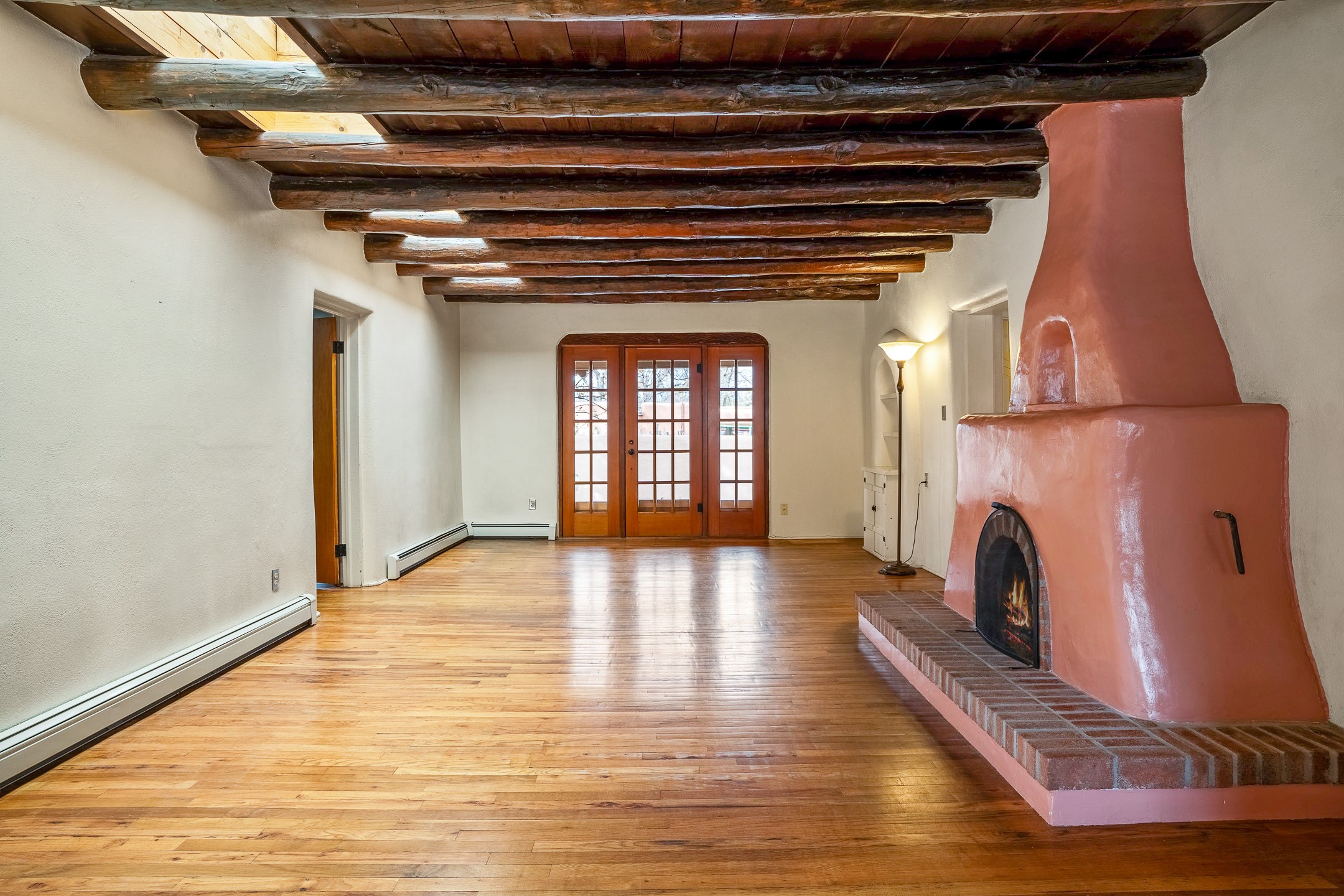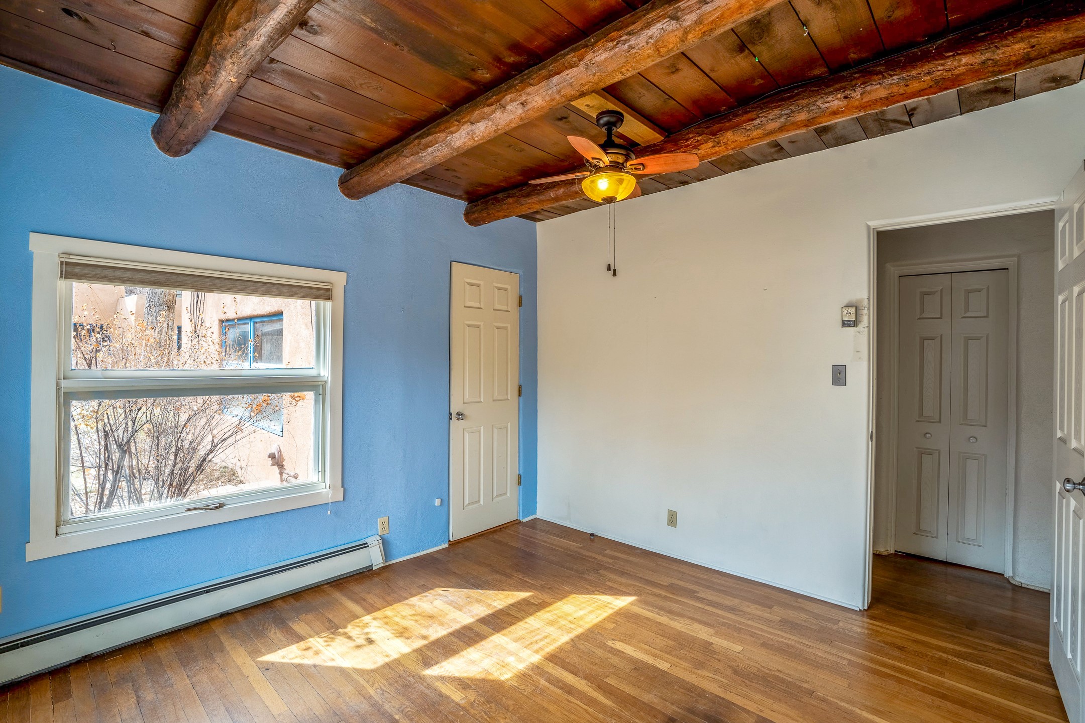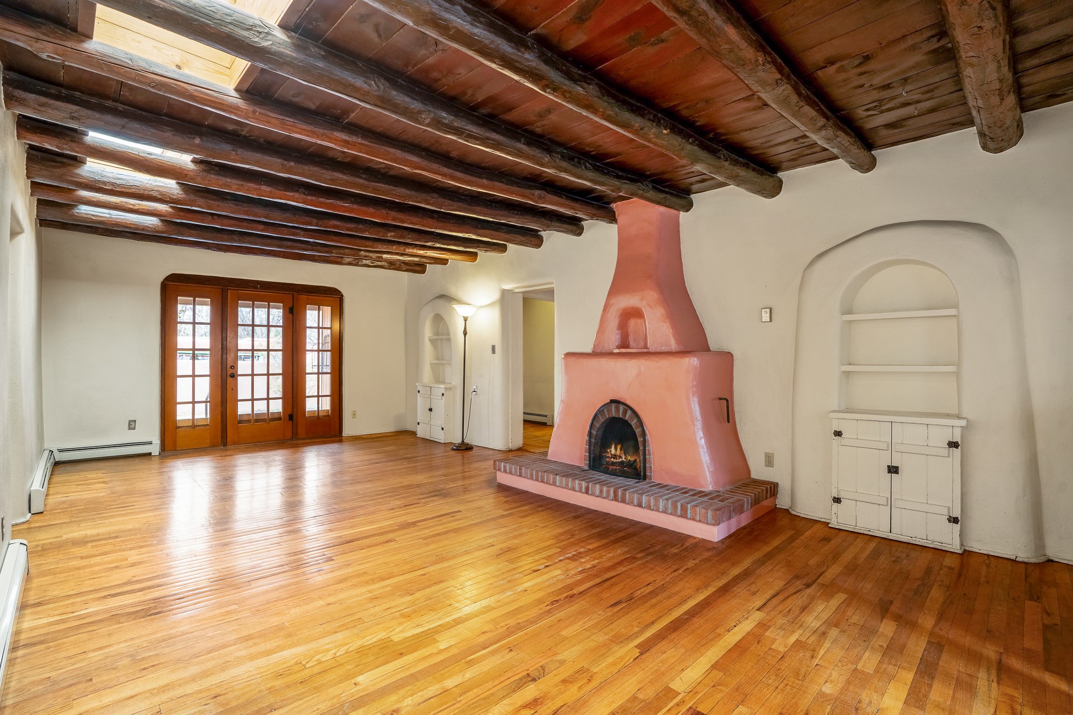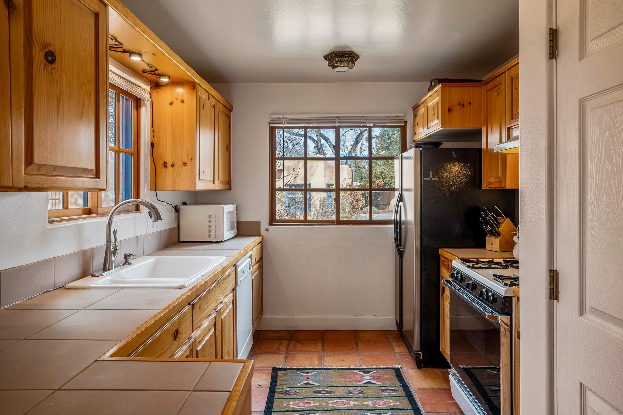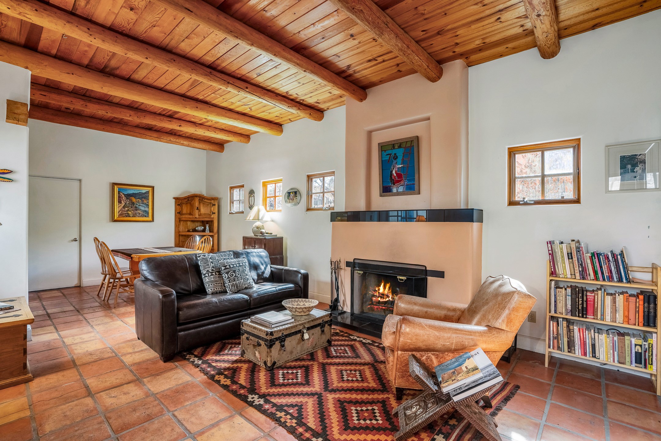 Located at the end of Santa Fe's covetable and quiet Delgado Lane, yet in the "center of it all", lies this incredibly rare find -hitting the market for the first time since its construction in the 1920s. Poised on an expansive .4-acre lot, this opportunity offers the perfect combination of Santa Fe charm and tranquility paired with the best of Santa Fe at your fingertips. The adobe 3BD-2.5BA main house exudes classic pueblo style architecture, viga ceilings, wood floors, and charming wood burning fireplaces. The 1BD-1BA detached guest house, added in the 1990s, offers a well equipped kitchen, its own laundry, and is privately sited offering a comfortable space for visitors and friends, or presents an interesting income generating opportunity. The property's captivating grounds are equally impressive. A true gardener's paradise, the lot is adorned with apple, apricot, pear, nectarine, and cherry trees, as well as mature cottonwood and pine trees. Colorful rose bushes (some of which are circa 80 years old) and peonies also decorate the gardens. The grounds benefit from water drawn from the property's private well (irrigation only), sprinkler system and drip irrigation are already in-place. Located steps away from Acequia Madre and Canyon Road, known for its world-class galleries and dining options, this is an exceptional opportunity to own and reimagine a slice of Santa Fe's rich history. A remarkable melding of privacy, outdoor beauty, space to entertain, and easy access to the heart of the city, this is a canvas that rarely becomes available.