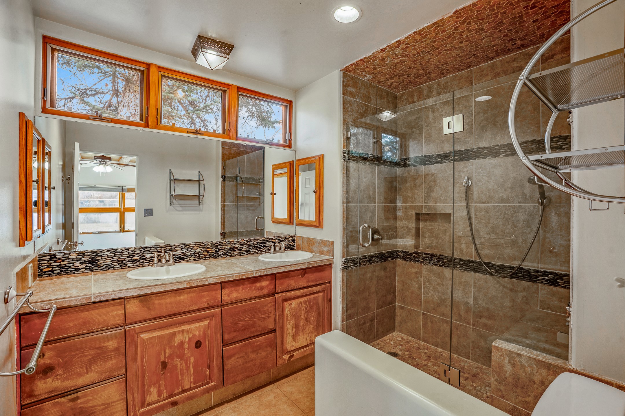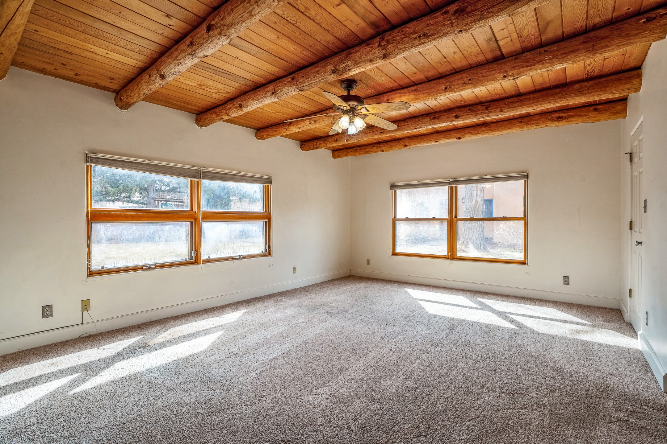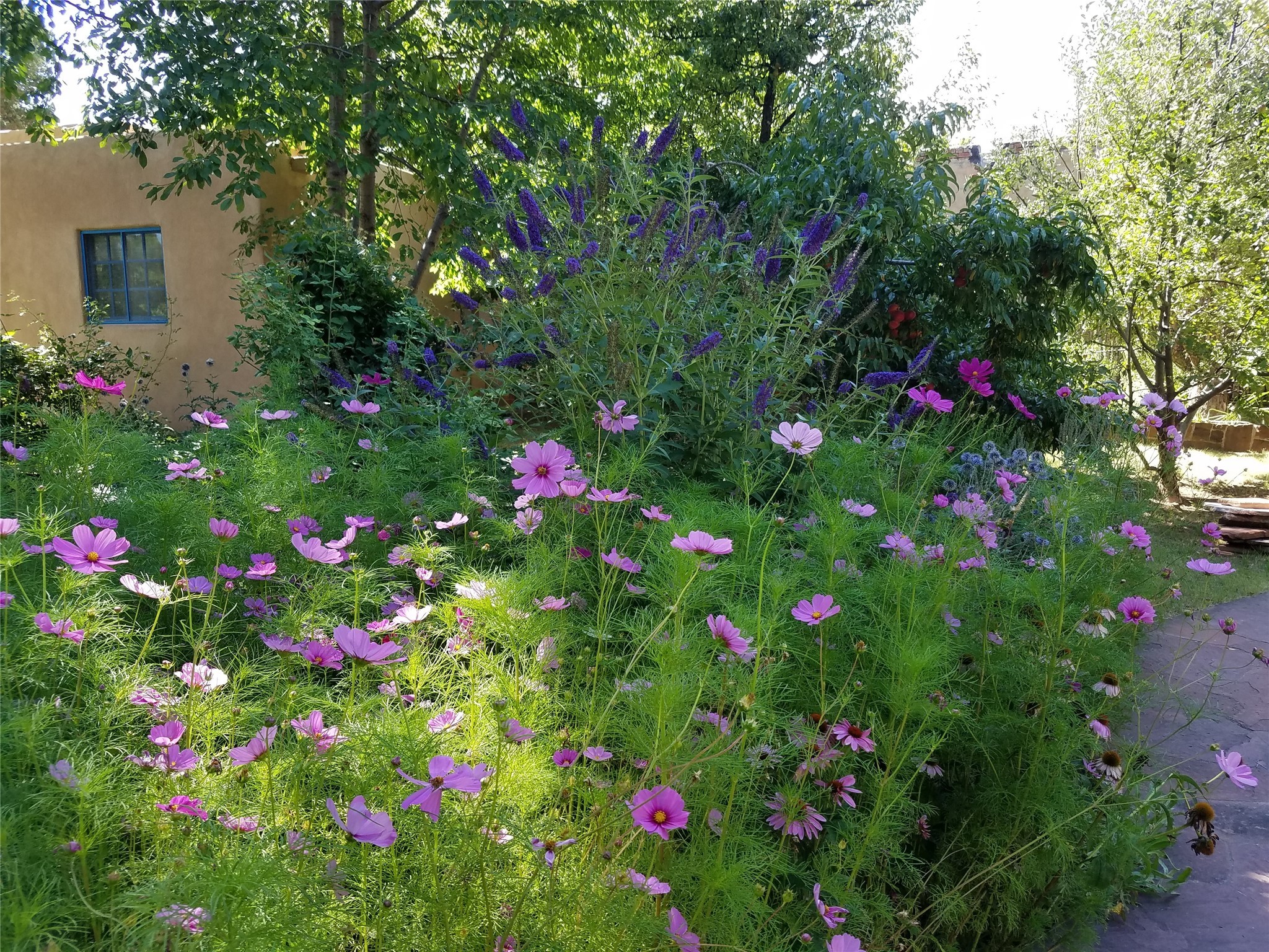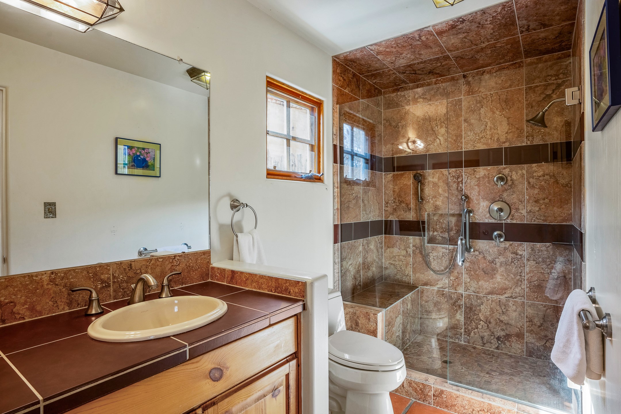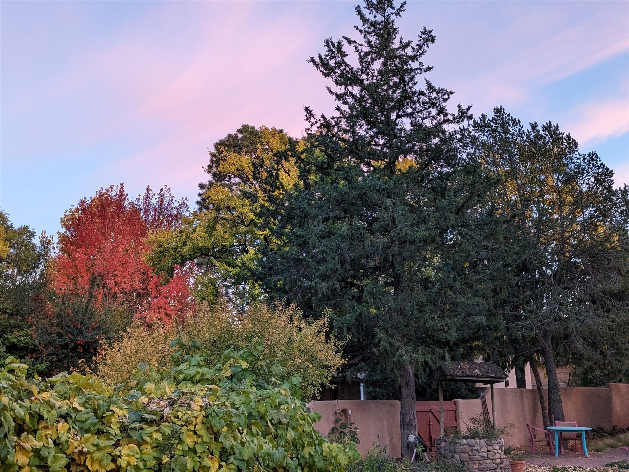 Located at the end of Santa Fe's covetable and quiet Delgado Lane, yet in the "center of it all", lies this incredibly rare find -hitting the market for the first time since its construction in the 1920s. Poised on an expansive .4-acre lot, this opportunity offers the perfect combination of Santa Fe charm and tranquility paired with the best of Santa Fe at your fingertips. The adobe 3BD-2.5BA main house exudes classic pueblo style architecture, viga ceilings, wood floors, and charming wood burning fireplaces. The 1BD-1BA detached guest house, added in the 1990s, offers a well equipped kitchen, its own laundry, and is privately sited offering a comfortable space for visitors and friends, or presents an interesting income generating opportunity. The property's captivating grounds are equally impressive. A true gardener's paradise, the lot is adorned with apple, apricot, pear, nectarine, and cherry trees, as well as mature cottonwood and pine trees. Colorful rose bushes (some of which are circa 80 years old) and peonies also decorate the gardens. The grounds benefit from water drawn from the property's private well (irrigation only), sprinkler system and drip irrigation are already in-place. Located steps away from Acequia Madre and Canyon Road, known for its world-class galleries and dining options, this is an exceptional opportunity to own and reimagine a slice of Santa Fe's rich history. A remarkable melding of privacy, outdoor beauty, space to entertain, and easy access to the heart of the city, this is a canvas that rarely becomes available.