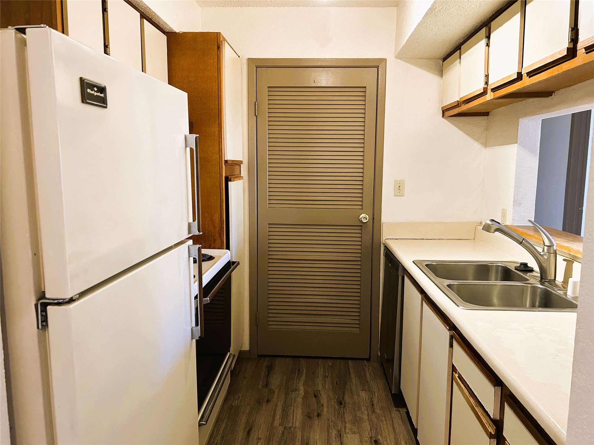 Sunny 1 bed! 1 full bath, no carpet-LVP throughout. Wood burning fireplace. First floor unit. Bedroom includes 2 closets! Small outdoor area. Community includes gated, pool, workout center, clubhouse, and additional laundry.