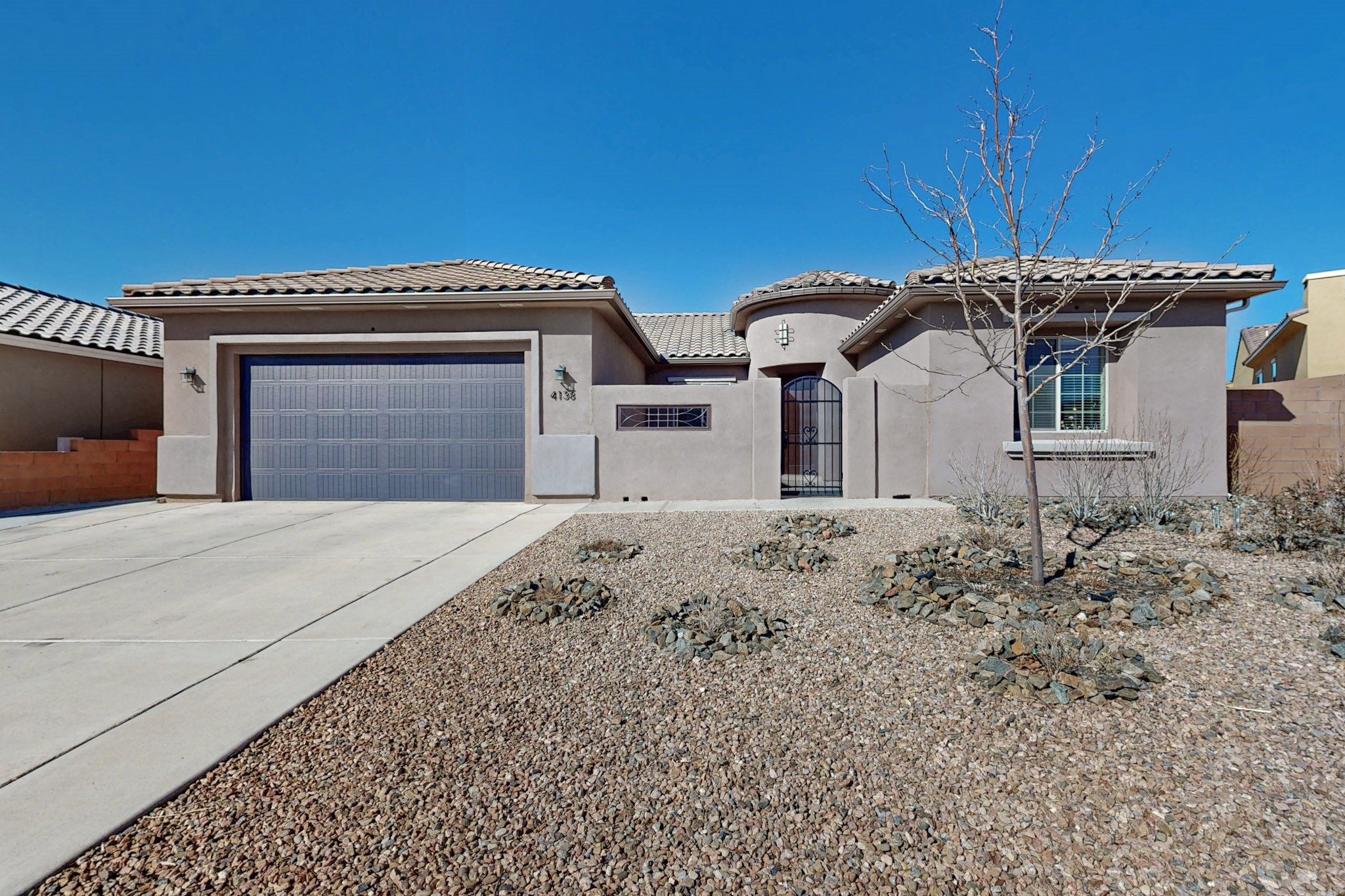 Welcome to your dream home in the highly sought-after Estancias de Las Soleras subdivision of Santa Fe. This immaculate, move-in-ready Pulte-built home is designed with Pulte's popular Serenity Floor Plan and sits on a premium lot with breathtaking mountain views. Every detail has been thoughtfully upgraded to offer the perfect blend of comfort and luxury. Conveniently situated near shopping centers, schools, dining options, and medical facilities, with quick access to the freeway, this home offers both convenience and tranquility. Enjoy the convenience of having a wide array of amenities just moments away. The chef-inspired kitchen is equipped with high-end KitchenAid appliances, stunning granite countertops, a beautiful backsplash, and a large island that invites creativity for culinary enthusiasts. The primary bedroom features bow windows that let in abundant natural light, offering panoramic views that make the space even more luxurious. The home also includes a versatile den with elegant French doors that could easily be transformed into a fourth bedroom, game room, art studio, or additional living space--endless possibilities. Throughout the home, you'll find upgraded cabinets, flooring, and a custom entry door with Nest locks, all contributing to a modern, sophisticated aesthetic. Outside, the beautifully landscaped front and back yards are highlighted by over 500 bulbs, perennial plants, trees, and shrubs. A wrap-around concrete walkway leads to a private courtyard with 6-foot walls, perfect for relaxation or entertaining guests. The home's exterior features a gas fireplace, a gas stub for BBQs, and an artificial turf entryway with a hydrangea tree. Additional features include comfort-height toilets, upgraded carpet and tile flooring, 2" faux wood blinds, and an epoxy-coated garage with a 4-foot extension, utility sink, and premium flooring. The Rinnai tankless water heater with a programmable timer ensures energy efficiency, while the home's thoughtful design and attention to detail provide comfort and style throughout. The backyard backs onto a vast open space, offering privacy and uninterrupted views--ideal for walks and enjoying Santa Fe's natural beauty. This stunning property offers the ideal blend of elegance, convenience, and luxury. Don't miss your chance to own this rare gem--schedule a private showing today and make 2025 the year you begin your next chapter in the home of your dreams. Some photos are virtually staged, while others were taken at different times to showcase the plants in bloom.