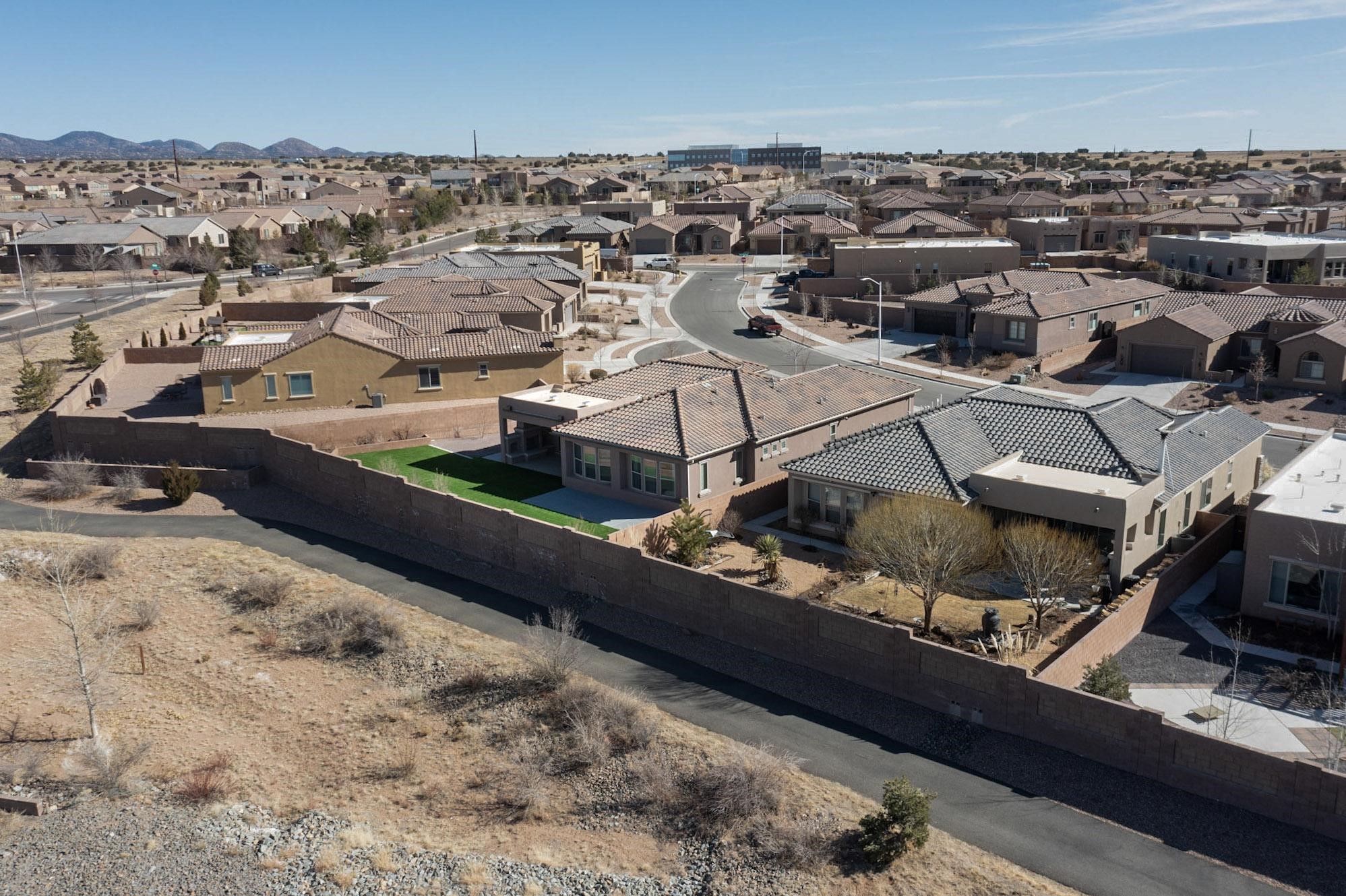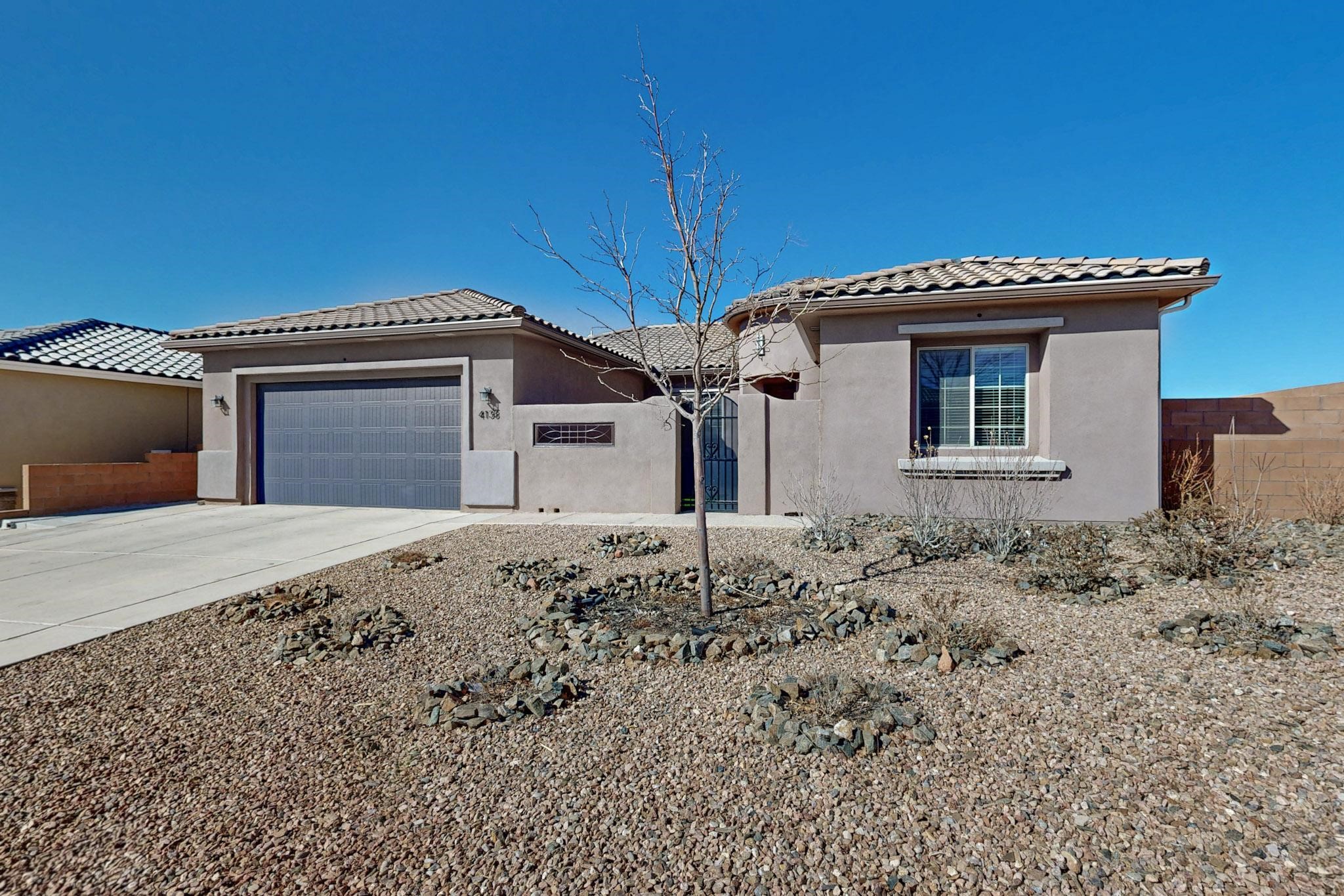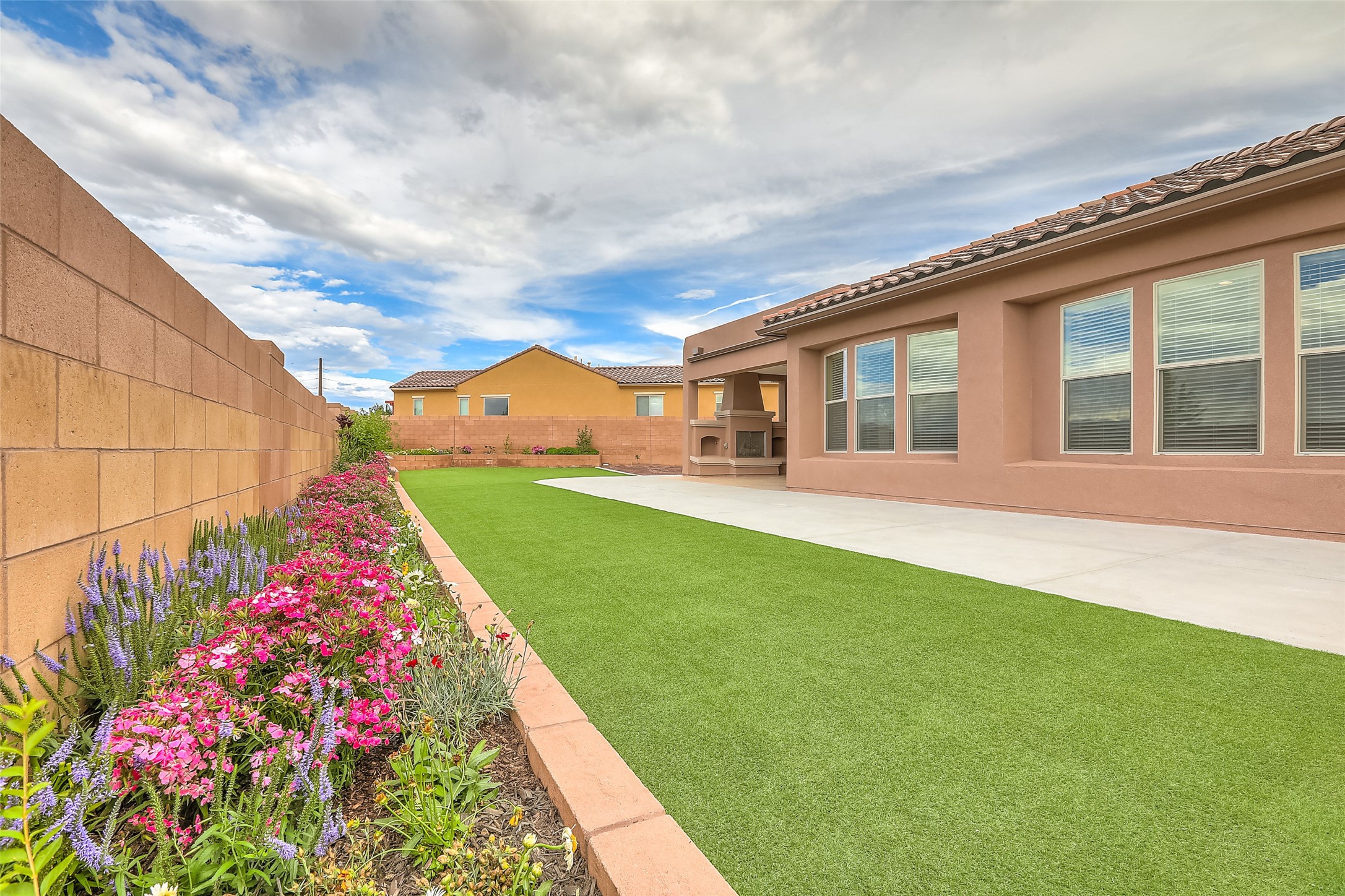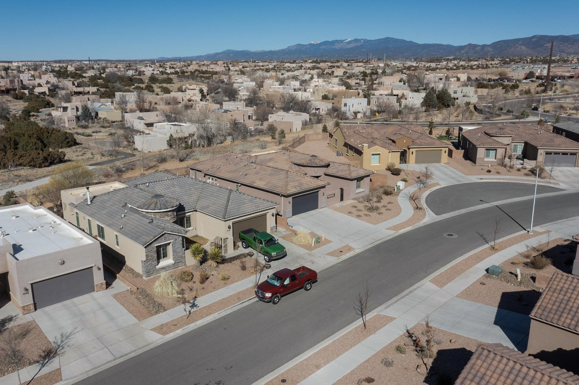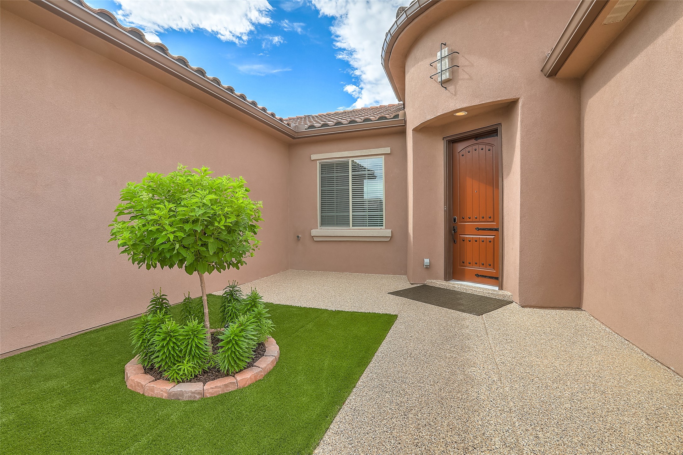 Welcome to your dream home in the highly sought-after Estancias de Las Soleras subdivision of Santa Fe. This immaculate, move-in-ready Pulte-built home is designed with Pulte's popular Serenity Floor Plan and sits on a premium lot with breathtaking mountain views. Every detail has been thoughtfully upgraded to offer the perfect blend of comfort and luxury. Conveniently situated near shopping centers, schools, dining options, and medical facilities, with quick access to the freeway, this home offers both convenience and tranquility. Enjoy the convenience of having a wide array of amenities just moments away. The chef-inspired kitchen is equipped with high-end KitchenAid appliances, stunning granite countertops, a beautiful backsplash, and a large island that invites creativity for culinary enthusiasts. The primary bedroom features bow windows that let in abundant natural light, offering panoramic views that make the space even more luxurious. The home also includes a versatile den with elegant French doors that could easily be transformed into a fourth bedroom, game room, art studio, or additional living space--endless possibilities. Throughout the home, you'll find upgraded cabinets, flooring, and a custom entry door with Nest locks, all contributing to a modern, sophisticated aesthetic. Outside, the beautifully landscaped front and back yards are highlighted by over 500 bulbs, perennial plants, trees, and shrubs. A wrap-around concrete walkway leads to a private courtyard with 6-foot walls, perfect for relaxation or entertaining guests. The home's exterior features a gas fireplace, a gas stub for BBQs, and an artificial turf entryway with a hydrangea tree. Additional features include comfort-height toilets, upgraded carpet and tile flooring, 2" faux wood blinds, and an epoxy-coated garage with a 4-foot extension, utility sink, and premium flooring. The Rinnai tankless water heater with a programmable timer ensures energy efficiency, while the home's thoughtful design and attention to detail provide comfort and style throughout. The backyard backs onto a vast open space, offering privacy and uninterrupted views--ideal for walks and enjoying Santa Fe's natural beauty. This stunning property offers the ideal blend of elegance, convenience, and luxury. Don't miss your chance to own this rare gem--schedule a private showing today and make 2025 the year you begin your next chapter in the home of your dreams. Some photos are virtually staged, while others were taken at different times to showcase the plants in bloom.