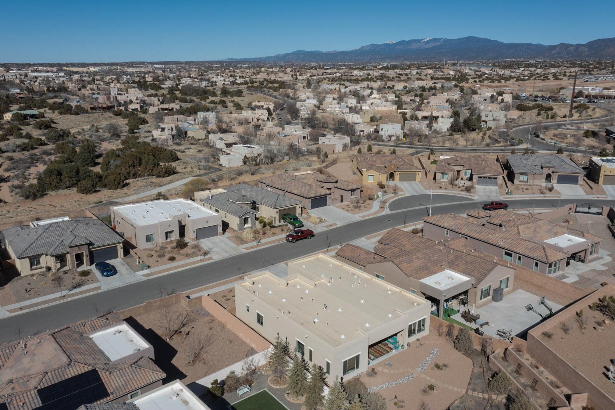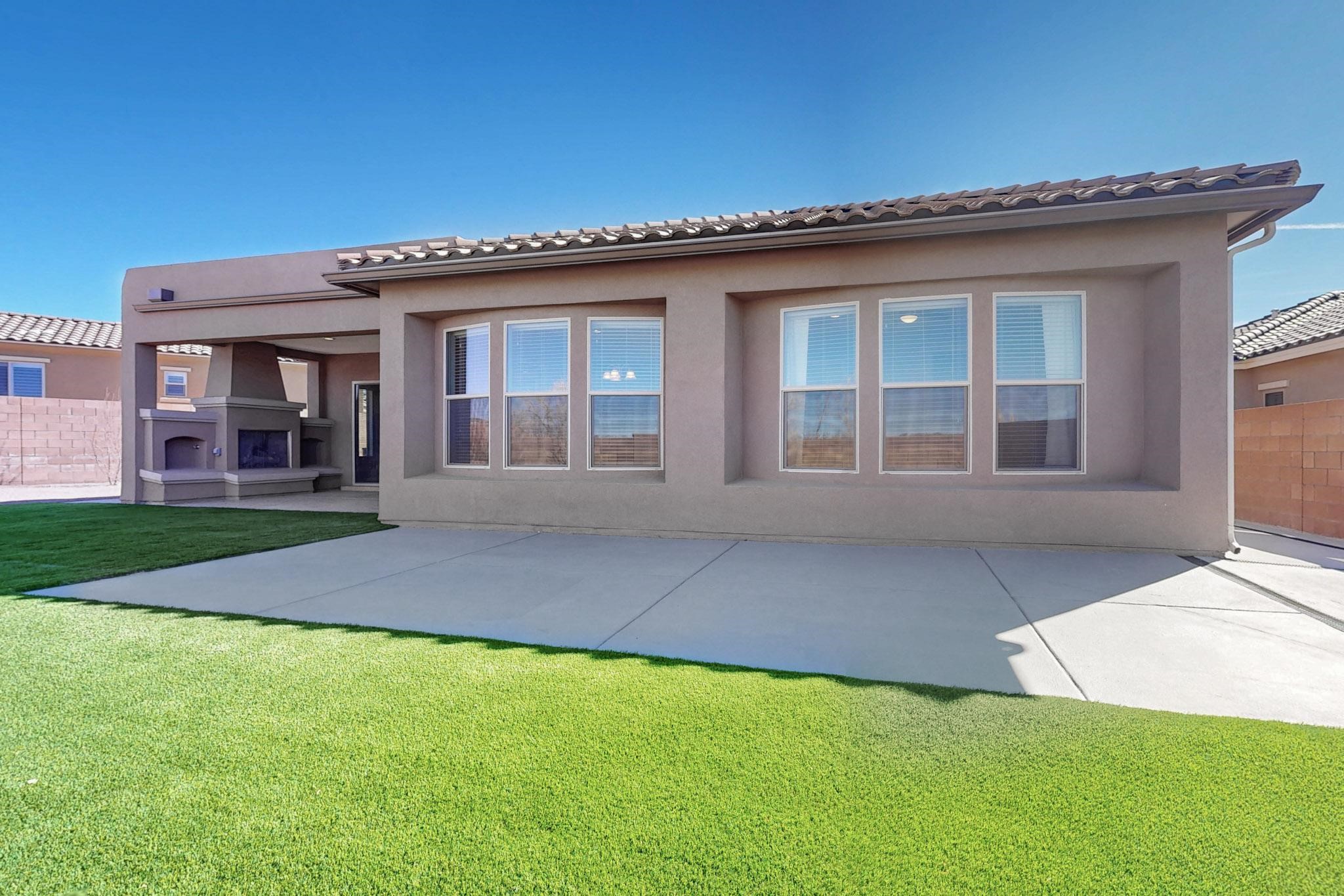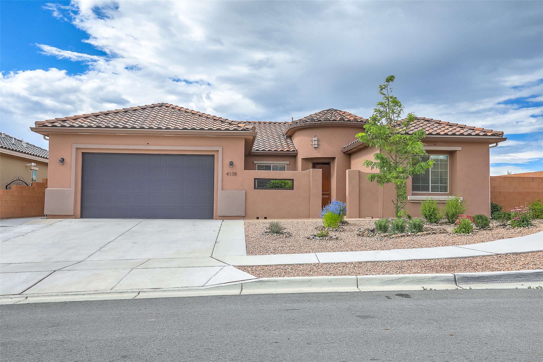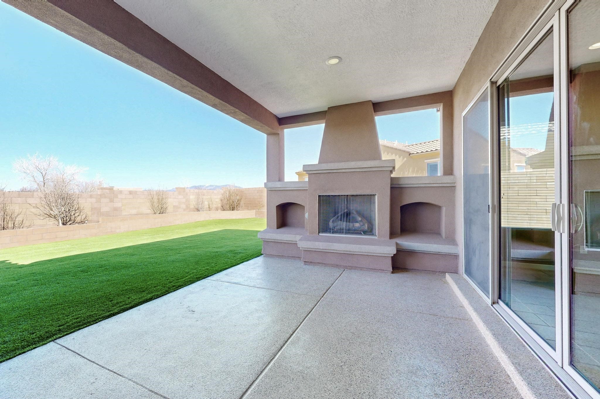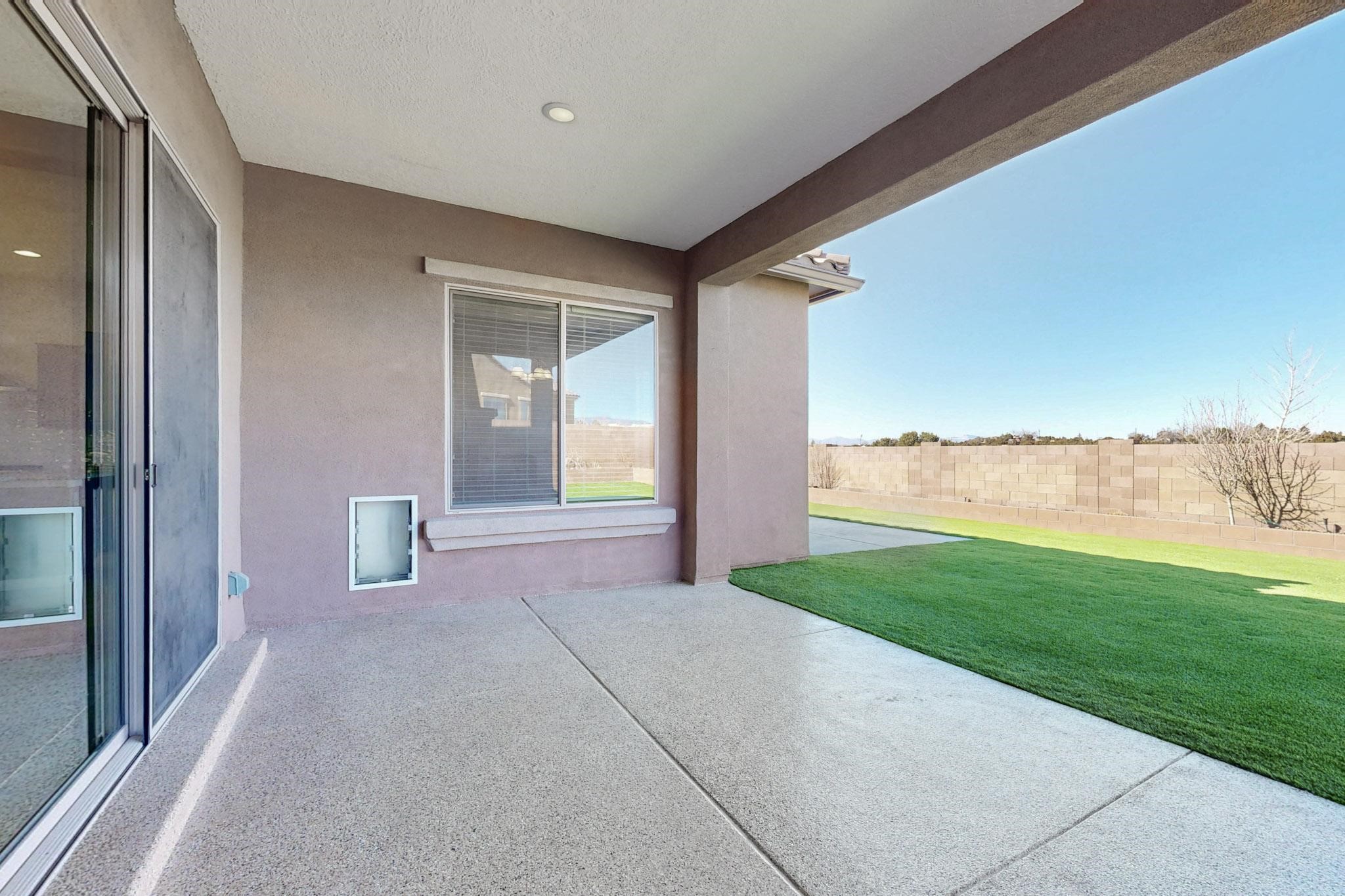 Welcome to your dream home in the highly sought-after Estancias de Las Soleras subdivision of Santa Fe. This immaculate, move-in-ready Pulte-built home is designed with Pulte's popular Serenity Floor Plan and sits on a premium lot with breathtaking mountain views. Every detail has been thoughtfully upgraded to offer the perfect blend of comfort and luxury. Conveniently situated near shopping centers, schools, dining options, and medical facilities, with quick access to the freeway, this home offers both convenience and tranquility. Enjoy the convenience of having a wide array of amenities just moments away. The chef-inspired kitchen is equipped with high-end KitchenAid appliances, stunning granite countertops, a beautiful backsplash, and a large island that invites creativity for culinary enthusiasts. The primary bedroom features bow windows that let in abundant natural light, offering panoramic views that make the space even more luxurious. The home also includes a versatile den with elegant French doors that could easily be transformed into a fourth bedroom, game room, art studio, or additional living space--endless possibilities. Throughout the home, you'll find upgraded cabinets, flooring, and a custom entry door with Nest locks, all contributing to a modern, sophisticated aesthetic. Outside, the beautifully landscaped front and back yards are highlighted by over 500 bulbs, perennial plants, trees, and shrubs. A wrap-around concrete walkway leads to a private courtyard with 6-foot walls, perfect for relaxation or entertaining guests. The home's exterior features a gas fireplace, a gas stub for BBQs, and an artificial turf entryway with a hydrangea tree. Additional features include comfort-height toilets, upgraded carpet and tile flooring, 2" faux wood blinds, and an epoxy-coated garage with a 4-foot extension, utility sink, and premium flooring. The Rinnai tankless water heater with a programmable timer ensures energy efficiency, while the home's thoughtful design and attention to detail provide comfort and style throughout. The backyard backs onto a vast open space, offering privacy and uninterrupted views--ideal for walks and enjoying Santa Fe's natural beauty. This stunning property offers the ideal blend of elegance, convenience, and luxury. Don't miss your chance to own this rare gem--schedule a private showing today and make 2025 the year you begin your next chapter in the home of your dreams. Some photos are virtually staged, while others were taken at different times to showcase the plants in bloom.