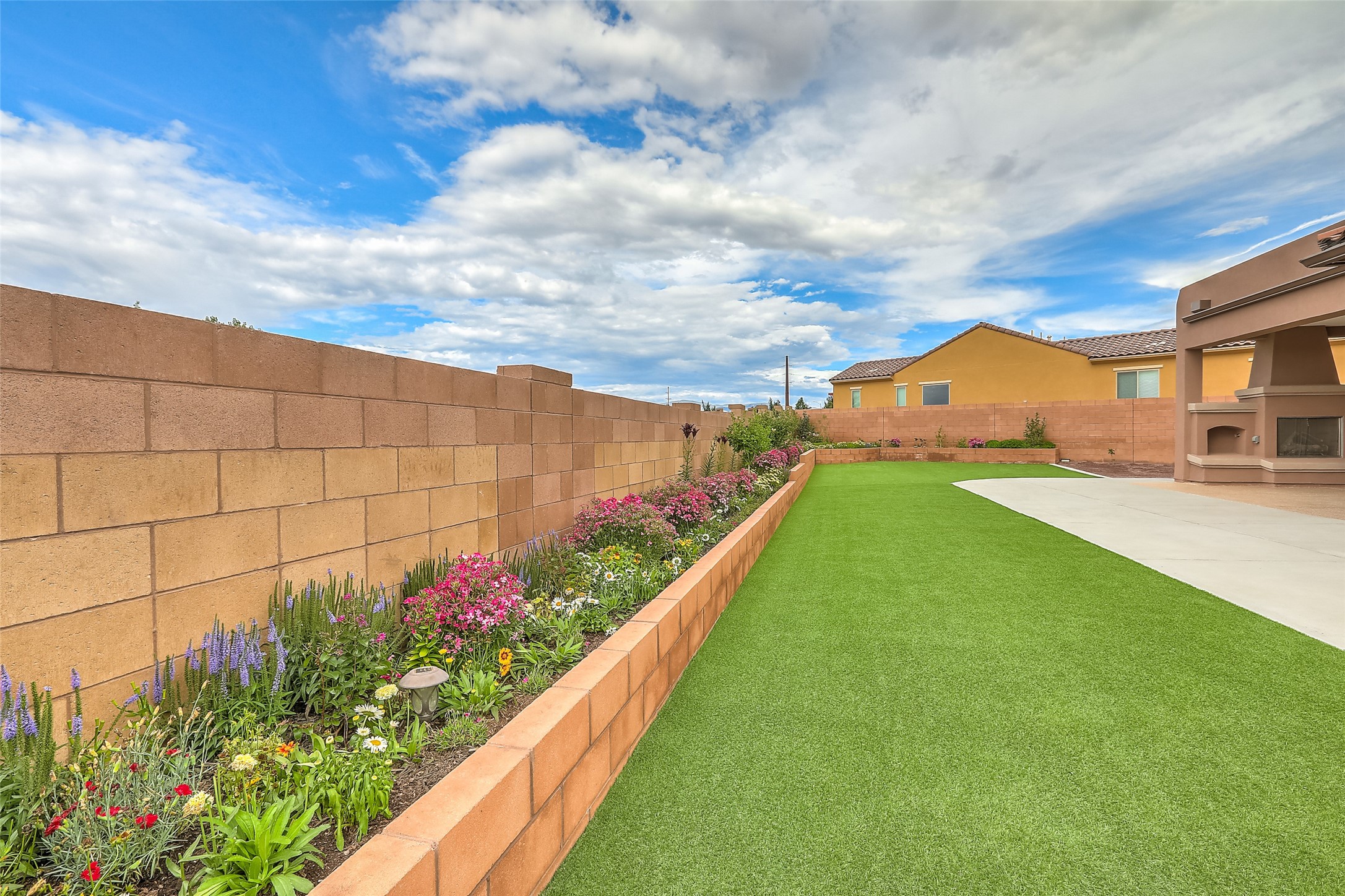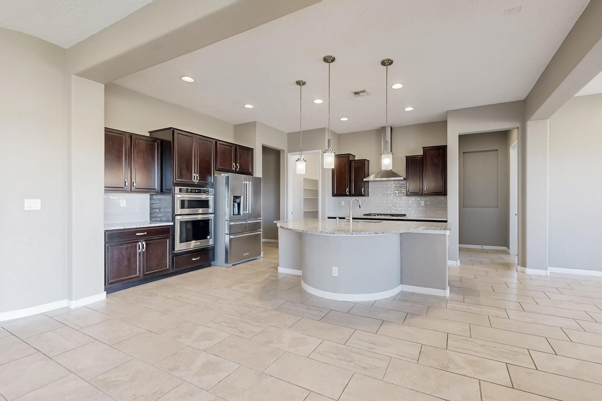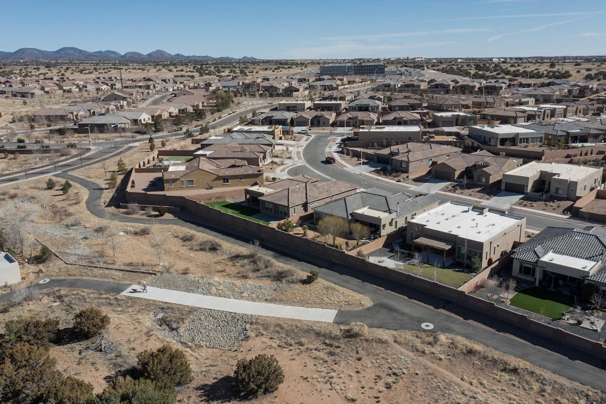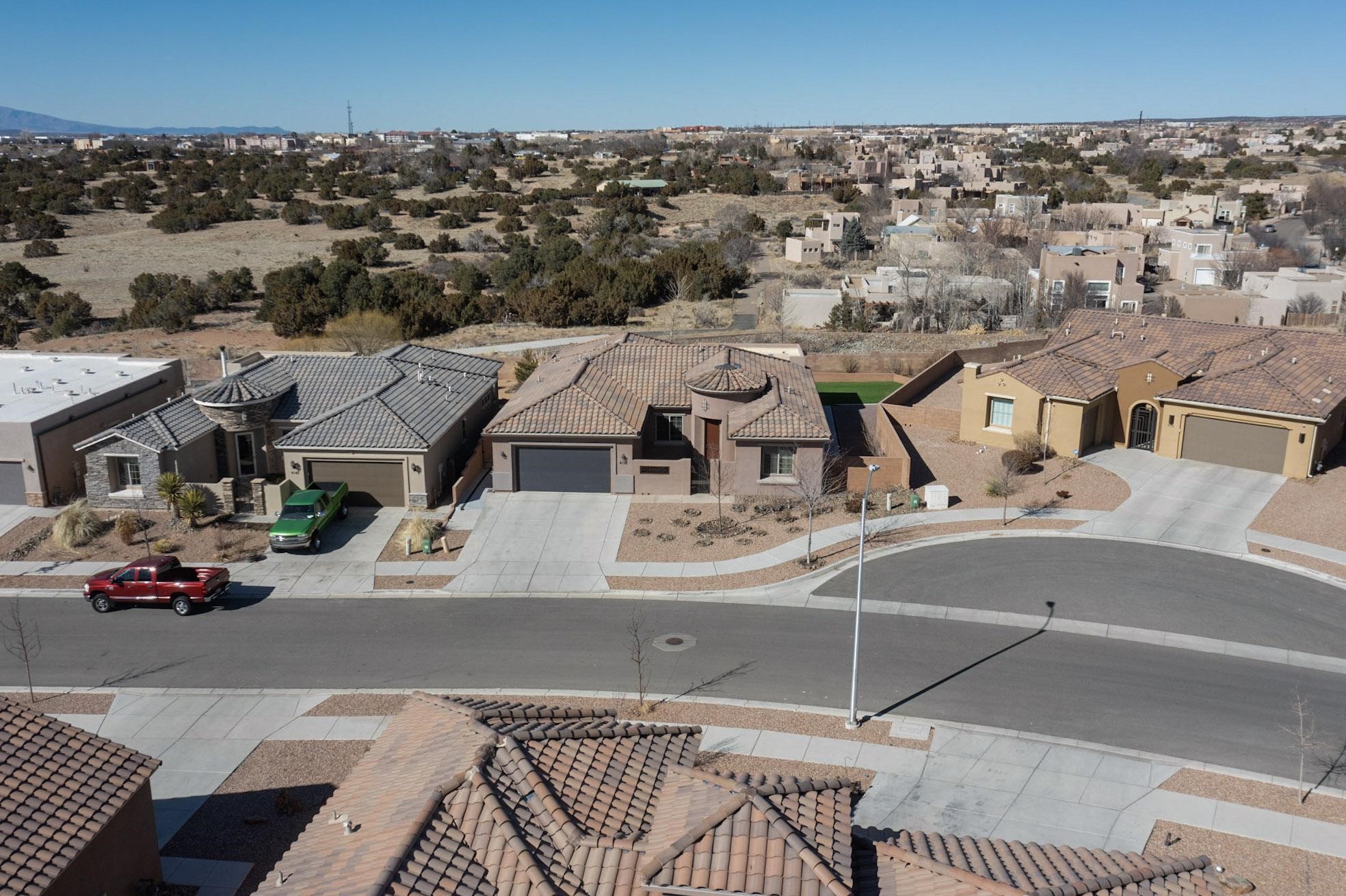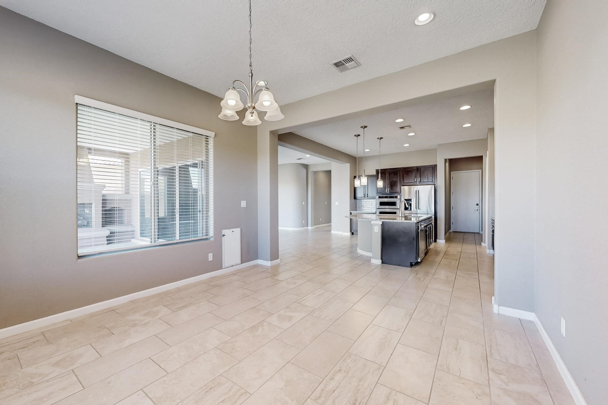 Welcome to your dream home in the highly sought-after Estancias de Las Soleras subdivision of Santa Fe. This immaculate, move-in-ready Pulte-built home is designed with Pulte's popular Serenity Floor Plan and sits on a premium lot with breathtaking mountain views. Every detail has been thoughtfully upgraded to offer the perfect blend of comfort and luxury. Conveniently situated near shopping centers, schools, dining options, and medical facilities, with quick access to the freeway, this home offers both convenience and tranquility. Enjoy the convenience of having a wide array of amenities just moments away. The chef-inspired kitchen is equipped with high-end KitchenAid appliances, stunning granite countertops, a beautiful backsplash, and a large island that invites creativity for culinary enthusiasts. The primary bedroom features bow windows that let in abundant natural light, offering panoramic views that make the space even more luxurious. The home also includes a versatile den with elegant French doors that could easily be transformed into a fourth bedroom, game room, art studio, or additional living space--endless possibilities. Throughout the home, you'll find upgraded cabinets, flooring, and a custom entry door with Nest locks, all contributing to a modern, sophisticated aesthetic. Outside, the beautifully landscaped front and back yards are highlighted by over 500 bulbs, perennial plants, trees, and shrubs. A wrap-around concrete walkway leads to a private courtyard with 6-foot walls, perfect for relaxation or entertaining guests. The home's exterior features a gas fireplace, a gas stub for BBQs, and an artificial turf entryway with a hydrangea tree. Additional features include comfort-height toilets, upgraded carpet and tile flooring, 2" faux wood blinds, and an epoxy-coated garage with a 4-foot extension, utility sink, and premium flooring. The Rinnai tankless water heater with a programmable timer ensures energy efficiency, while the home's thoughtful design and attention to detail provide comfort and style throughout. The backyard backs onto a vast open space, offering privacy and uninterrupted views--ideal for walks and enjoying Santa Fe's natural beauty. This stunning property offers the ideal blend of elegance, convenience, and luxury. Don't miss your chance to own this rare gem--schedule a private showing today and make 2025 the year you begin your next chapter in the home of your dreams. Some photos are virtually staged, while others were taken at different times to showcase the plants in bloom.