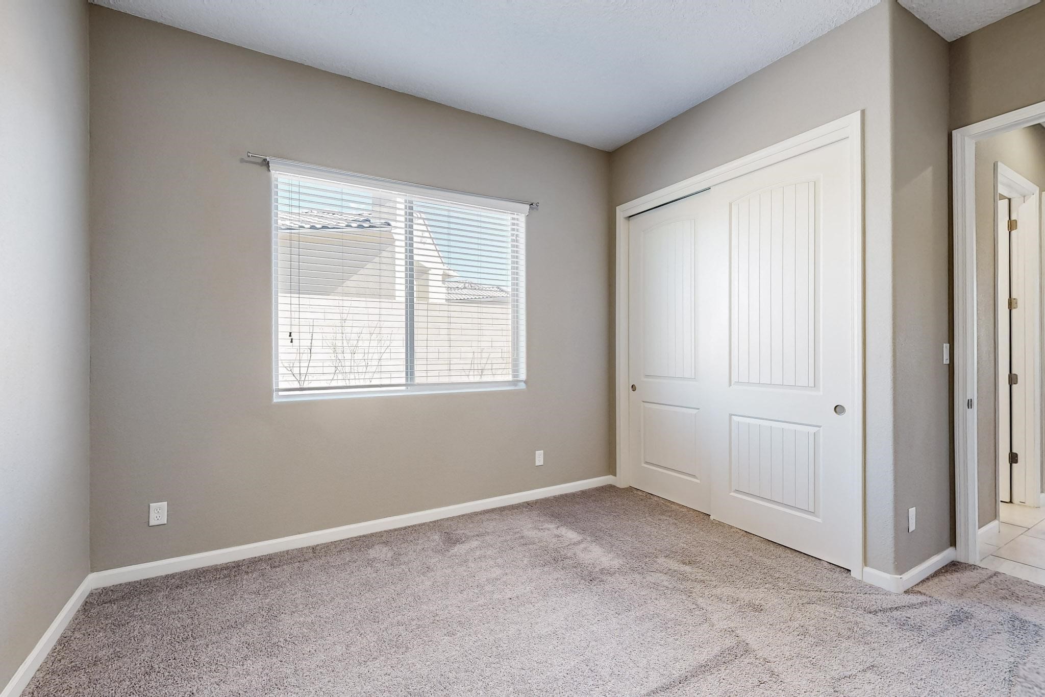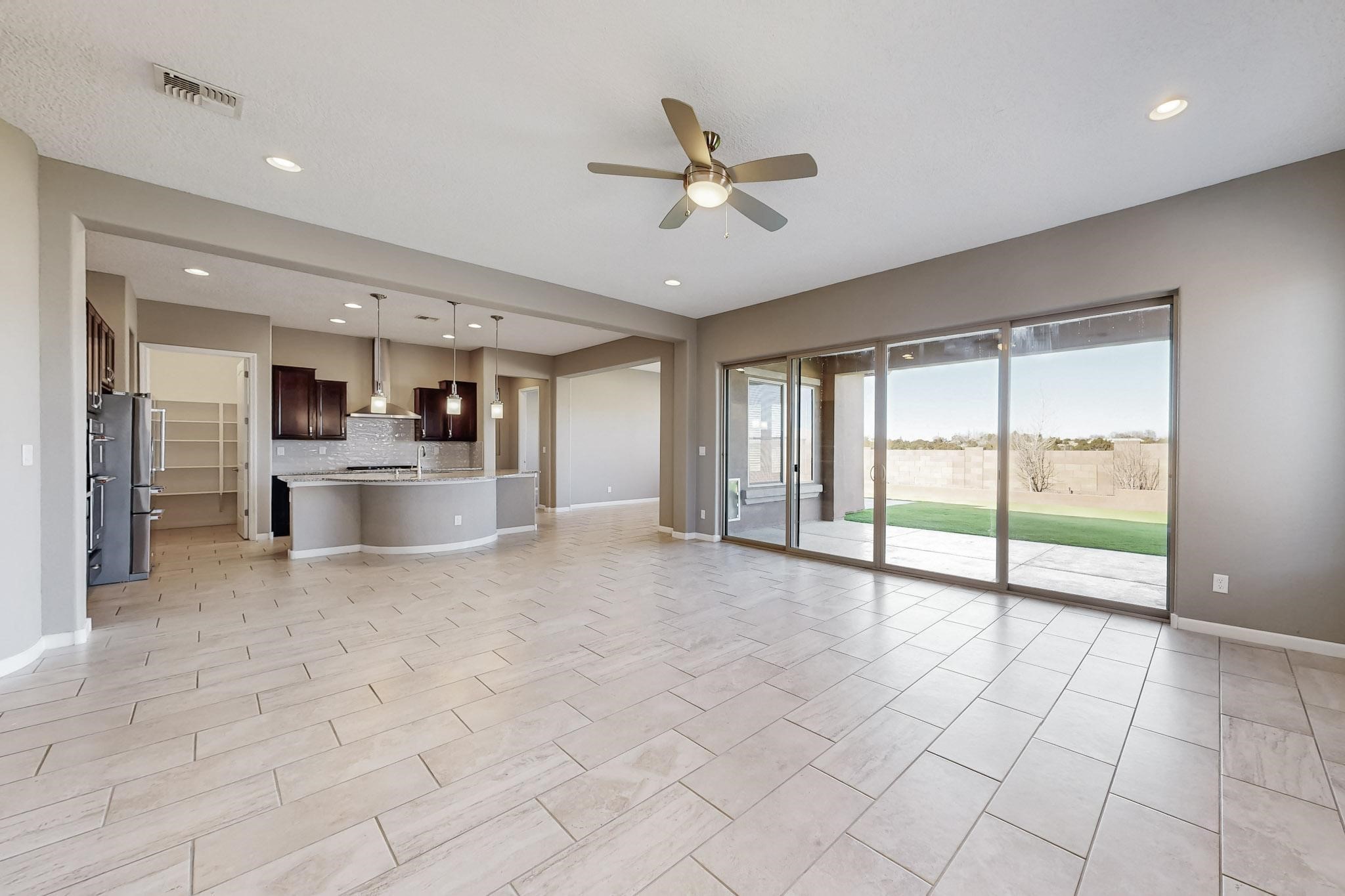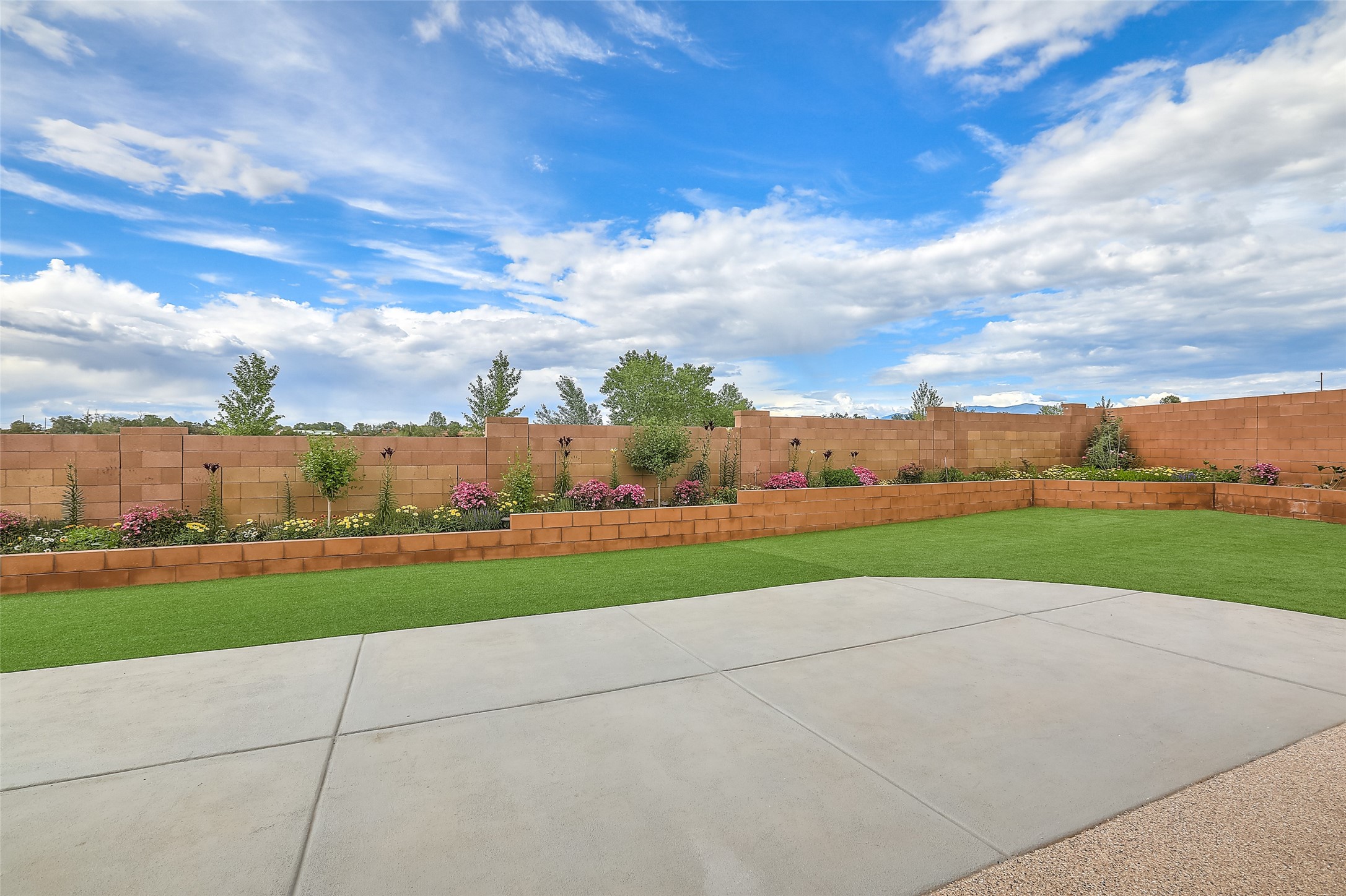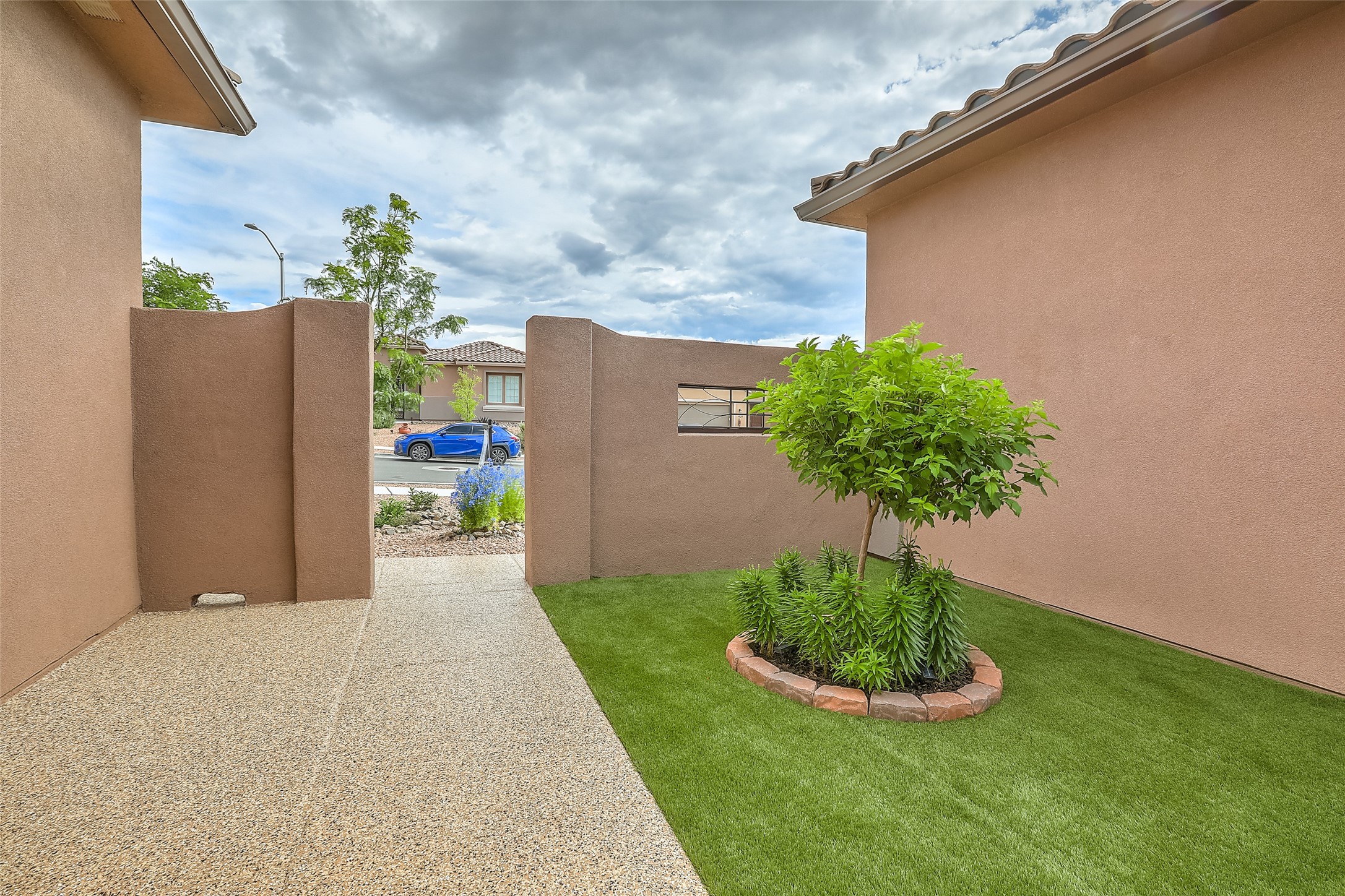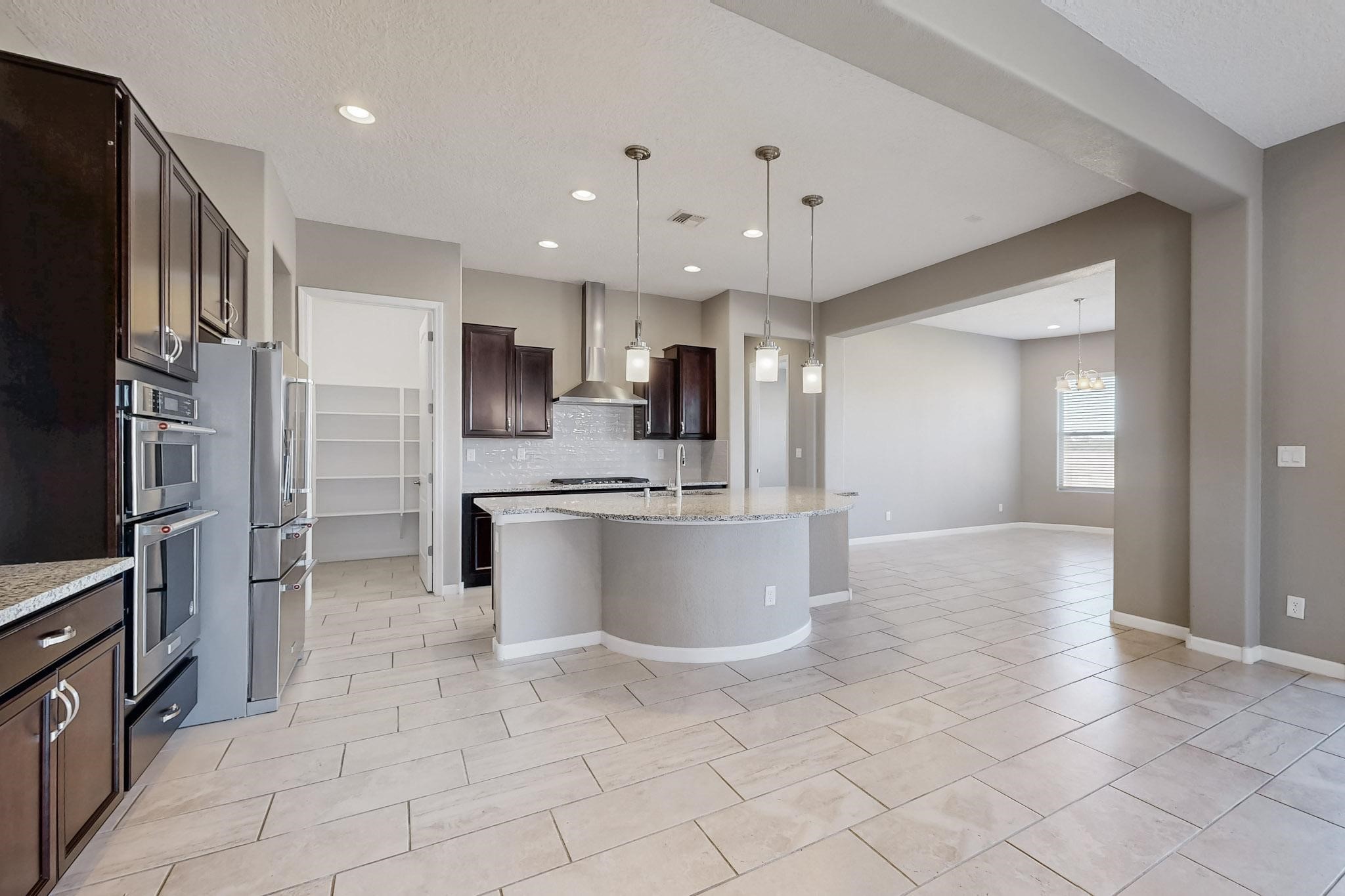 Welcome to your dream home in the highly sought-after Estancias de Las Soleras subdivision of Santa Fe. This immaculate, move-in-ready Pulte-built home is designed with Pulte's popular Serenity Floor Plan and sits on a premium lot with breathtaking mountain views. Every detail has been thoughtfully upgraded to offer the perfect blend of comfort and luxury. Conveniently situated near shopping centers, schools, dining options, and medical facilities, with quick access to the freeway, this home offers both convenience and tranquility. Enjoy the convenience of having a wide array of amenities just moments away. The chef-inspired kitchen is equipped with high-end KitchenAid appliances, stunning granite countertops, a beautiful backsplash, and a large island that invites creativity for culinary enthusiasts. The primary bedroom features bow windows that let in abundant natural light, offering panoramic views that make the space even more luxurious. The home also includes a versatile den with elegant French doors that could easily be transformed into a fourth bedroom, game room, art studio, or additional living space--endless possibilities. Throughout the home, you'll find upgraded cabinets, flooring, and a custom entry door with Nest locks, all contributing to a modern, sophisticated aesthetic. Outside, the beautifully landscaped front and back yards are highlighted by over 500 bulbs, perennial plants, trees, and shrubs. A wrap-around concrete walkway leads to a private courtyard with 6-foot walls, perfect for relaxation or entertaining guests. The home's exterior features a gas fireplace, a gas stub for BBQs, and an artificial turf entryway with a hydrangea tree. Additional features include comfort-height toilets, upgraded carpet and tile flooring, 2" faux wood blinds, and an epoxy-coated garage with a 4-foot extension, utility sink, and premium flooring. The Rinnai tankless water heater with a programmable timer ensures energy efficiency, while the home's thoughtful design and attention to detail provide comfort and style throughout. The backyard backs onto a vast open space, offering privacy and uninterrupted views--ideal for walks and enjoying Santa Fe's natural beauty. This stunning property offers the ideal blend of elegance, convenience, and luxury. Don't miss your chance to own this rare gem--schedule a private showing today and make 2025 the year you begin your next chapter in the home of your dreams. Some photos are virtually staged, while others were taken at different times to showcase the plants in bloom.