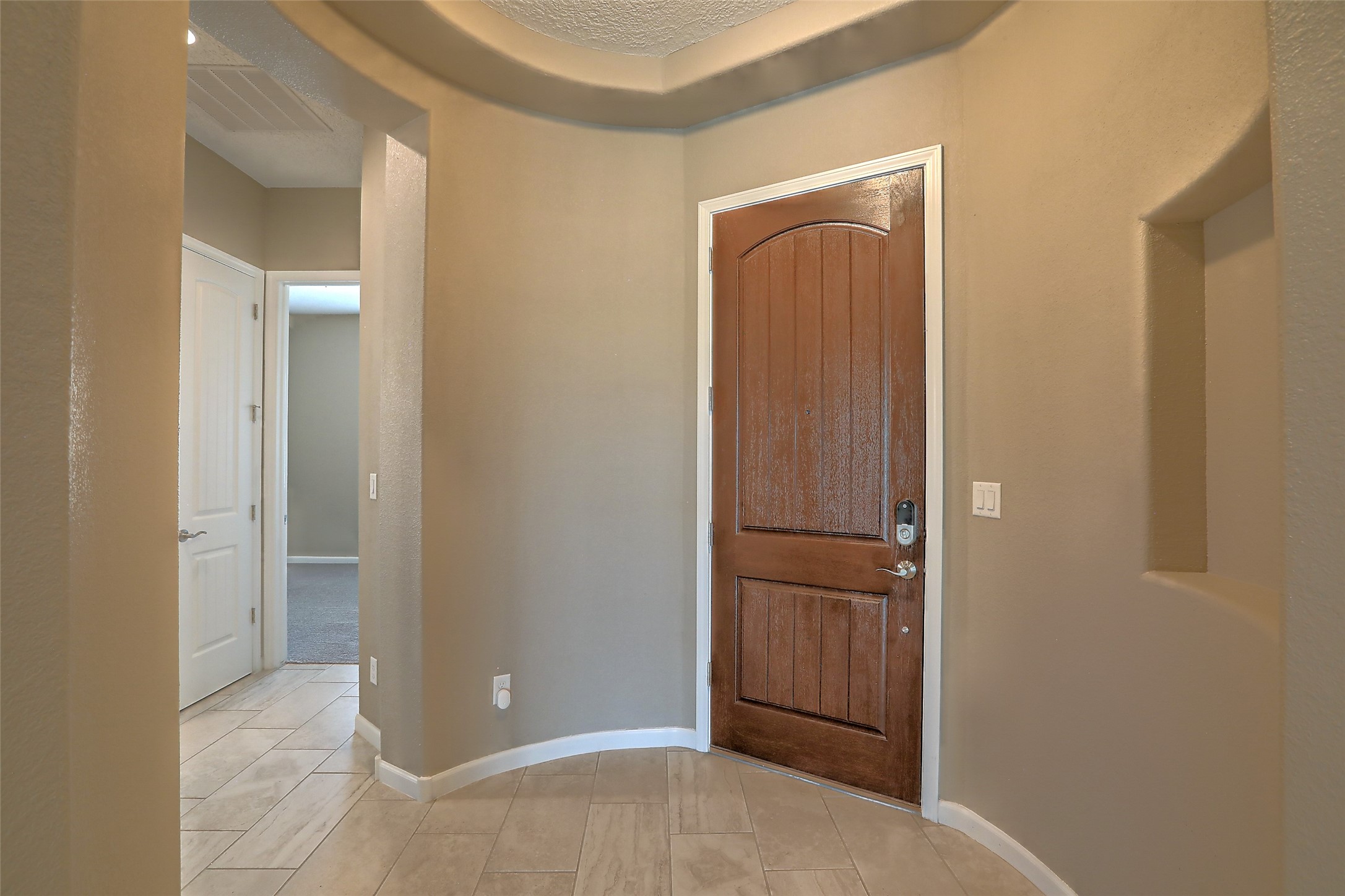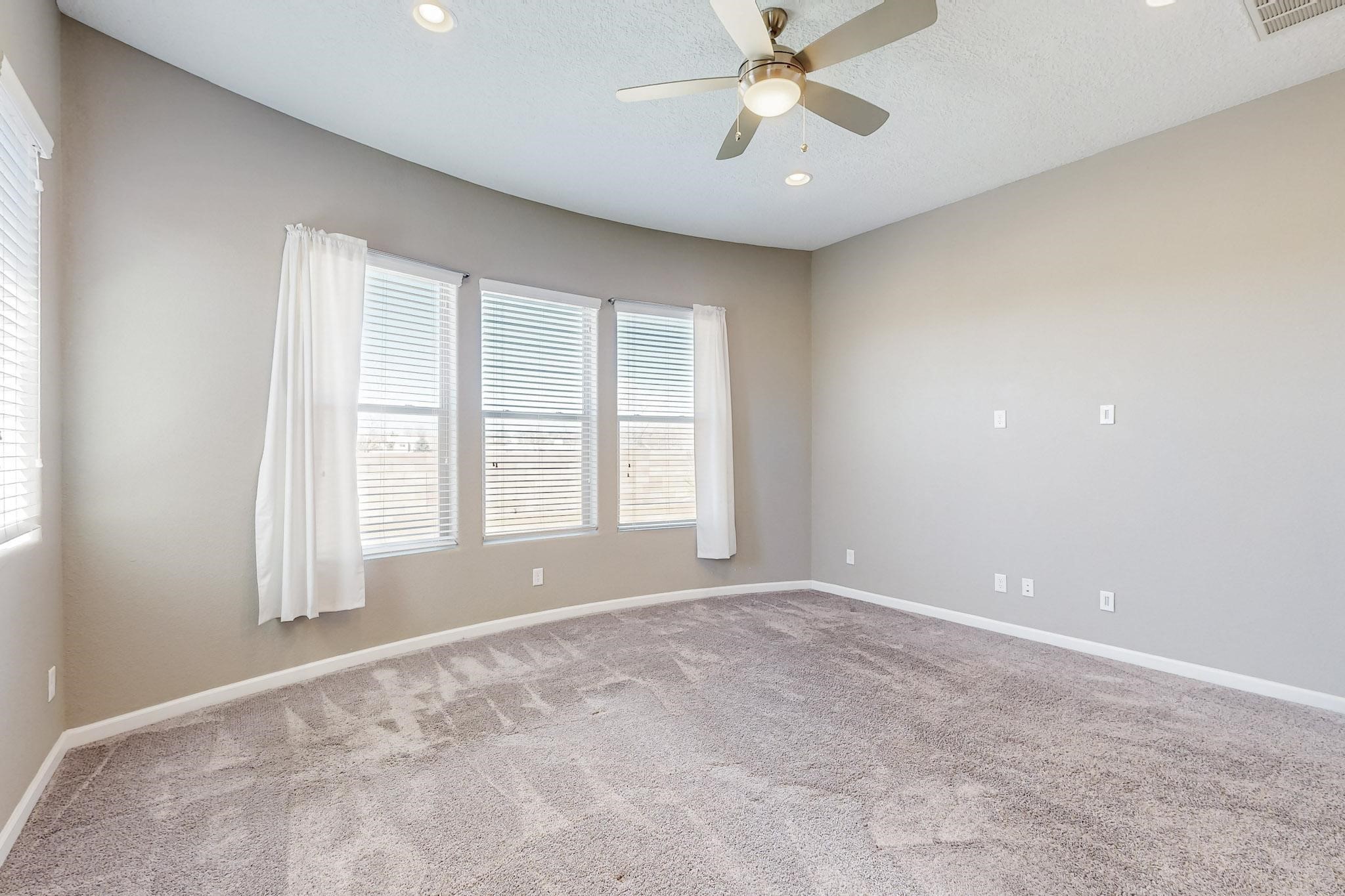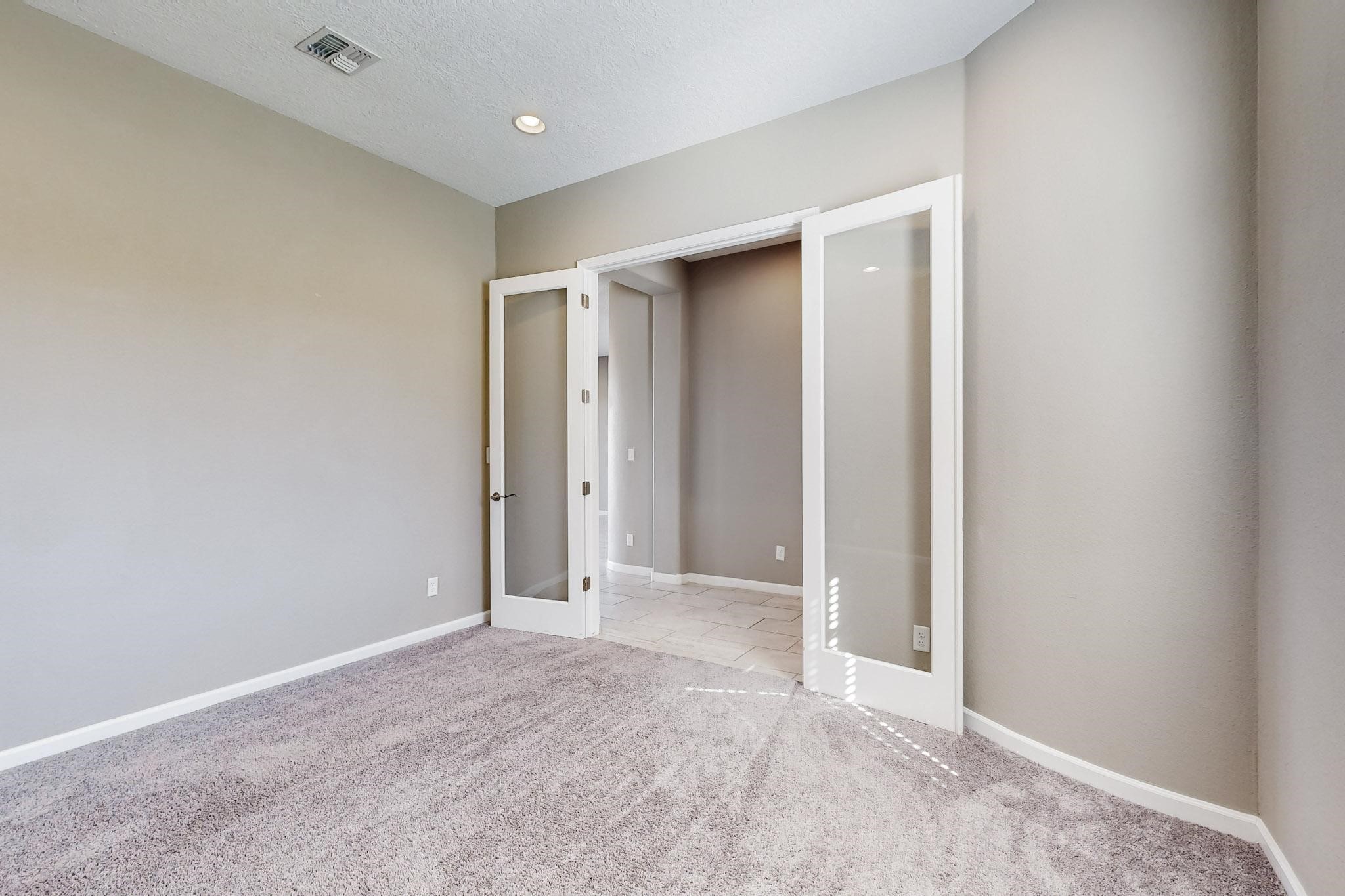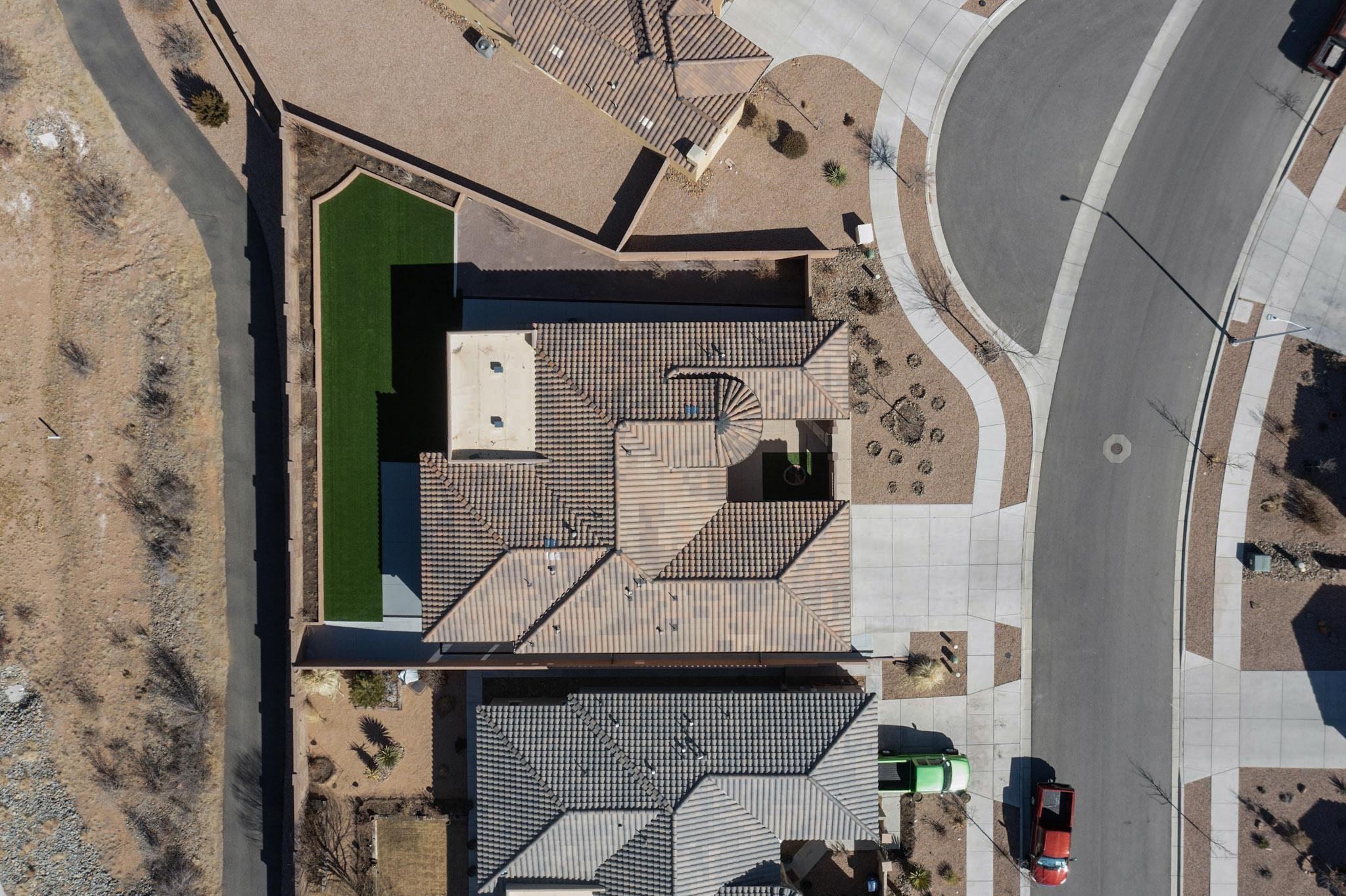 Welcome to your dream home in the highly sought-after Estancias de Las Soleras subdivision of Santa Fe. This immaculate, move-in-ready Pulte-built home is designed with Pulte's popular Serenity Floor Plan and sits on a premium lot with breathtaking mountain views. Every detail has been thoughtfully upgraded to offer the perfect blend of comfort and luxury. Conveniently situated near shopping centers, schools, dining options, and medical facilities, with quick access to the freeway, this home offers both convenience and tranquility. Enjoy the convenience of having a wide array of amenities just moments away. The chef-inspired kitchen is equipped with high-end KitchenAid appliances, stunning granite countertops, a beautiful backsplash, and a large island that invites creativity for culinary enthusiasts. The primary bedroom features bow windows that let in abundant natural light, offering panoramic views that make the space even more luxurious. The home also includes a versatile den with elegant French doors that could easily be transformed into a fourth bedroom, game room, art studio, or additional living space--endless possibilities. Throughout the home, you'll find upgraded cabinets, flooring, and a custom entry door with Nest locks, all contributing to a modern, sophisticated aesthetic. Outside, the beautifully landscaped front and back yards are highlighted by over 500 bulbs, perennial plants, trees, and shrubs. A wrap-around concrete walkway leads to a private courtyard with 6-foot walls, perfect for relaxation or entertaining guests. The home's exterior features a gas fireplace, a gas stub for BBQs, and an artificial turf entryway with a hydrangea tree. Additional features include comfort-height toilets, upgraded carpet and tile flooring, 2" faux wood blinds, and an epoxy-coated garage with a 4-foot extension, utility sink, and premium flooring. The Rinnai tankless water heater with a programmable timer ensures energy efficiency, while the home's thoughtful design and attention to detail provide comfort and style throughout. The backyard backs onto a vast open space, offering privacy and uninterrupted views--ideal for walks and enjoying Santa Fe's natural beauty. This stunning property offers the ideal blend of elegance, convenience, and luxury. Don't miss your chance to own this rare gem--schedule a private showing today and make 2025 the year you begin your next chapter in the home of your dreams. Some photos are virtually staged, while others were taken at different times to showcase the plants in bloom.