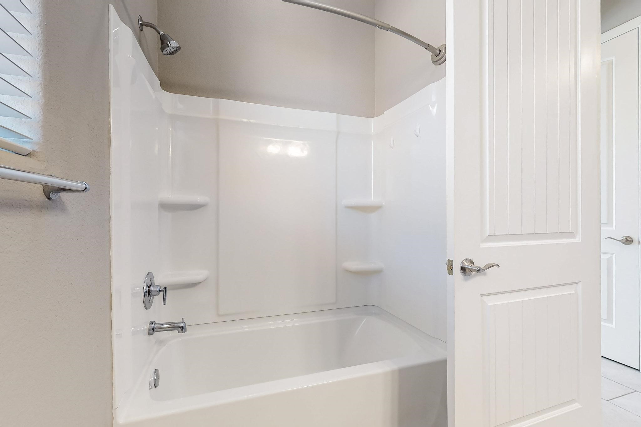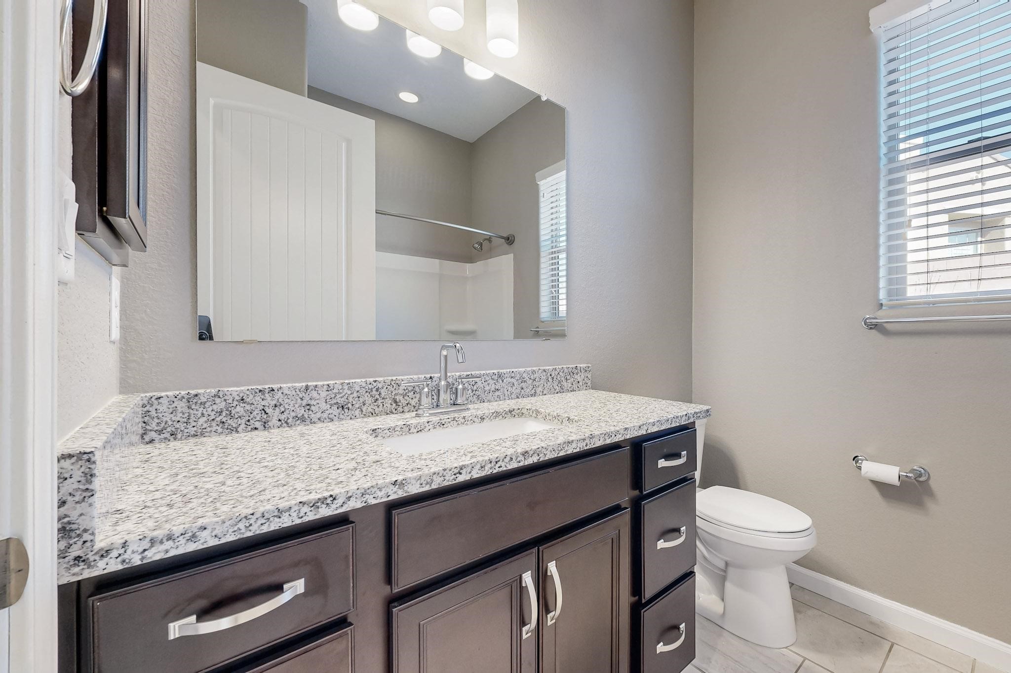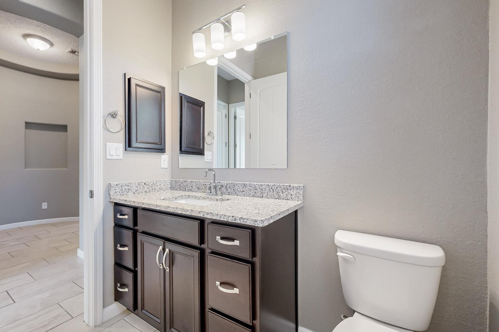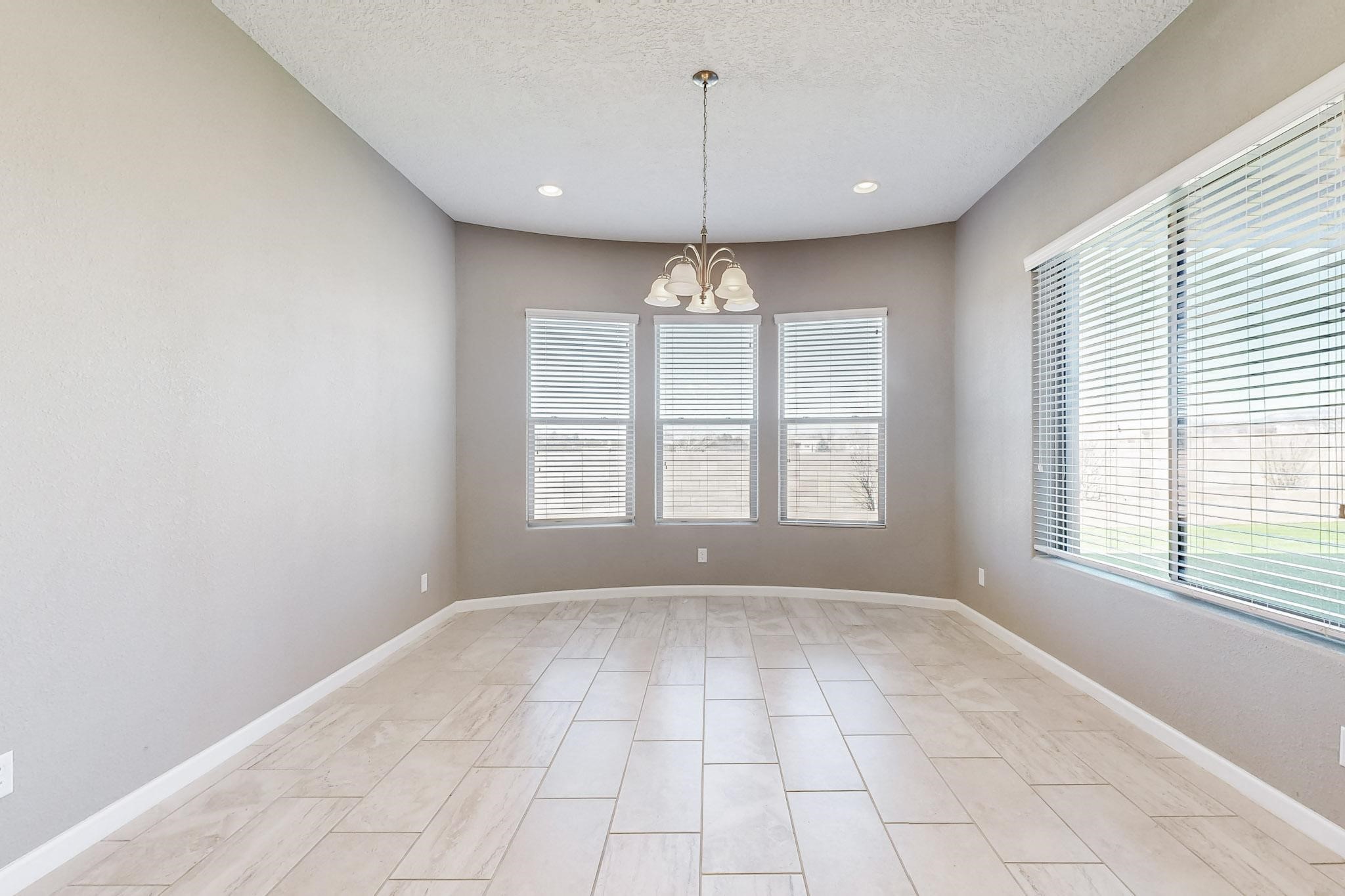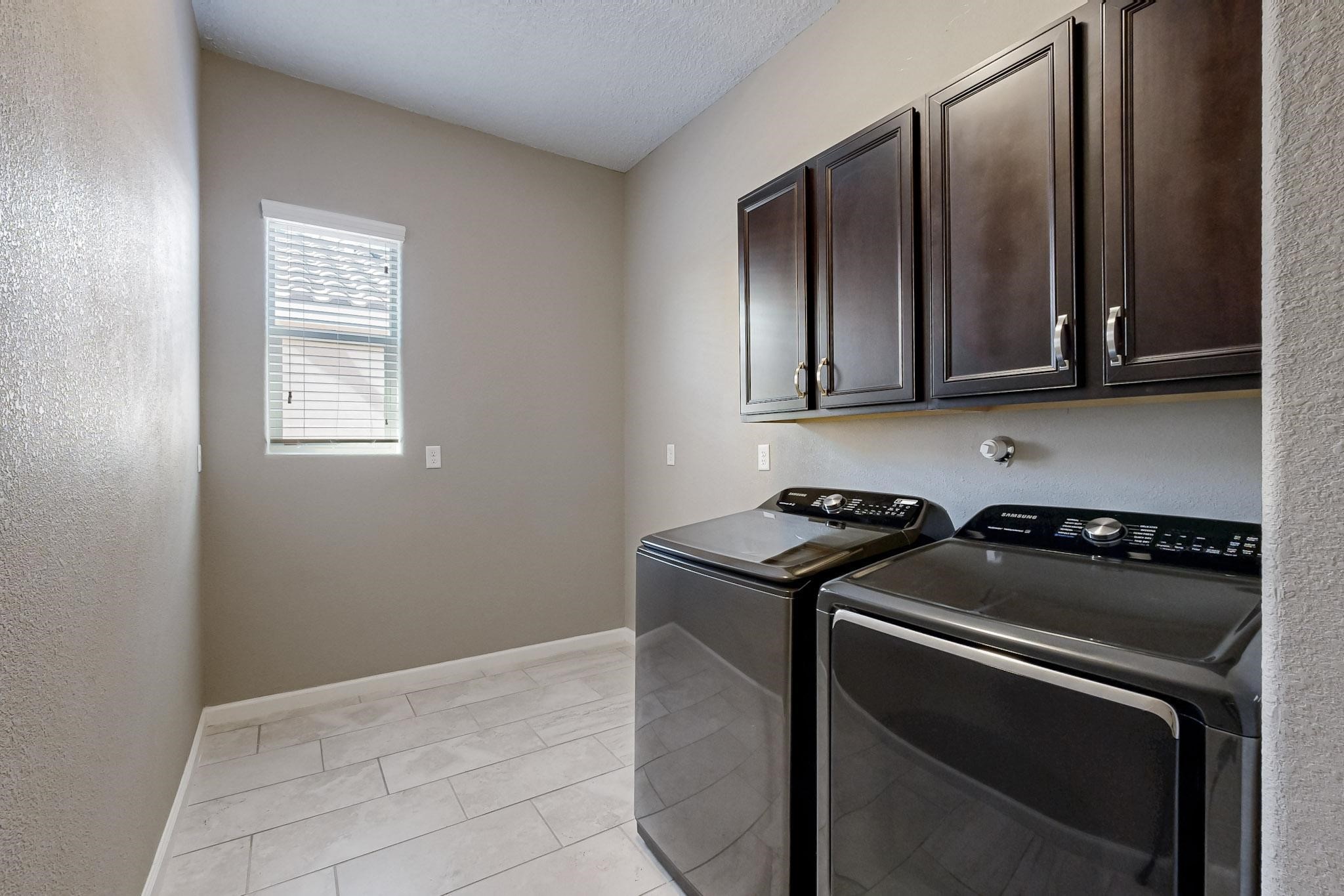 Welcome to your dream home in the highly sought-after Estancias de Las Soleras subdivision of Santa Fe. This immaculate, move-in-ready Pulte-built home is designed with Pulte's popular Serenity Floor Plan and sits on a premium lot with breathtaking mountain views. Every detail has been thoughtfully upgraded to offer the perfect blend of comfort and luxury. Conveniently situated near shopping centers, schools, dining options, and medical facilities, with quick access to the freeway, this home offers both convenience and tranquility. Enjoy the convenience of having a wide array of amenities just moments away. The chef-inspired kitchen is equipped with high-end KitchenAid appliances, stunning granite countertops, a beautiful backsplash, and a large island that invites creativity for culinary enthusiasts. The primary bedroom features bow windows that let in abundant natural light, offering panoramic views that make the space even more luxurious. The home also includes a versatile den with elegant French doors that could easily be transformed into a fourth bedroom, game room, art studio, or additional living space--endless possibilities. Throughout the home, you'll find upgraded cabinets, flooring, and a custom entry door with Nest locks, all contributing to a modern, sophisticated aesthetic. Outside, the beautifully landscaped front and back yards are highlighted by over 500 bulbs, perennial plants, trees, and shrubs. A wrap-around concrete walkway leads to a private courtyard with 6-foot walls, perfect for relaxation or entertaining guests. The home's exterior features a gas fireplace, a gas stub for BBQs, and an artificial turf entryway with a hydrangea tree. Additional features include comfort-height toilets, upgraded carpet and tile flooring, 2" faux wood blinds, and an epoxy-coated garage with a 4-foot extension, utility sink, and premium flooring. The Rinnai tankless water heater with a programmable timer ensures energy efficiency, while the home's thoughtful design and attention to detail provide comfort and style throughout. The backyard backs onto a vast open space, offering privacy and uninterrupted views--ideal for walks and enjoying Santa Fe's natural beauty. This stunning property offers the ideal blend of elegance, convenience, and luxury. Don't miss your chance to own this rare gem--schedule a private showing today and make 2025 the year you begin your next chapter in the home of your dreams. Some photos are virtually staged, while others were taken at different times to showcase the plants in bloom.