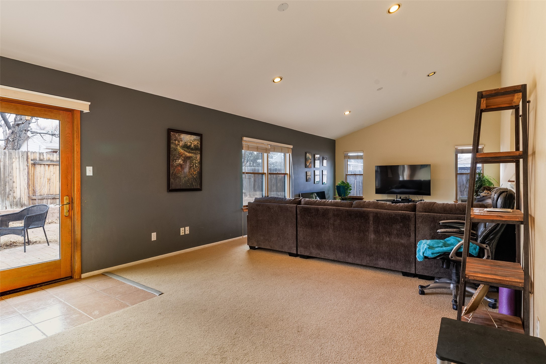 Spacious, Updated Ranch-Style Home in Desirable White Rock!Discover this beautifully updated ranch-style home, thoughtfully designed for comfort, style, and functionality. From the moment you step inside, you'll notice expert craftsmanship and high-end finishes throughout--including modern lighting, solid wood doors, stylish tile flooring, and wood-clad Pella windows.This home is equipped for year-round comfort with central evaporative cooling, forced air heating, and luxurious in-floor radiant heat in the expansive 900 sq. ft. addition. The addition features a striking family room with a cathedral ceiling, a spacious fourth bedroom, and a cozy sitting room with a large walk-in closet conveniently located off the primary suite.Each of the bedrooms are generously sized, while the main living areas are open and welcoming, flooded with natural light from multiple skylights that enhance the home's warm, inviting atmosphere.The updated kitchen is a true centerpiece, featuring granite countertops, refinished cabinetry with modern hardware, stainless steel appliances, and contemporary lighting--perfect for both everyday living and entertaining.Additional highlights include a two-car garage, a south-facing driveway that helps with snow melt in winter, and extra gravel parking to the east. Step outside to a private, fully fenced backyard with a patio and young apple trees--ideal for outdoor gatherings or tranquil moments.Don't miss out! Schedule your private tour today!
