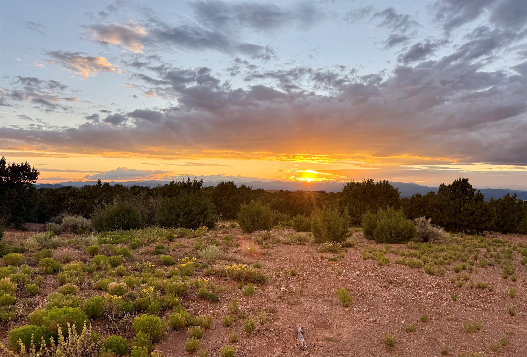 This exceptional 23.3-acre parcel offers breathtaking ridgetop views of the Sangre de Cristo and Jemez Mountains, making it one of the last remaining large, undeveloped tracts of land near the Plaza in the highly sought-after Tano Road neighborhood. Prime development potential with a 3 acre ft well in place, adequate for 6 estate lots. A tree-lined access road leads to a premier home site, perfectly positioned for capturing the surrounding natural beauty. With a well and transformer already in place, this property is ready for you to create the Northside estate or family compound you've always envisioned. Rarely does an opportunity arise to own such a romantic and pristine piece of land, complete with the infrastructure to begin building your dream home. Don't miss this unparalleled offering in one of Santa Fe's most coveted locations.