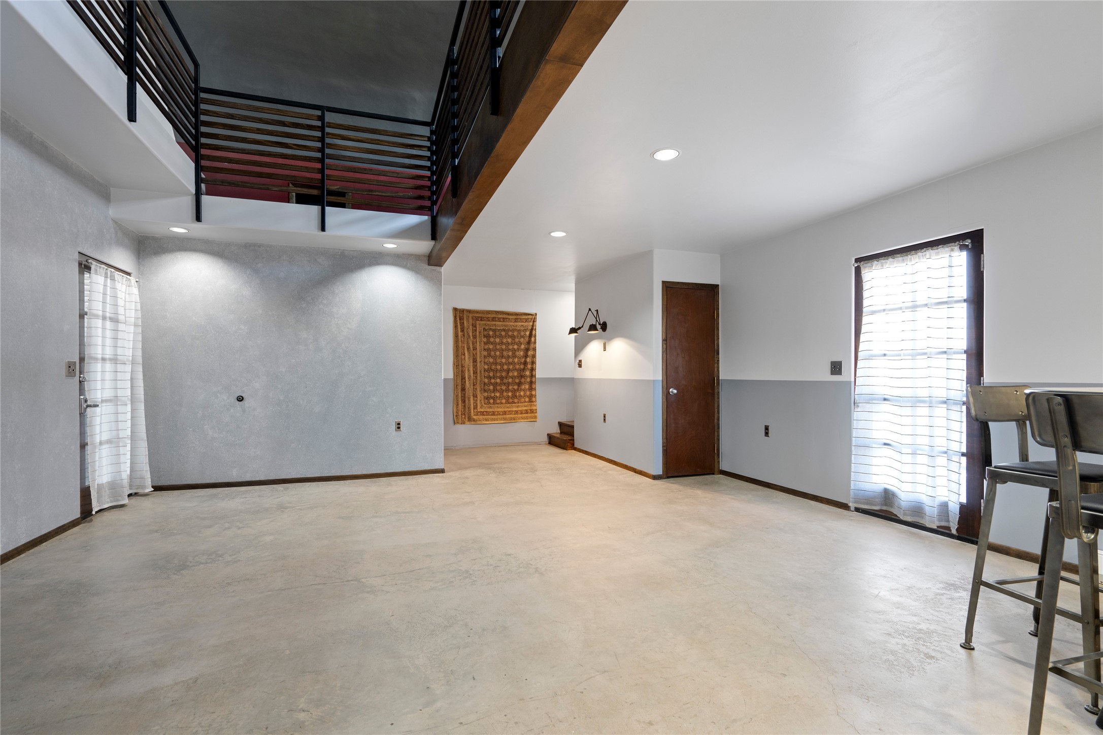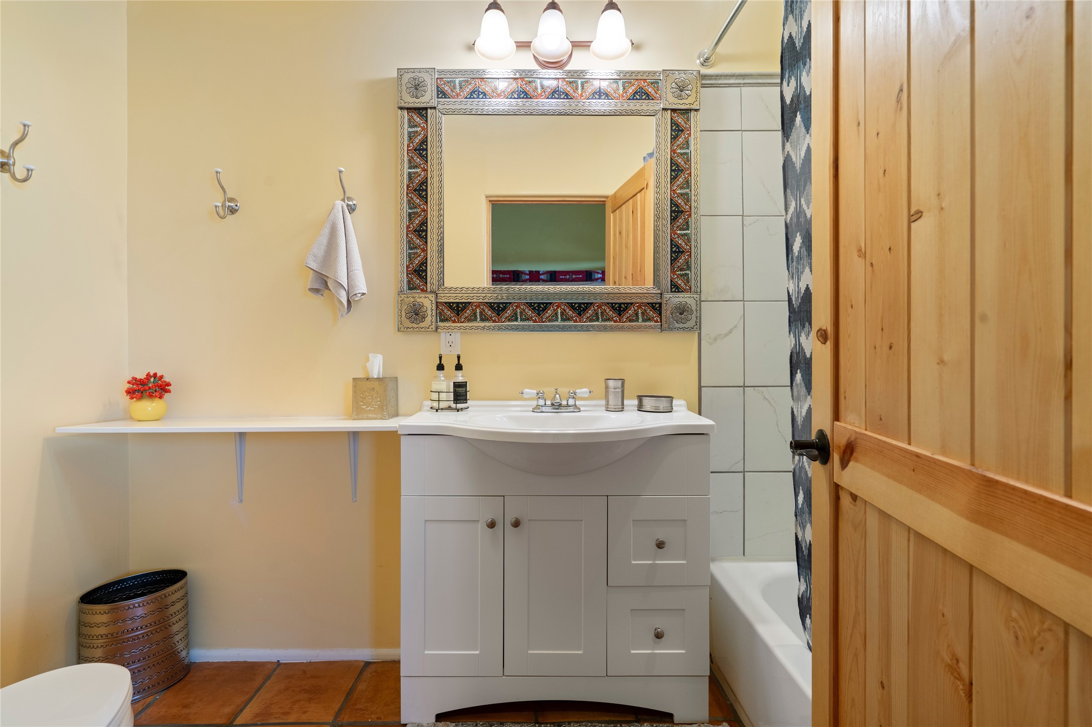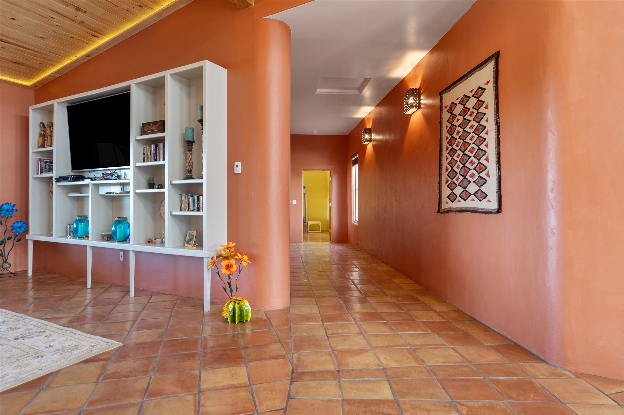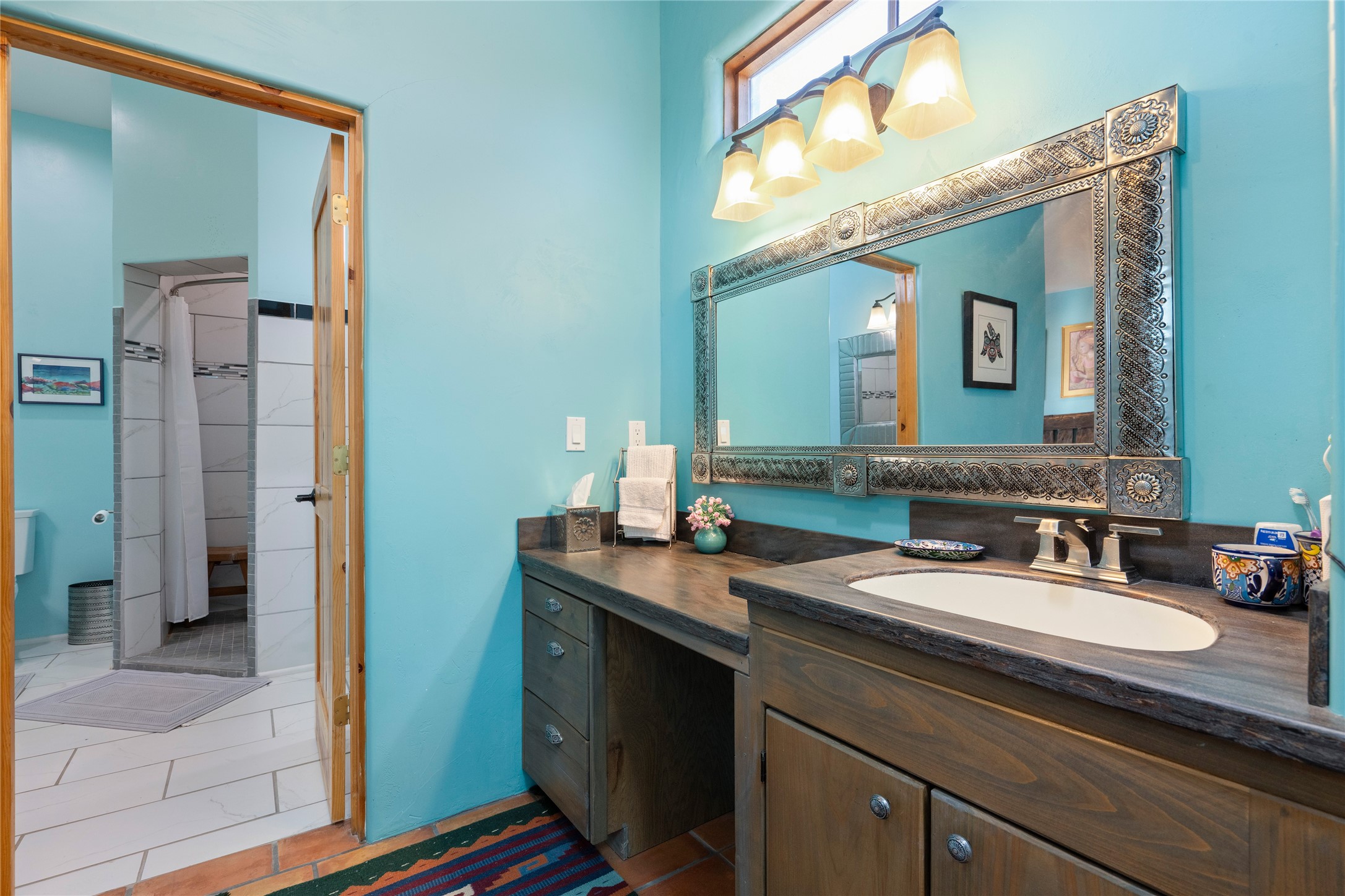 This stunning 3 bedroom, 4 bath sanctuary boasts 42 serene acres situated at the foot of the rugged Ortiz mountains with drop dead gorgeous views of the Sangre de Cristos. High ceilings and an open concept kitchen/living area accented with beam ceilings and Saltillo tiles provide the main dwelling with a cozy, yet spacious rustic elegance. High ceilings in the living and dining area flow beautifully to the expansive portal, making this an ideal home for entertaining.The tranquil primary bedroom boasts a large walk-in closet and an ensuite bathroom that features separate shower and tub. The split floor plan places the second and third bedrooms at the far end of the house creating nice separation between living areas.The quonset hut serves as two buildings in one. One portion is a guest suite, complete with bathroom, baseboard heating, wood burning stove, kitchenette, and a loft area great for rest or play (current owners found it ideal for rocking out on the drums and also hosting visitors). The other half is a massive garage, with high ceilings ideal for use as a shop or storage.Other features include a large laundry room, RV hookup, bocce court, and a mile-long walking loop around the grounds great for a leisurely stroll or an exciting dirt bike track!Your sanctuary awaits!! This stunning 3 bedroom, 4 bath property boasts 42 serene acres situated at the foot of the rugged Ortiz mountains with drop dead gorgeous views of the Sangre de Cristos. High ceilings and an open concept kitchen/living area accented with beam ceilings and Saltillo tiles provide the main dwelling with a cozy, yet spacious rustic elegance. High ceilings in the living and dining area flow beautifully to the expansive portal, making this an ideal home for entertaining.The tranquil primary bedroom boasts a large walk-in closet and an ensuite bathroom that features separate shower and tub. The split floor plan places the second and third bedrooms at the far end of the house creating nice separation between living areas.The quonset hut serves as two buildings in one. One portion is a guest suite, complete with bathroom, baseboard heating, wood burning stove, kitchenette, and a loft area great for rest or play (current owners found it ideal for rocking out on the drums and also hosting visitors). The other half is a massive garage, with high ceilings ideal for use as a shop or storage.Other features include a large laundry room, RV hookup, bocce court, and a mile-long walking loop around the grounds great for a leisurely stroll or an exciting dirt bike track!There is no well at the property. Property is priced to accommodate buyer installing a well if buyer desires.