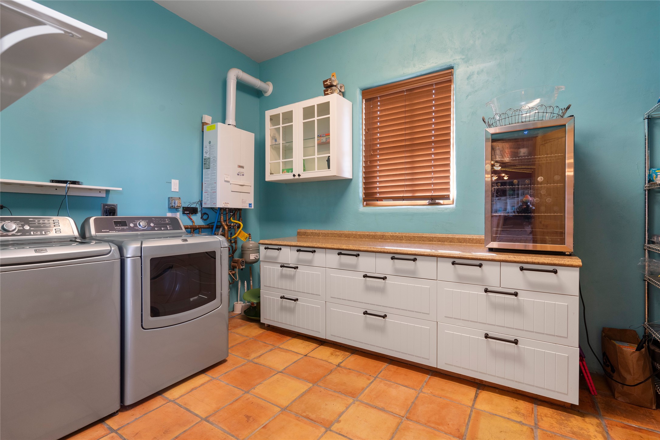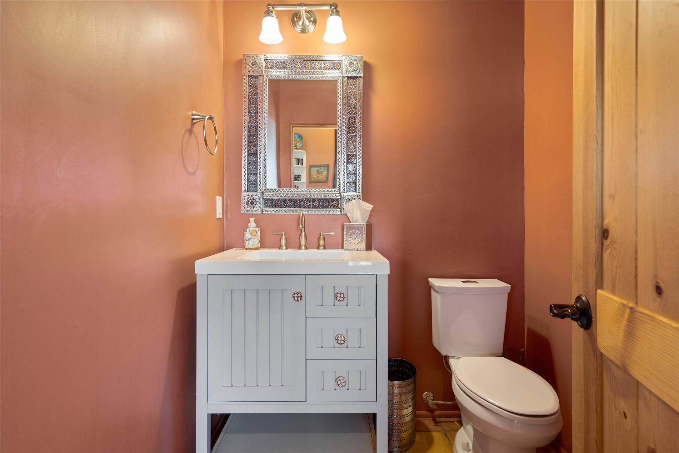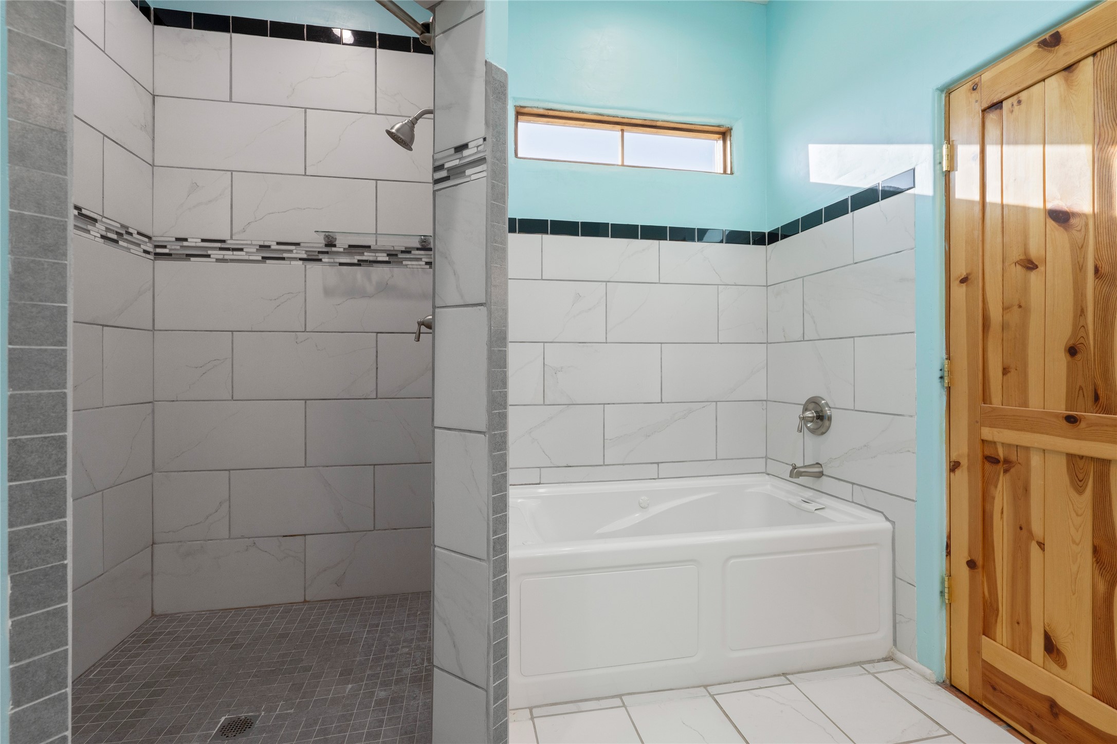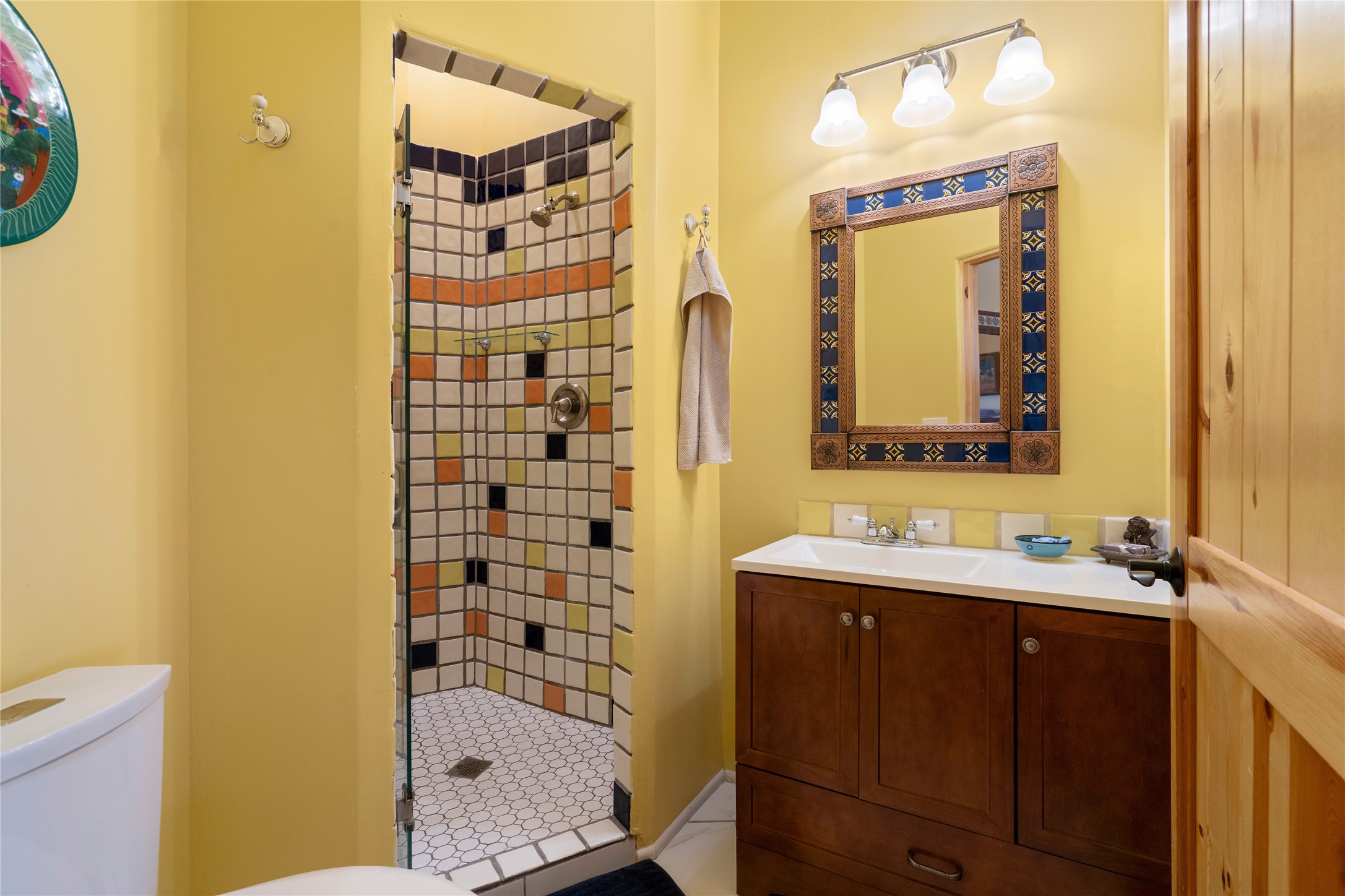 This stunning 3 bedroom, 4 bath sanctuary boasts 42 serene acres situated at the foot of the rugged Ortiz mountains with drop dead gorgeous views of the Sangre de Cristos. High ceilings and an open concept kitchen/living area accented with beam ceilings and Saltillo tiles provide the main dwelling with a cozy, yet spacious rustic elegance. High ceilings in the living and dining area flow beautifully to the expansive portal, making this an ideal home for entertaining.The tranquil primary bedroom boasts a large walk-in closet and an ensuite bathroom that features separate shower and tub. The split floor plan places the second and third bedrooms at the far end of the house creating nice separation between living areas.The quonset hut serves as two buildings in one. One portion is a guest suite, complete with bathroom, baseboard heating, wood burning stove, kitchenette, and a loft area great for rest or play (current owners found it ideal for rocking out on the drums and also hosting visitors). The other half is a massive garage, with high ceilings ideal for use as a shop or storage.Other features include a large laundry room, RV hookup, bocce court, and a mile-long walking loop around the grounds great for a leisurely stroll or an exciting dirt bike track!Your sanctuary awaits!! This stunning 3 bedroom, 4 bath property boasts 42 serene acres situated at the foot of the rugged Ortiz mountains with drop dead gorgeous views of the Sangre de Cristos. High ceilings and an open concept kitchen/living area accented with beam ceilings and Saltillo tiles provide the main dwelling with a cozy, yet spacious rustic elegance. High ceilings in the living and dining area flow beautifully to the expansive portal, making this an ideal home for entertaining.The tranquil primary bedroom boasts a large walk-in closet and an ensuite bathroom that features separate shower and tub. The split floor plan places the second and third bedrooms at the far end of the house creating nice separation between living areas.The quonset hut serves as two buildings in one. One portion is a guest suite, complete with bathroom, baseboard heating, wood burning stove, kitchenette, and a loft area great for rest or play (current owners found it ideal for rocking out on the drums and also hosting visitors). The other half is a massive garage, with high ceilings ideal for use as a shop or storage.Other features include a large laundry room, RV hookup, bocce court, and a mile-long walking loop around the grounds great for a leisurely stroll or an exciting dirt bike track!There is no well at the property. Property is priced to accommodate buyer installing a well if buyer desires.