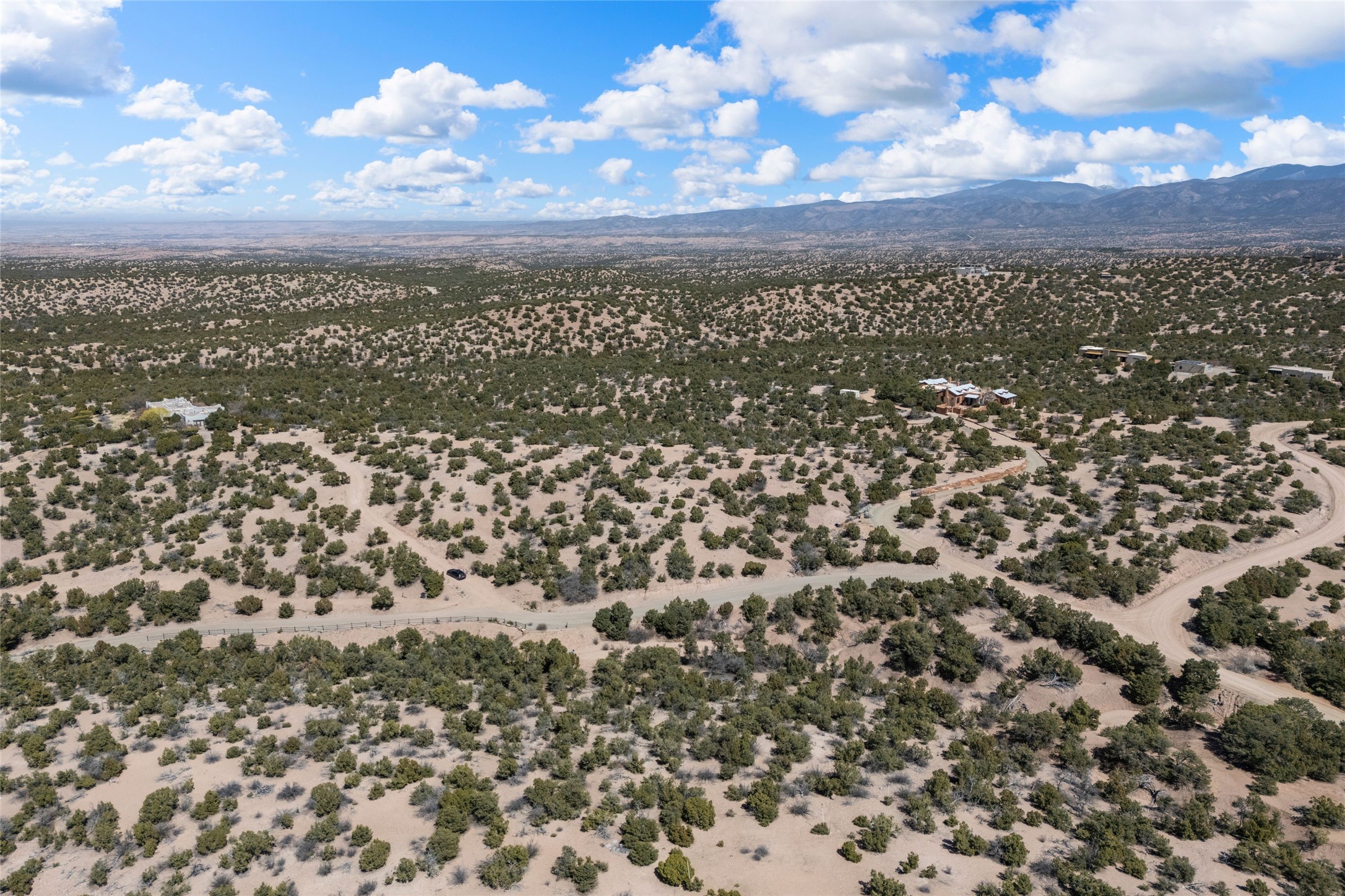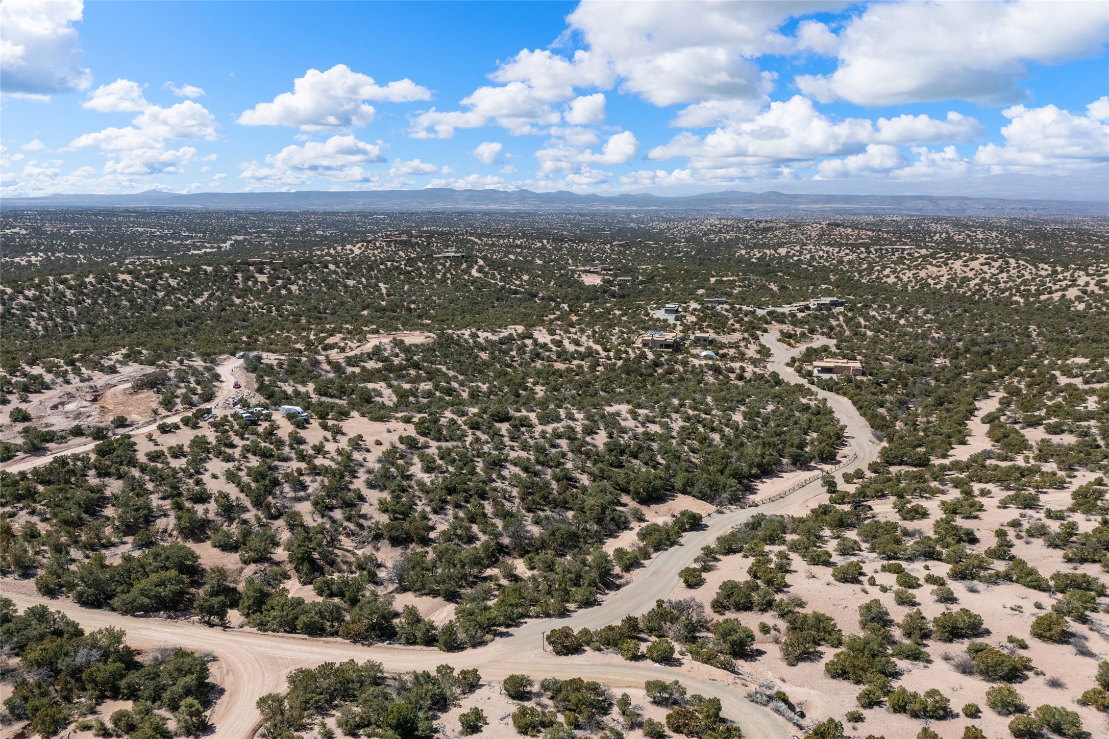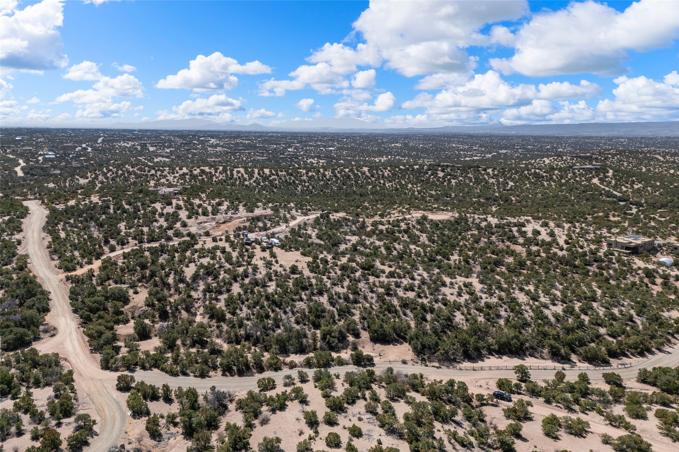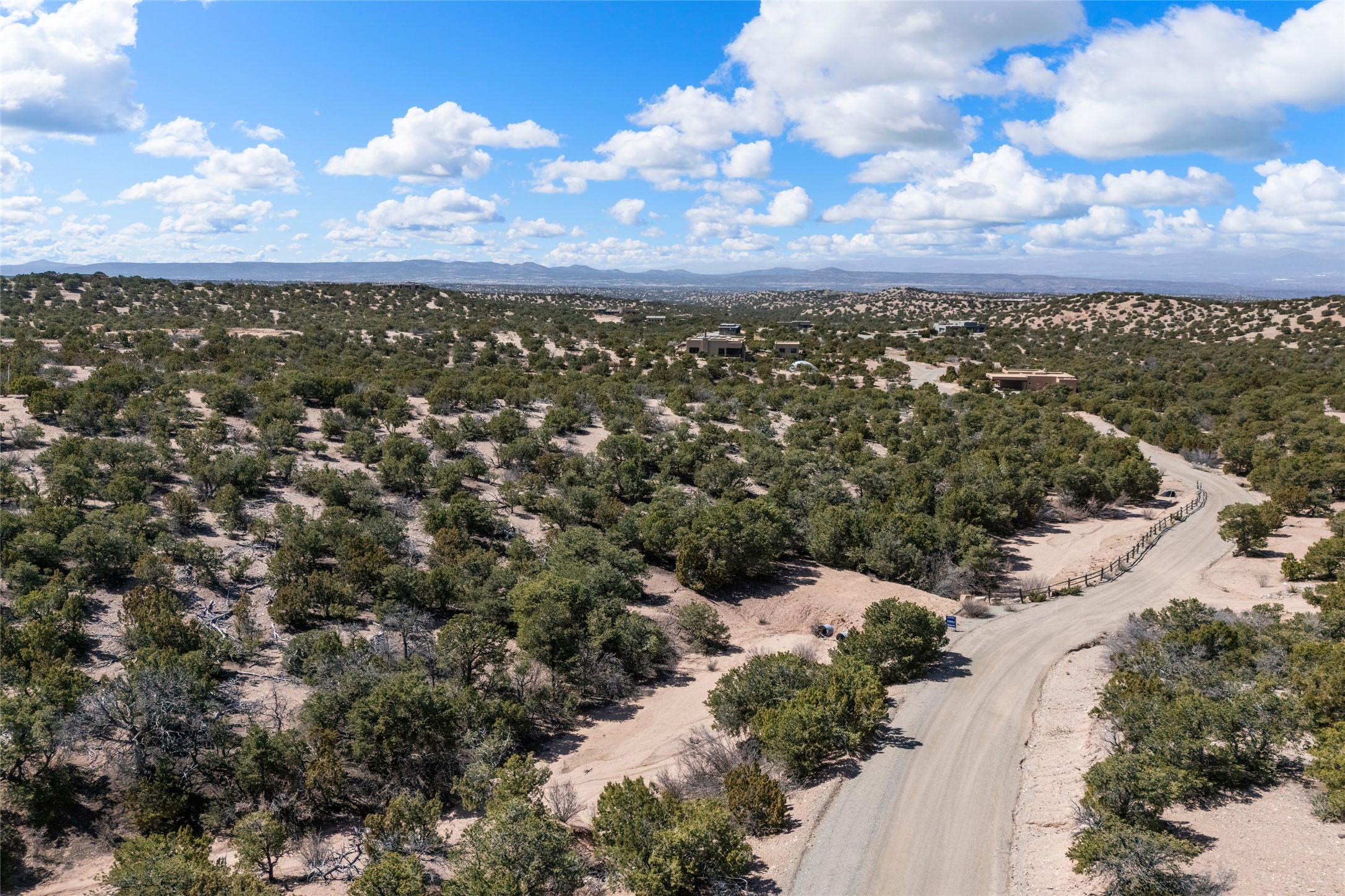 Enjoy the privacy and views from this 2 1/2 acre wooded lot which is located in the western portion of the Tano Road area. The lot is 20 minutes driving time to the Plaza. This land has been held by the current owners for over 20 years and now, it is time for this special site to fulfill a new owner's dream. One can build a contemporary or Santa Fe style home. This area is not on a thru road and only accesses the private homeowners. One can enjoy gorgeous sunsets toward the western Jemez mountains, stunning moon rises over the Sangre de Cristos mountain range, and the stars at night in a precious dark sky. The Estrellas de Tano Road neighborhood is blessed with all custom built homes and many long time residents. There is an active road maintenance association for the private road. There is not an HOA. Well and transformer are required. Horses are not allowed. A walking path to the building site has been flagged.
