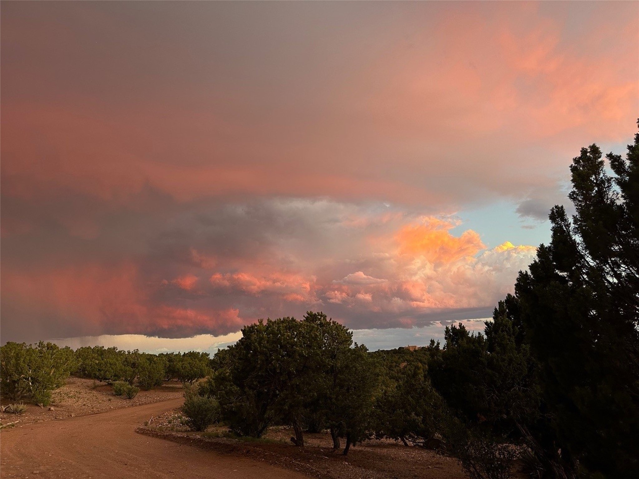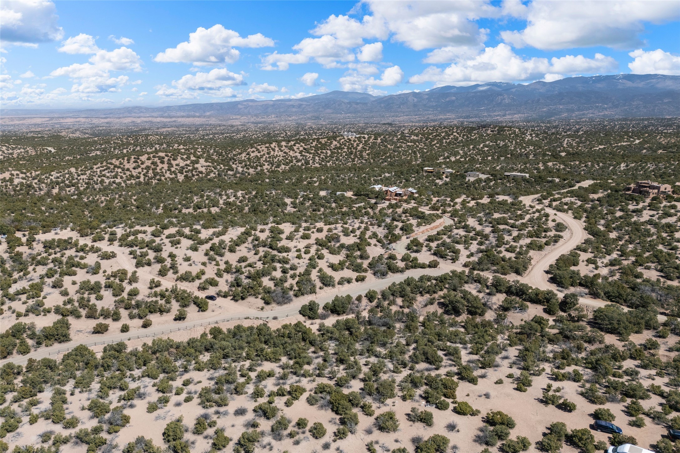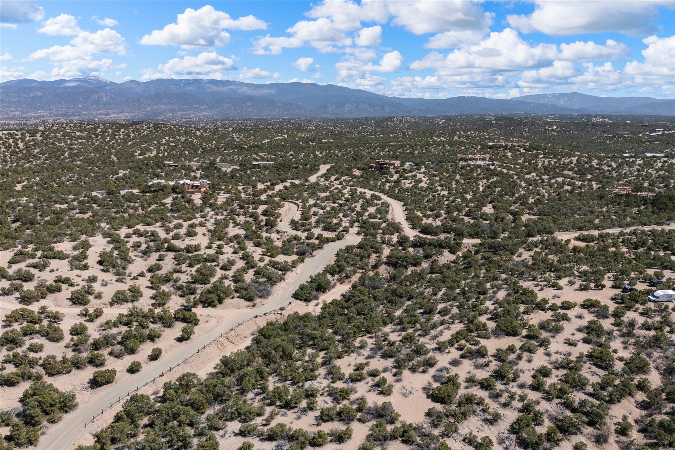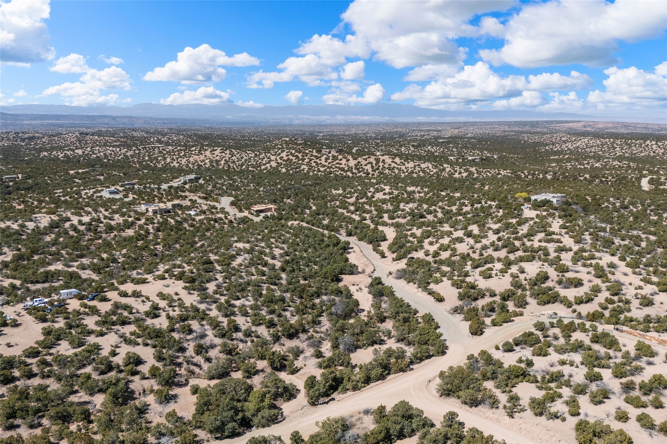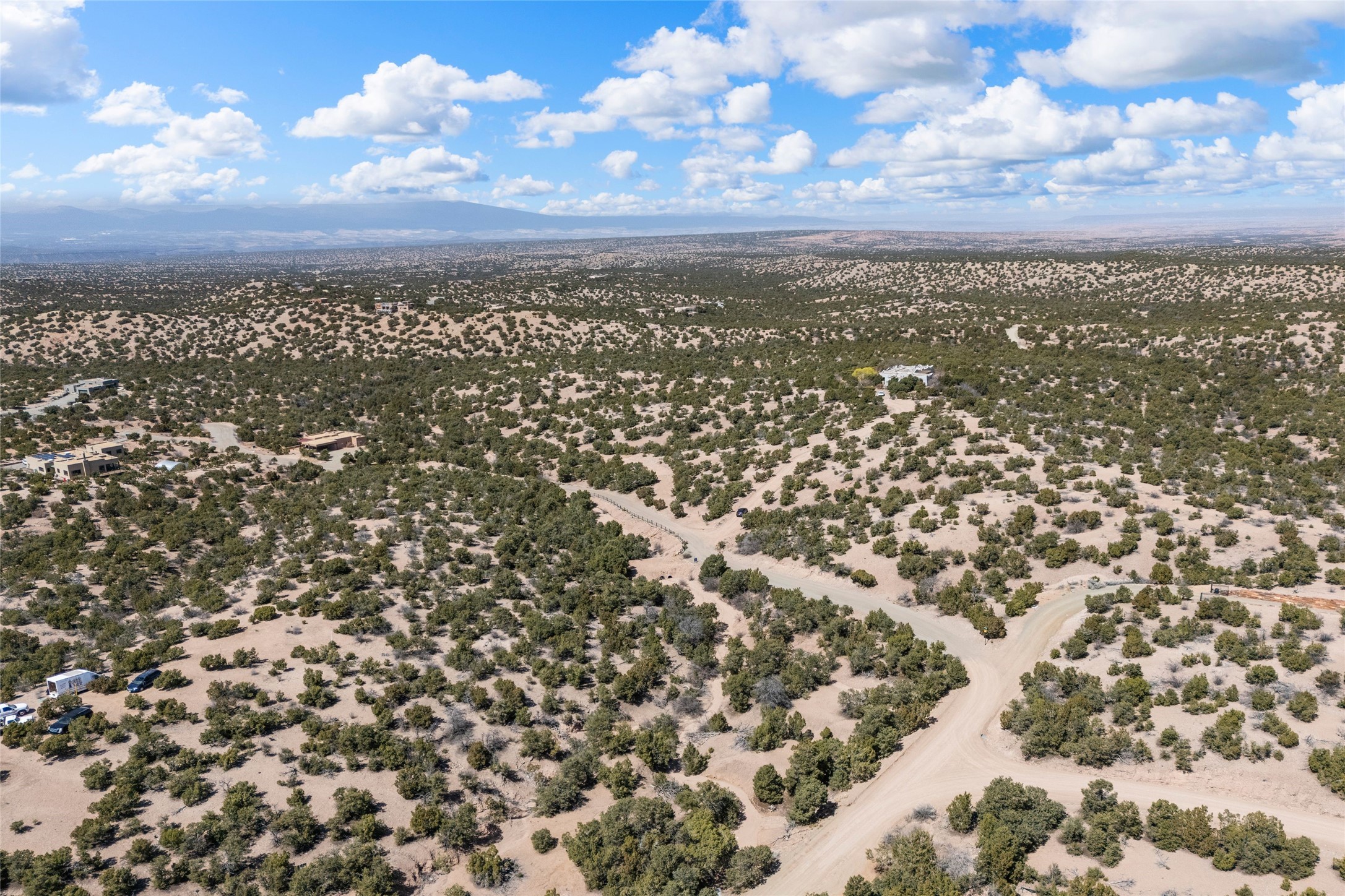 Enjoy the privacy and views from this 2 1/2 acre wooded lot which is located in the western portion of the Tano Road area. The lot is 20 minutes driving time to the Plaza. This land has been held by the current owners for over 20 years and now, it is time for this special site to fulfill a new owner's dream. One can build a contemporary or Santa Fe style home. This area is not on a thru road and only accesses the private homeowners. One can enjoy gorgeous sunsets toward the western Jemez mountains, stunning moon rises over the Sangre de Cristos mountain range, and the stars at night in a precious dark sky. The Estrellas de Tano Road neighborhood is blessed with all custom built homes and many long time residents. There is an active road maintenance association for the private road. There is not an HOA. Well and transformer are required. Horses are not allowed. A walking path to the building site has been flagged.