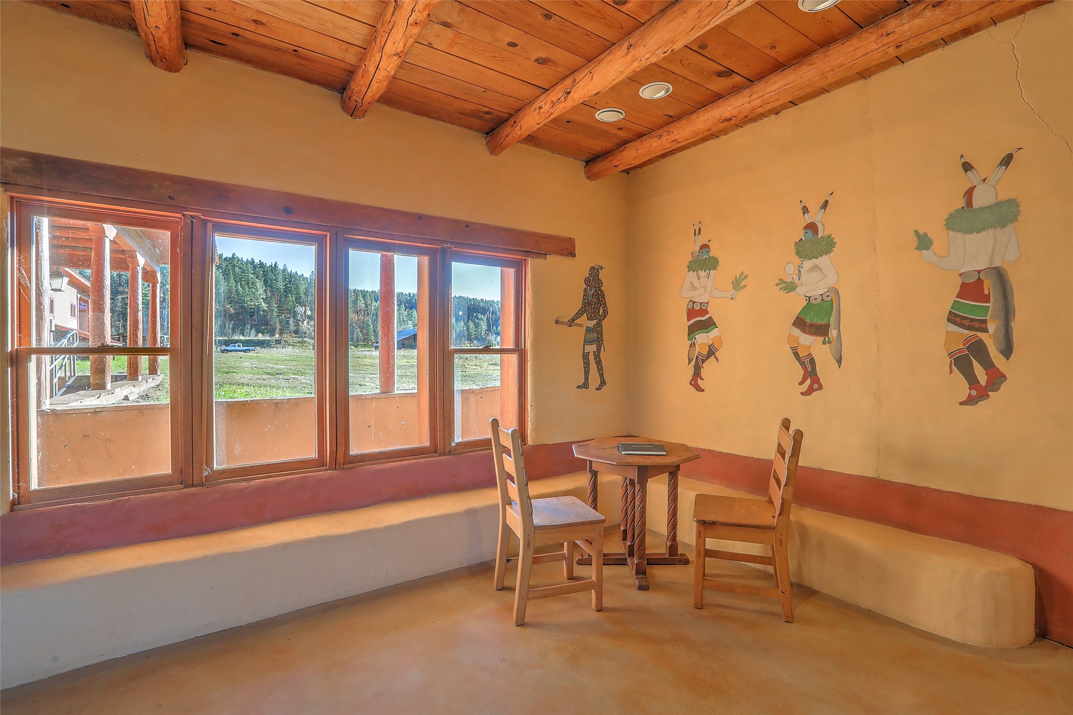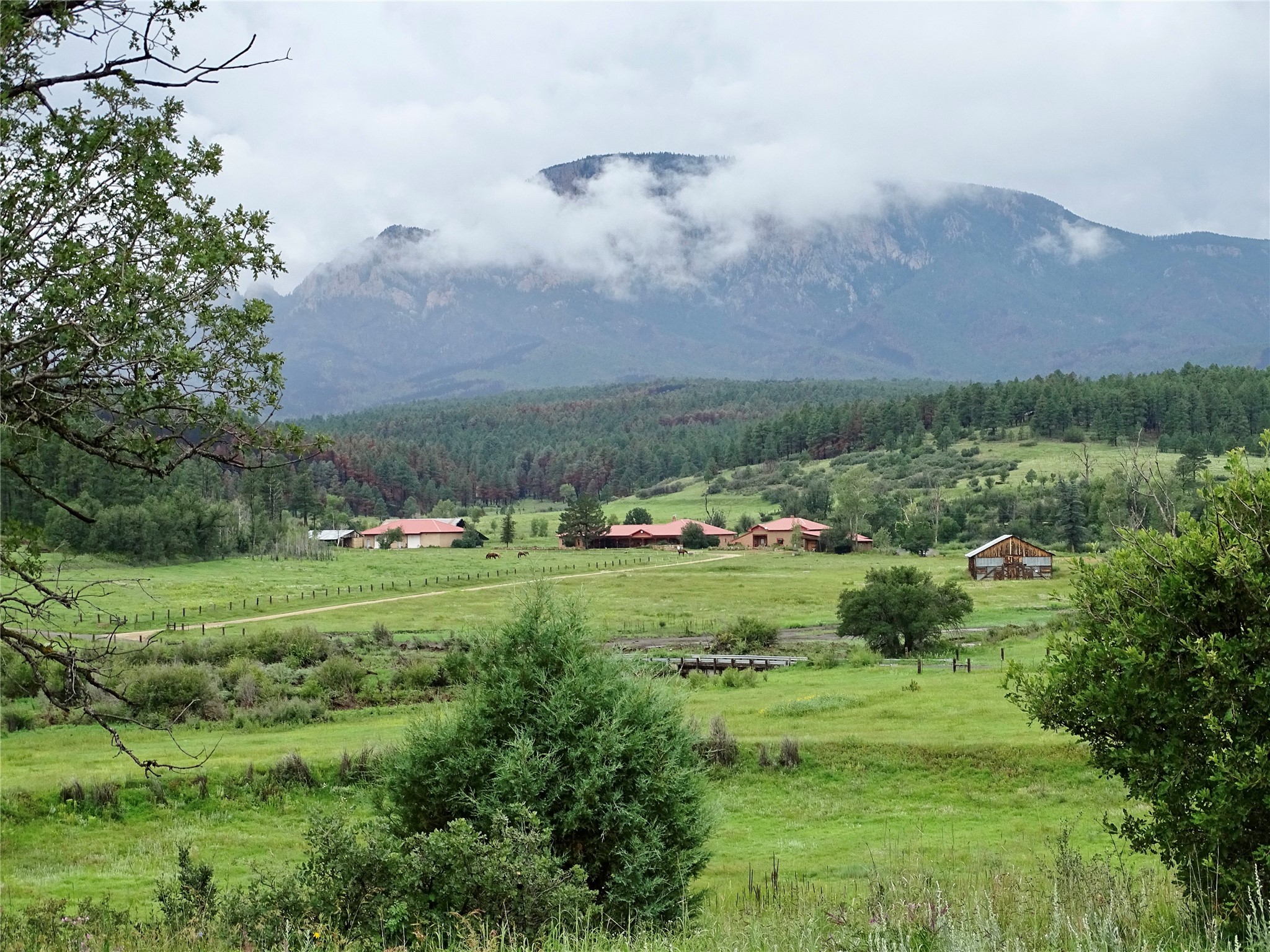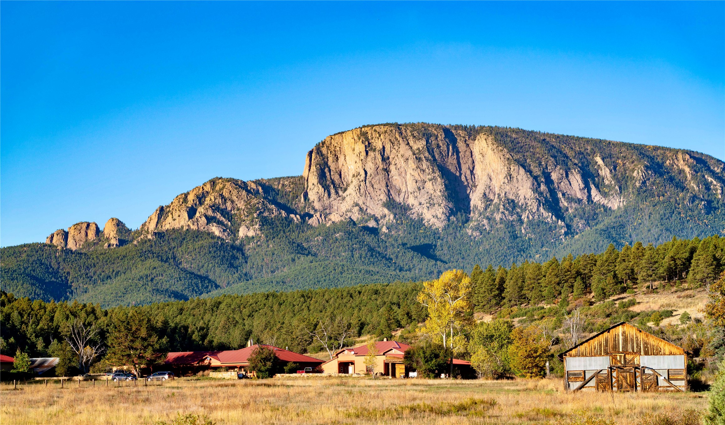 Rancho San Ignacio is a historic jewel in the heart of Northern New Mexico. The property consists of 3292 +/- deeded acres situated at the base of the iconic Hermit's Peak. The adobe hacienda compound frames a spectacular backdrop. The Sapello River runs for 1.7 miles through the property, providing habitat for brown trout. An acequia supplies irrigation for 103 acres of fertile farmland. The Rito Colorado and other creeks and springs supply water for the abundant wildlife, including elk, mule deer, and black bears. The property is protected by a conservation easement with The Nature Conservancy.Originally purchased by Richard Pritzlaff in 1935, the ranch was the headquarters of Mr. Pritzlaff's world-renowned Arabian horse breeding program and his extensive art collection. The ranch was often a gathering place for area socialites and artists, including Georgia O'Keefe. The walls of the 1300 square-foot bunkhouse are adorned with spectacular murals painted in the 1940s by the famous native American artist Ma Pe Wi and meticulously restored in 2008. The compound consists of the 4400 square-foot hacienda, 1700 square-foot guest house, and the mural-adorned bunkhouse, each over 100 years old. The improvements were extensively renovated in 2005. There's also a large shop/garage and carport. Three old wooden barns add charm to the setting under the dramatic backdrop of Hermit's Peak.