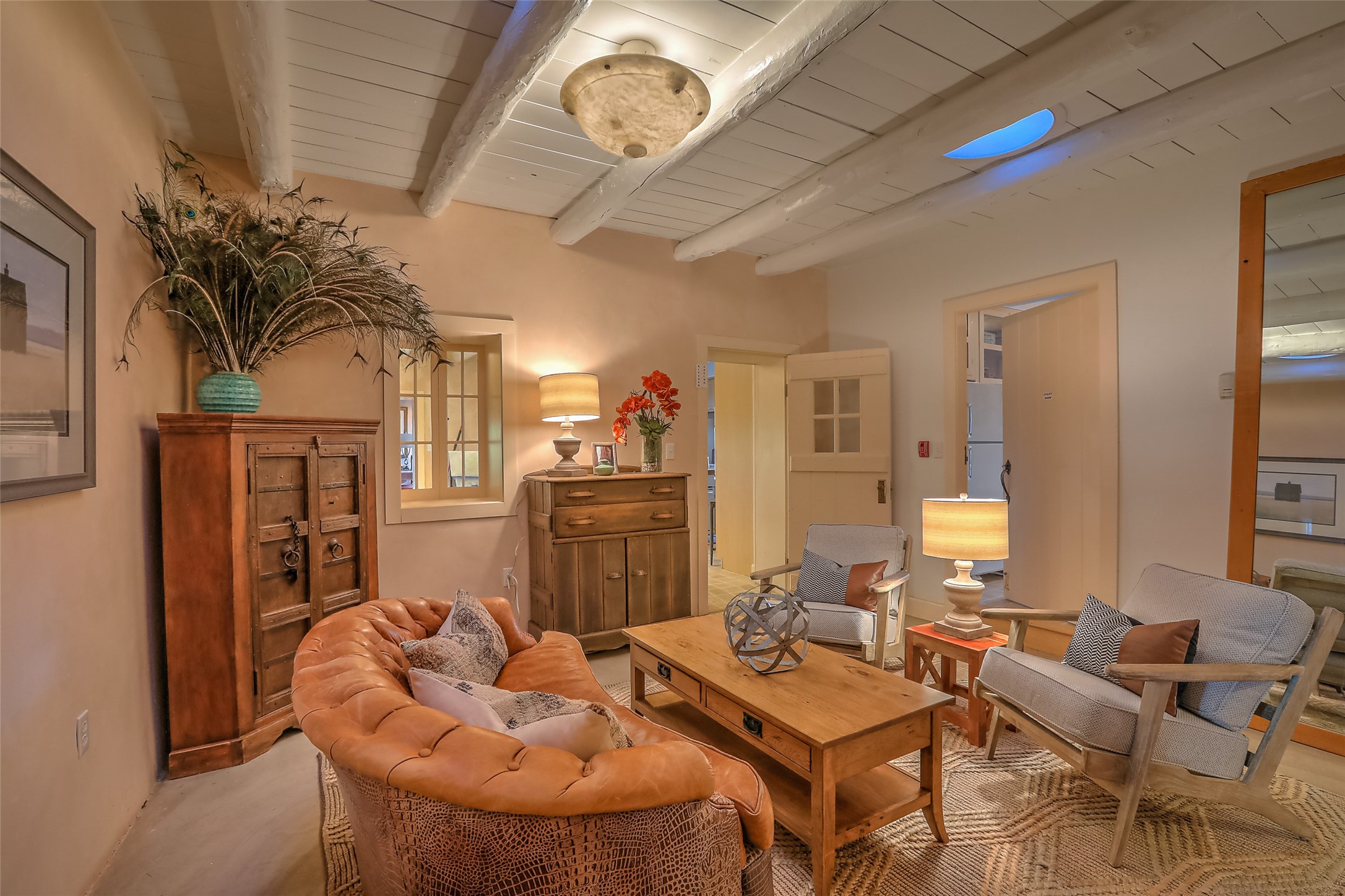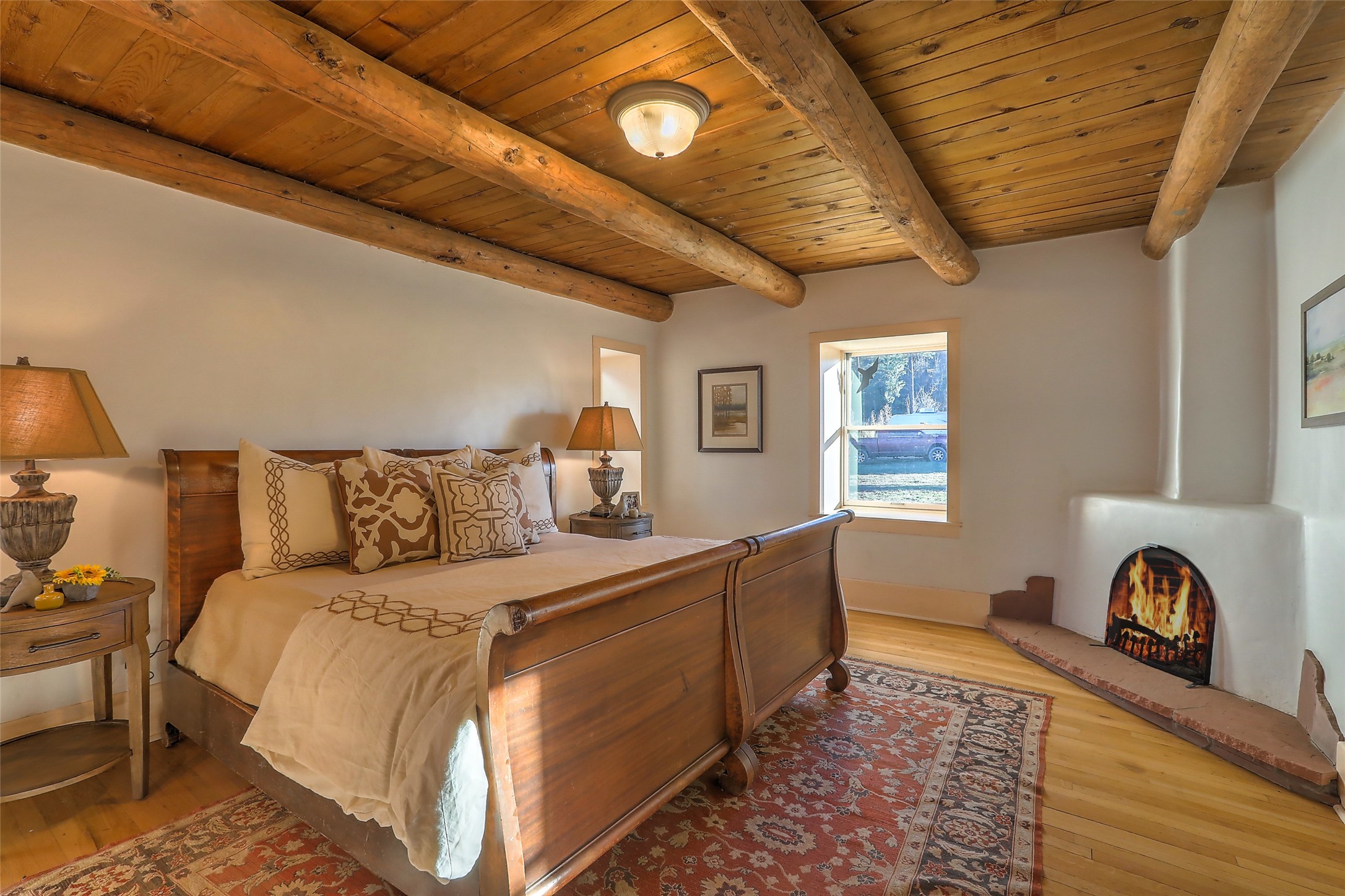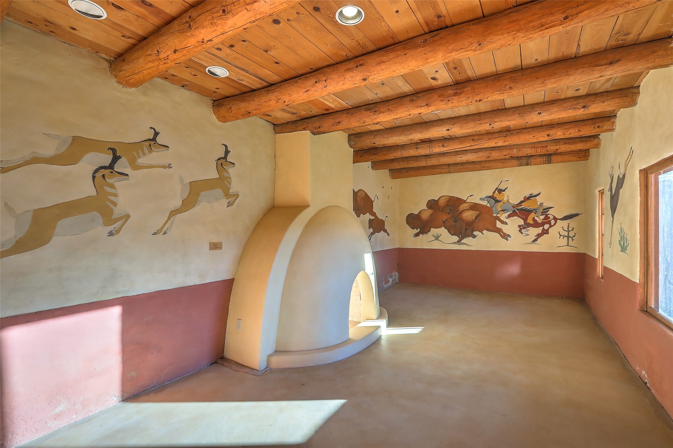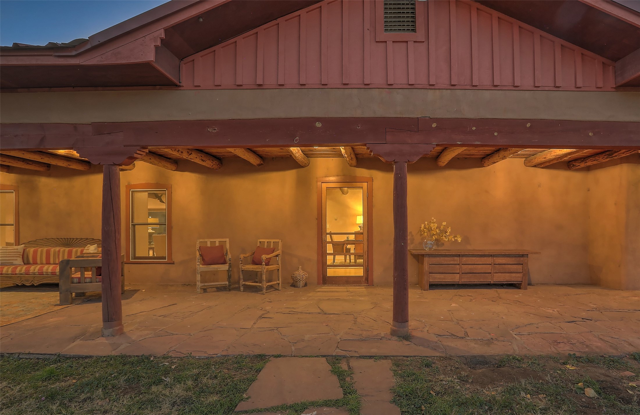 Rancho San Ignacio is a historic jewel in the heart of Northern New Mexico. The property consists of 3292 +/- deeded acres situated at the base of the iconic Hermit's Peak. The adobe hacienda compound frames a spectacular backdrop. The Sapello River runs for 1.7 miles through the property, providing habitat for brown trout. An acequia supplies irrigation for 103 acres of fertile farmland. The Rito Colorado and other creeks and springs supply water for the abundant wildlife, including elk, mule deer, and black bears. The property is protected by a conservation easement with The Nature Conservancy.Originally purchased by Richard Pritzlaff in 1935, the ranch was the headquarters of Mr. Pritzlaff's world-renowned Arabian horse breeding program and his extensive art collection. The ranch was often a gathering place for area socialites and artists, including Georgia O'Keefe. The walls of the 1300 square-foot bunkhouse are adorned with spectacular murals painted in the 1940s by the famous native American artist Ma Pe Wi and meticulously restored in 2008. The compound consists of the 4400 square-foot hacienda, 1700 square-foot guest house, and the mural-adorned bunkhouse, each over 100 years old. The improvements were extensively renovated in 2005. There's also a large shop/garage and carport. Three old wooden barns add charm to the setting under the dramatic backdrop of Hermit's Peak.