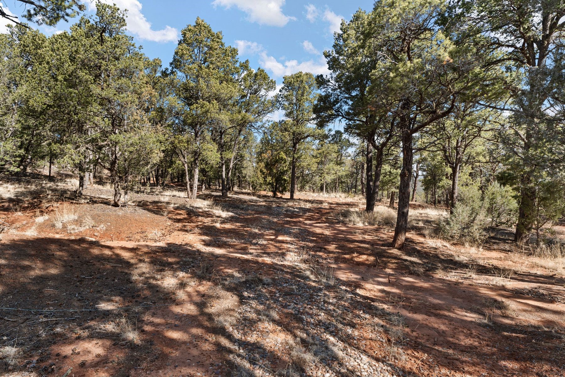 Located at the base of Glorieta Mesa with stunning views of the Pecos Valley, this 6.93-acre lot is ready for your dream home and horses! Level terrain makes for an optimal building site surrounded by majestic Ponderosa pines, fir, and pion trees. This serene property borders national forest land, offering direct access to endless outdoor adventures. A primitive driveway is already in place and an existing septic system, evaluated in 2021, adds to the property's readiness for development. Just 25 minutes from Santa Fe this lot offers the perfect blend of privacy and convenience for a new homeowner!