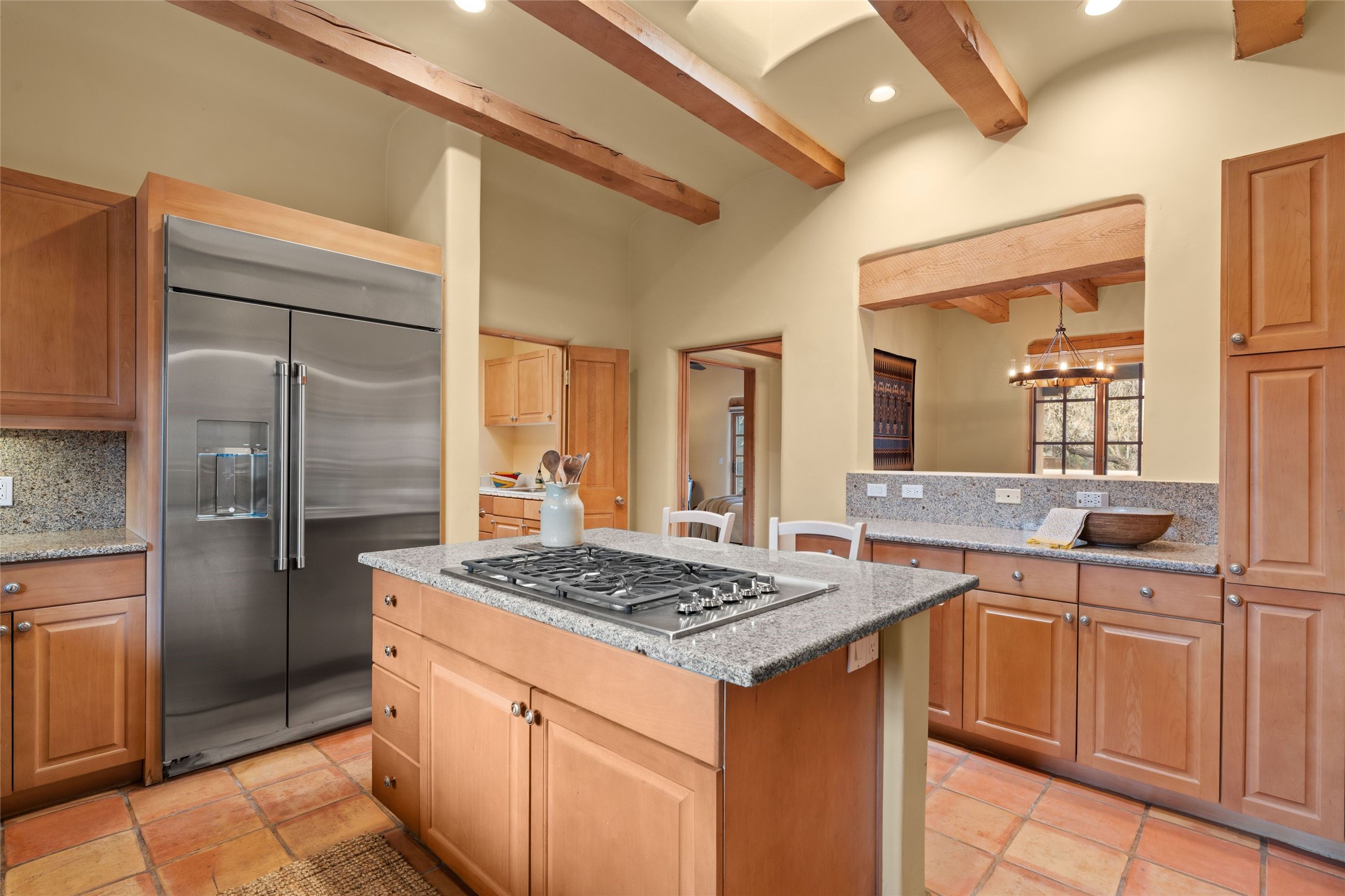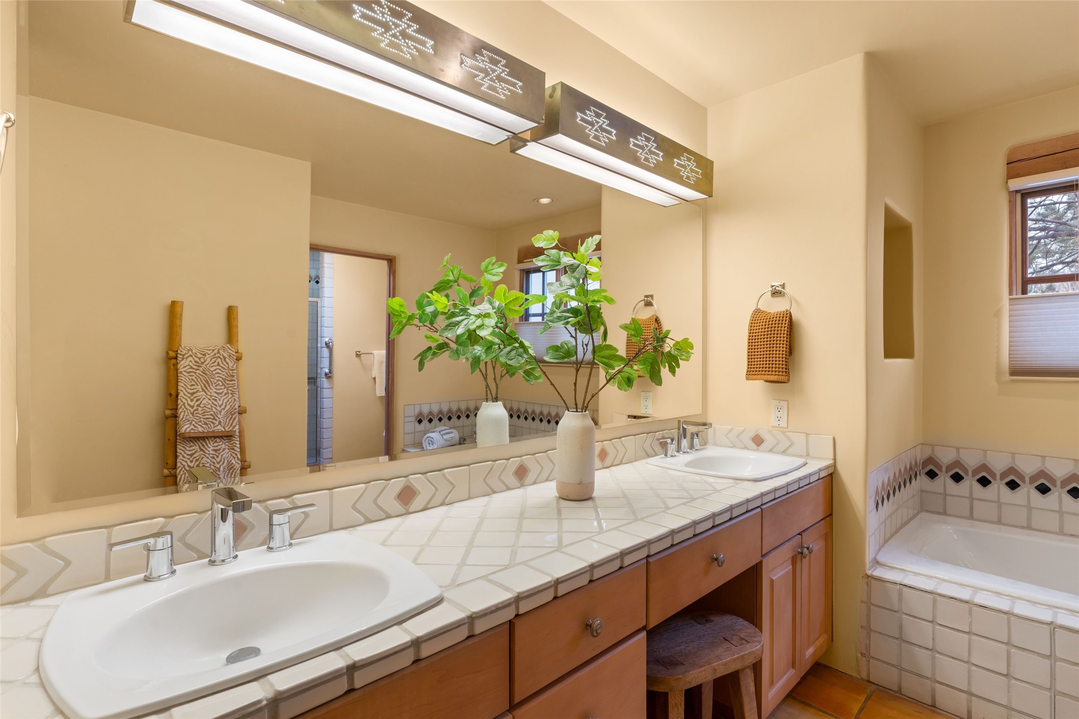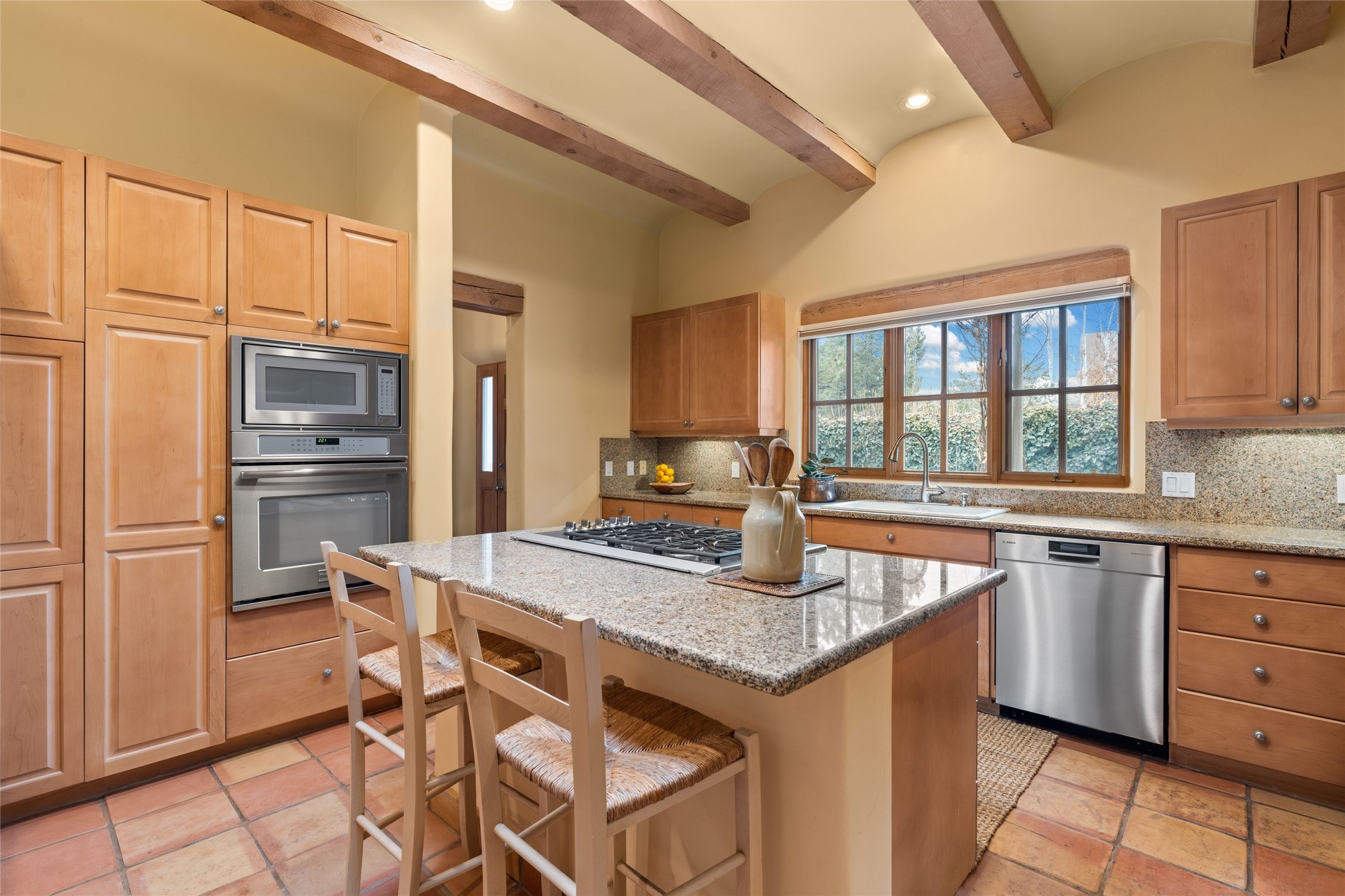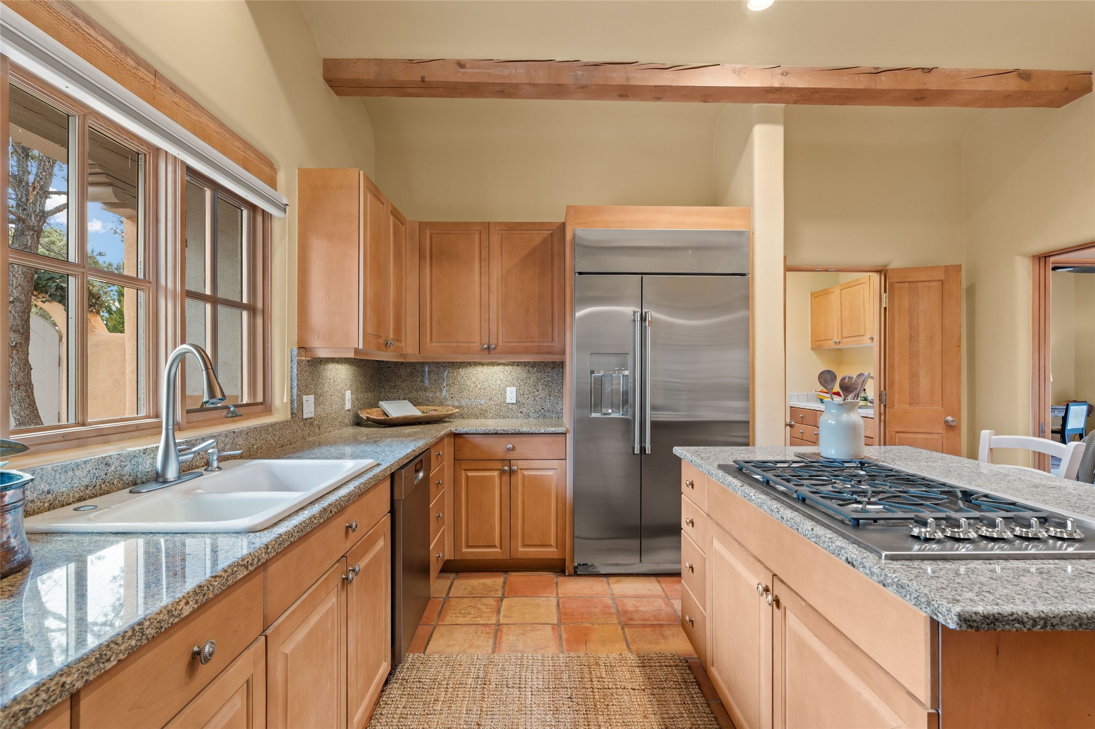 A rare opportunity to own a 3-bedroom, 3 bathroom home in Quail Run that features no steps, an expansive and private portal that opens to green space. The single level floor plan is spacious and laid out ideally, with three bedroom suites flanked around a central living, dining and kitchen area, which all open to the secluded outdoor spaces. The primary suite is ample in its scale with two vanities, a large bathtub and shower. The updated kitchen features modern high end appliances and granite countertops. This blends nicely with the classic Puebloan touches - saltillo tile, wooden vigas and mexican-style bath tile. The unit is complete with a two-car garage and laundry room. For someone looking for a low-stress, charming and well designed home, look no further. The Quail Run HOA maintains the exterior of the structure, and ownership of the property includes access to the abundant Quail Run resort amenities - the nine-hole golf course, fitness and pool center, tennis courts, and restaurant.