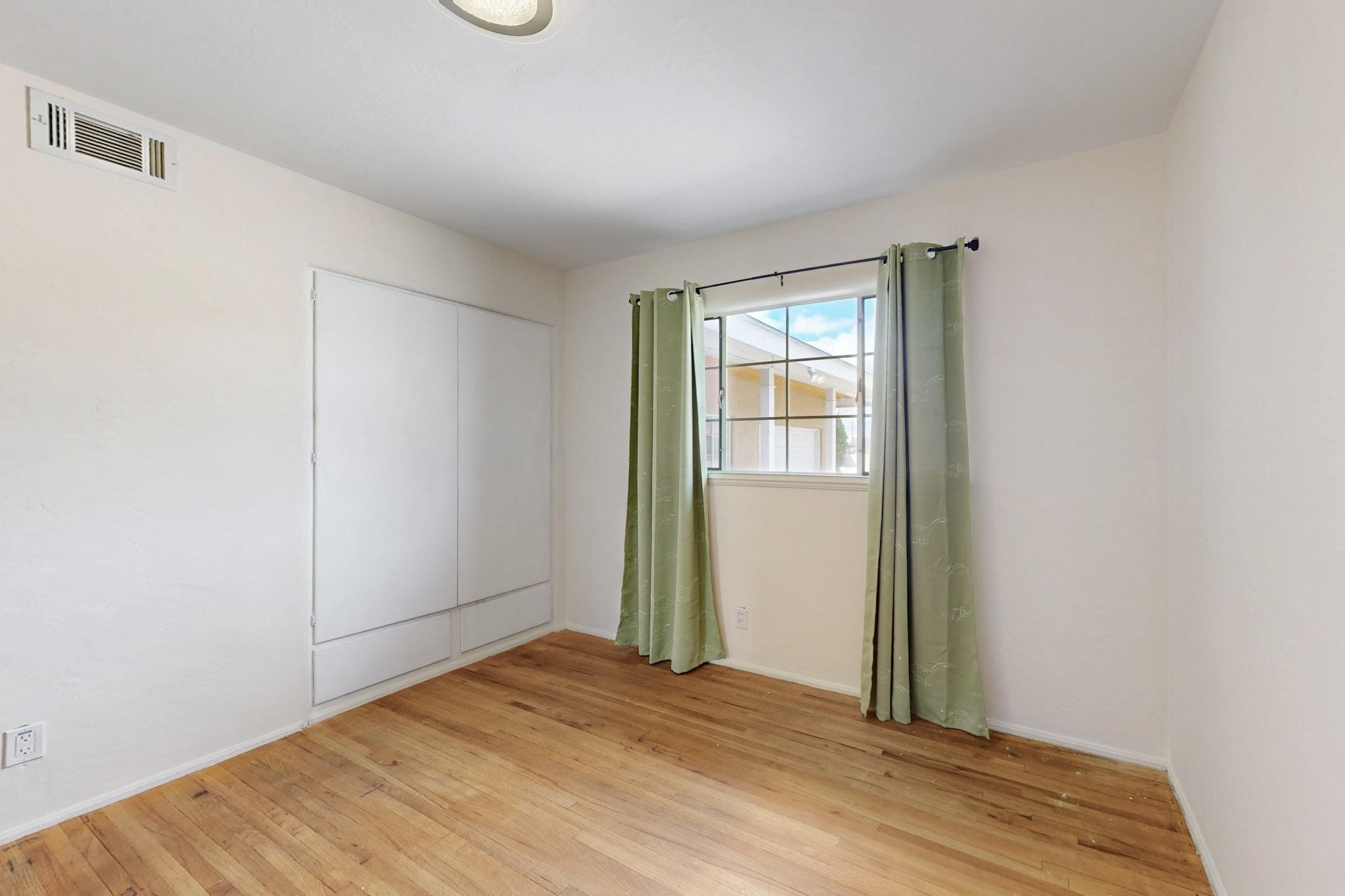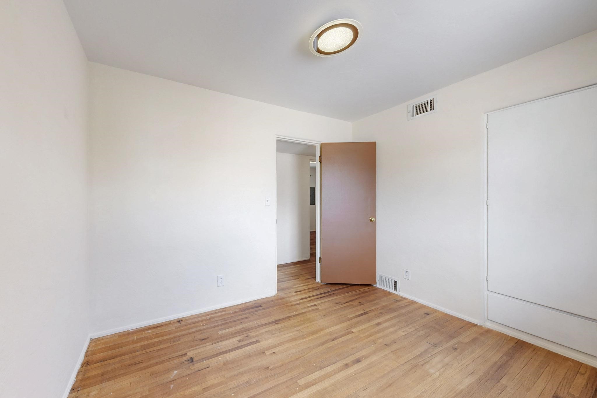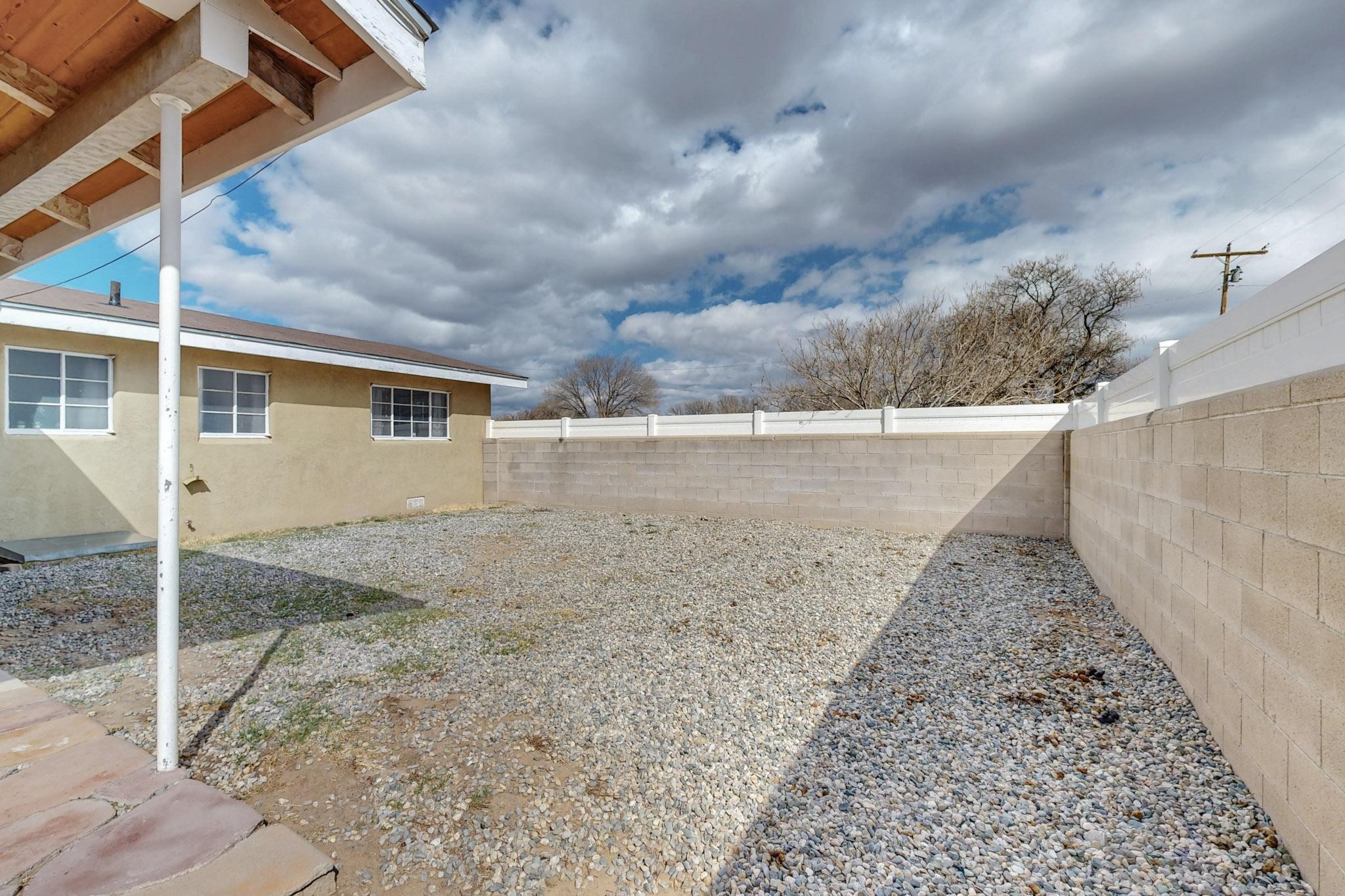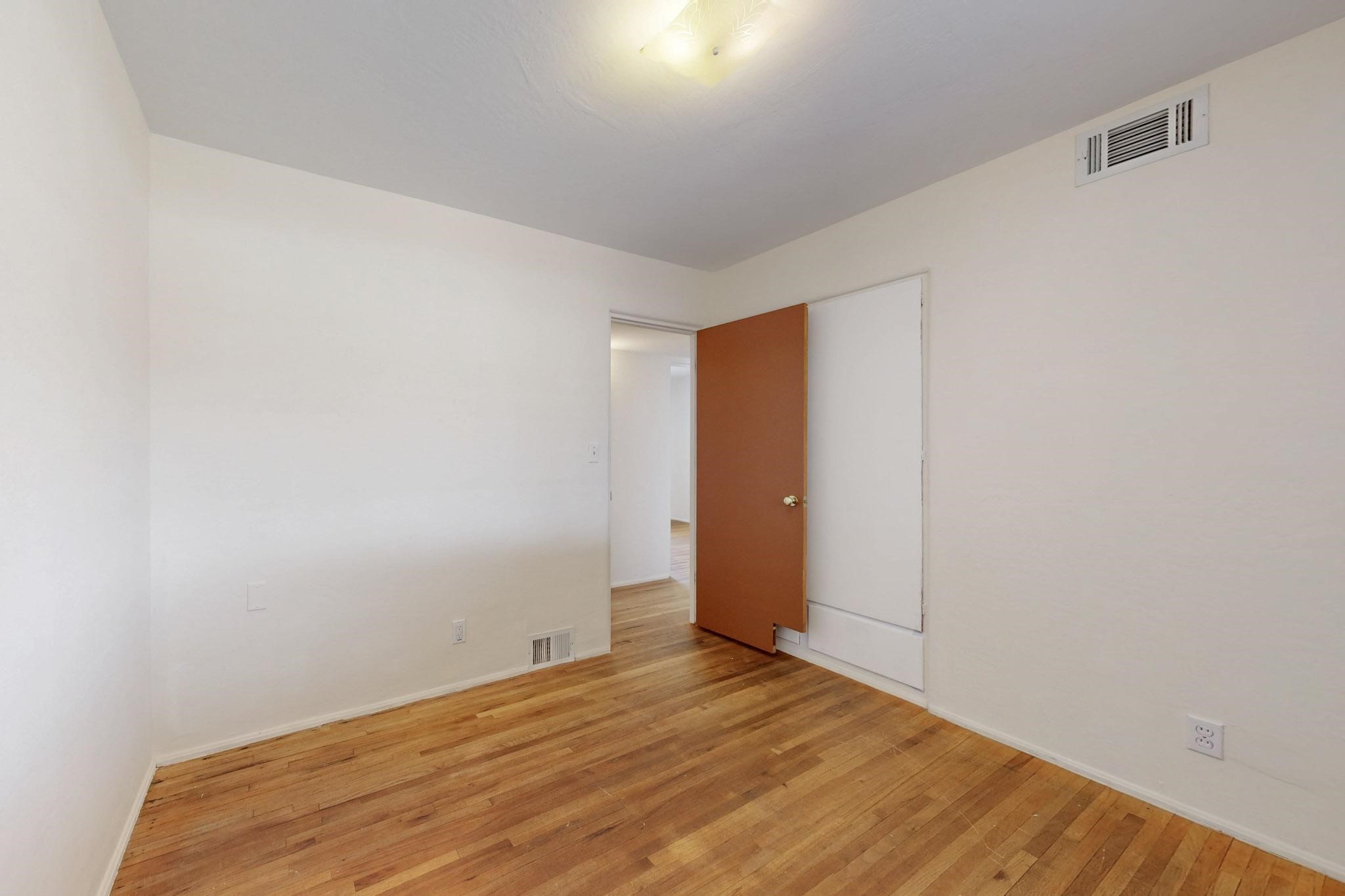A three bedroom, two bath home and much more is now available to purchase. Entering the home through the front door, protected by a covered porch, one is welcomed by a hall leading to the 3 back bedrooms and two baths. The bedrooms are sizable, two bedrooms share one bath, but the primary bedroom is private and quite large, with a private full bath. Heading back to the front door, turning left, is a brightly lit living room /dining room area. If light does not suit you, close the drapes and enjoy a day of less light. The cozy brick fireplace is wood fired. Looking back, is the bright, well equipped kitchen, with stainless steel appliances and with adequate kitchen space to prepare all those scrumptious family meals. There is enough space for a small breakfast nook. Behind the kitchen is the laundry room, equipped with a washer and dryer. Then there is the one car garage with a garage door opener and side table for special projects..One would think this is definitely a lot of space, when considering the price of the home, but there is so much more. Walking back to the living room, down a step, is a large bonus, family room, with a brick gas fired fireplace, with bancos, (built in sitting space) on each side of the massive fireplace. This room opens up to a side covered flagstone porch/patio, with a wood fired, outside fire place, along with a quite large, enclosed back and side yard. There is still so much land that encompasses the home, that includes a side yard with a storage unit, and front driveway, from street to the garage. An amazing home that still has more to offer, like wood flooring, sets on a large, corner city lot, central refrigerated air unit, access to shopping and dining, and is minutes away from Los Alamos, Santa Fe, Taos, and Abiquiu. Don't miss out on this home, it is priced right, centrally located.