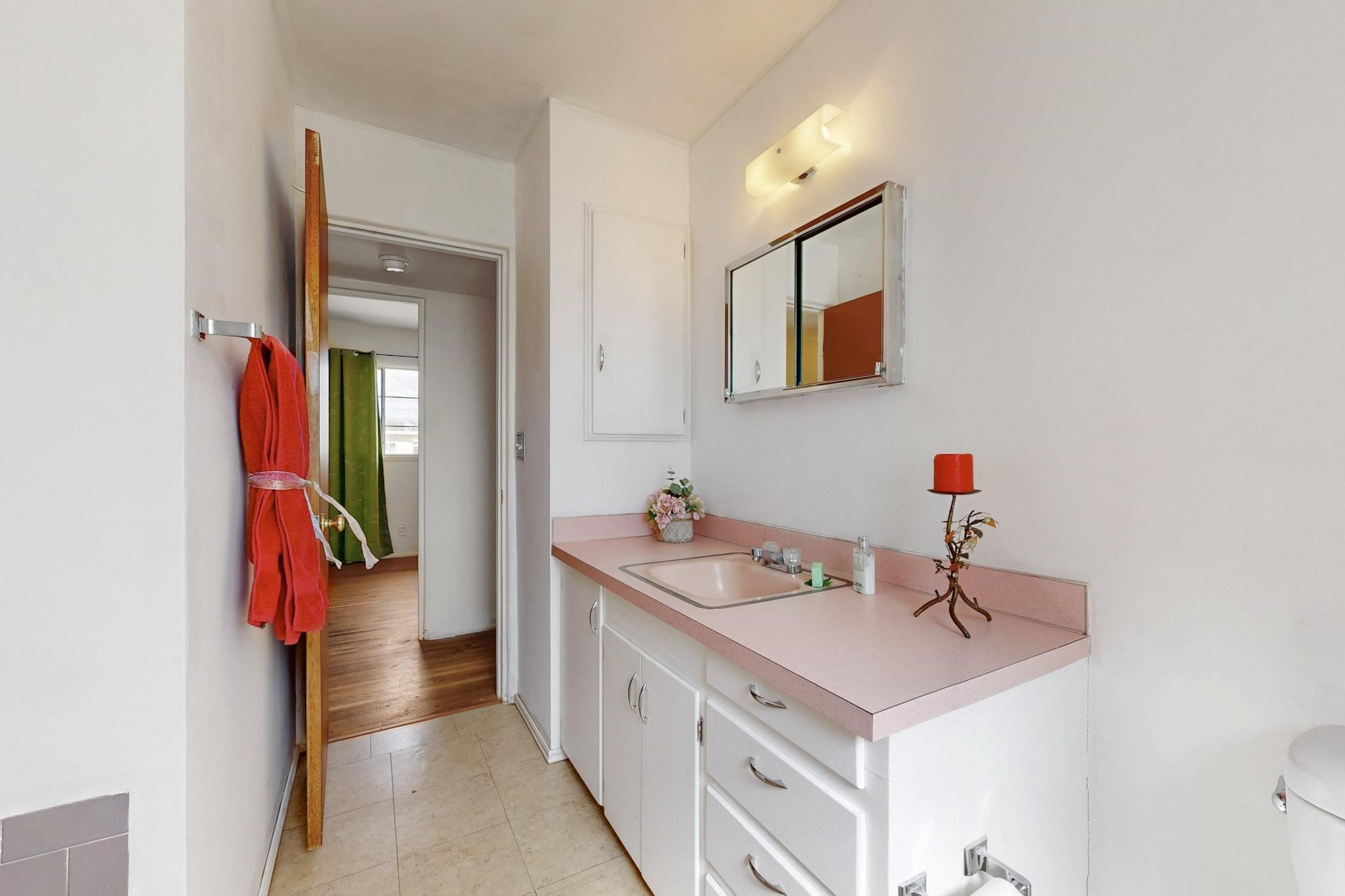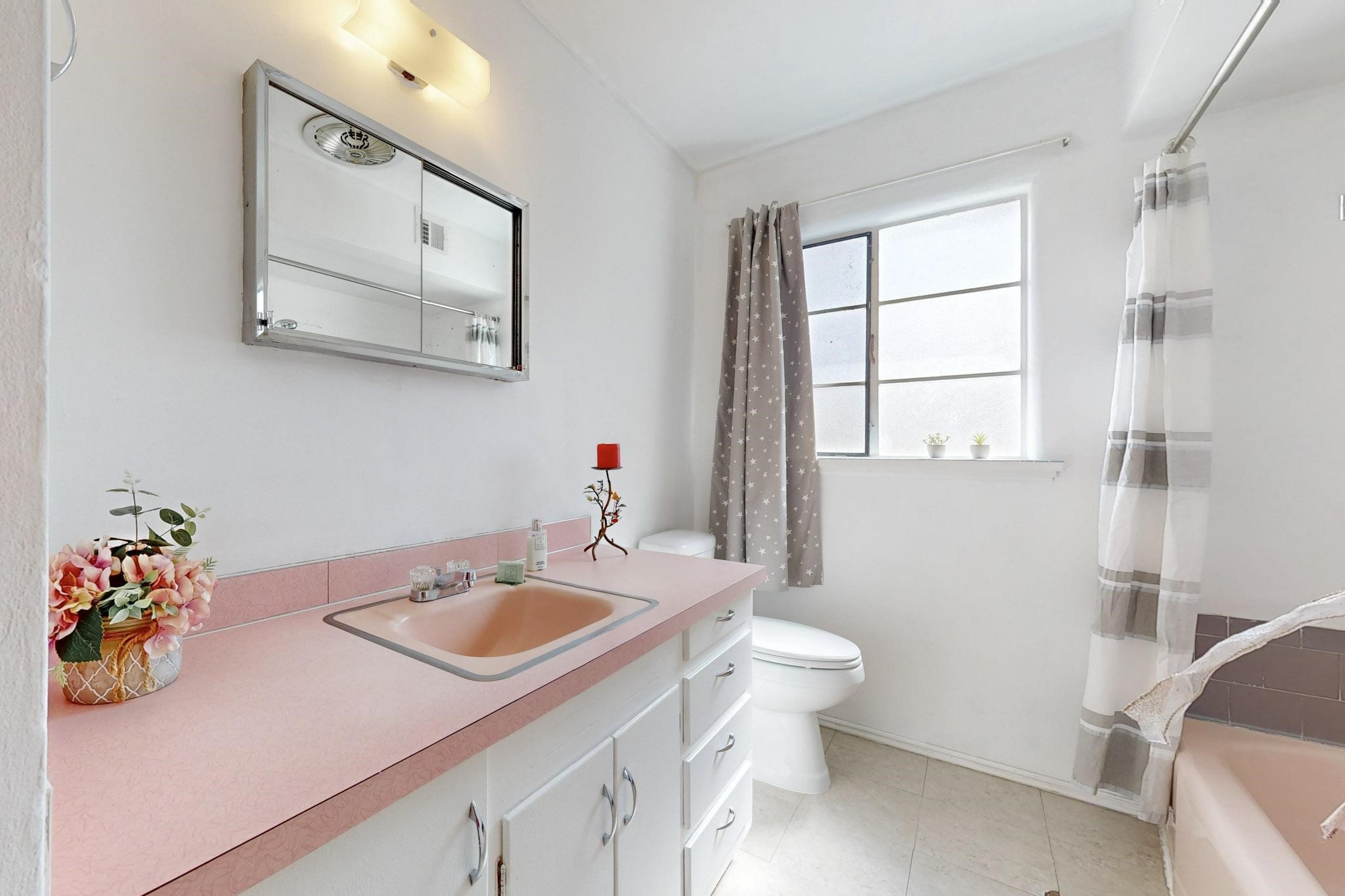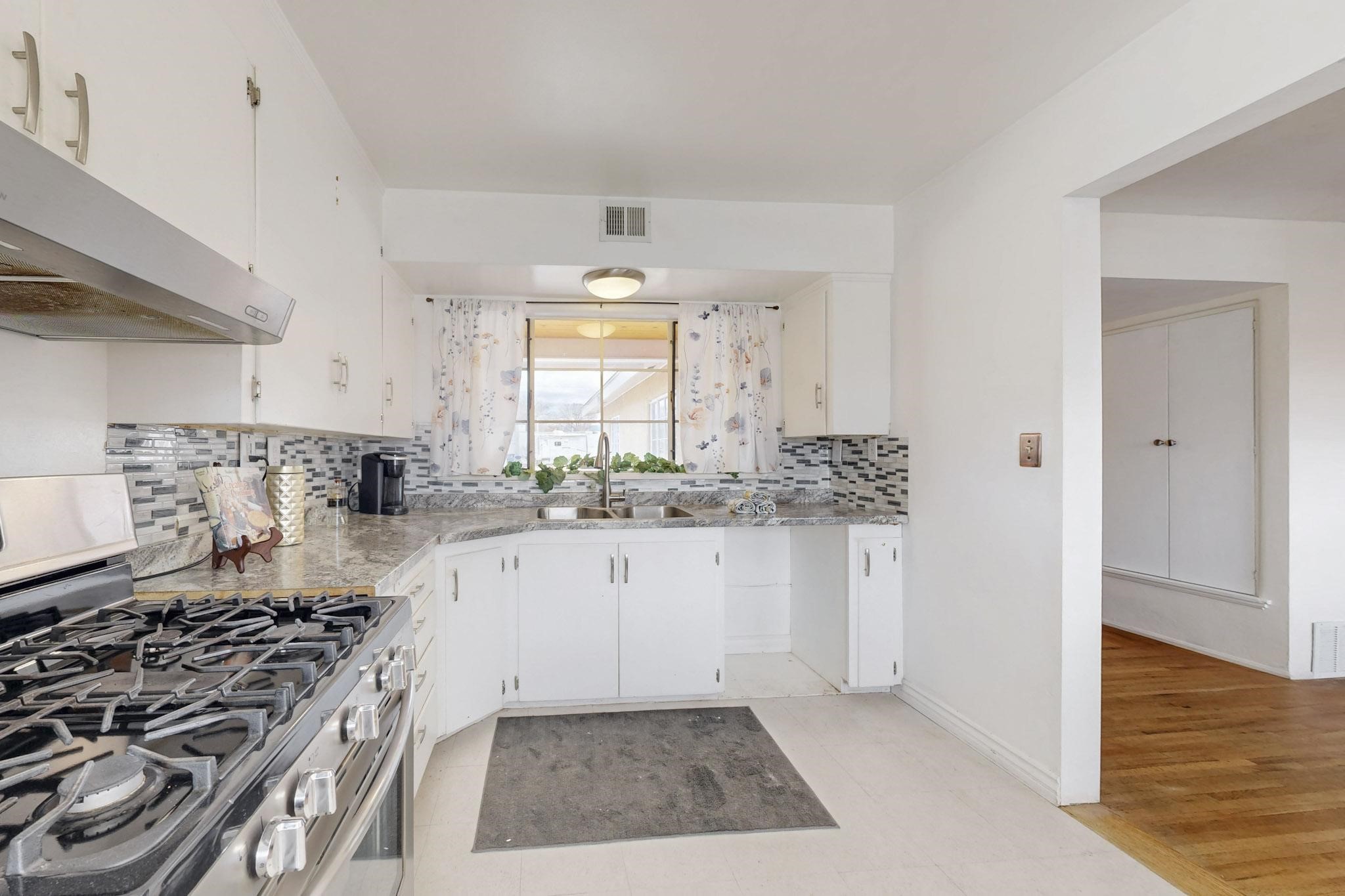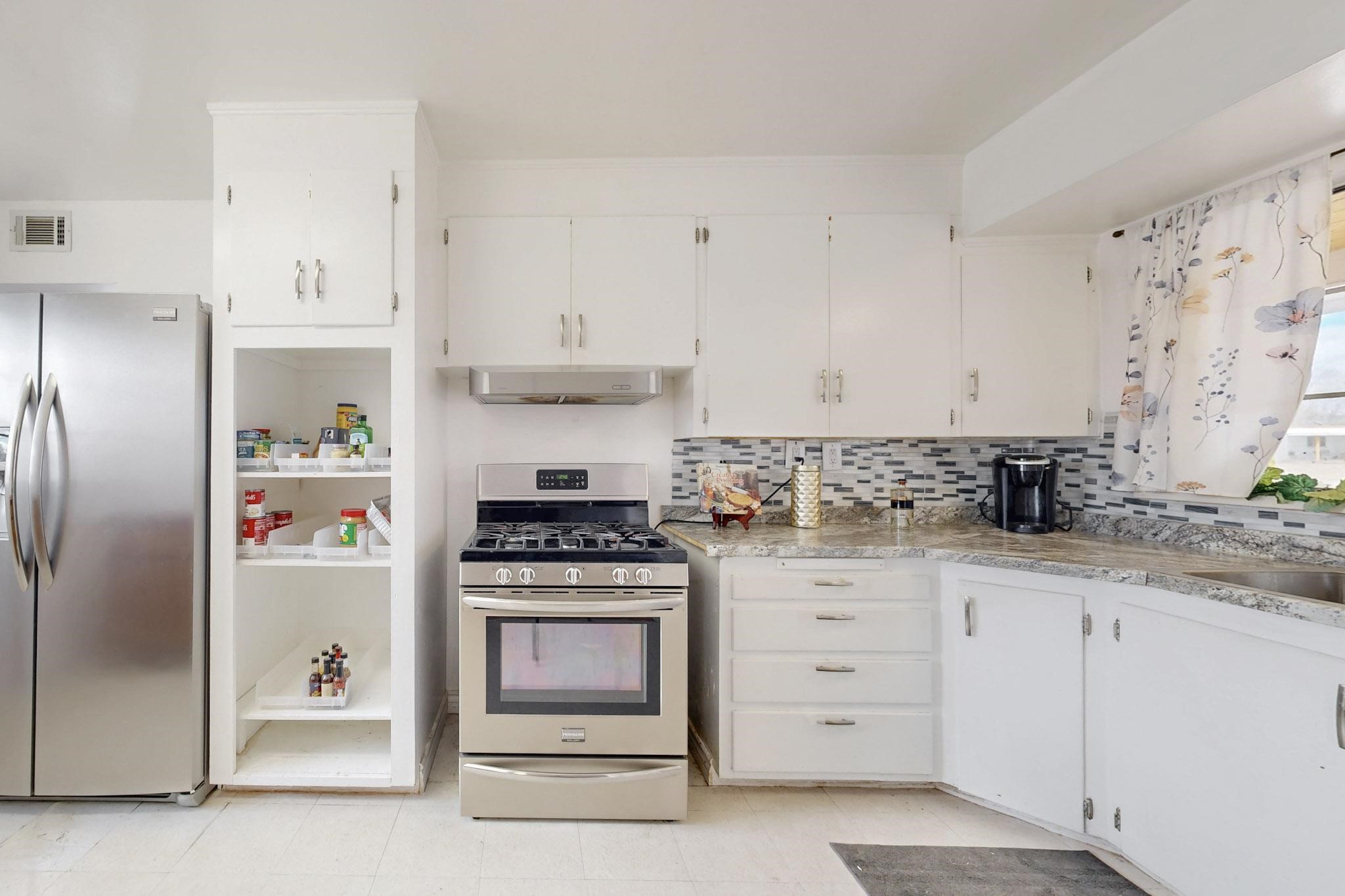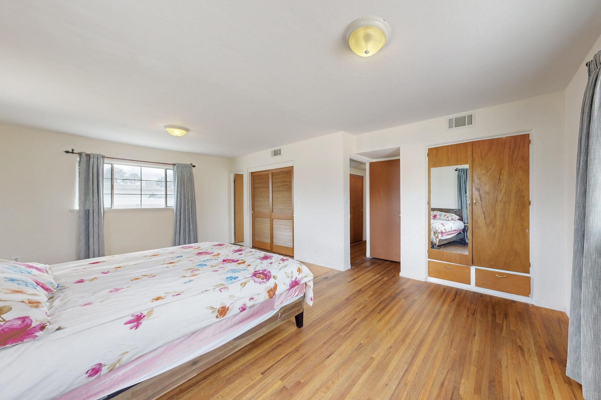 A three bedroom, two bath home and much more is now available to purchase. Entering the home through the front door, protected by a covered porch, one is welcomed by a hall leading to the 3 back bedrooms and two baths. The bedrooms are sizable, two bedrooms share one bath, but the primary bedroom is private and quite large, with a private full bath. Heading back to the front door, turning left, is a brightly lit living room /dining room area. If light does not suit you, close the drapes and enjoy a day of less light. The cozy brick fireplace is wood fired. Looking back, is the bright, well equipped kitchen, with stainless steel appliances and with adequate kitchen space to prepare all those scrumptious family meals. There is enough space for a small breakfast nook. Behind the kitchen is the laundry room, equipped with a washer and dryer. Then there is the one car garage with a garage door opener and side table for special projects..One would think this is definitely a lot of space, when considering the price of the home, but there is so much more. Walking back to the living room, down a step, is a large bonus, family room, with a brick gas fired fireplace, with bancos, (built in sitting space) on each side of the massive fireplace. This room opens up to a side covered flagstone porch/patio, with a wood fired, outside fire place, along with a quite large, enclosed back and side yard. There is still so much land that encompasses the home, that includes a side yard with a storage unit, and front driveway, from street to the garage. An amazing home that still has more to offer, like wood flooring, sets on a large, corner city lot, central refrigerated air unit, access to shopping and dining, and is minutes away from Los Alamos, Santa Fe, Taos, and Abiquiu. Don't miss out on this home, it is priced right, centrally located.
