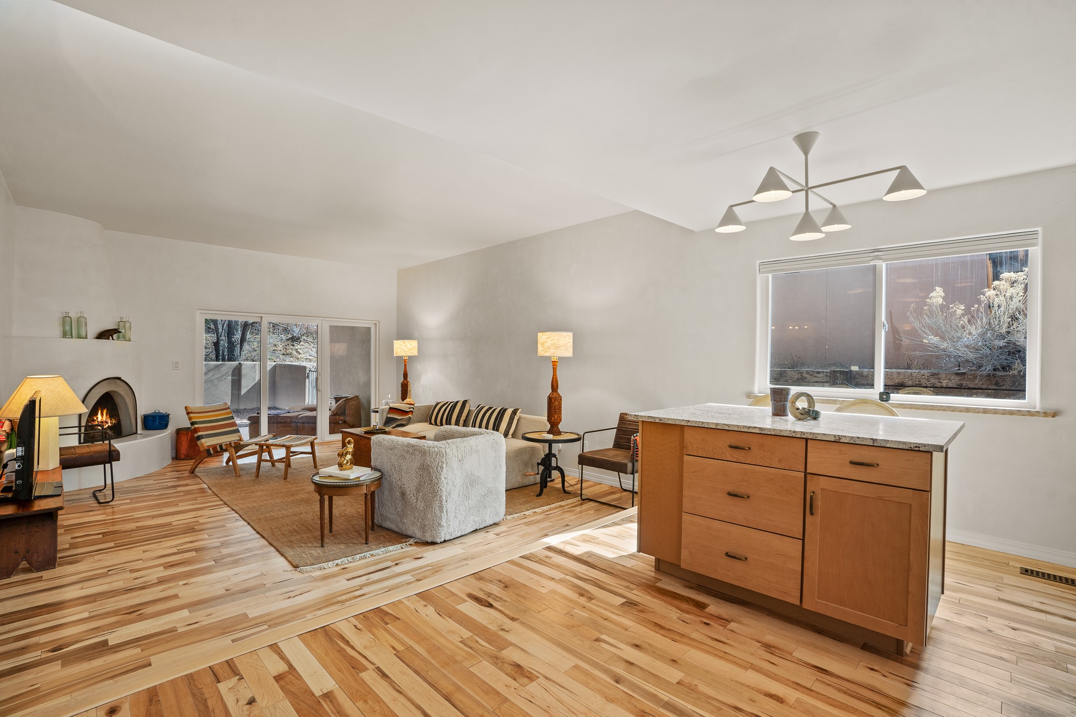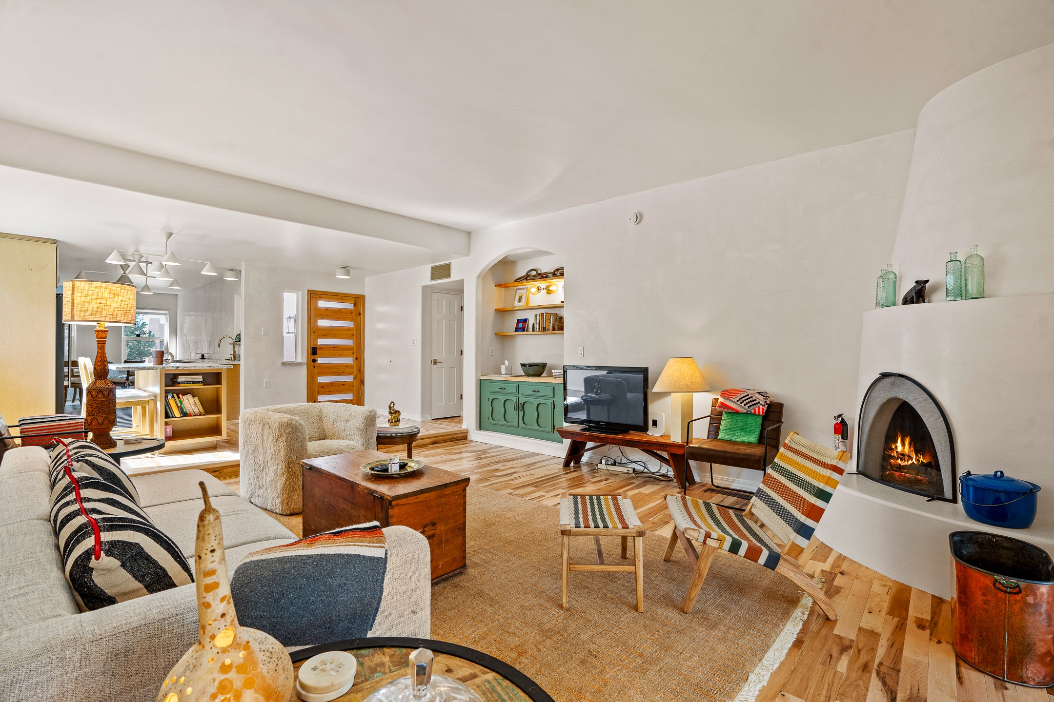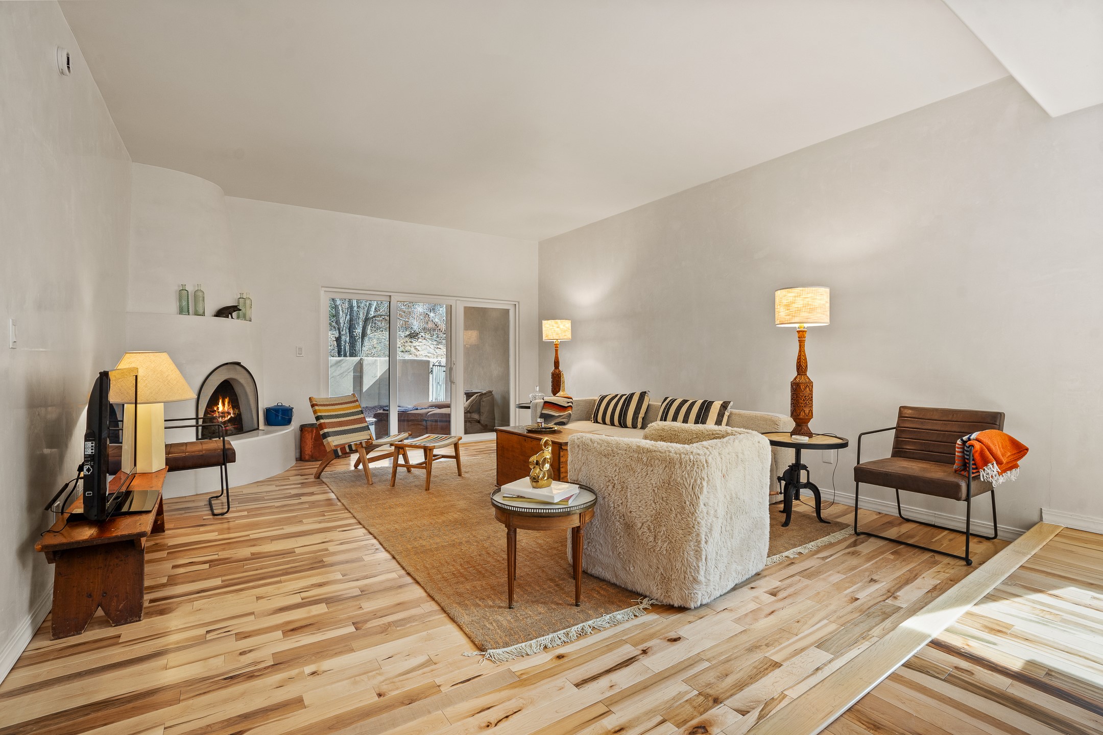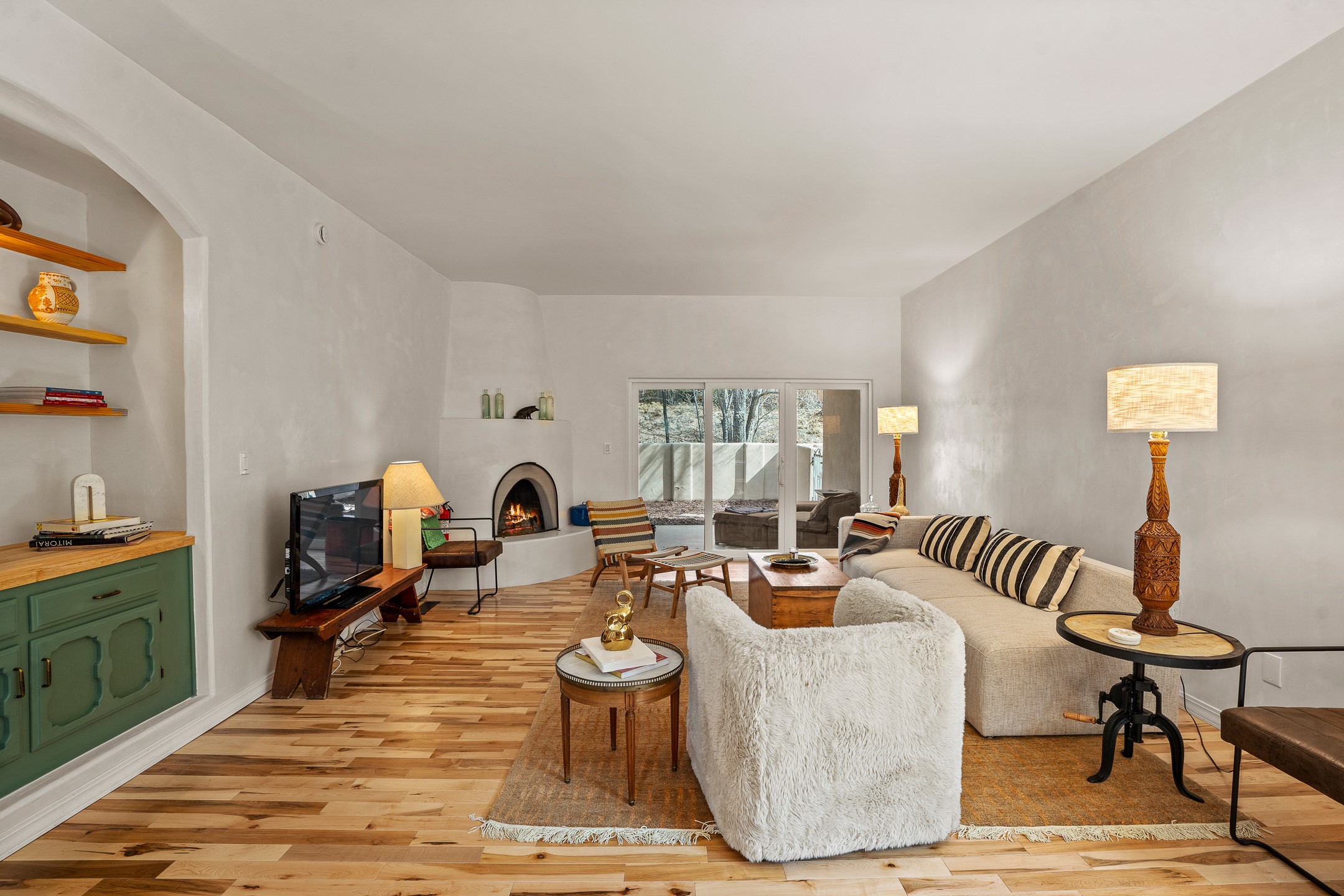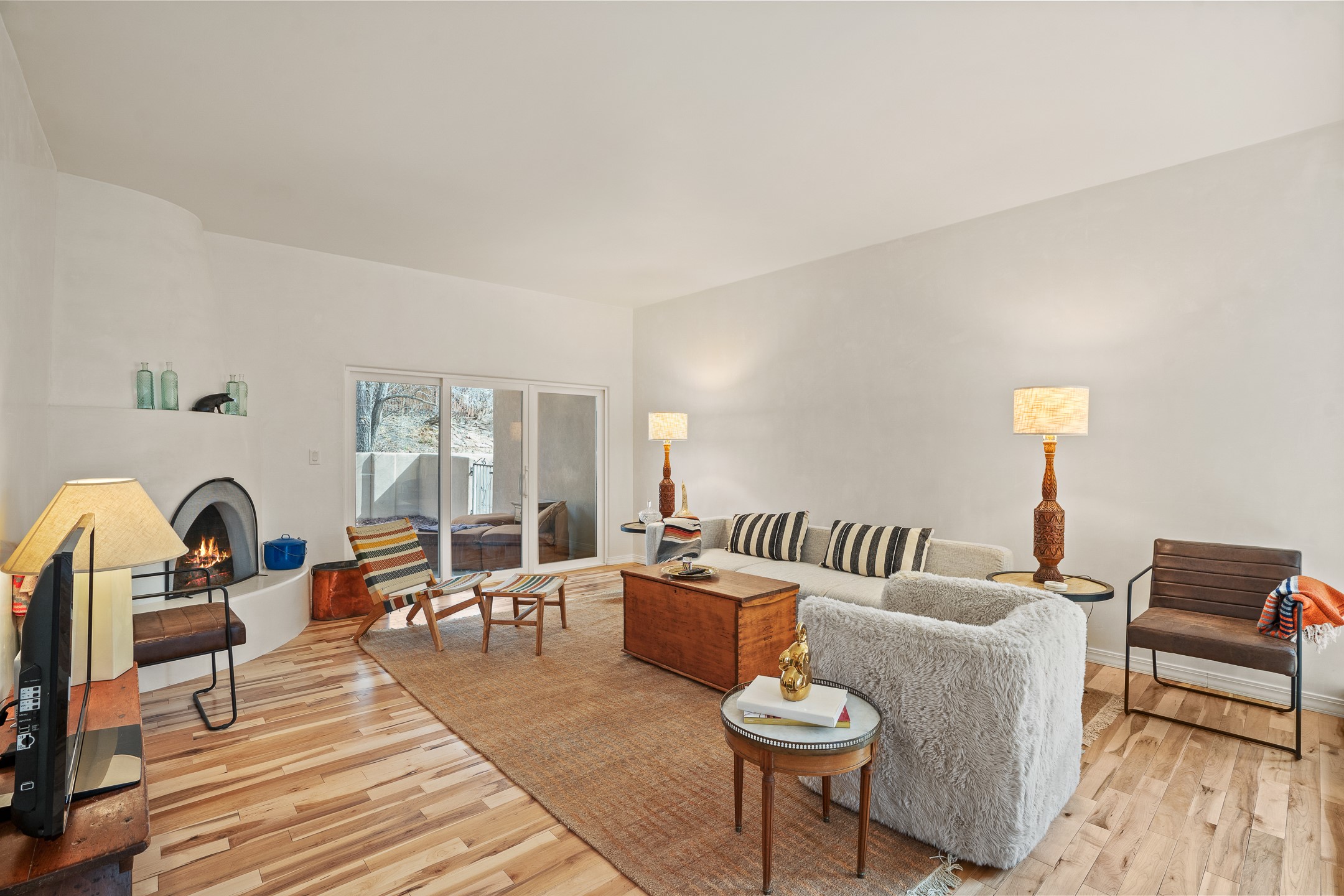 Welcome to your own private downtown oasis! Enter through the amazing custom hardwood door into this beautifully updated turnkey 3-bedroom, 2-bathroom townhome, which has been completely modernized with everything you're looking for. From new windows to updated stucco and everything in between; including a fresh kitchen with new cabinets, countertops, and appliances, new hardware and fixtures, new hardwood and tile floors throughout, updated lighting, and diamond plaster walls. Enjoy spending time in your living room, near the charming kiva fireplace and built-in bar, perfect for relaxation and entertaining. Nestled in the quiet, secluded, and exclusive community of Valle del Sol, this home offers a serene retreat while being just minutes from the Plaza in downtown Santa Fe, the Governor's Mansion, Tesuque, Bishop's Lodge, and the Santa Fe Ski Basin. Additional highlights include a new roof under warranty, an attached two-car garage, and no HOA. Enjoy peace and tranquility in the privacy of the backyard patio. Don't miss this incredible opportunity. Imagine the possibilities and schedule your private tour today!
