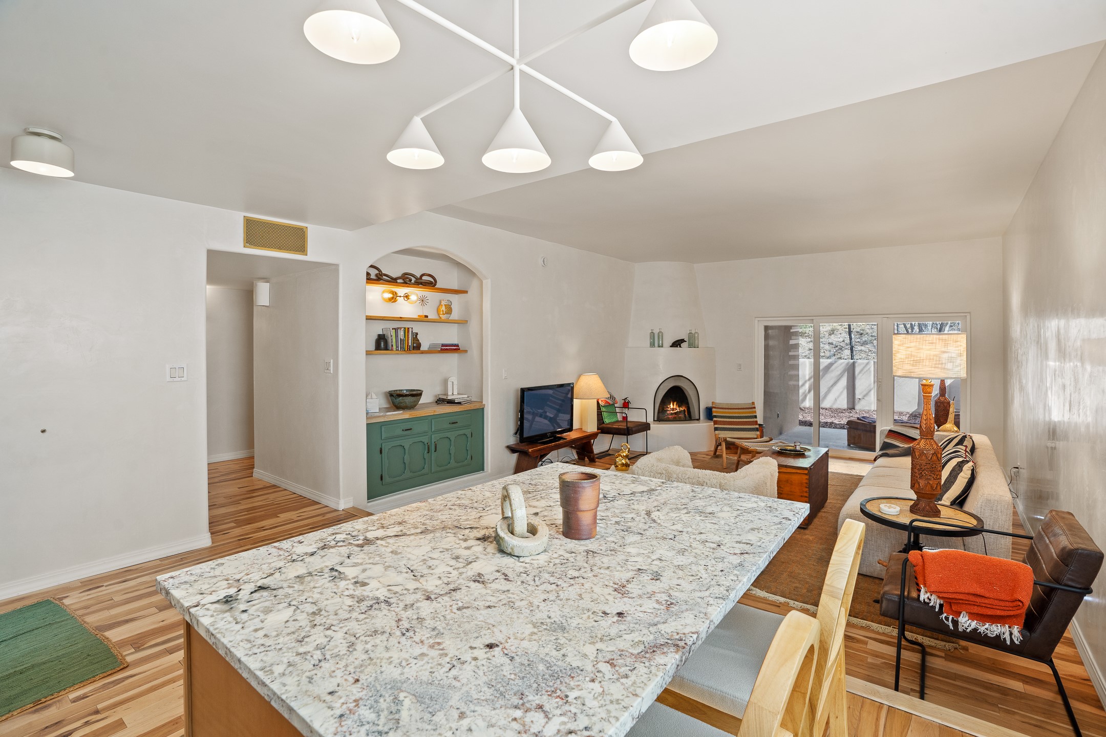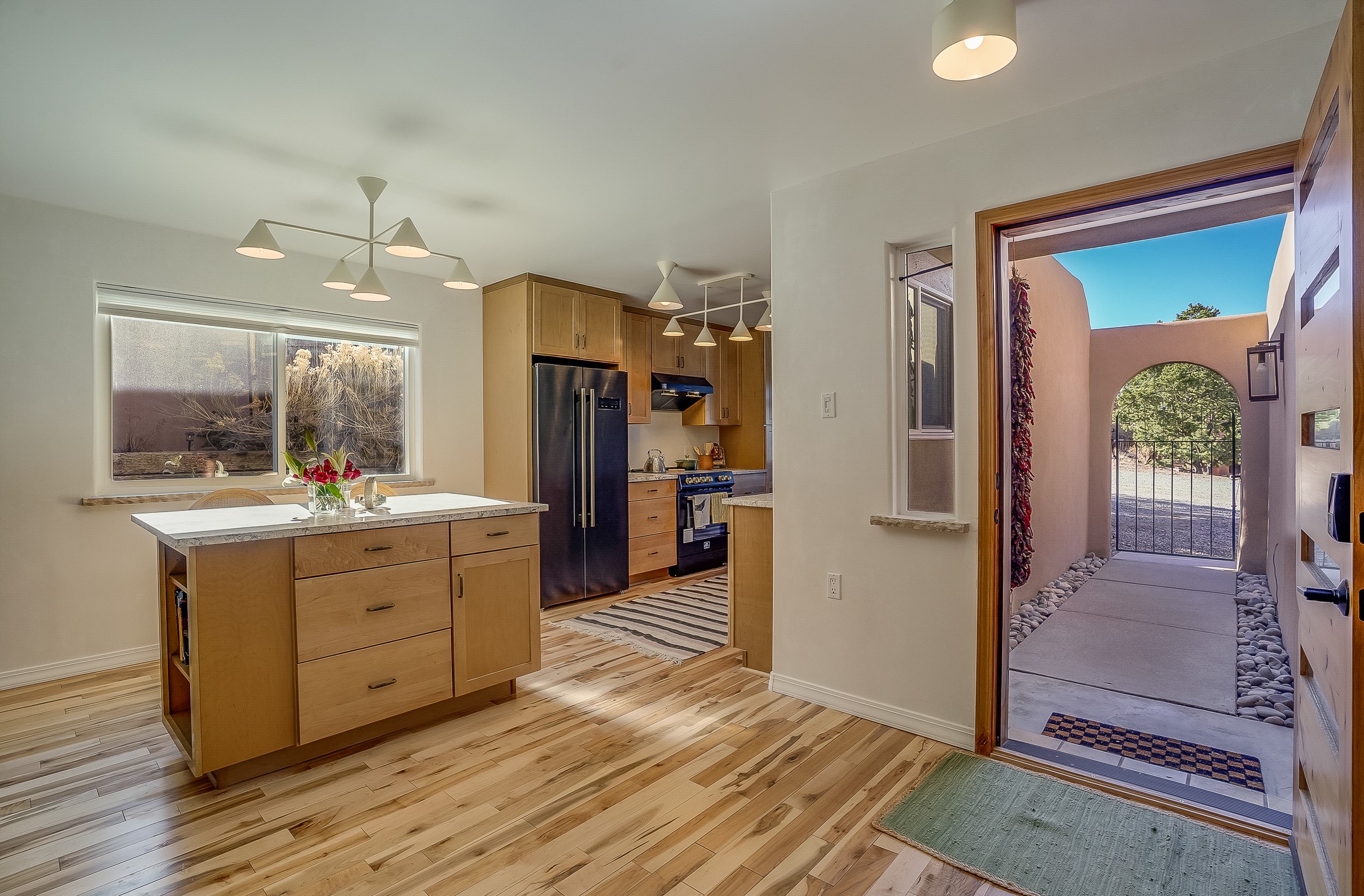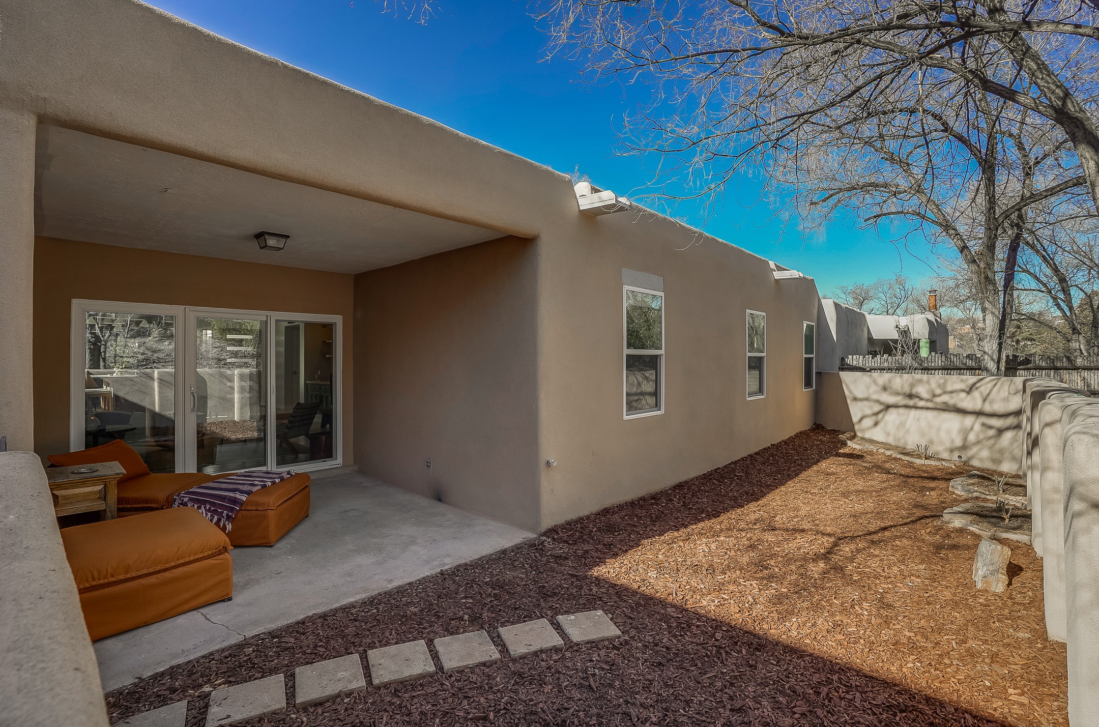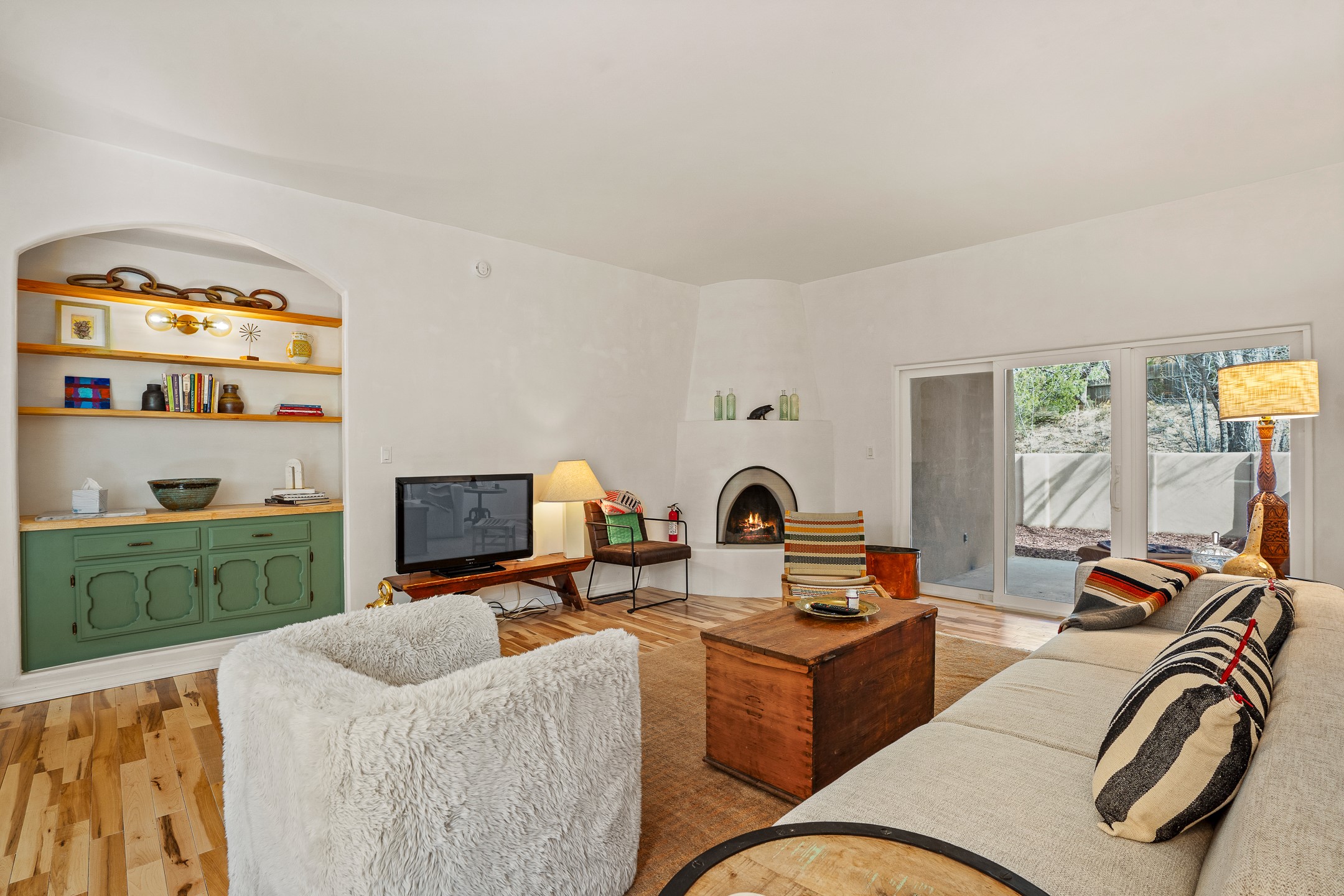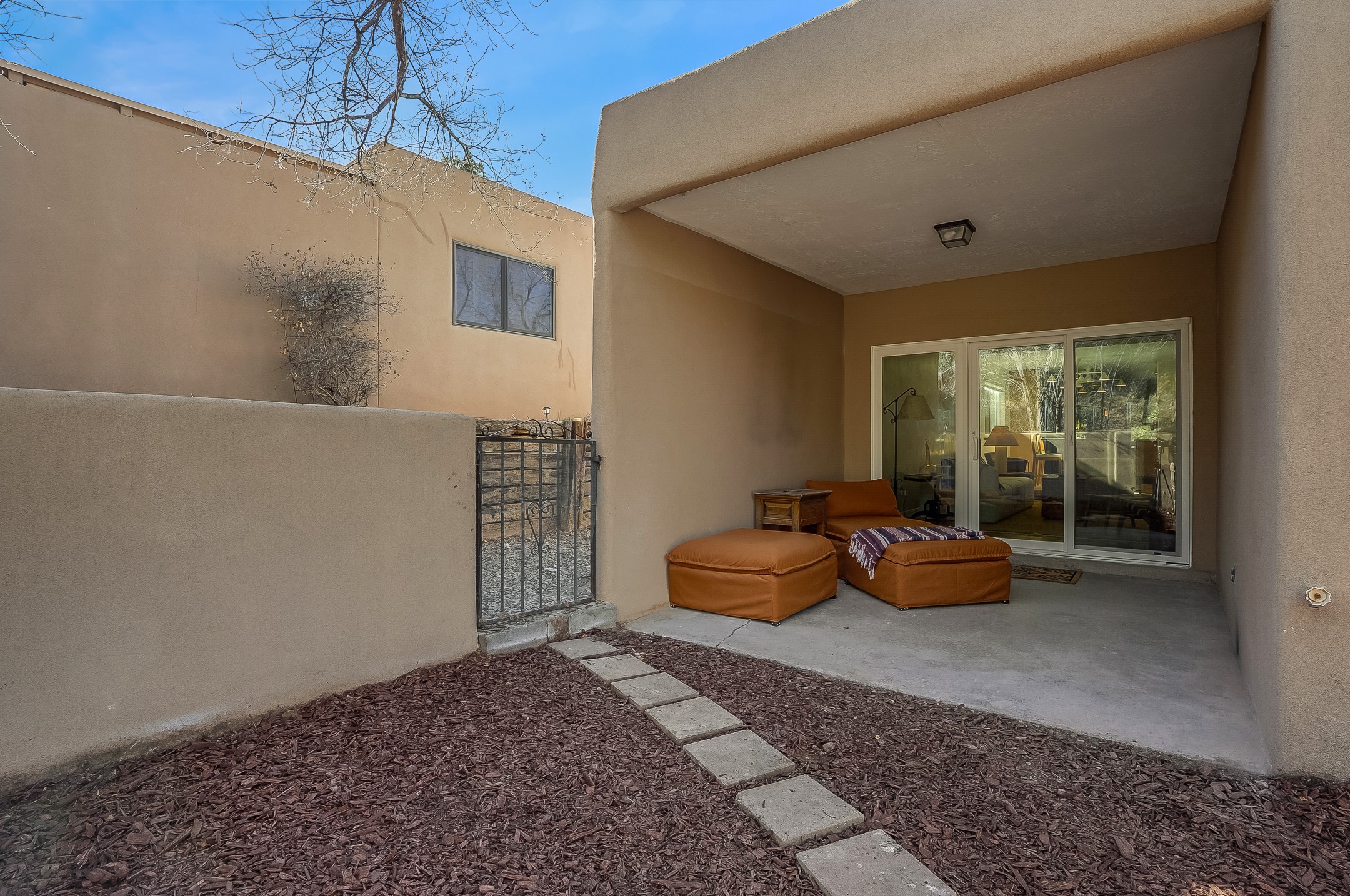 Welcome to your own private downtown oasis! Enter through the amazing custom hardwood door into this beautifully updated turnkey 3-bedroom, 2-bathroom townhome, which has been completely modernized with everything you're looking for. From new windows to updated stucco and everything in between; including a fresh kitchen with new cabinets, countertops, and appliances, new hardware and fixtures, new hardwood and tile floors throughout, updated lighting, and diamond plaster walls. Enjoy spending time in your living room, near the charming kiva fireplace and built-in bar, perfect for relaxation and entertaining. Nestled in the quiet, secluded, and exclusive community of Valle del Sol, this home offers a serene retreat while being just minutes from the Plaza in downtown Santa Fe, the Governor's Mansion, Tesuque, Bishop's Lodge, and the Santa Fe Ski Basin. Additional highlights include a new roof under warranty, an attached two-car garage, and no HOA. Enjoy peace and tranquility in the privacy of the backyard patio. Don't miss this incredible opportunity. Imagine the possibilities and schedule your private tour today!