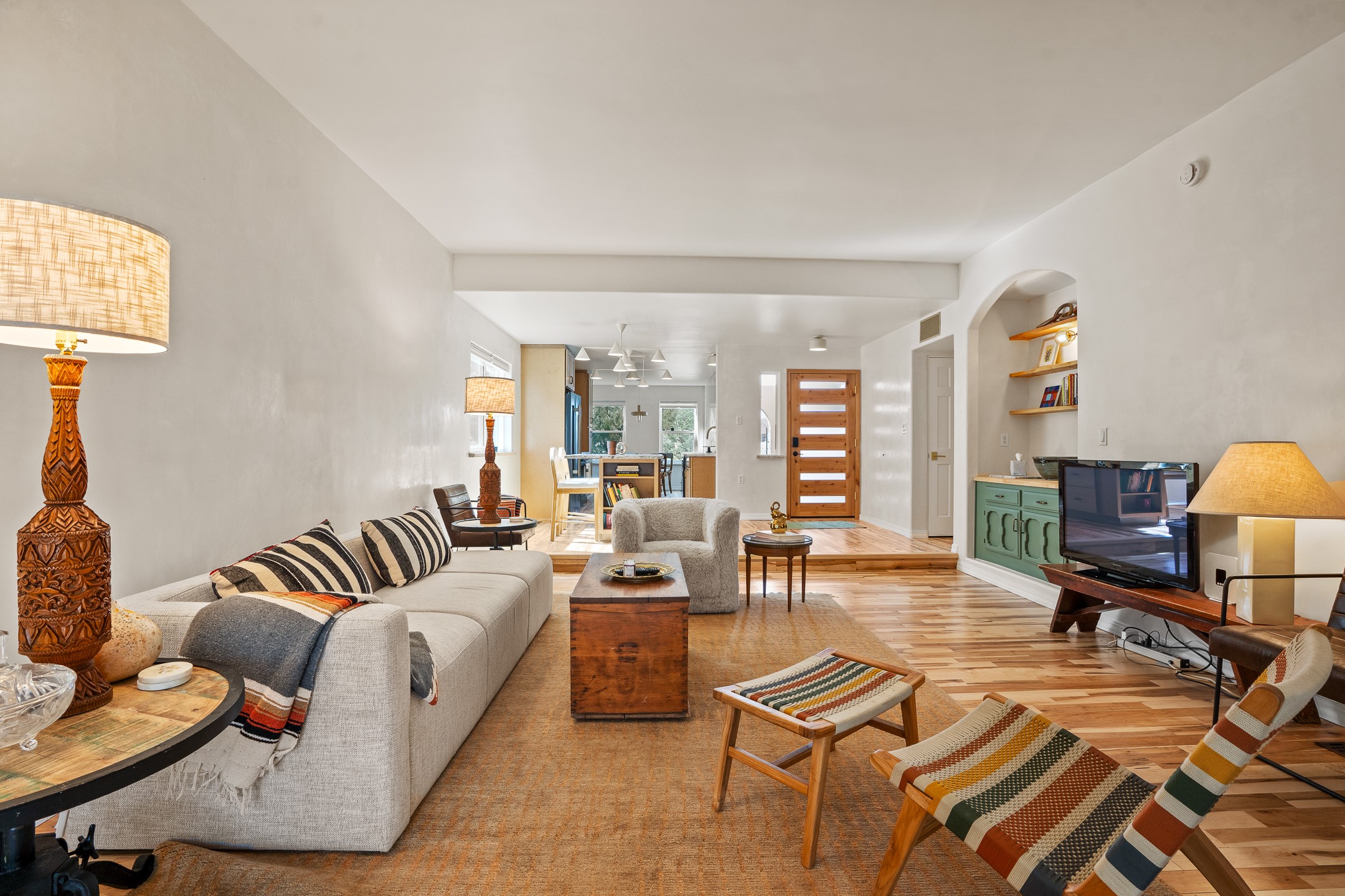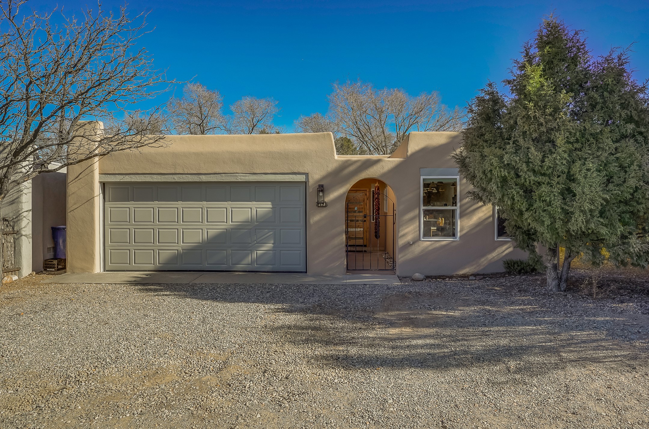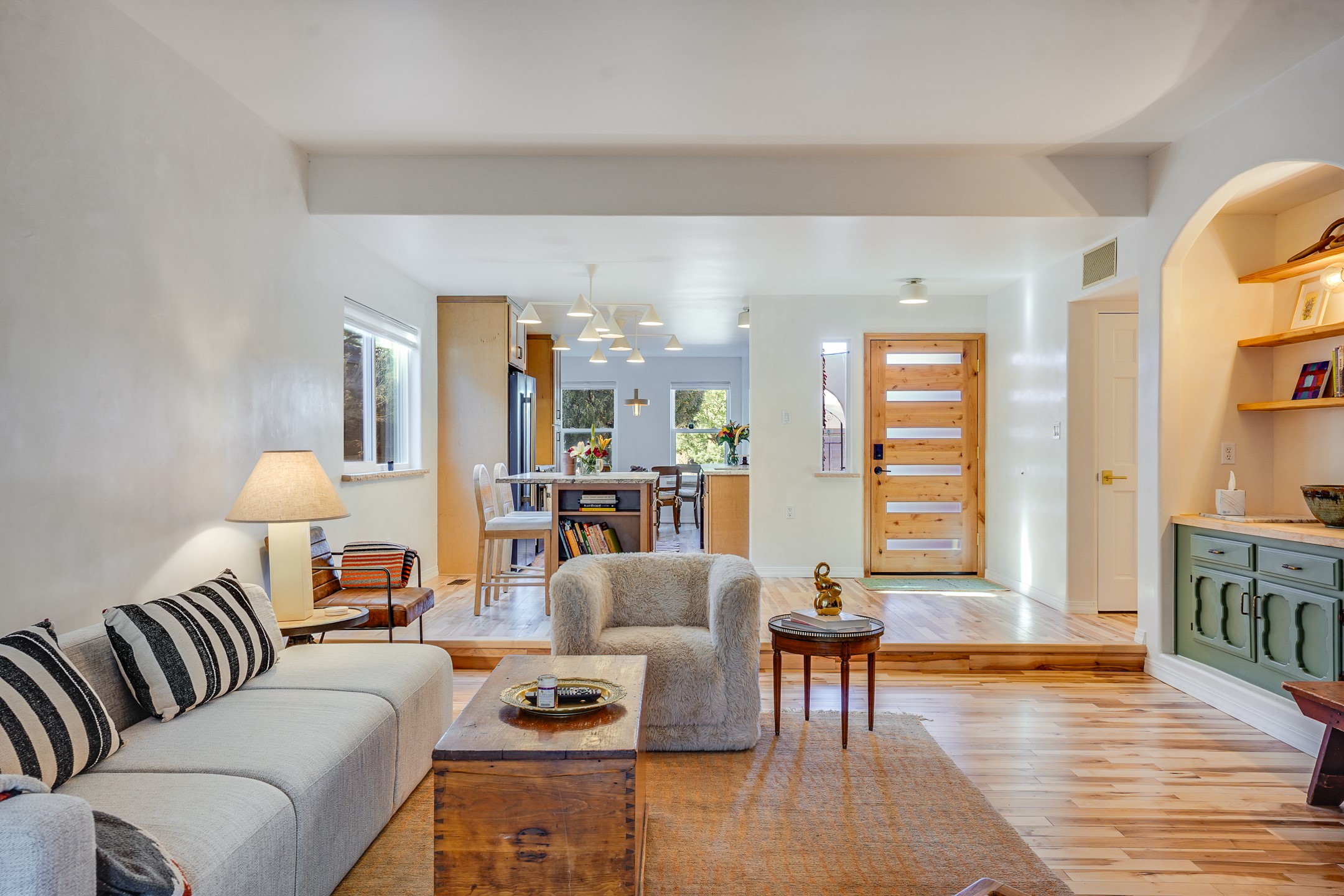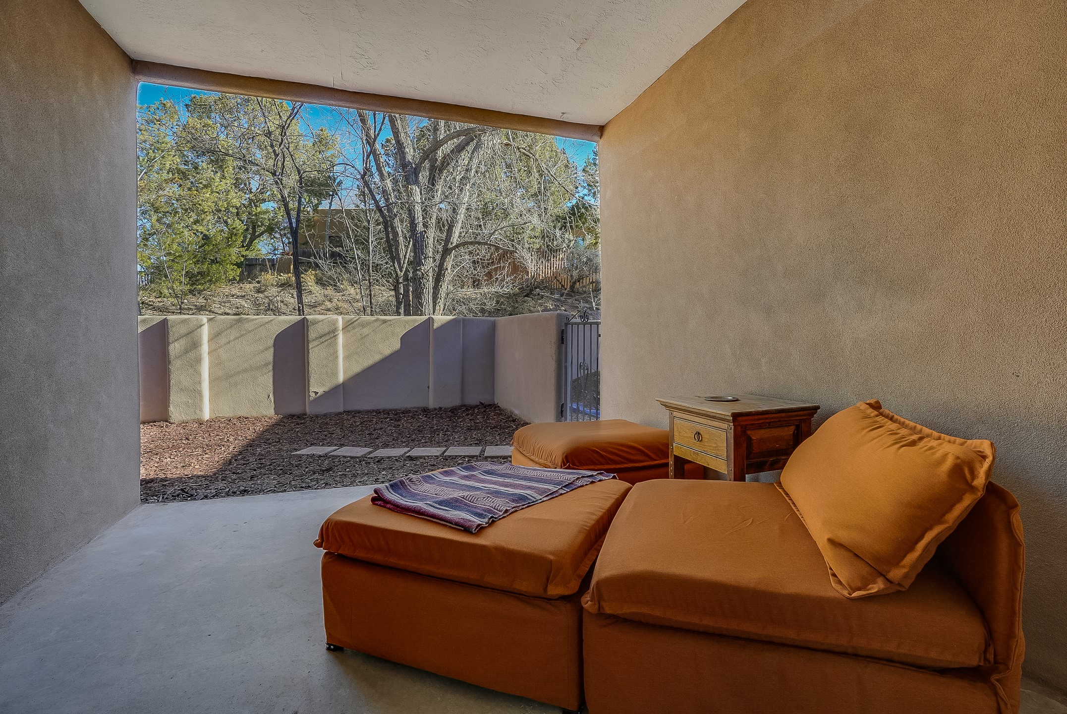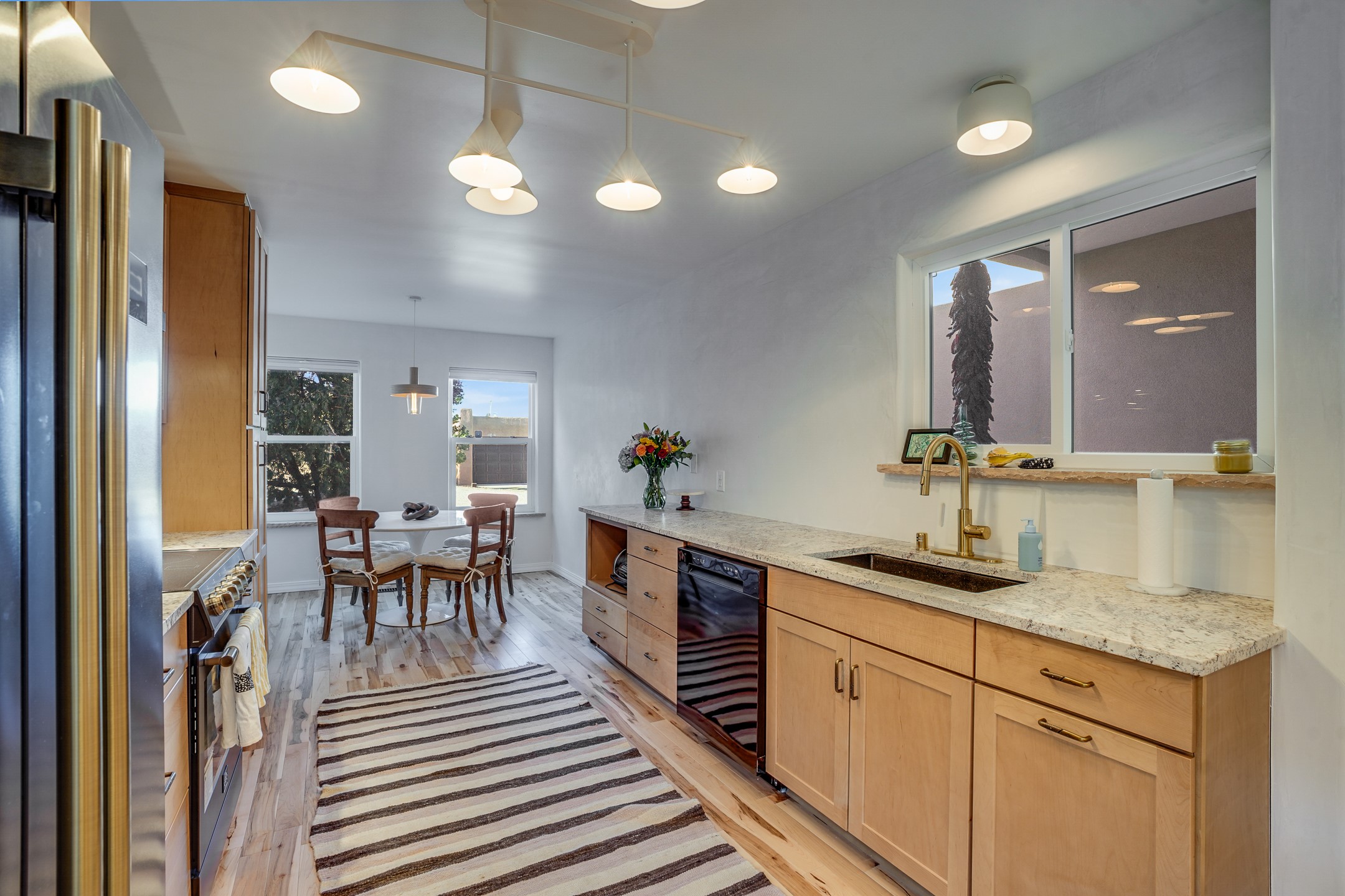 Welcome to your own private downtown oasis! Enter through the amazing custom hardwood door into this beautifully updated turnkey 3-bedroom, 2-bathroom townhome, which has been completely modernized with everything you're looking for. From new windows to updated stucco and everything in between; including a fresh kitchen with new cabinets, countertops, and appliances, new hardware and fixtures, new hardwood and tile floors throughout, updated lighting, and diamond plaster walls. Enjoy spending time in your living room, near the charming kiva fireplace and built-in bar, perfect for relaxation and entertaining. Nestled in the quiet, secluded, and exclusive community of Valle del Sol, this home offers a serene retreat while being just minutes from the Plaza in downtown Santa Fe, the Governor's Mansion, Tesuque, Bishop's Lodge, and the Santa Fe Ski Basin. Additional highlights include a new roof under warranty, an attached two-car garage, and no HOA. Enjoy peace and tranquility in the privacy of the backyard patio. Don't miss this incredible opportunity. Imagine the possibilities and schedule your private tour today!