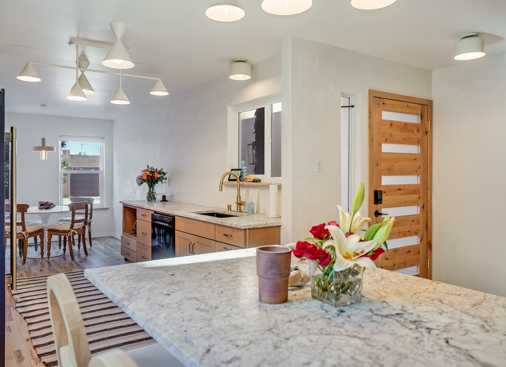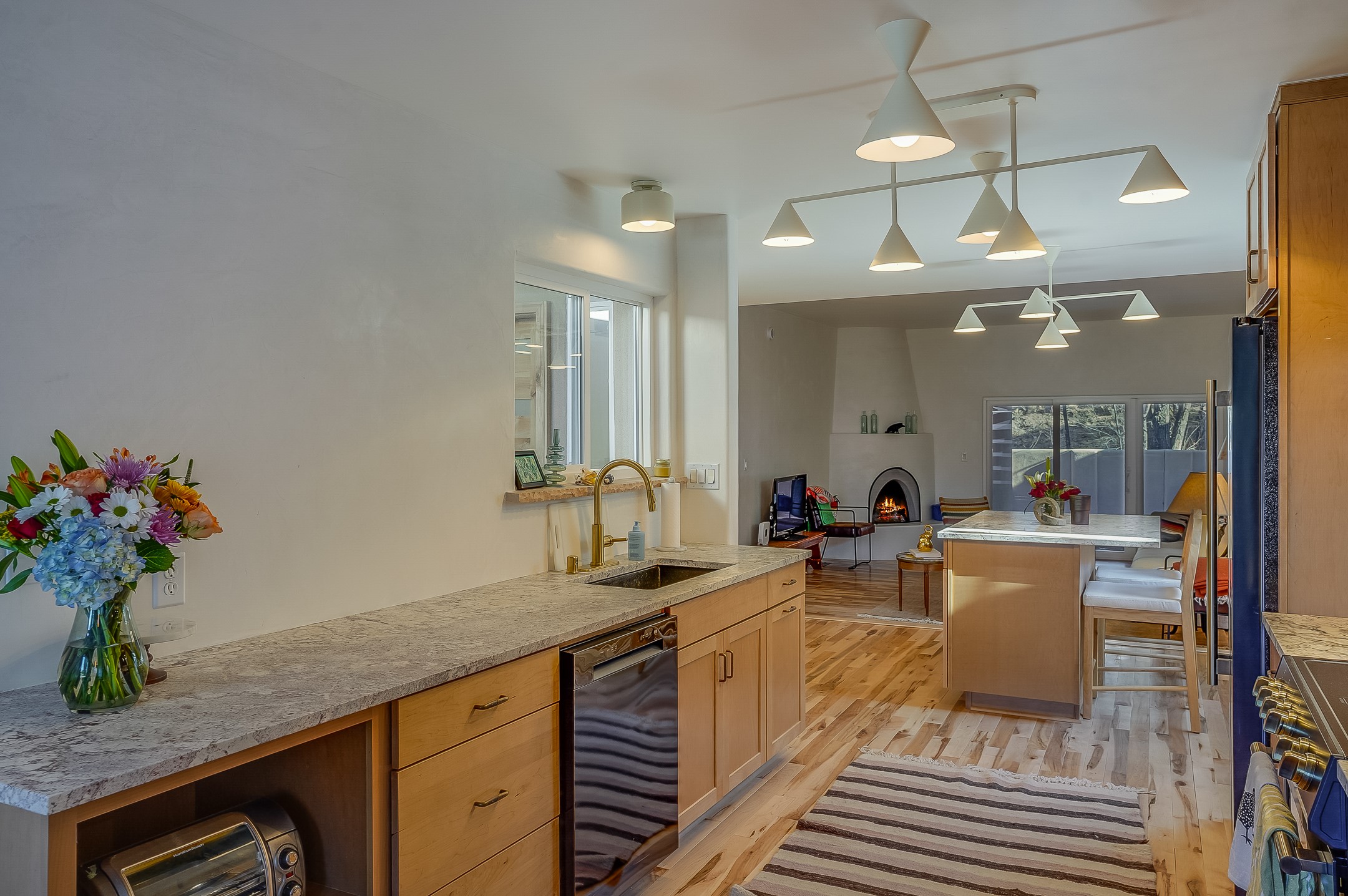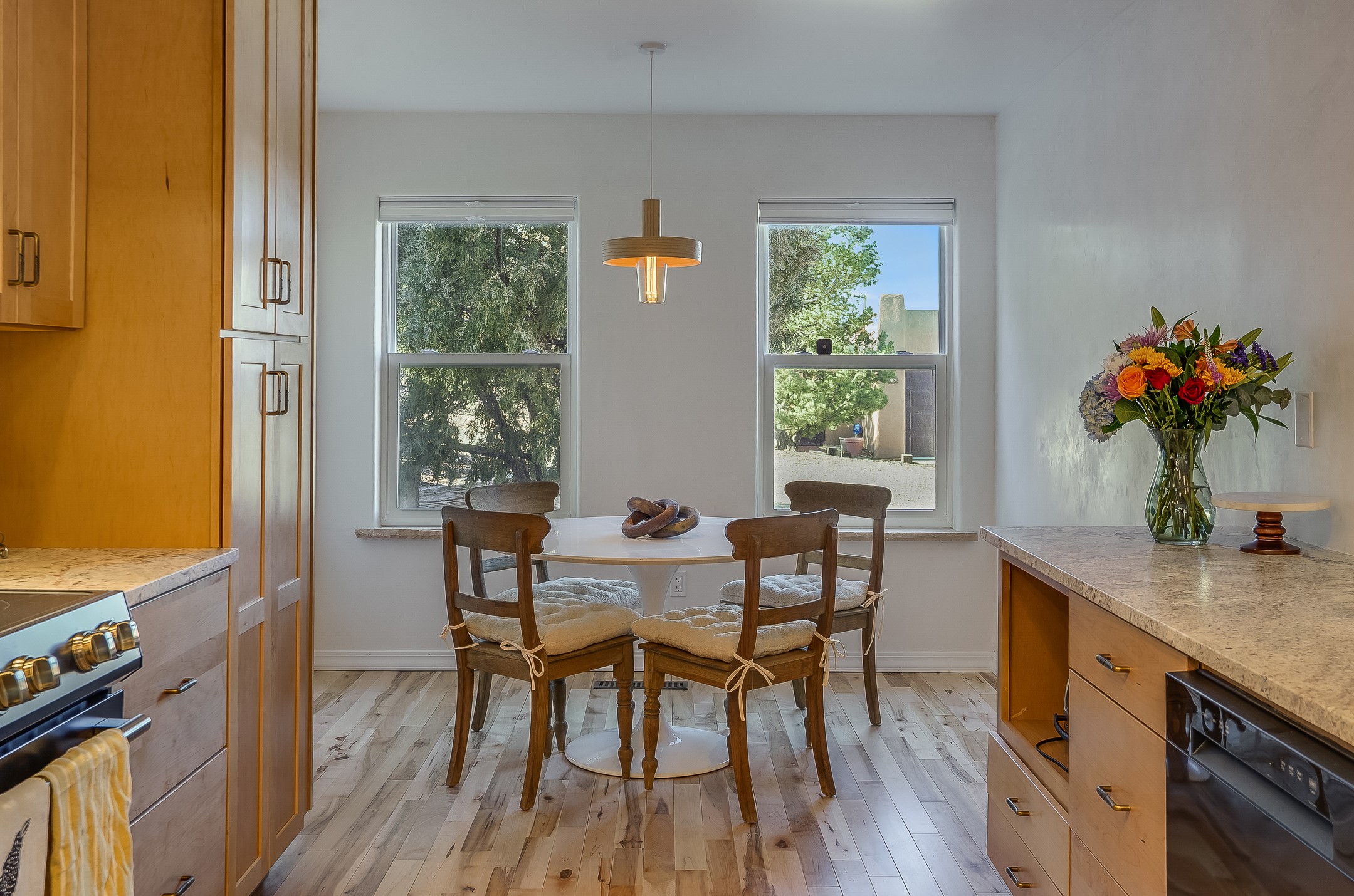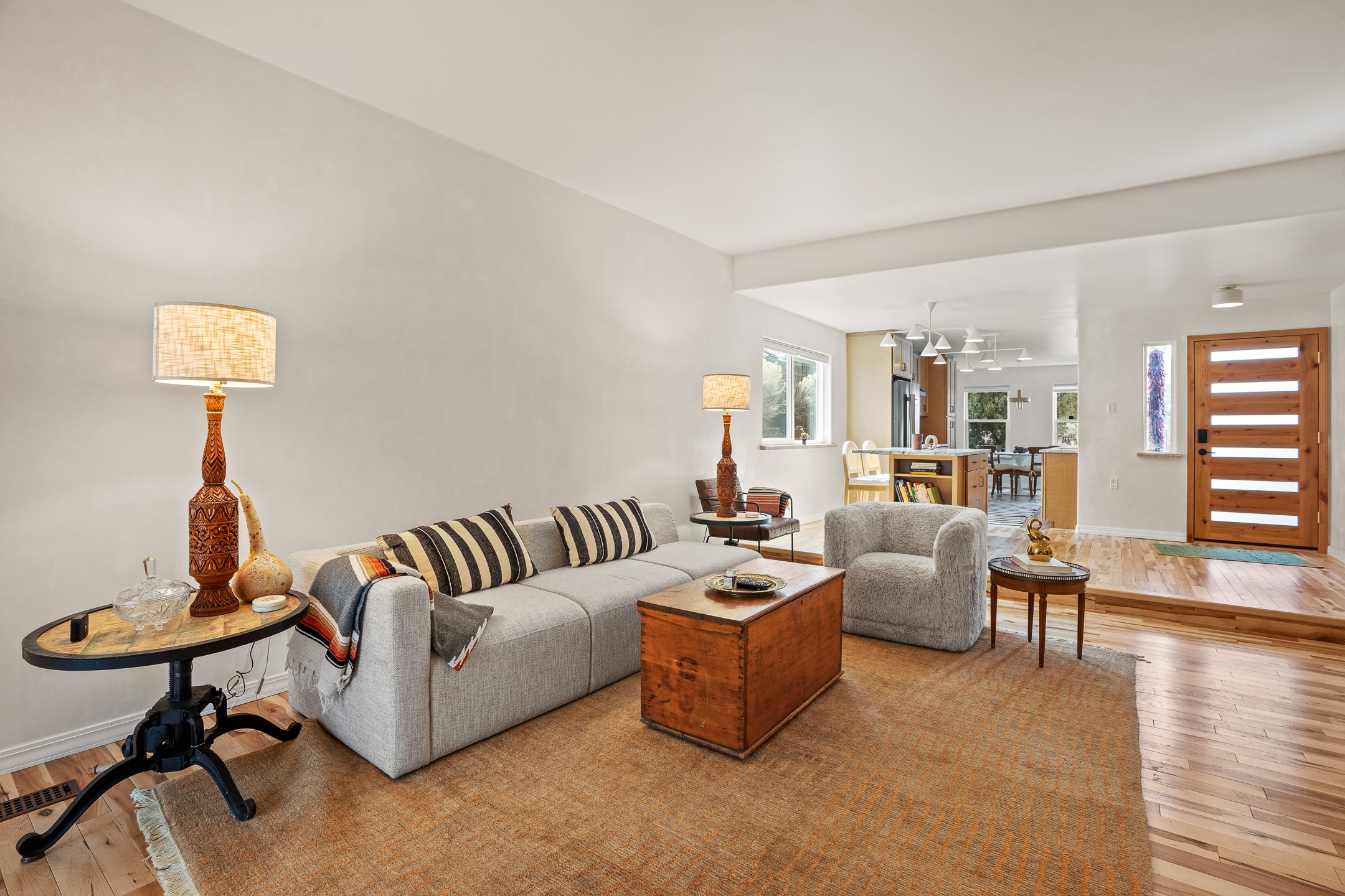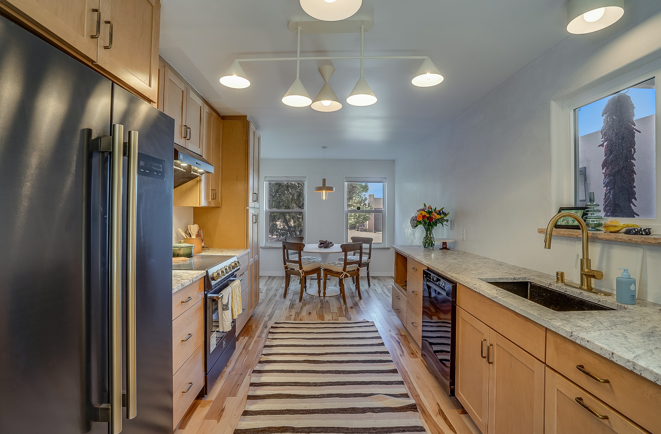 Welcome to your own private downtown oasis! Enter through the amazing custom hardwood door into this beautifully updated turnkey 3-bedroom, 2-bathroom townhome, which has been completely modernized with everything you're looking for. From new windows to updated stucco and everything in between; including a fresh kitchen with new cabinets, countertops, and appliances, new hardware and fixtures, new hardwood and tile floors throughout, updated lighting, and diamond plaster walls. Enjoy spending time in your living room, near the charming kiva fireplace and built-in bar, perfect for relaxation and entertaining. Nestled in the quiet, secluded, and exclusive community of Valle del Sol, this home offers a serene retreat while being just minutes from the Plaza in downtown Santa Fe, the Governor's Mansion, Tesuque, Bishop's Lodge, and the Santa Fe Ski Basin. Additional highlights include a new roof under warranty, an attached two-car garage, and no HOA. Enjoy peace and tranquility in the privacy of the backyard patio. Don't miss this incredible opportunity. Imagine the possibilities and schedule your private tour today!