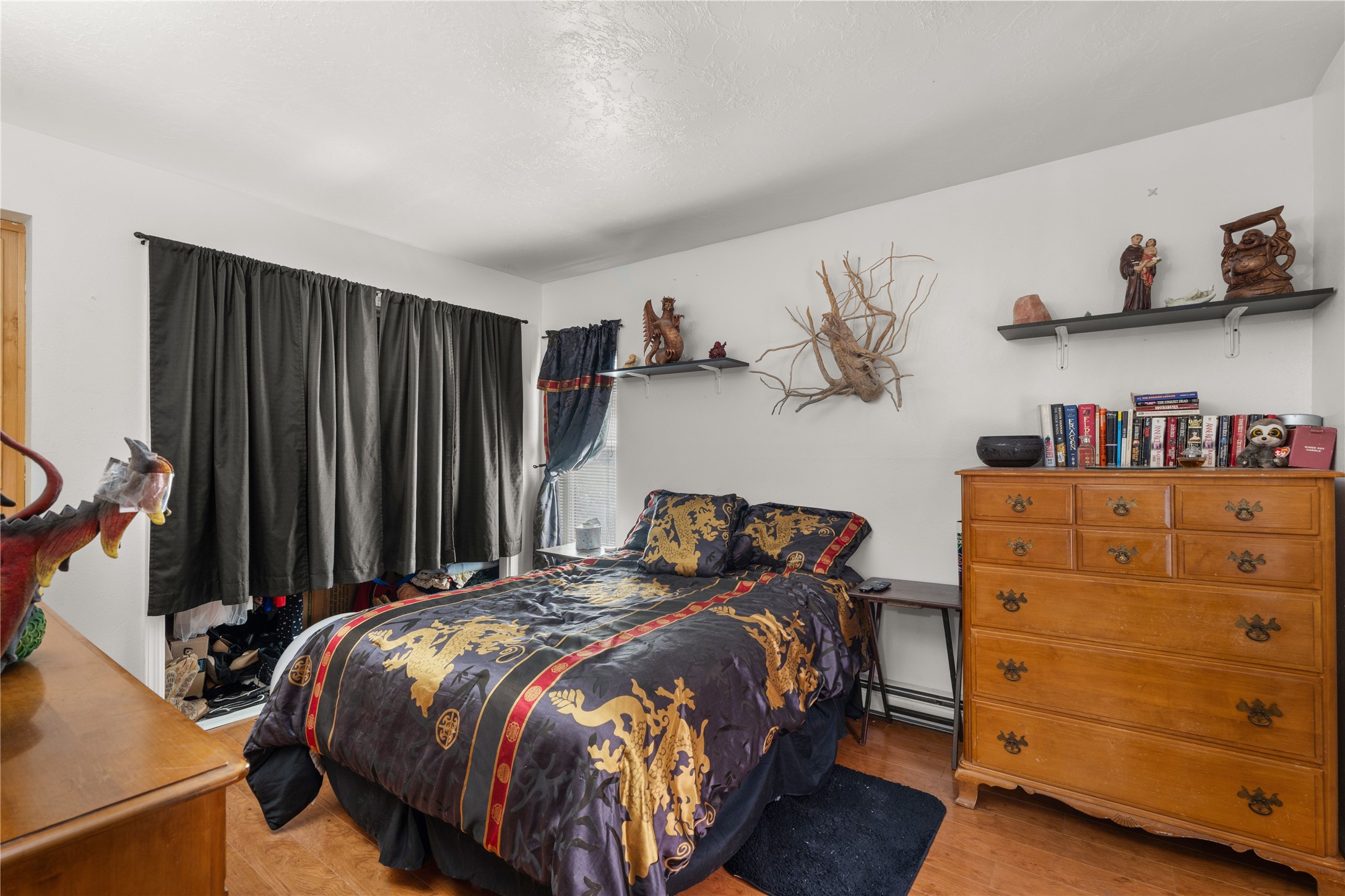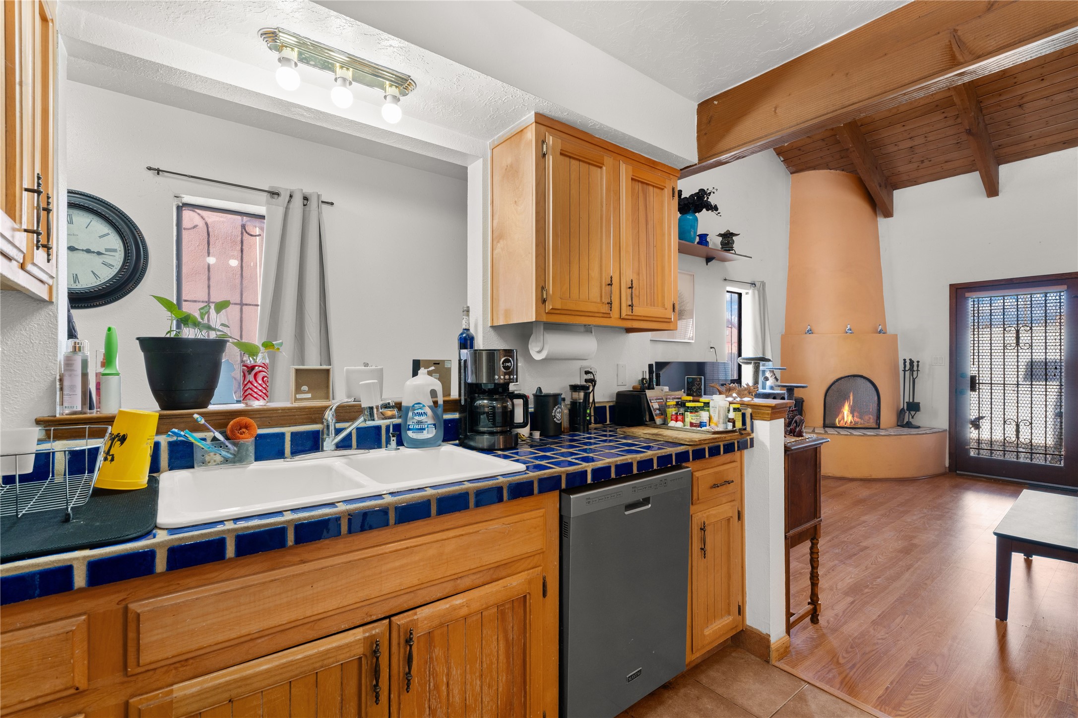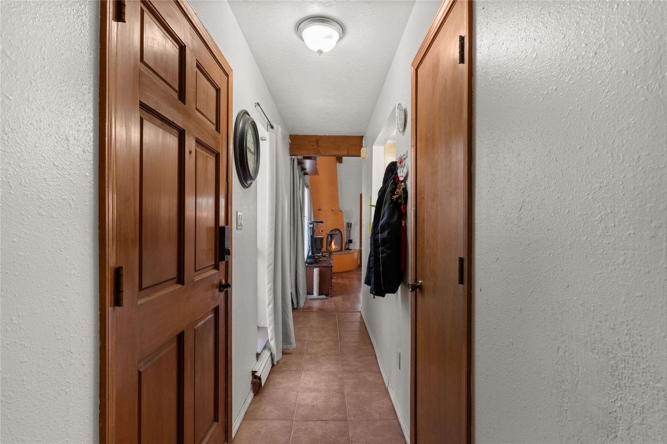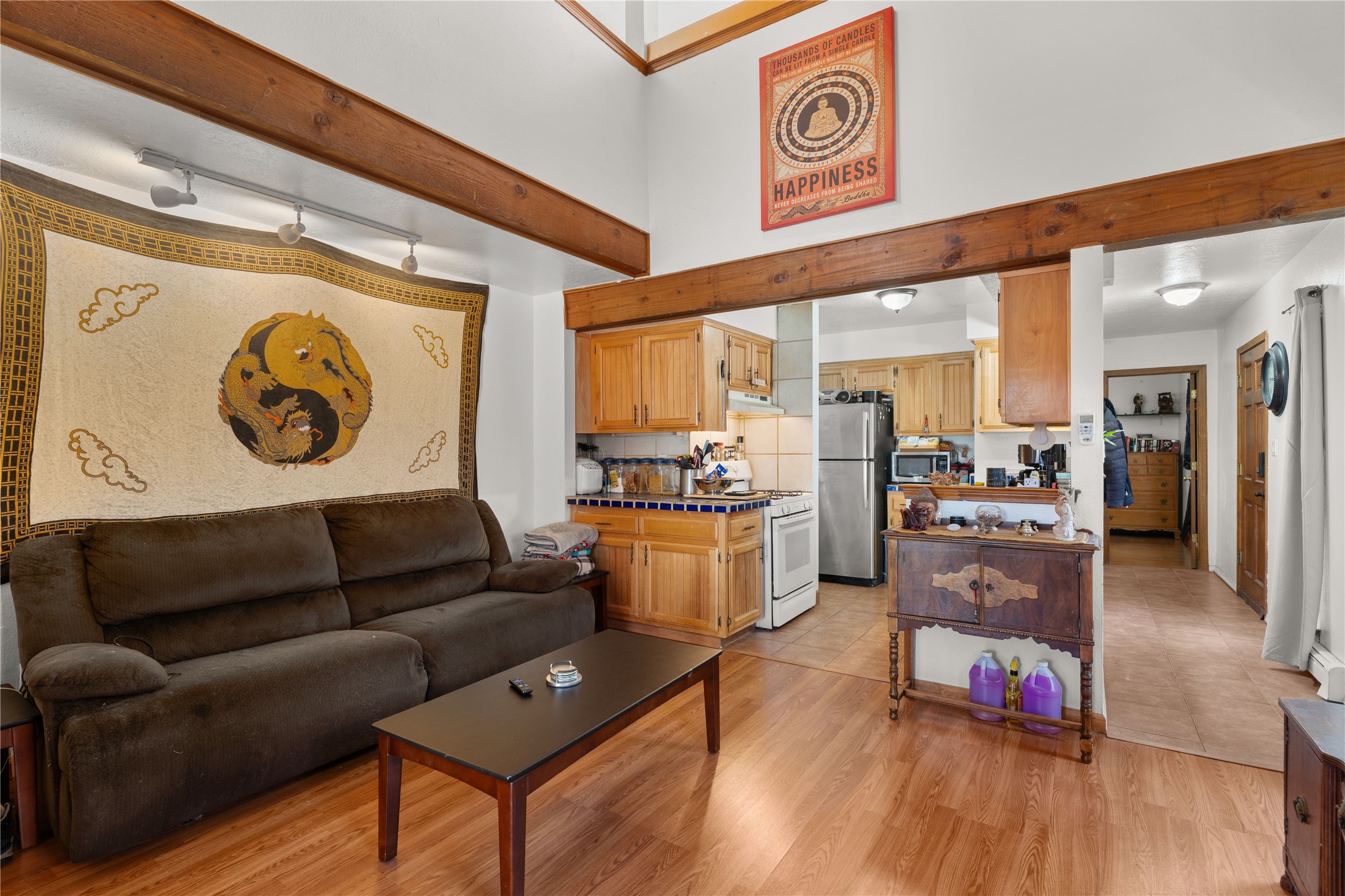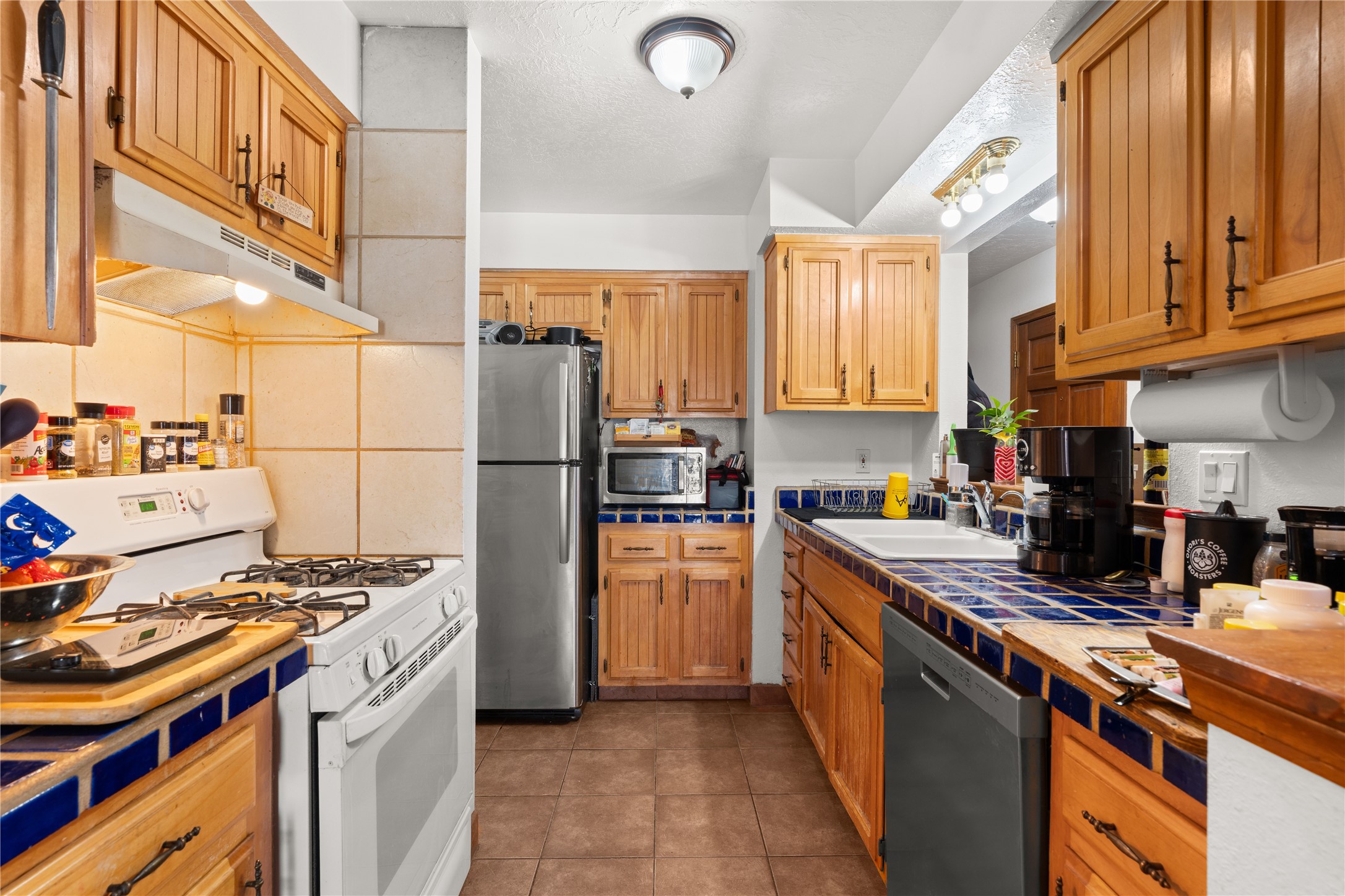 The Las Americas development is a quiet, cul-de-sac community tucked away beneath mature trees, walking trails, and convenient to shopping / amenities. This unit is two-story, with one bedroom and full bath downstairs and a bedroom loft with a south facing deck upstairs. The living room offers an inviting kiva fireplace, laminate "wood" floors and access to the back yard complete with a raised vegetable bed and storage shed. All units come with dedicated parking (two for this unit). All appliances stay with the unit including washer and dryer. A great value in what is currently the lowest priced unit in the development.