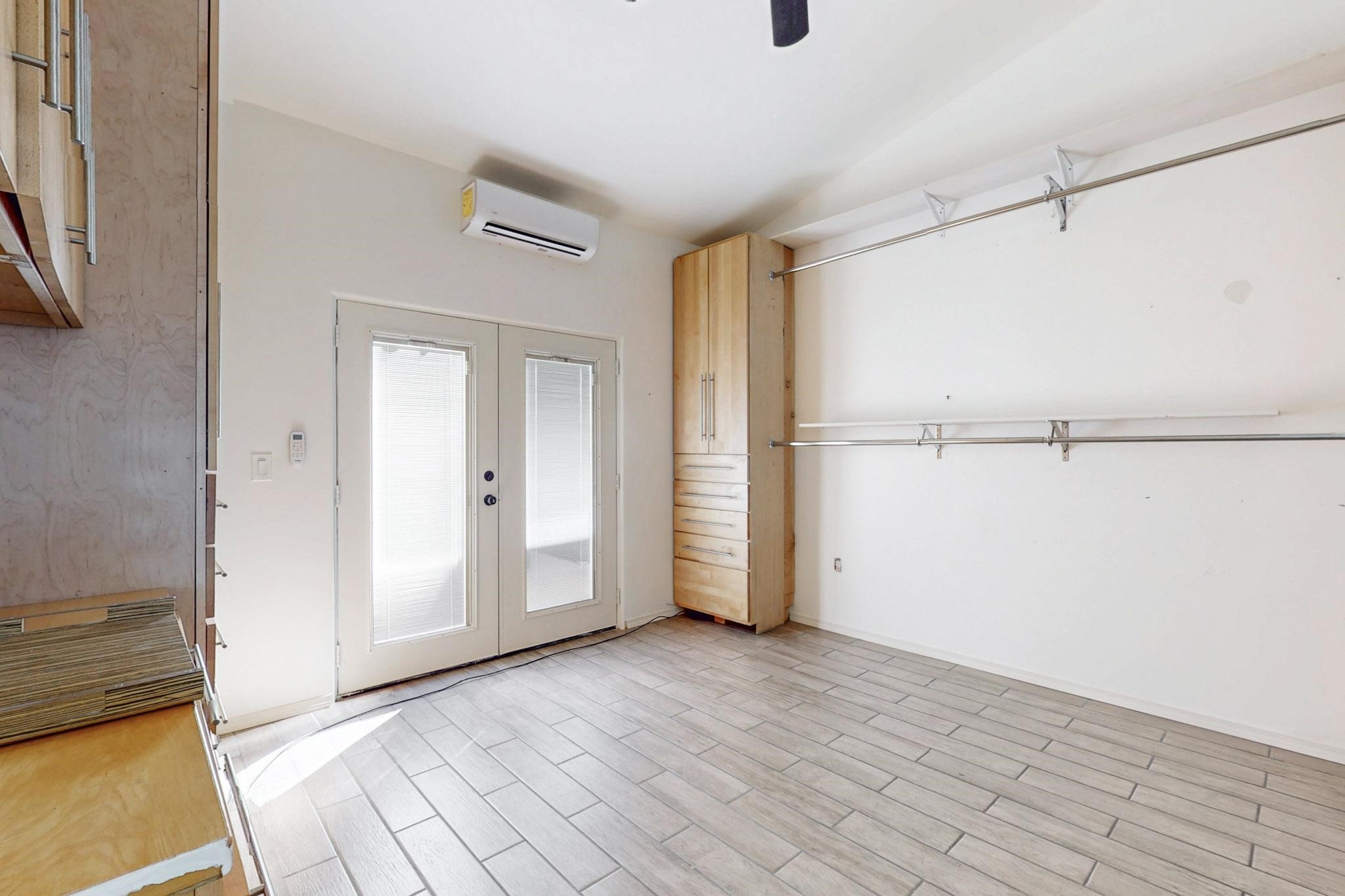 This beautiful single level contemporary style home exudes a modern flair and boasts an updated interior designed to cater to the needs of modern livng. The tasteful neutral color palette creates a warm & inviting atmosphere. Five bedrooms, each equipped with closets & built in cabinetry, offering ample storage and a clean, organized look. The primay bedroom with an adjoining bath features a huge walk-in closet with built in cabinetry. A fabulous kitchen featuring large countertop dining - perfect for casual meals and socializing. Designer cabinetry and upscale appliances including a Subzero refrigerator add to the appeal. The living area open to the kitchen features a stunning electric fireplace, providing both a cativating visual effect and ambiance. Just off this area is a versatile room - currently used as a media room but could be a formal dining room for family gatherings. Enjoy outdoor seating under a charming pergola, perfect for relaxing or entertaining guests. The gated driveway and side entrance offer privacy and security. Mini splits with solar panels providing low energy costs.