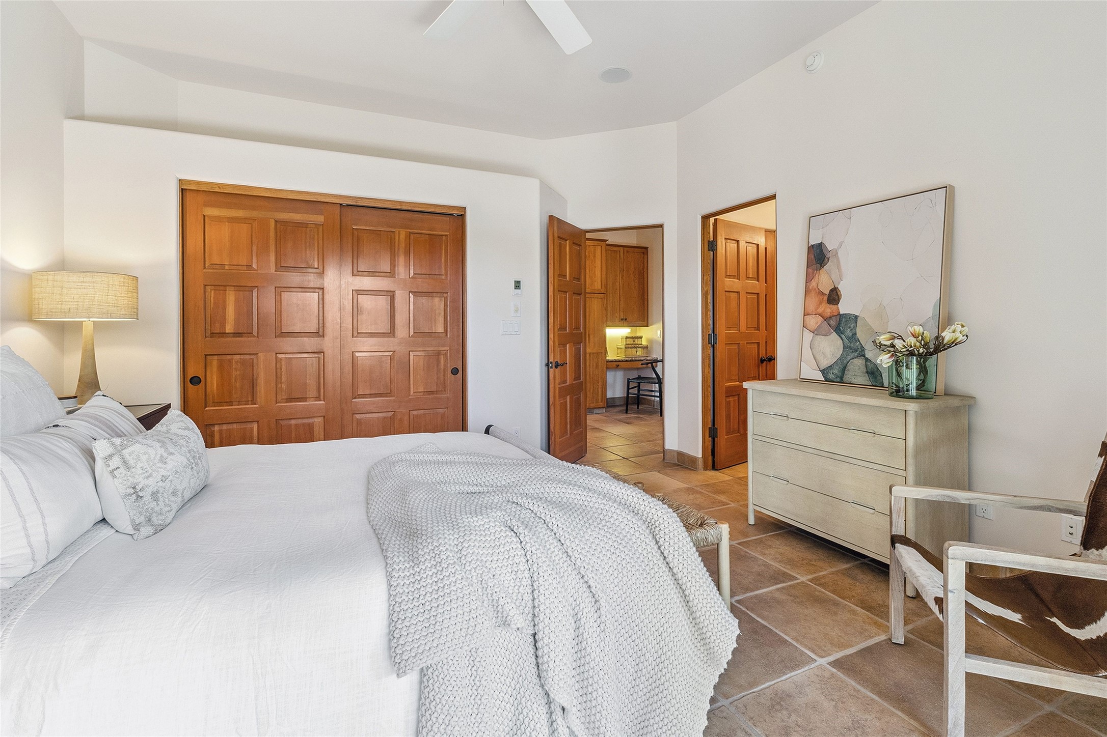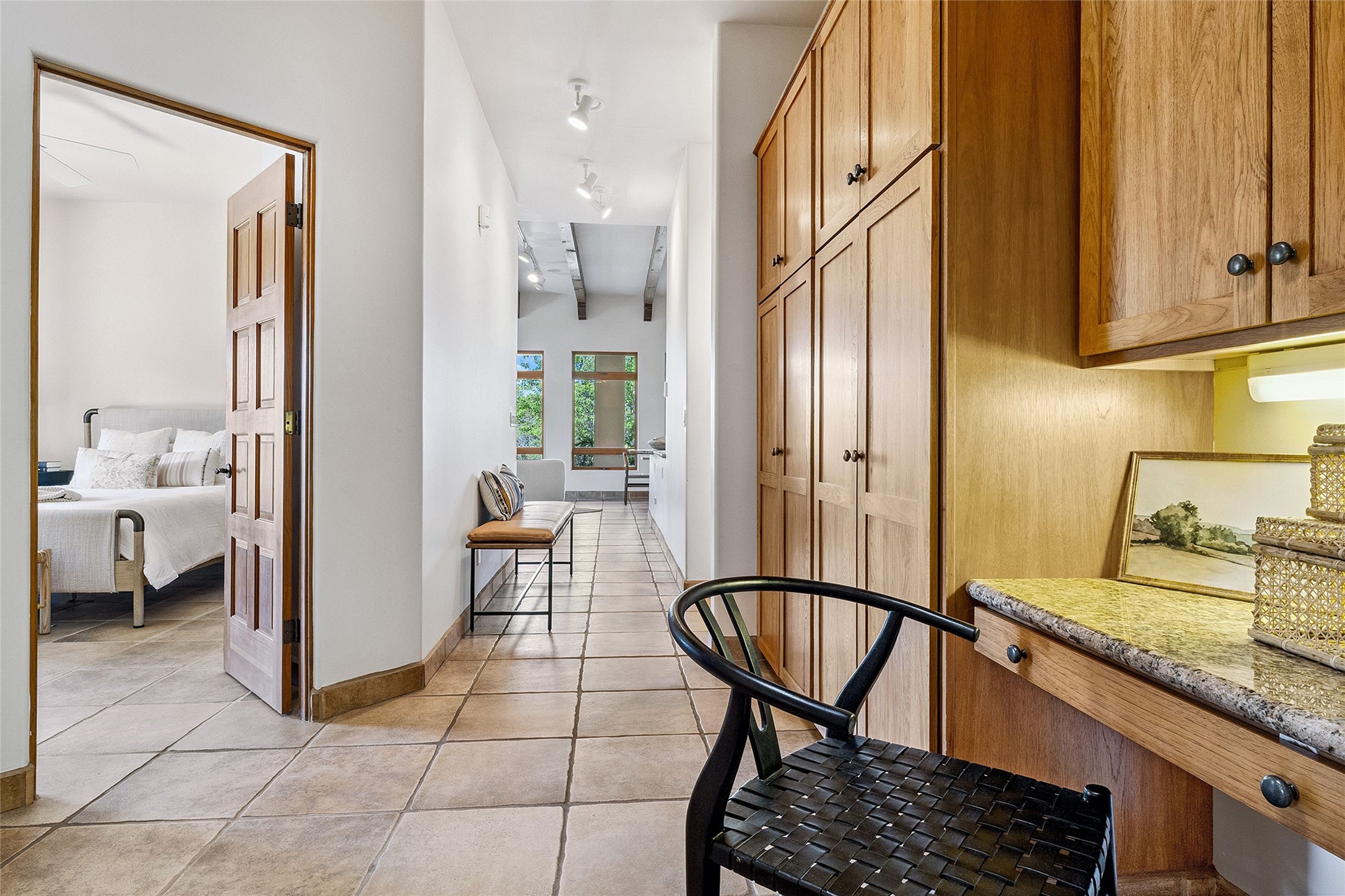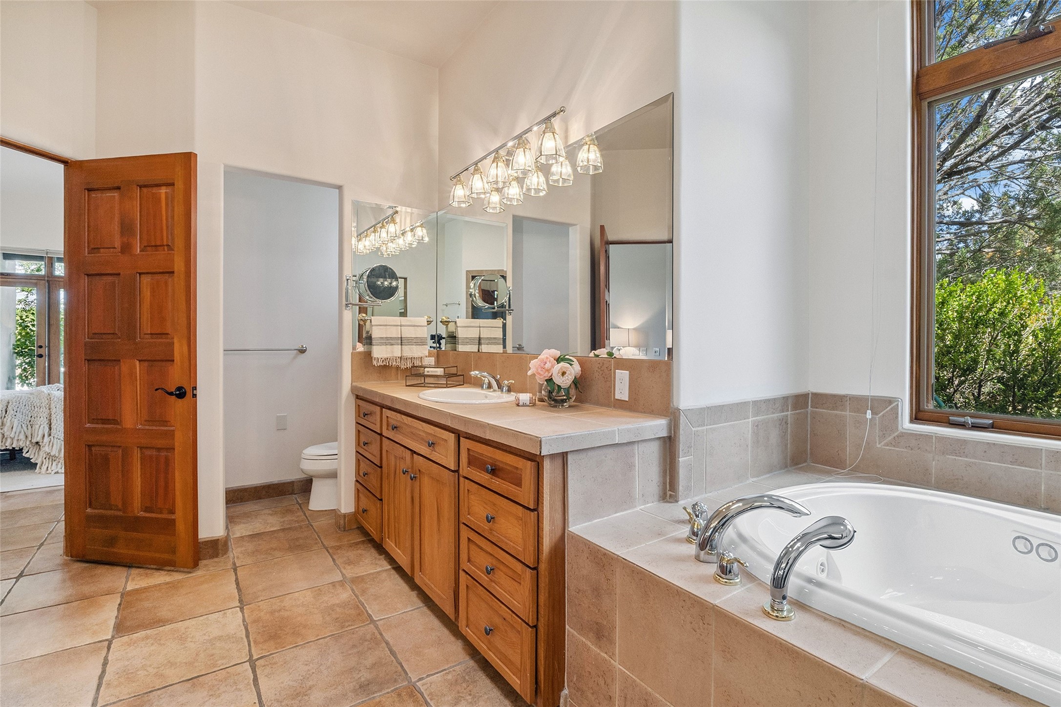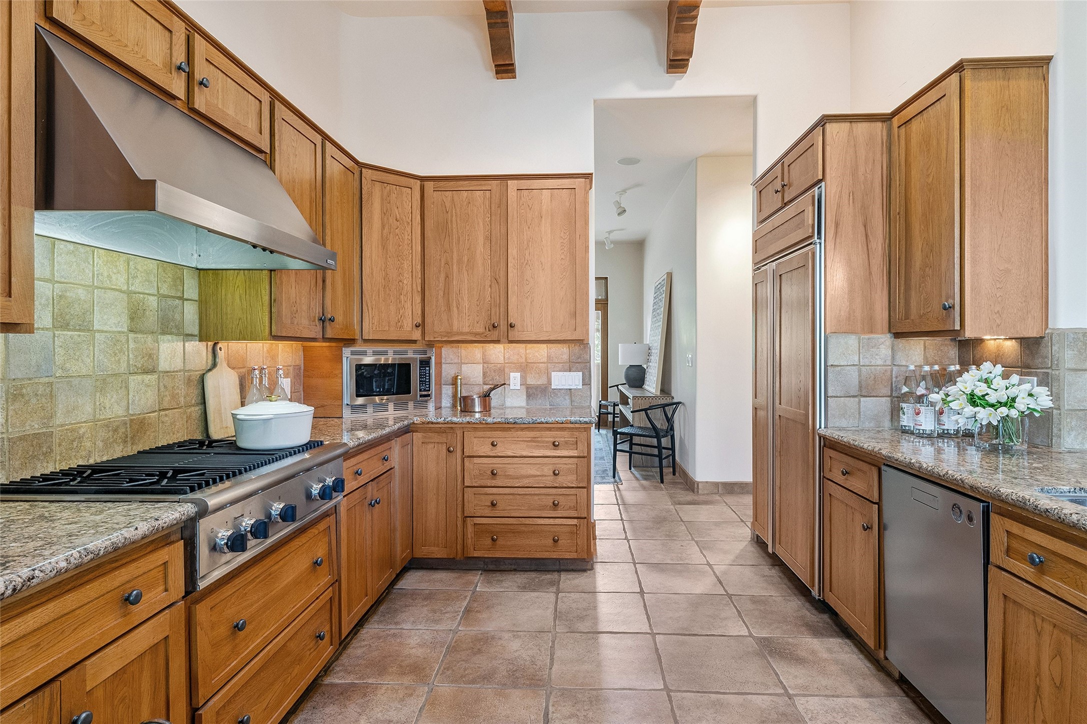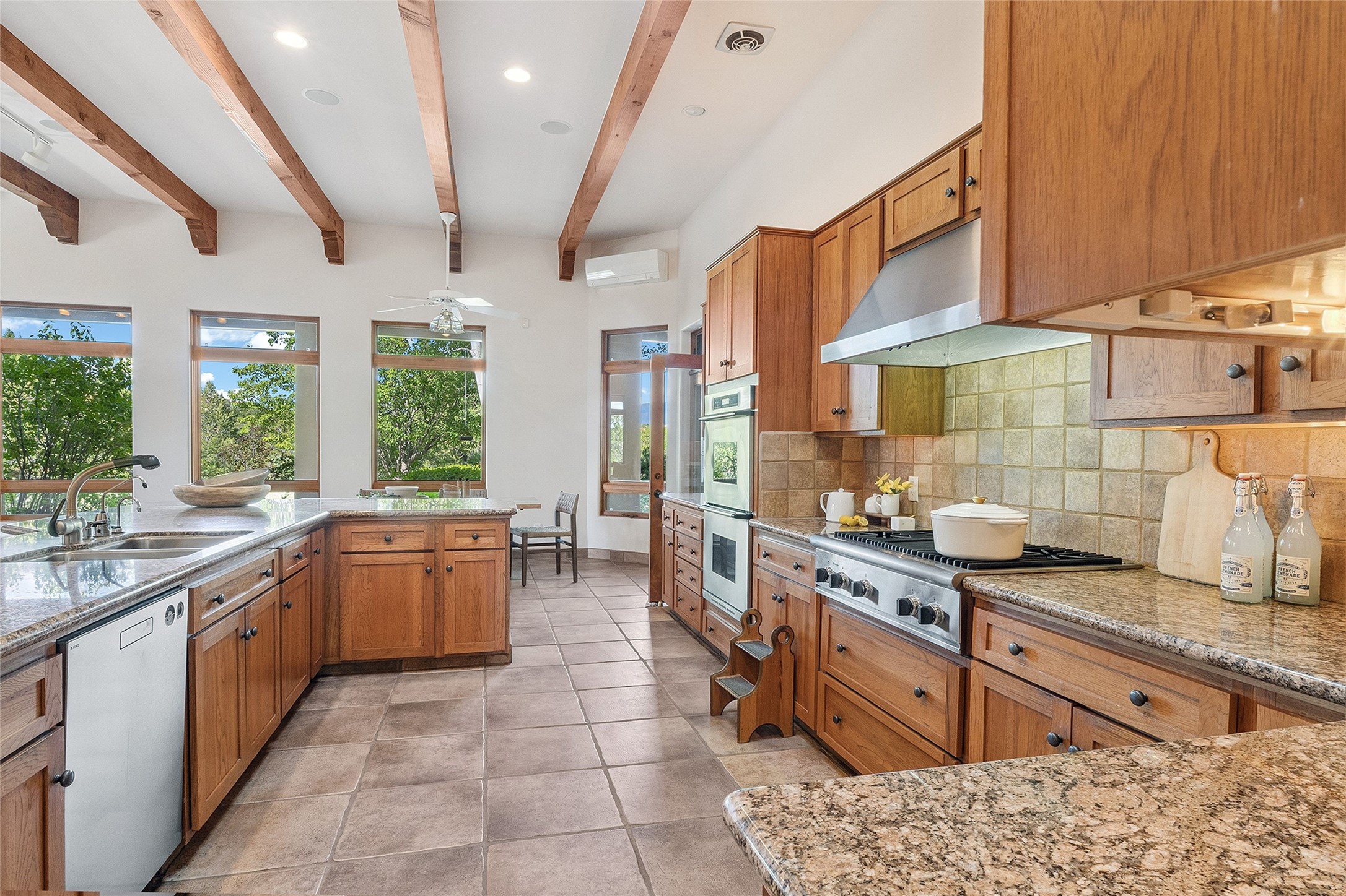 Welcome to 5 Estates Drive, an exciting home with stunning Sangre De Cristo Mountain views and a rare, flexible floor plan, featuring 4 bedrooms plus an attached studio and a heated 3-car garage. Located within the famed community of Las Campanas and sited for maximum privacy and serenity, on a 2-acre view lot, this exceptional single level home impresses with captivating design features and quality craftsmanship. Located within close proximity to the iconic Santa Fe Plaza and The Club at Las Campanas, this extraordinary home offers the ultimate blend of modern design, with the inherent warmth of an iconic Santa Fe home. Design highlights include a welcoming formal living room directly off the front entrance, with framed mountain views and an expansive casual living room with soaring ceilings, rich beams, view windows, a grand fireplace and custom built-in shelving. Ideal for entertaining, the beautifully appointed chef's kitchen with a wraparound breakfast bar, opens to the casual living room and breakfast dining area, with direct access to the outdoor dining area, built-in Viking BBQ and vast outdoor entertainment areas and gardens. The owner's suite delights with views, fireplace, backyard access and a spacious bath with a soaking tub, walk-in shower and a large walk-in closet. Adjacent to the owner's suite is an ideal office or guest bedroom, with an adjacent bath complete with a steam shower. Separate from the main living areas are 2 additional, guest bedrooms which share bath. The attached heated studio is accessed through the garage, complete with a utility sink and built-in shelving. The outdoor living experience is one of the finest, ideal for large gatherings, gardening or simply to just enjoy the vibrant gardens, fountains, surround aspens and pure tranquility. The owner's Equity Social Membership to The Club at Las Campanas is available for purchase on a separate bill of sale. This one is not to be missed and is move-in ready, just in time for summer!