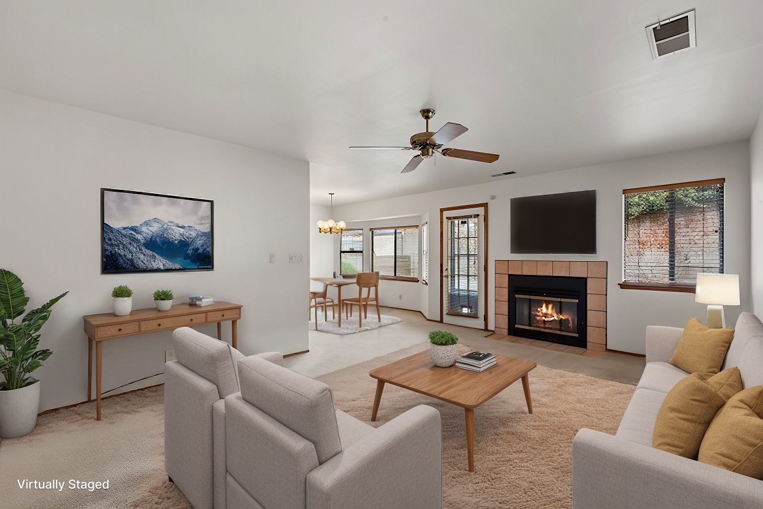 Welcome to this charming 1,300 sq. ft. patio home, lovingly maintained by its original owner since 1986! Nestled in a quiet, well-established neighborhood, this home offers a warm and inviting atmosphere with thoughtful features throughout. As you step inside, you're greeted by a spacious living room centered around a cozy wood-burning fireplace, perfect for chilly evenings. The home boasts three well-sized bedrooms and two full bathrooms, providing ample space for family, guests, or even a home office. The primary suite includes an ensuite bath for added privacy and convenience and door to back patio. The kitchen offers generous counter space and cabinetry, ideal for home cooking and entertaining. Adjacent to the kitchen, you'll find a dining area that opens to a private outdoorspace, perfect for morning coffee or evening relaxation.A pitched tile roof adds to the home's durability and curb appeal, while the attached two-car garage provides secure parking and extra storage.With its original charm, well-maintained condition, and fantastic layout, this patio home is a rare find.Don't miss the chance to make it yoursschedule a showing today!