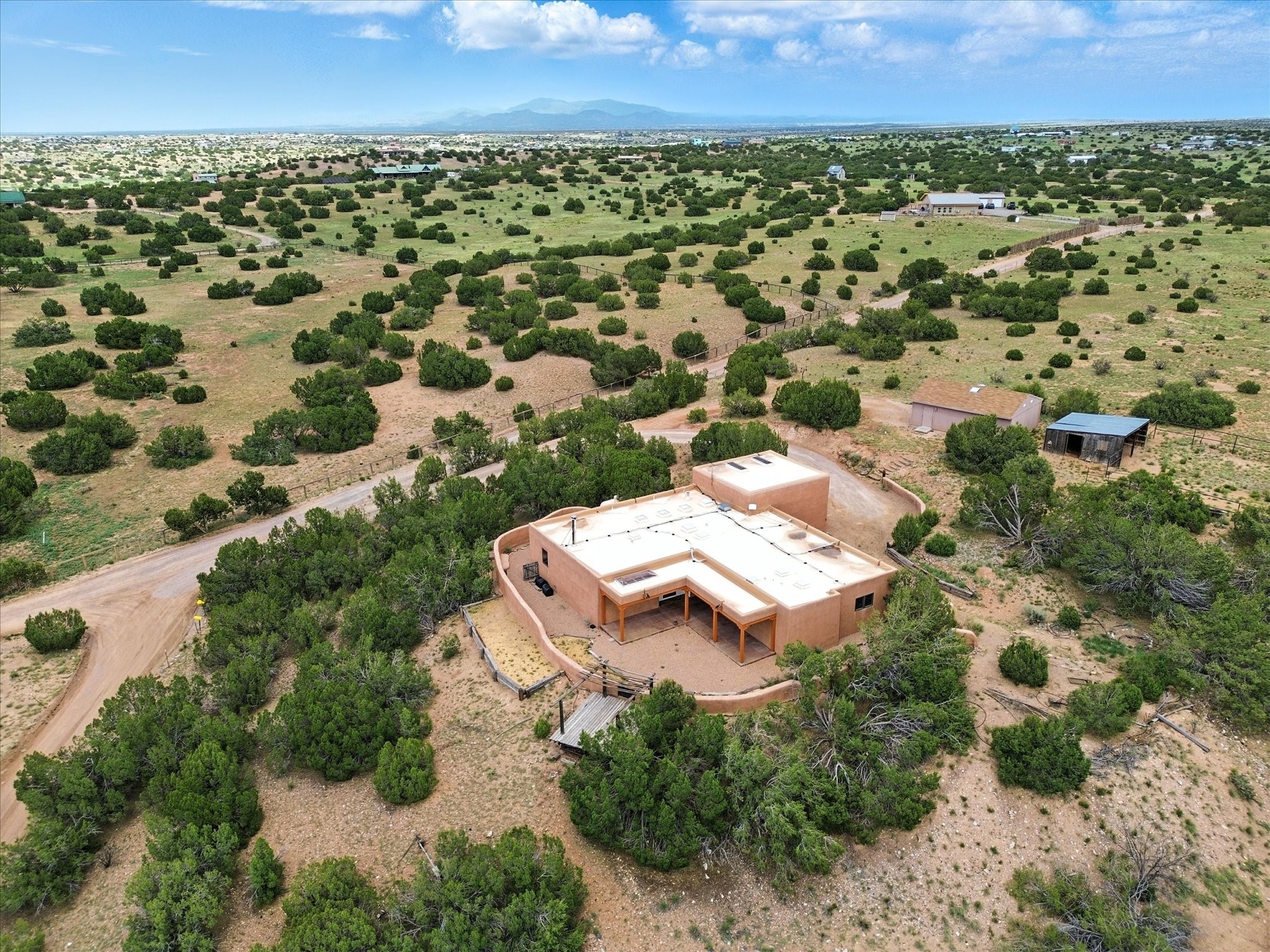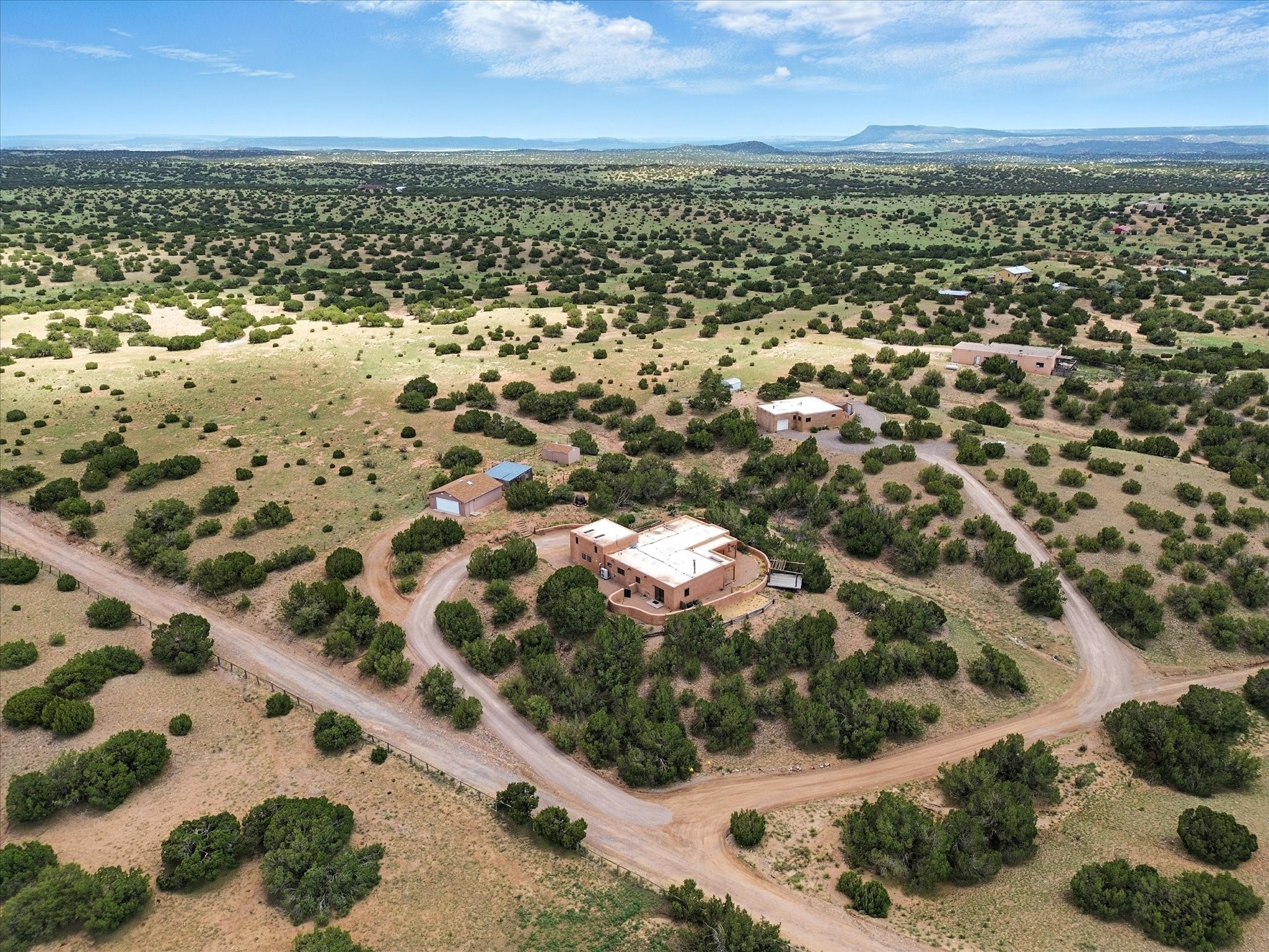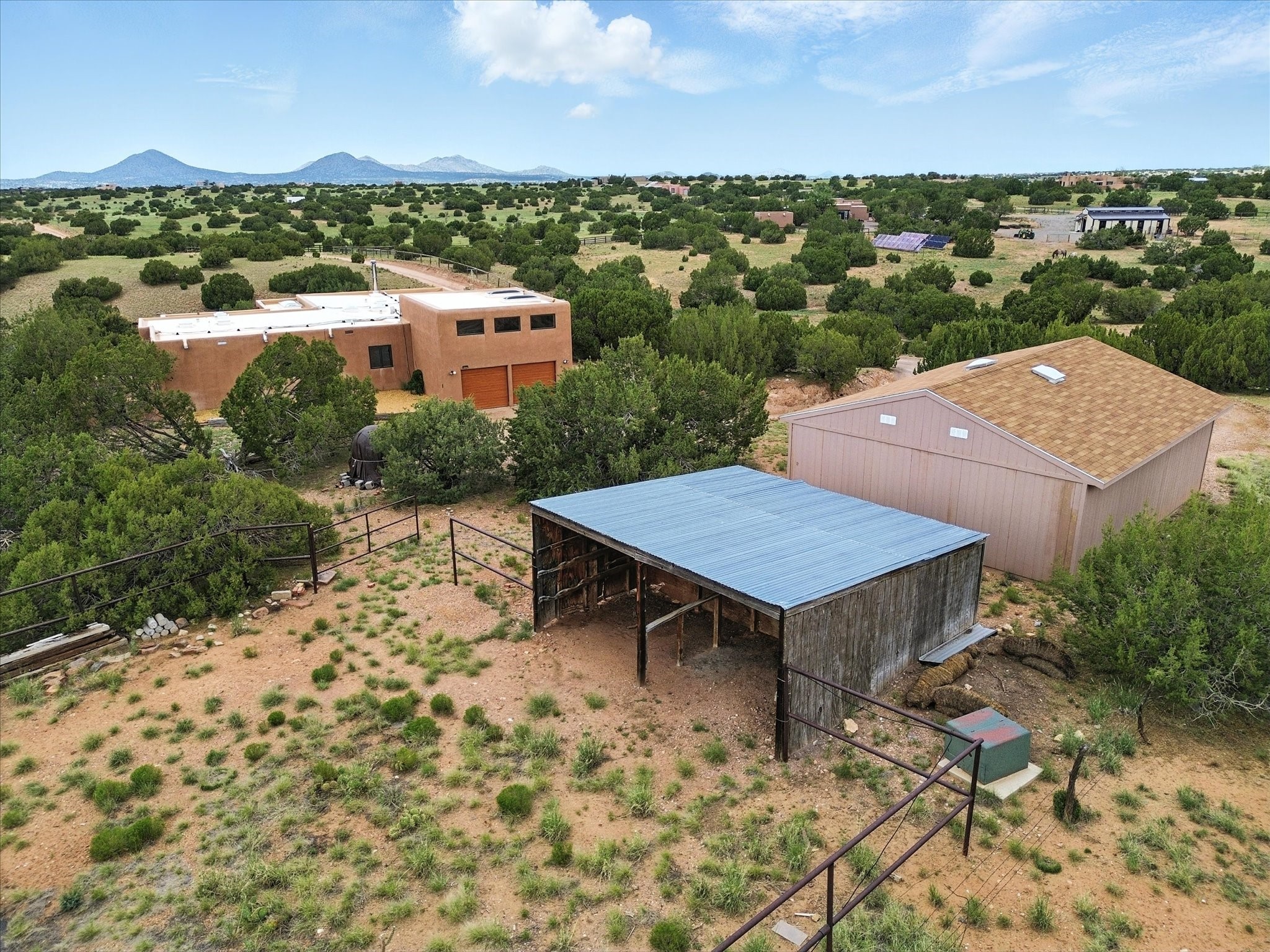Experience the tranquility and space of rural living just south of Santa Fe and west of the Galisteo area. Set amidst a landscape of large-acreage properties, this private estate offers breathtaking vistas, abundant space, and versatile amenities. The main house welcomes you with a grand portal, perfectly positioned to capture panoramic views to the south and west, along with four bedrooms and three bathrooms. Inside, you'll find generous living areas designed for comfort, connection, and relaxation. A separate Guest House accessed via its own private driveway offers complete independence for guests, extended family, or rental opportunities. The guest house is equipped with two bedrooms and two bathrooms. The expansive property includes multiple outbuildings, including a well-equipped workshop and a corral with shelter, ideal for animals or hobby farming. Whether you're seeking a serene retreat, multigenerational living, or a lifestyle that embraces both nature and functionality, this property delivers. Do not miss this rare opportunity to own a peaceful and private haven. Imagine the possibilities and schedule your private showing today.