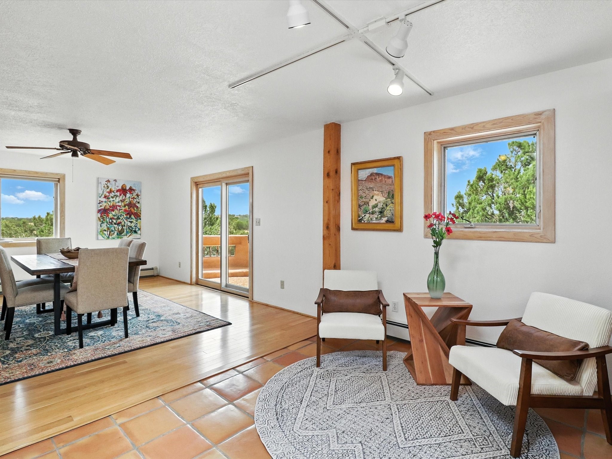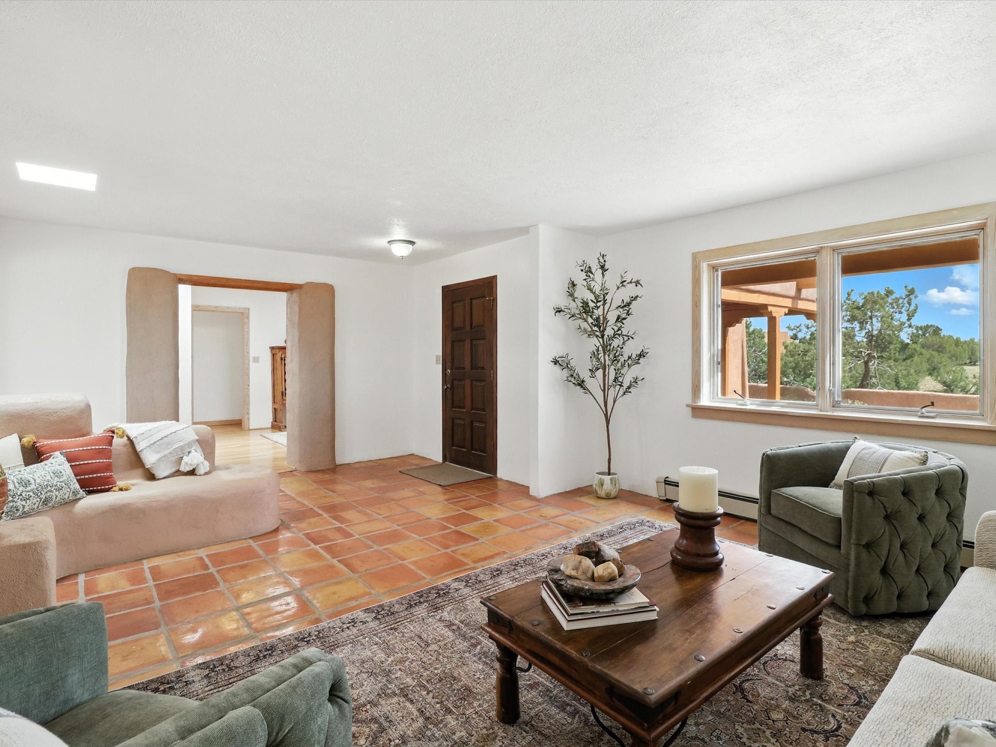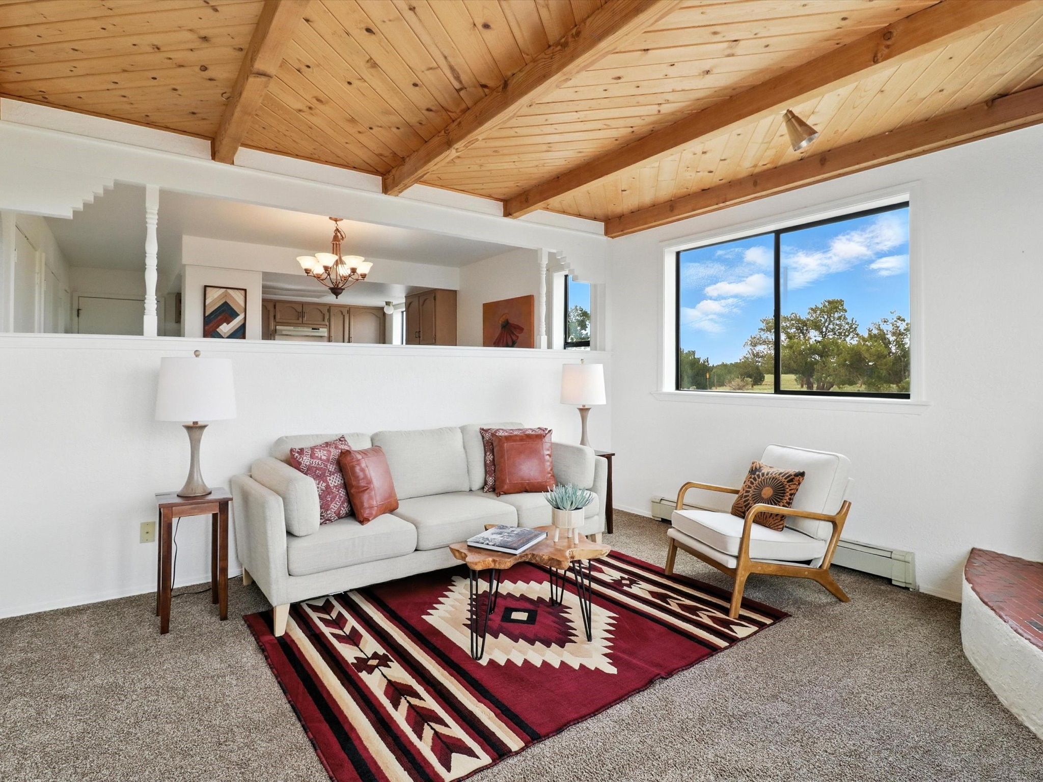 Experience the tranquility and space of rural living just south of Santa Fe and west of the Galisteo area. Set amidst a landscape of large-acreage properties, this private estate offers breathtaking vistas, abundant space, and versatile amenities. The main house welcomes you with a grand portal, perfectly positioned to capture panoramic views to the south and west, along with four bedrooms and three bathrooms. Inside, you'll find generous living areas designed for comfort, connection, and relaxation. A separate Guest House accessed via its own private driveway offers complete independence for guests, extended family, or rental opportunities. The guest house is equipped with two bedrooms and two bathrooms. The expansive property includes multiple outbuildings, including a well-equipped workshop and a corral with shelter, ideal for animals or hobby farming. Whether you're seeking a serene retreat, multigenerational living, or a lifestyle that embraces both nature and functionality, this property delivers. Do not miss this rare opportunity to own a peaceful and private haven. Imagine the possibilities and schedule your private showing today.