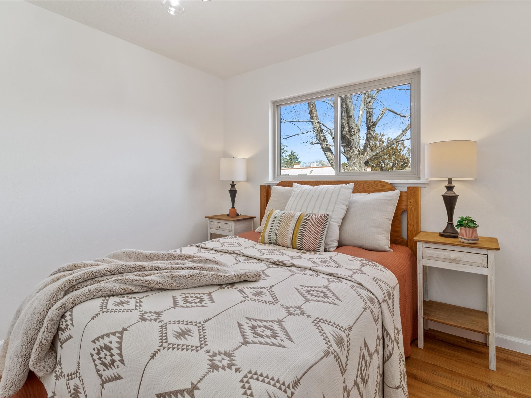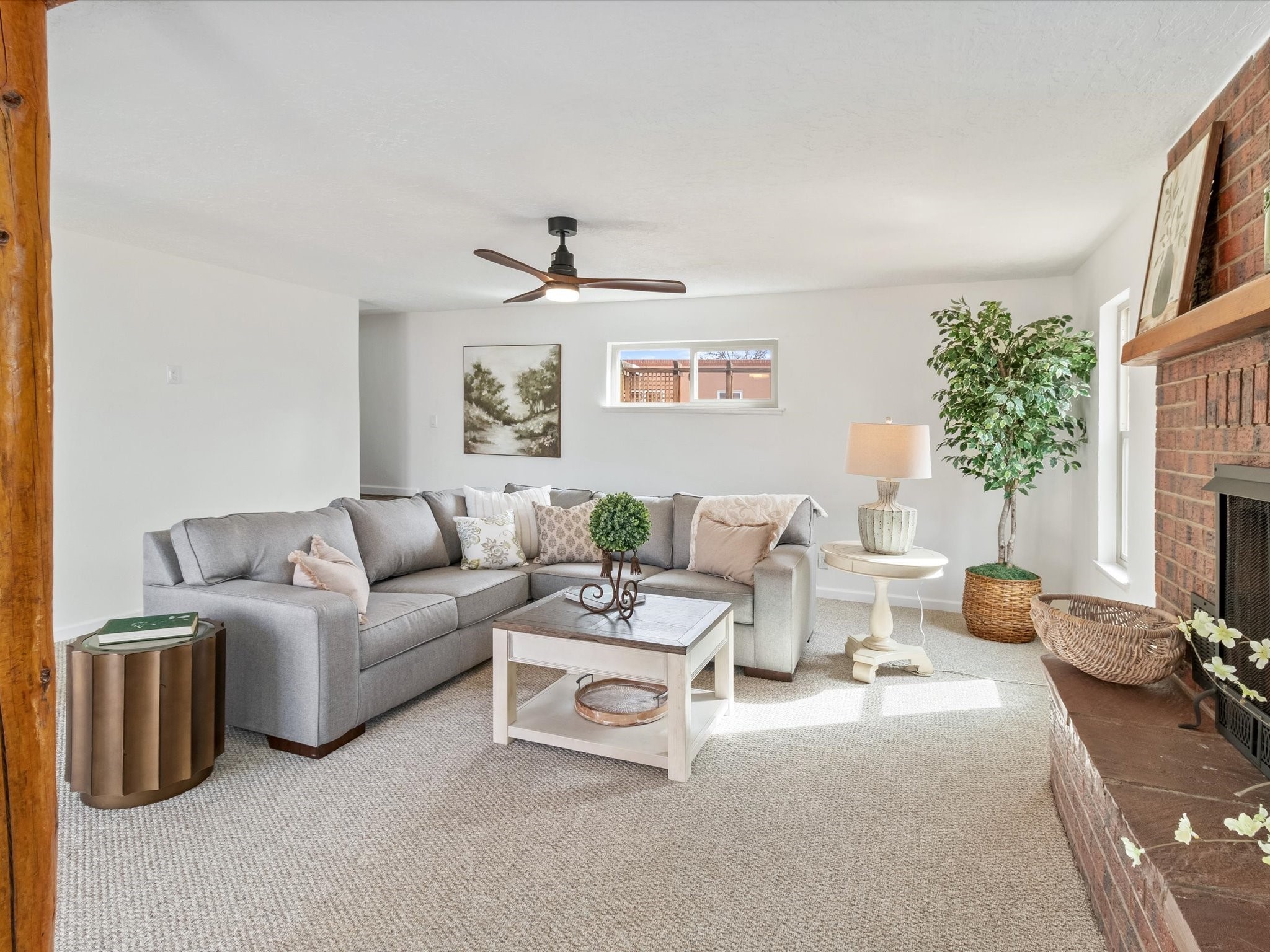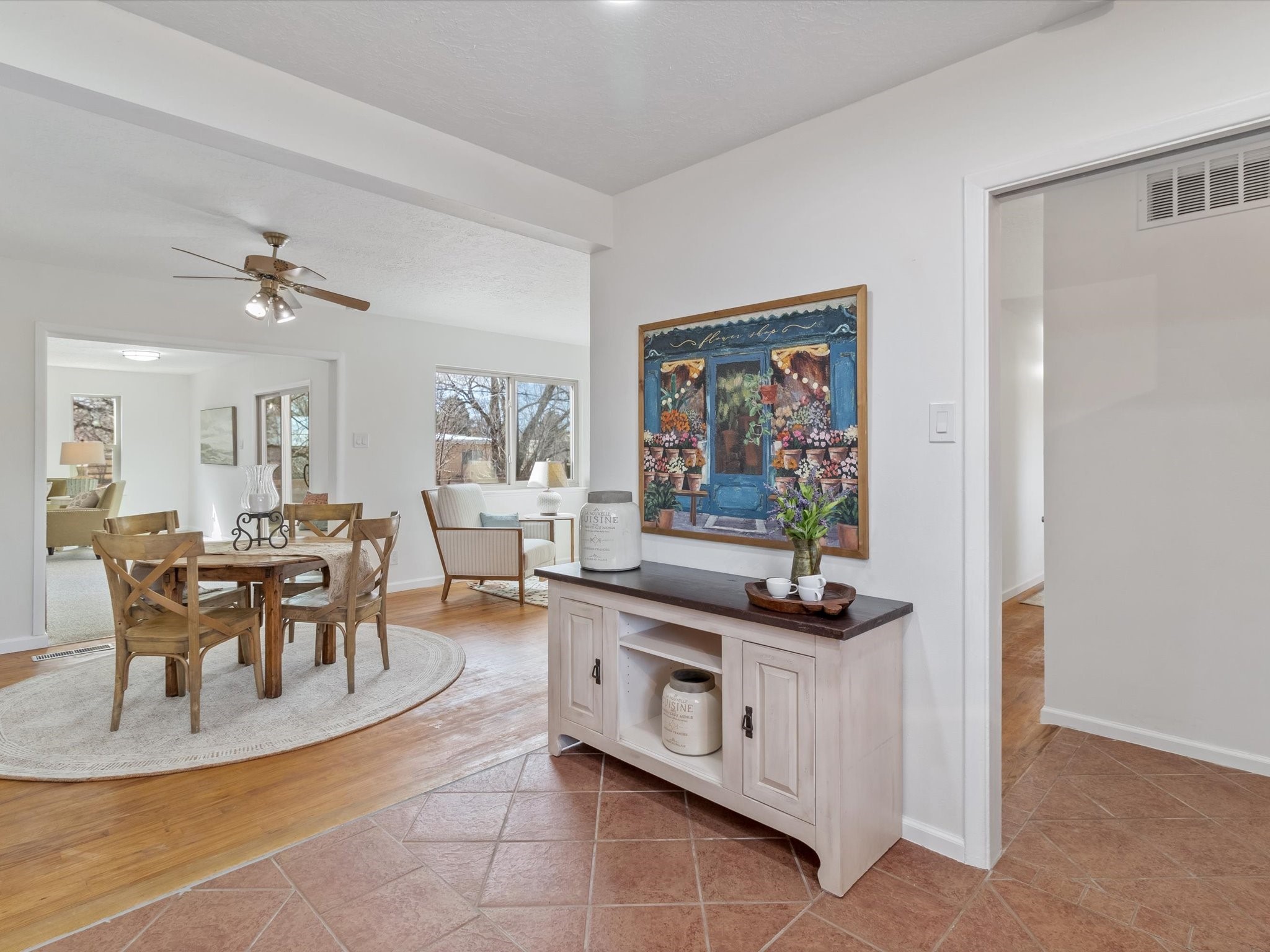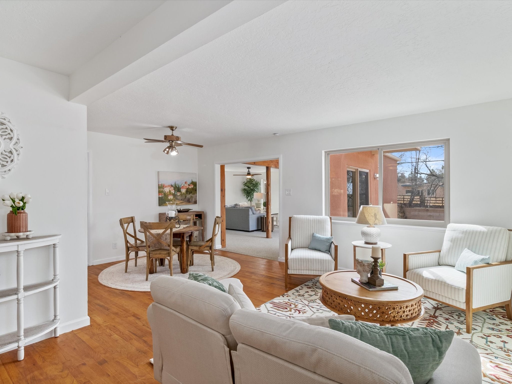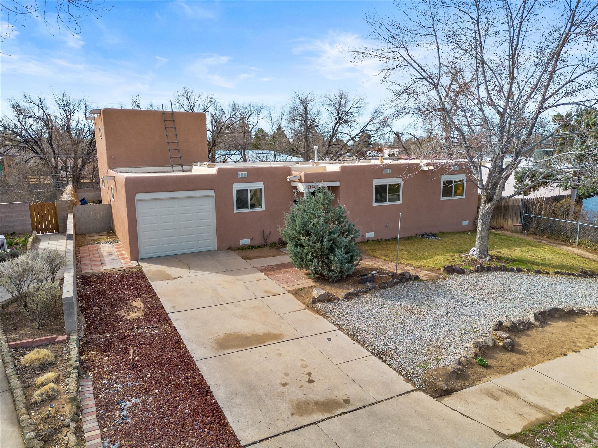 Welcome to this meticulously maintained, one-owner Pueblo-style home just minutes from the vibrant Midtown Development. With four spacious bedrooms, two full bathrooms, and over 2,000 square feet of living space, this property showcases true pride of ownership and offers the perfect blend of classic Santa Fe charm and thoughtful modern updates. Step inside to discover stunning, refinished original hardwood floors, fresh interior paint, and newly updated kitchen and bathrooms. The warm and inviting gathering area off the dining room features a cozy wood burning fireplace and opens directly to the private backyard--ideal for entertaining or unwinding under the New Mexico sky. Additional updates include new windows and stucco, a roof under warranty, and an attached garage with two additional parking spaces. The home features a mix of hardwood, tile, and laminate flooring, and offers a functional two-story layout full of character and flow. Conveniently located near the Zia Rail Station, Arroyo Chamisa Trail, local parks, and schools, this property offers a unique balance of serenity and accessibility in the heart of Midtown Santa Fe. Whether you're looking for a comfortable family residence or a smart investment in a growing area, this move-in ready home is full of potential. Don't miss this opportunity! Imagine the possibilities and schedule your showing today.