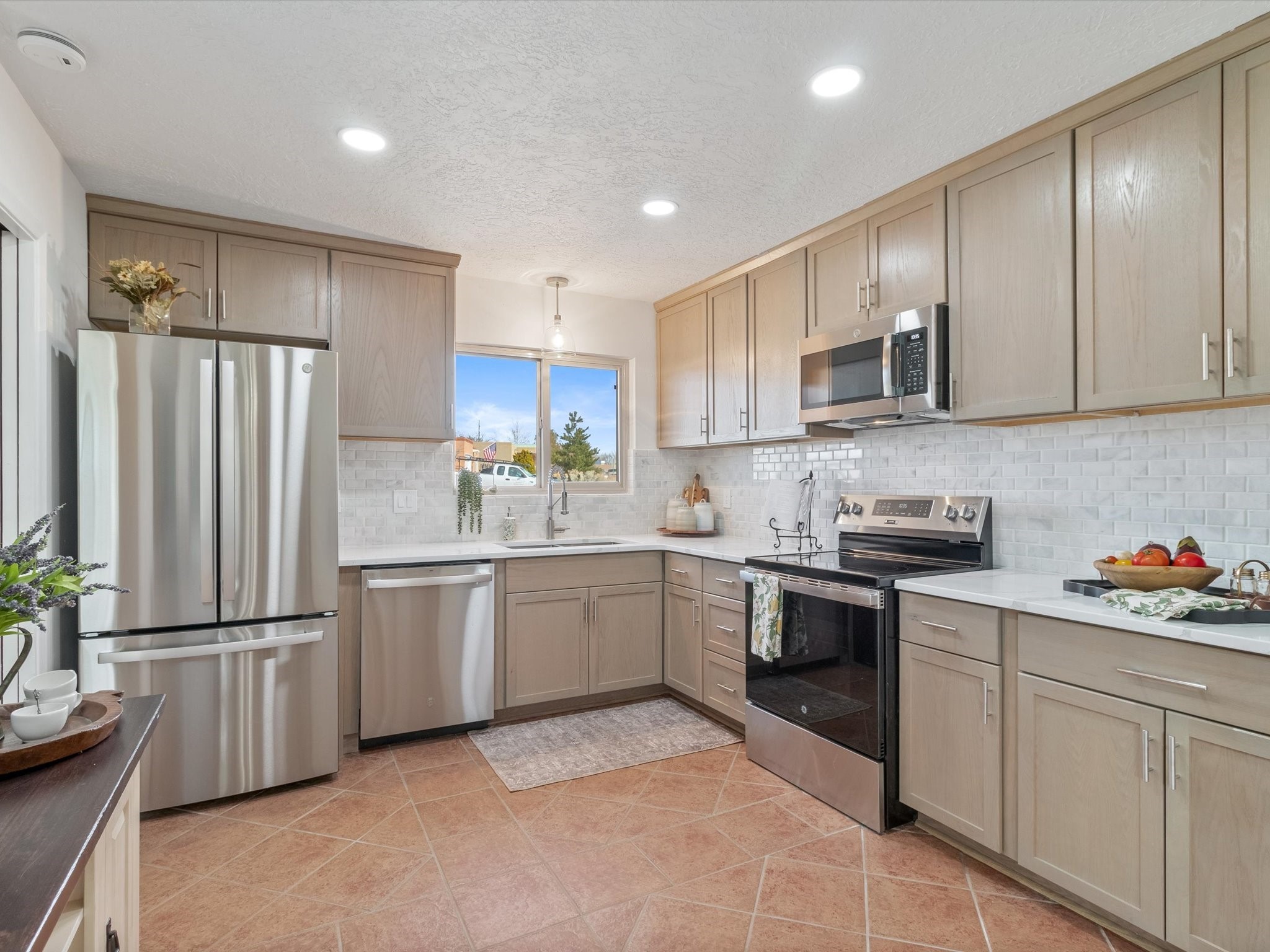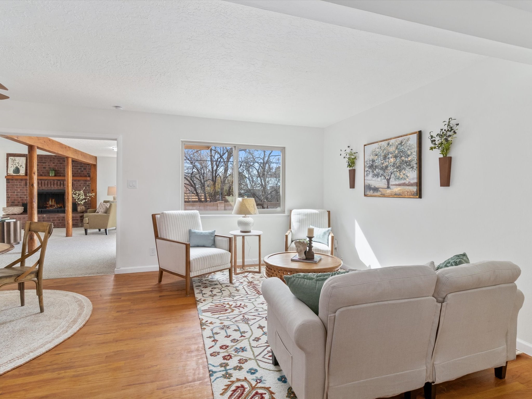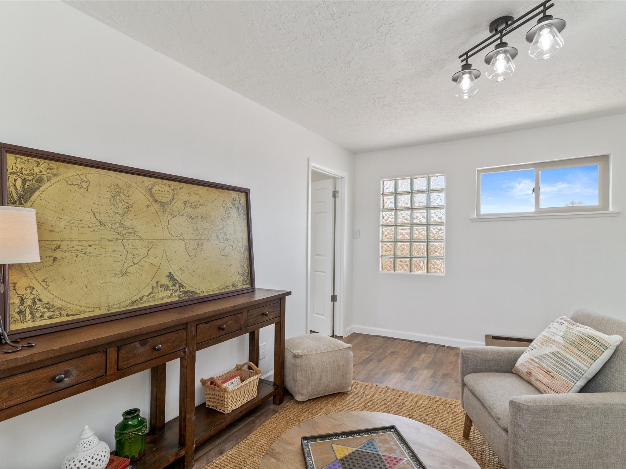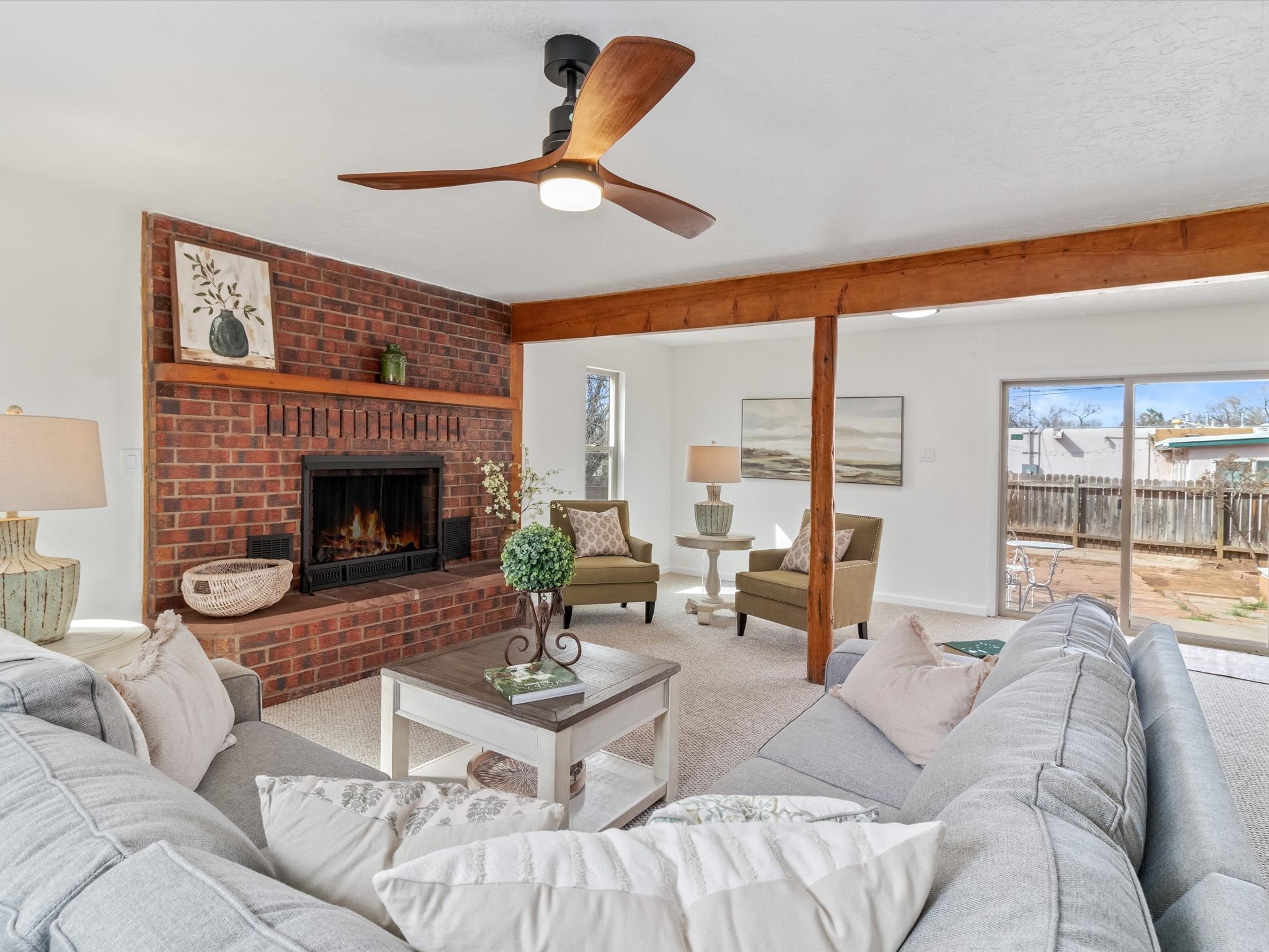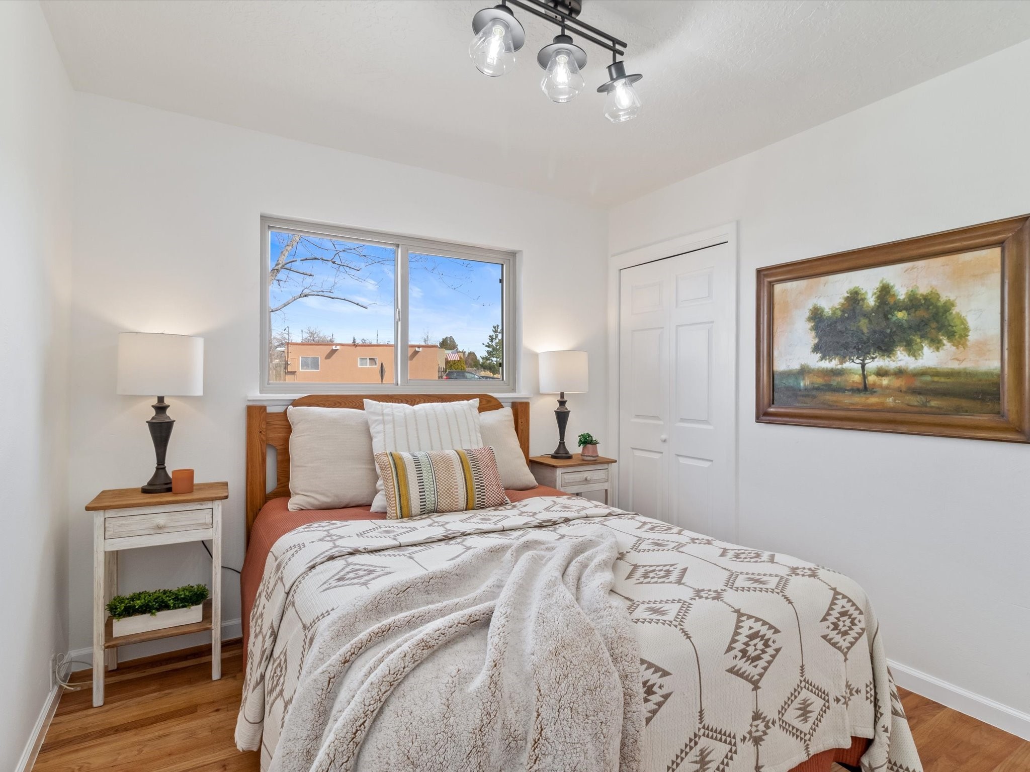 Welcome to this meticulously maintained, one-owner Pueblo-style home just minutes from the vibrant Midtown Development. With four spacious bedrooms, two full bathrooms, and over 2,000 square feet of living space, this property showcases true pride of ownership and offers the perfect blend of classic Santa Fe charm and thoughtful modern updates. Step inside to discover stunning, refinished original hardwood floors, fresh interior paint, and newly updated kitchen and bathrooms. The warm and inviting gathering area off the dining room features a cozy wood burning fireplace and opens directly to the private backyard--ideal for entertaining or unwinding under the New Mexico sky. Additional updates include new windows and stucco, a roof under warranty, and an attached garage with two additional parking spaces. The home features a mix of hardwood, tile, and laminate flooring, and offers a functional two-story layout full of character and flow. Conveniently located near the Zia Rail Station, Arroyo Chamisa Trail, local parks, and schools, this property offers a unique balance of serenity and accessibility in the heart of Midtown Santa Fe. Whether you're looking for a comfortable family residence or a smart investment in a growing area, this move-in ready home is full of potential. Don't miss this opportunity! Imagine the possibilities and schedule your showing today.