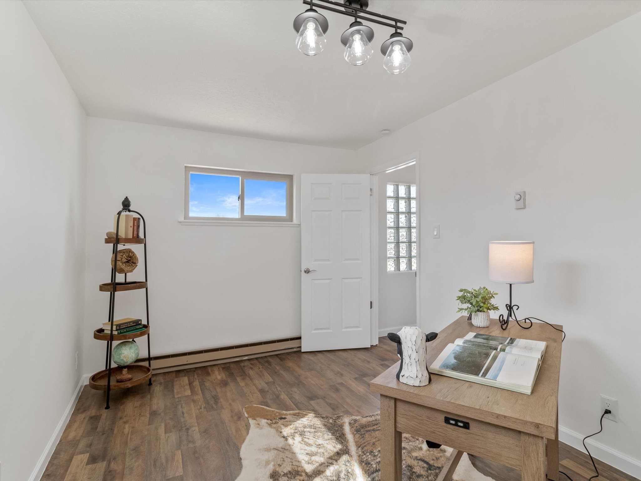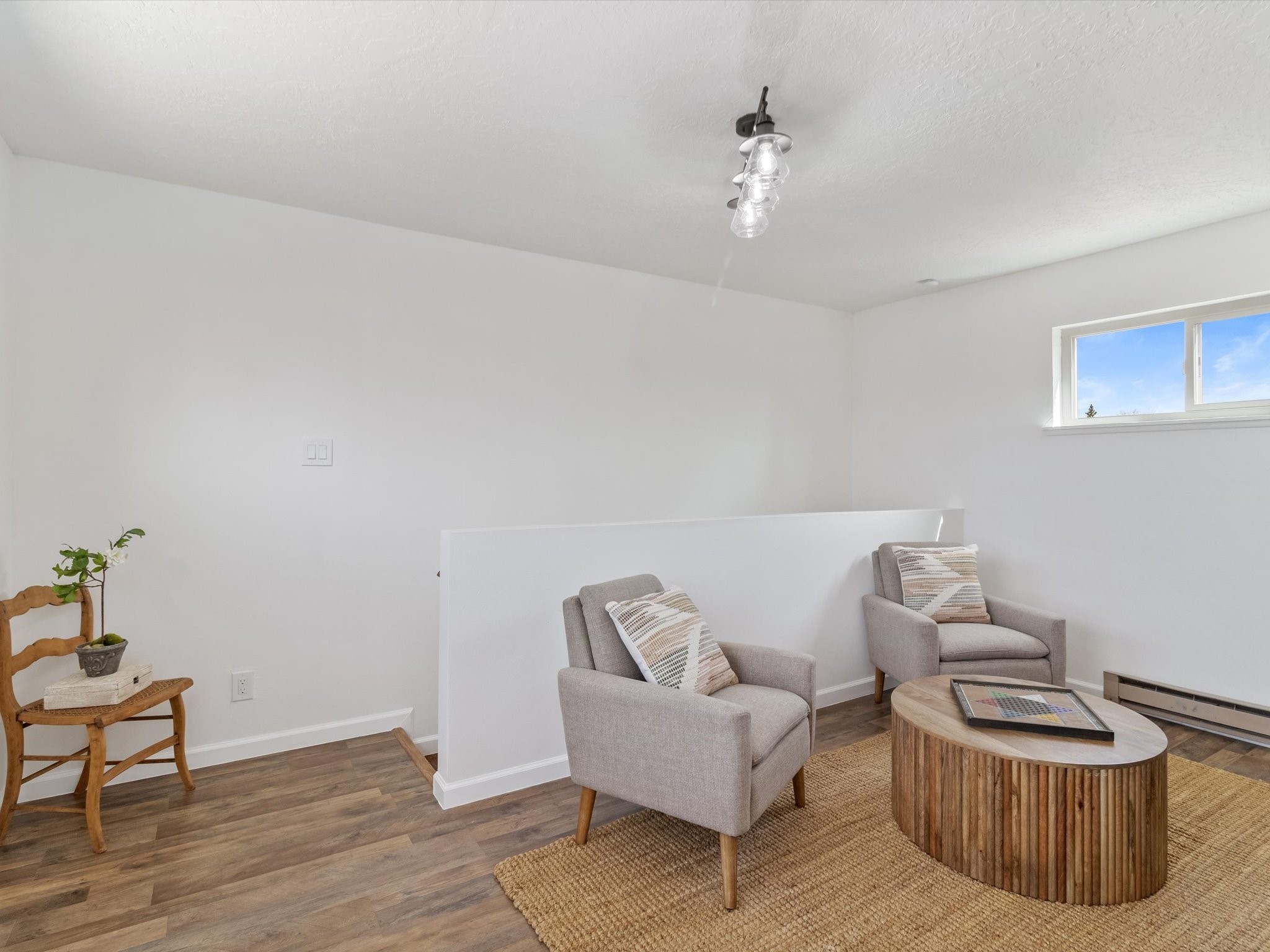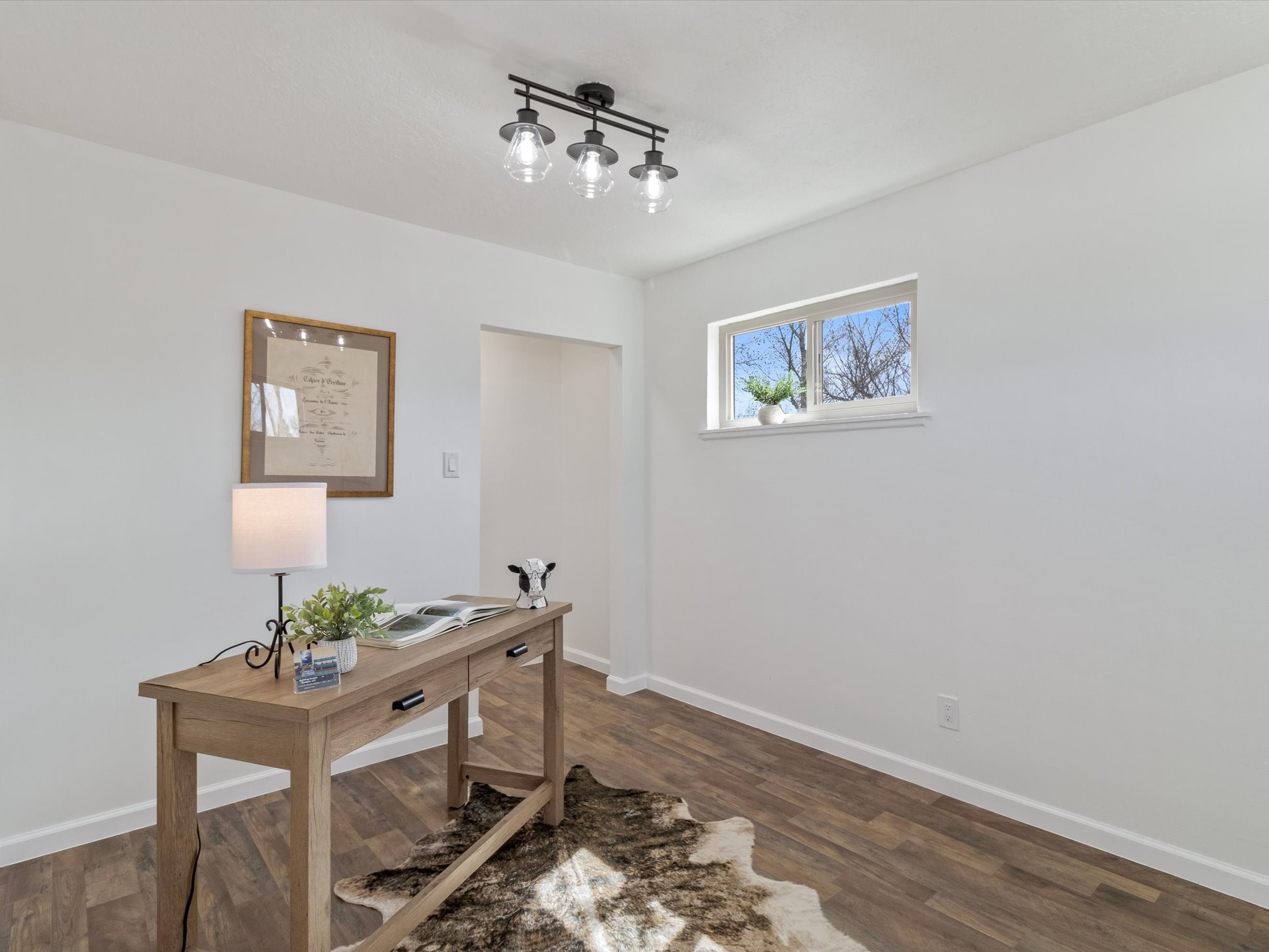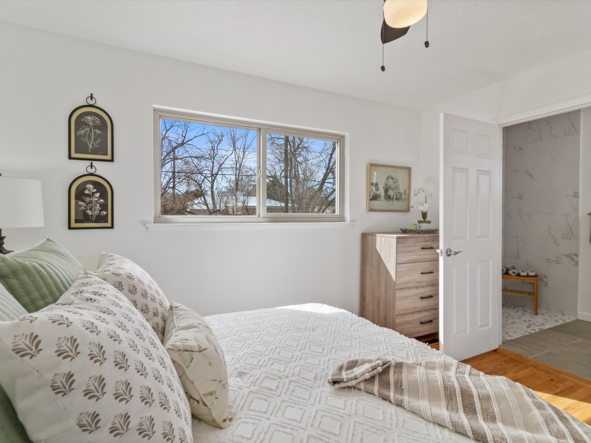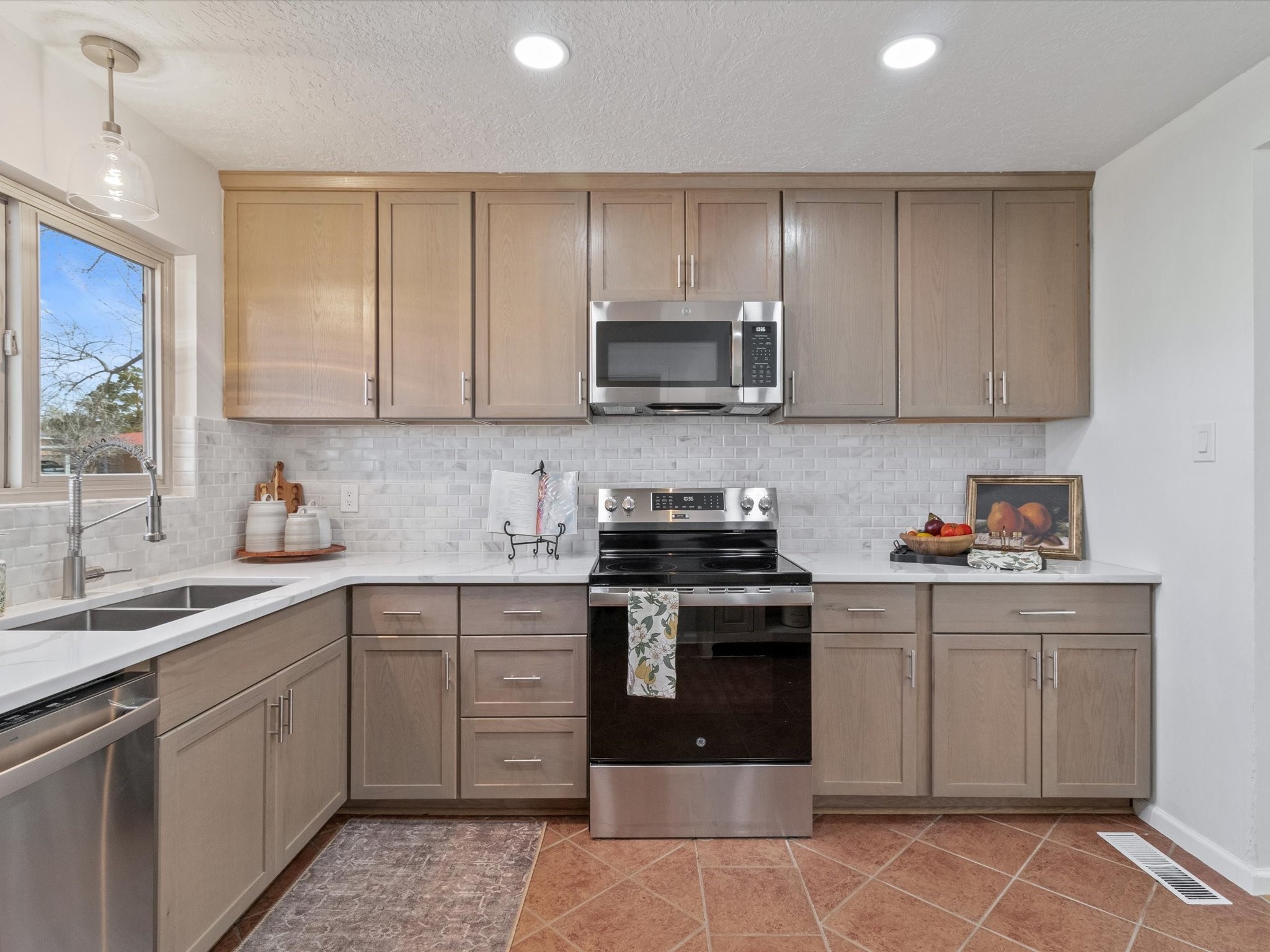 Welcome to this meticulously maintained, one-owner Pueblo-style home just minutes from the vibrant Midtown Development. With four spacious bedrooms, two full bathrooms, and over 2,000 square feet of living space, this property showcases true pride of ownership and offers the perfect blend of classic Santa Fe charm and thoughtful modern updates. Step inside to discover stunning, refinished original hardwood floors, fresh interior paint, and newly updated kitchen and bathrooms. The warm and inviting gathering area off the dining room features a cozy wood burning fireplace and opens directly to the private backyard--ideal for entertaining or unwinding under the New Mexico sky. Additional updates include new windows and stucco, a roof under warranty, and an attached garage with two additional parking spaces. The home features a mix of hardwood, tile, and laminate flooring, and offers a functional two-story layout full of character and flow. Conveniently located near the Zia Rail Station, Arroyo Chamisa Trail, local parks, and schools, this property offers a unique balance of serenity and accessibility in the heart of Midtown Santa Fe. Whether you're looking for a comfortable family residence or a smart investment in a growing area, this move-in ready home is full of potential. Don't miss this opportunity! Imagine the possibilities and schedule your showing today.