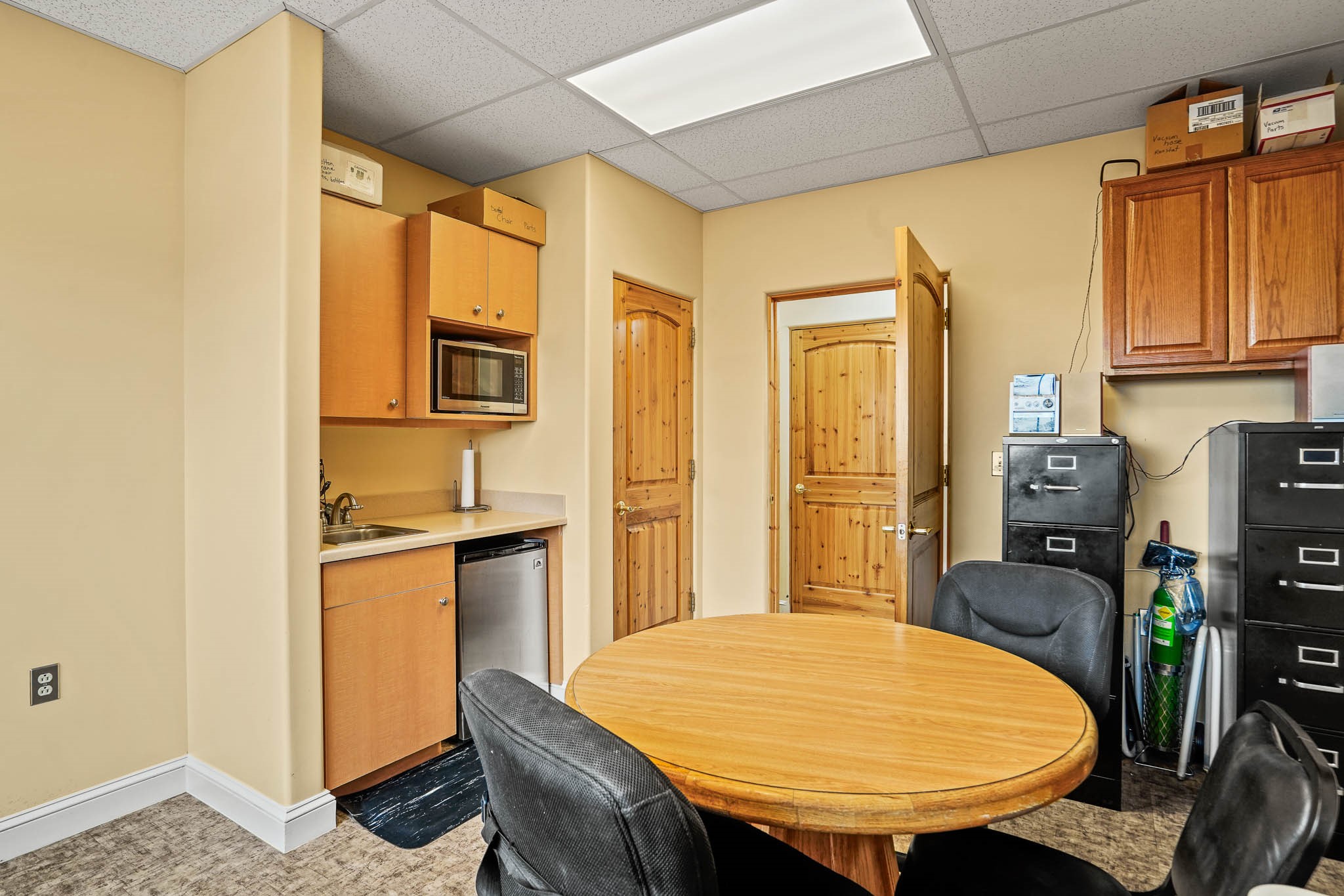 This well-located ground-floor office space, situated within a beautifully constructed building and offering easy access to major thoroughfares in Santa Fe, is a rare find. Just off the main lobby, clients are welcomed into a large, inviting reception and waiting area. The reception features an efficient layout with ample space for two staff workstations. The suite includes five well-equipped, spacious exam rooms that provide comfort for both staff and patients, as well as a dedicated lab and a large back office with a staff restroom and break area. Additional highlights include ample parking and well-maintained landscaped exterior. Furniture, fixtures, and equipment are negotiable.