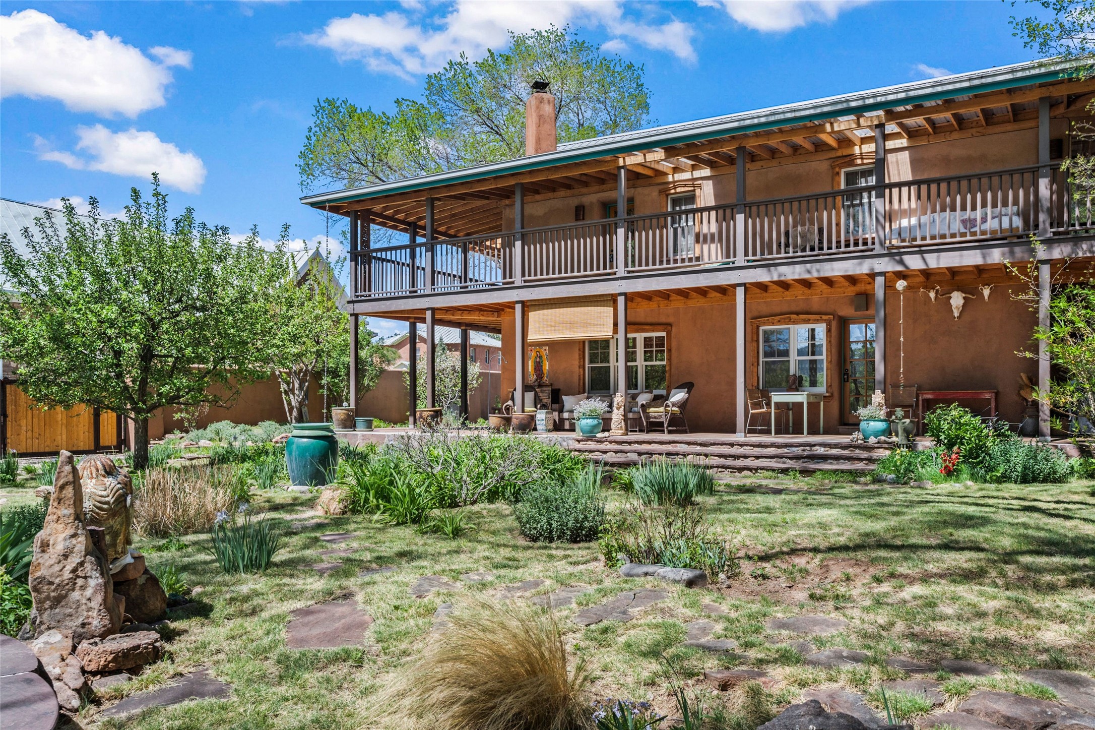 Own a Piece of History - 1865 Adobe Home with Modern ComfortsStep into the past while enjoying modern luxuries in this beautifully redone 2-story adobe home, originally built in 1865. Nestled on the edge of the wilderness, this one-of-a-kind property offers breathtaking views, rich history, and an open layout designed for both comfort and character. Surrounded by a double adobe wall for total privacy. Inside, you'll find classic Southwest details like vigas, Saltillo tile floors, and a striking kiva fireplace in the living room, adorned with Palo Solari tiles and bronze accents. Downstairs offers combined kitchen and dining, living room with kiva, and full bathroom for convenience. Upstairs, the spacious primary bedroom features a second kiva fireplace, an en-suite bathroom with a tub and steam shower, and access to a large wraparound balcony, perfect for soaking in the stunning sunrises and wildlife sightings. Office space or flex space available off of the primary bedroom.Outdoors, enjoy the lush, tree-filled landscape with fruit trees, a seasonal acequia running through, and access to green space below. The double level wrap around portal is an amazing asset. There's potential to build a guest house on-site. Property is enclosed and gated.For guests or added versatility, a vintage, restored Airstream is included, fully hooked to sewer with an outdoor shower--a perfect retreat for visitors.Surrounded by hiking trails, fishing spots, monastery, and just steps from the town's historic church, this home is rich in history. Once the first in the area to offer television and indoor plumbing, it was a gathering place for locals and churchgoers. Nearby amenities in the village of Pecos, or just 20-30 minute drive to Santa Fe. Now, you have the opportunity to own this unique blend of history, nature, and luxury.Don't miss this rare chance to experience timeless New Mexico charm--schedule a viewing today!