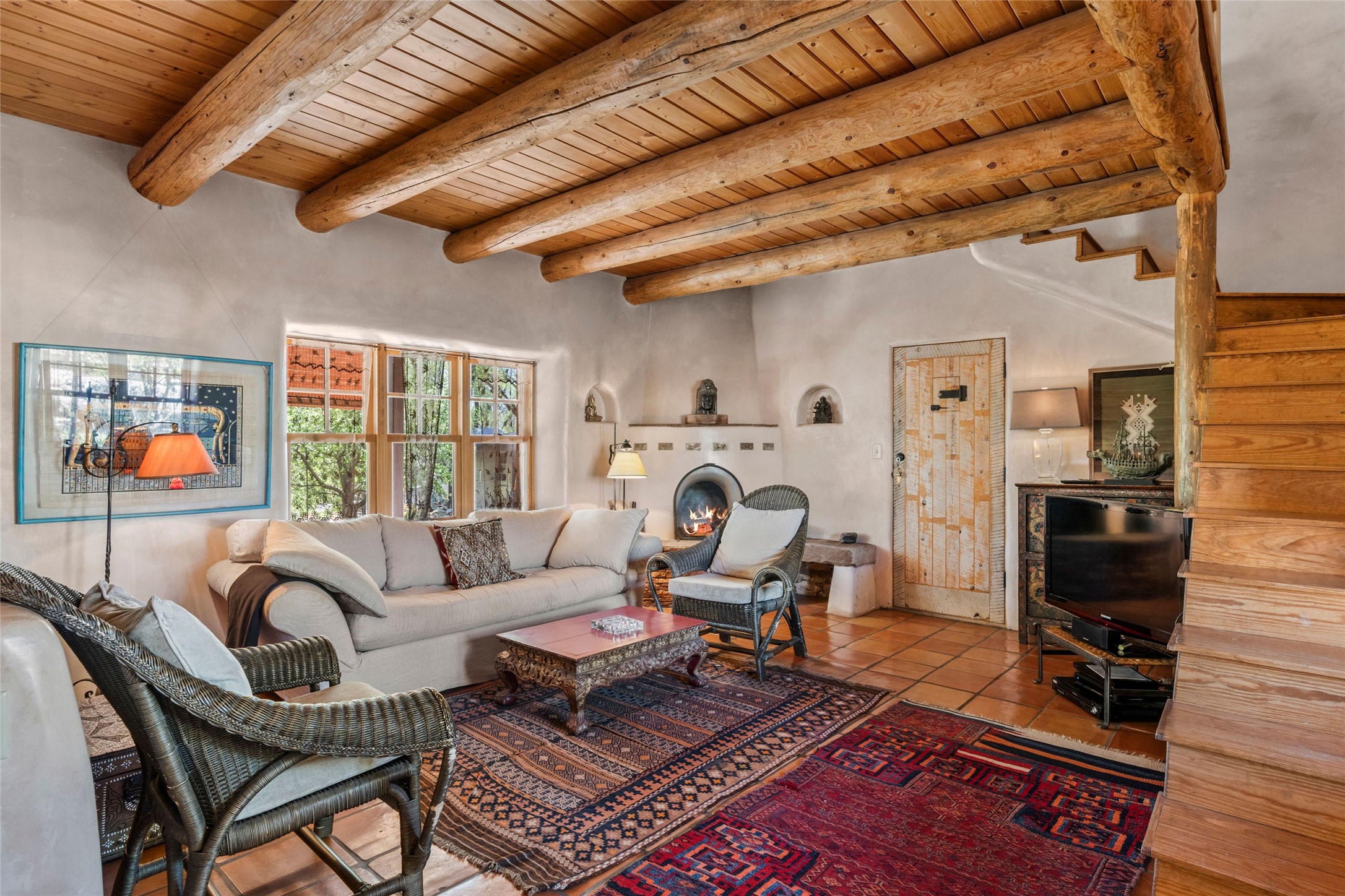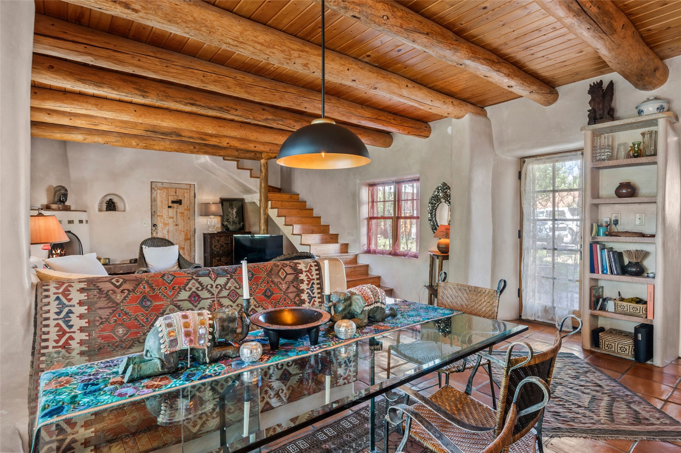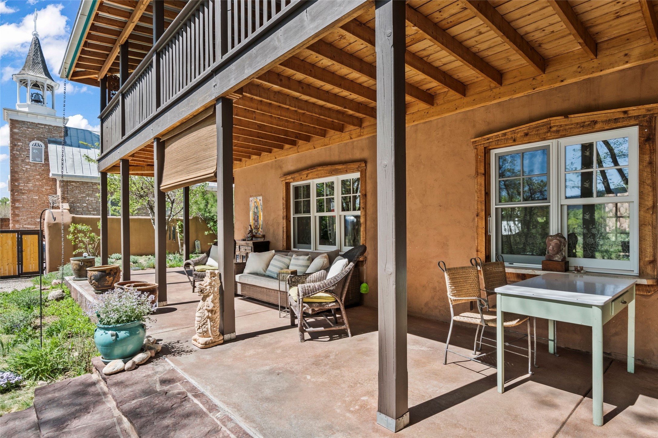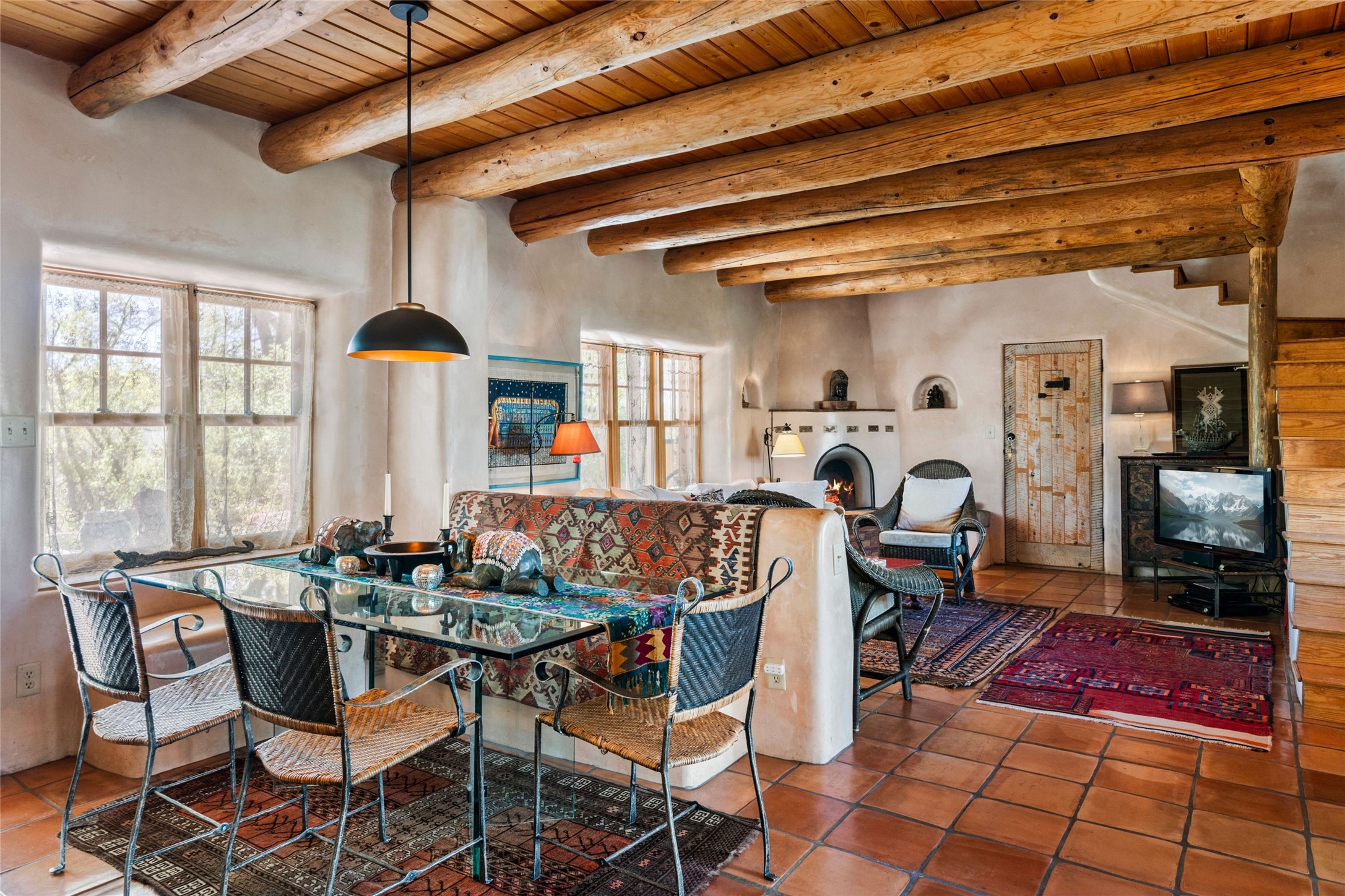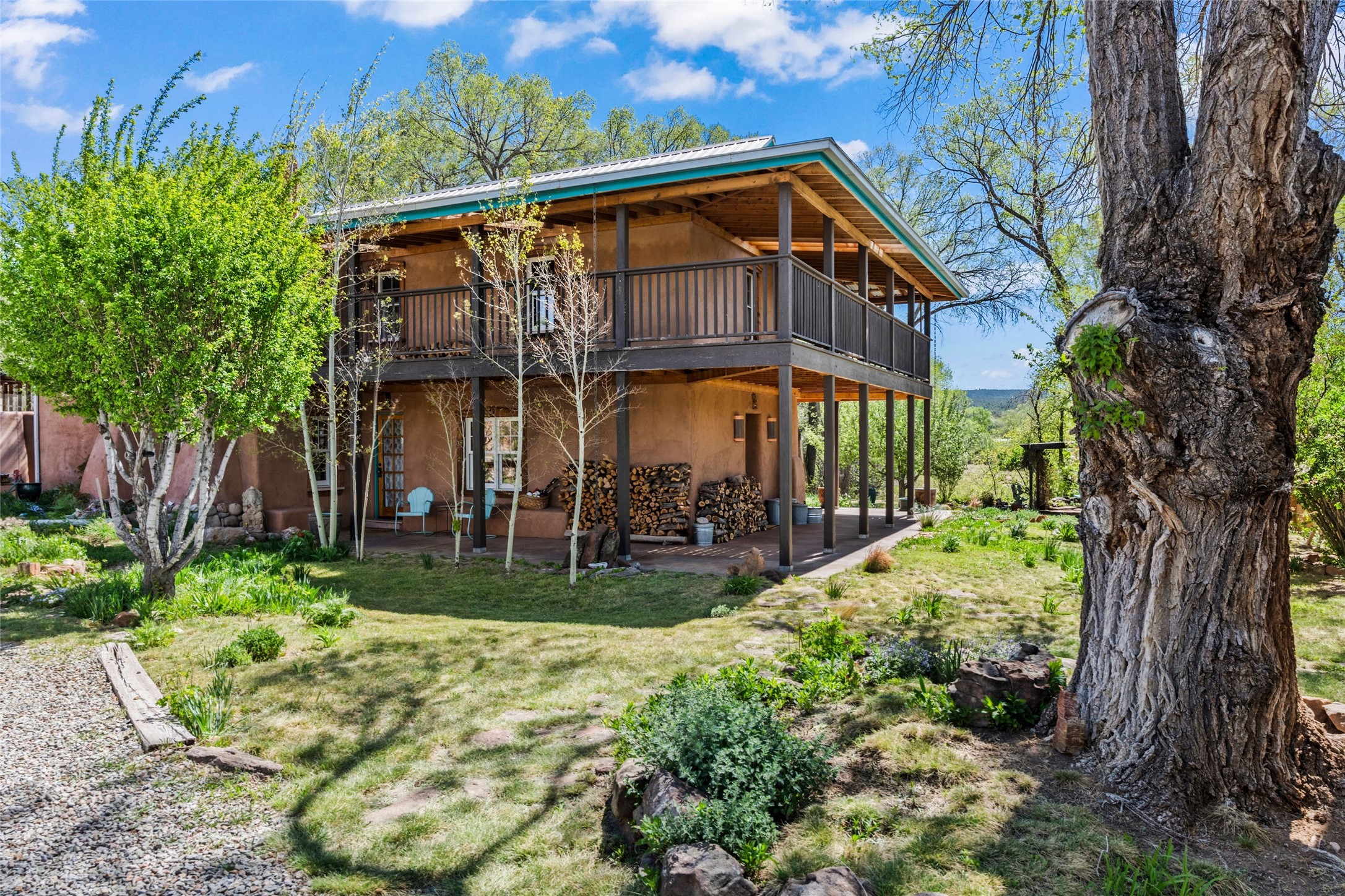 Own a Piece of History - 1865 Adobe Home with Modern ComfortsStep into the past while enjoying modern luxuries in this beautifully redone 2-story adobe home, originally built in 1865. Nestled on the edge of the wilderness, this one-of-a-kind property offers breathtaking views, rich history, and an open layout designed for both comfort and character. Surrounded by a double adobe wall for total privacy. Inside, you'll find classic Southwest details like vigas, Saltillo tile floors, and a striking kiva fireplace in the living room, adorned with Palo Solari tiles and bronze accents. Downstairs offers combined kitchen and dining, living room with kiva, and full bathroom for convenience. Upstairs, the spacious primary bedroom features a second kiva fireplace, an en-suite bathroom with a tub and steam shower, and access to a large wraparound balcony, perfect for soaking in the stunning sunrises and wildlife sightings. Office space or flex space available off of the primary bedroom.Outdoors, enjoy the lush, tree-filled landscape with fruit trees, a seasonal acequia running through, and access to green space below. The double level wrap around portal is an amazing asset. There's potential to build a guest house on-site. Property is enclosed and gated.For guests or added versatility, a vintage, restored Airstream is included, fully hooked to sewer with an outdoor shower--a perfect retreat for visitors.Surrounded by hiking trails, fishing spots, monastery, and just steps from the town's historic church, this home is rich in history. Once the first in the area to offer television and indoor plumbing, it was a gathering place for locals and churchgoers. Nearby amenities in the village of Pecos, or just 20-30 minute drive to Santa Fe. Now, you have the opportunity to own this unique blend of history, nature, and luxury.Don't miss this rare chance to experience timeless New Mexico charm--schedule a viewing today!
