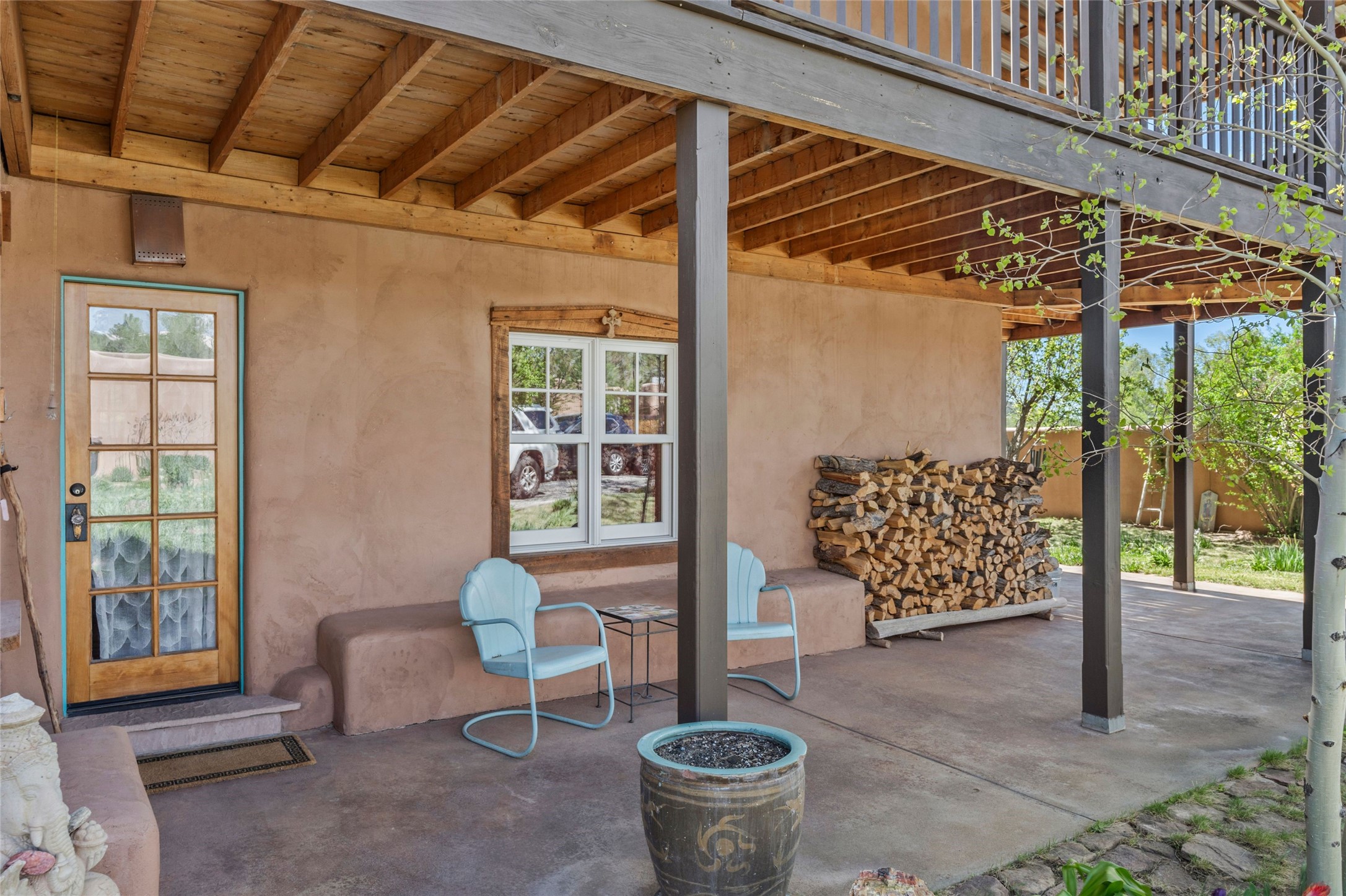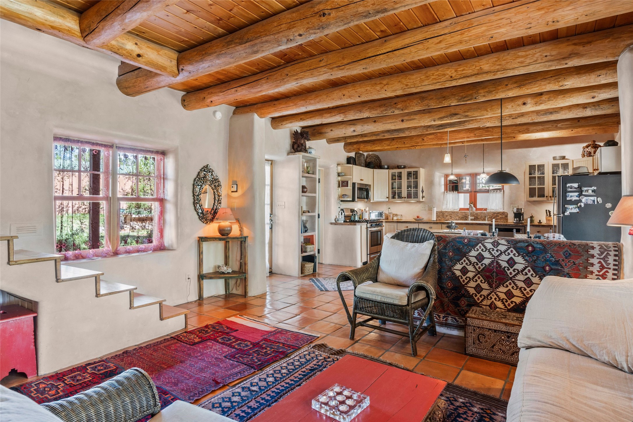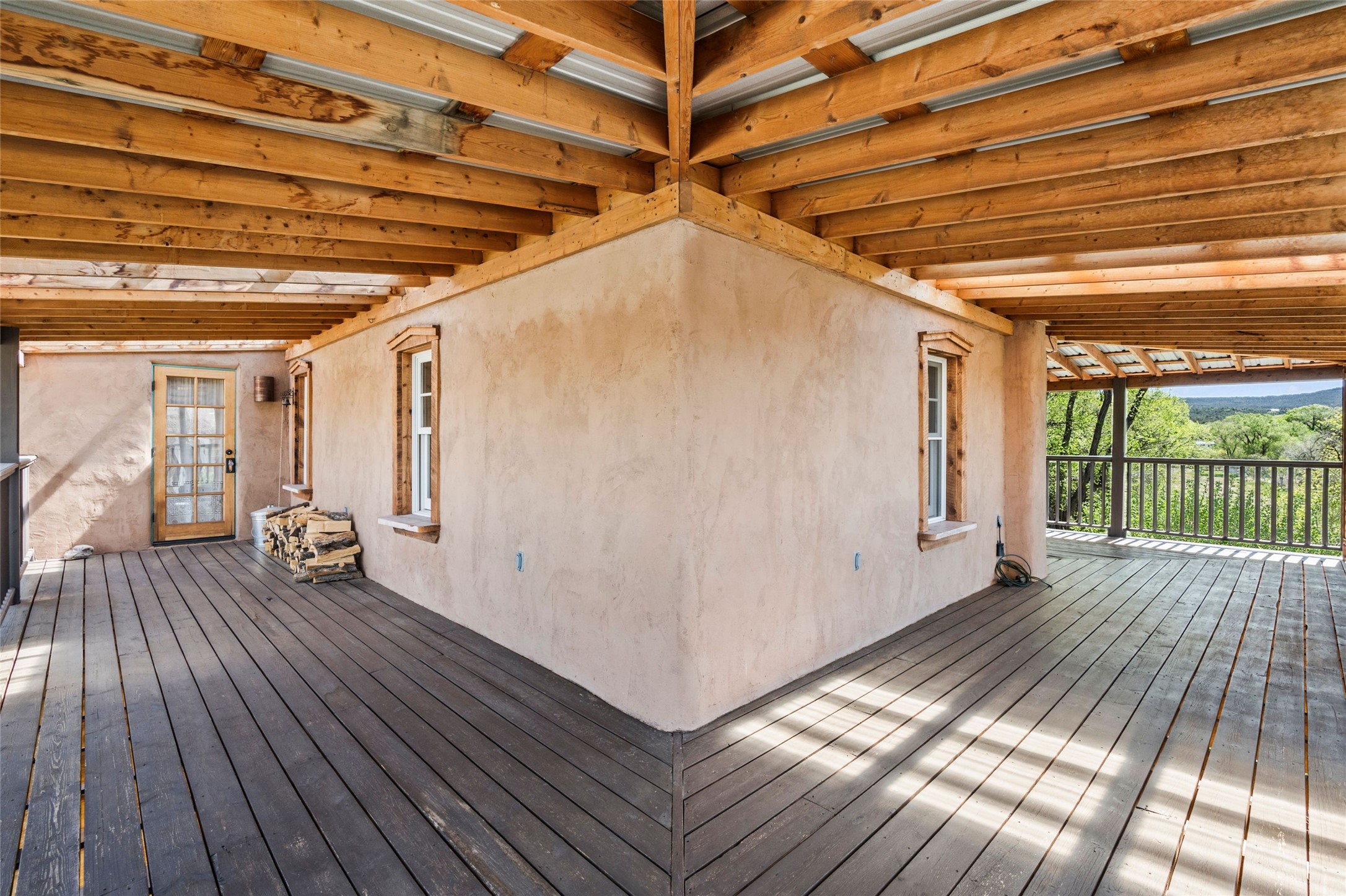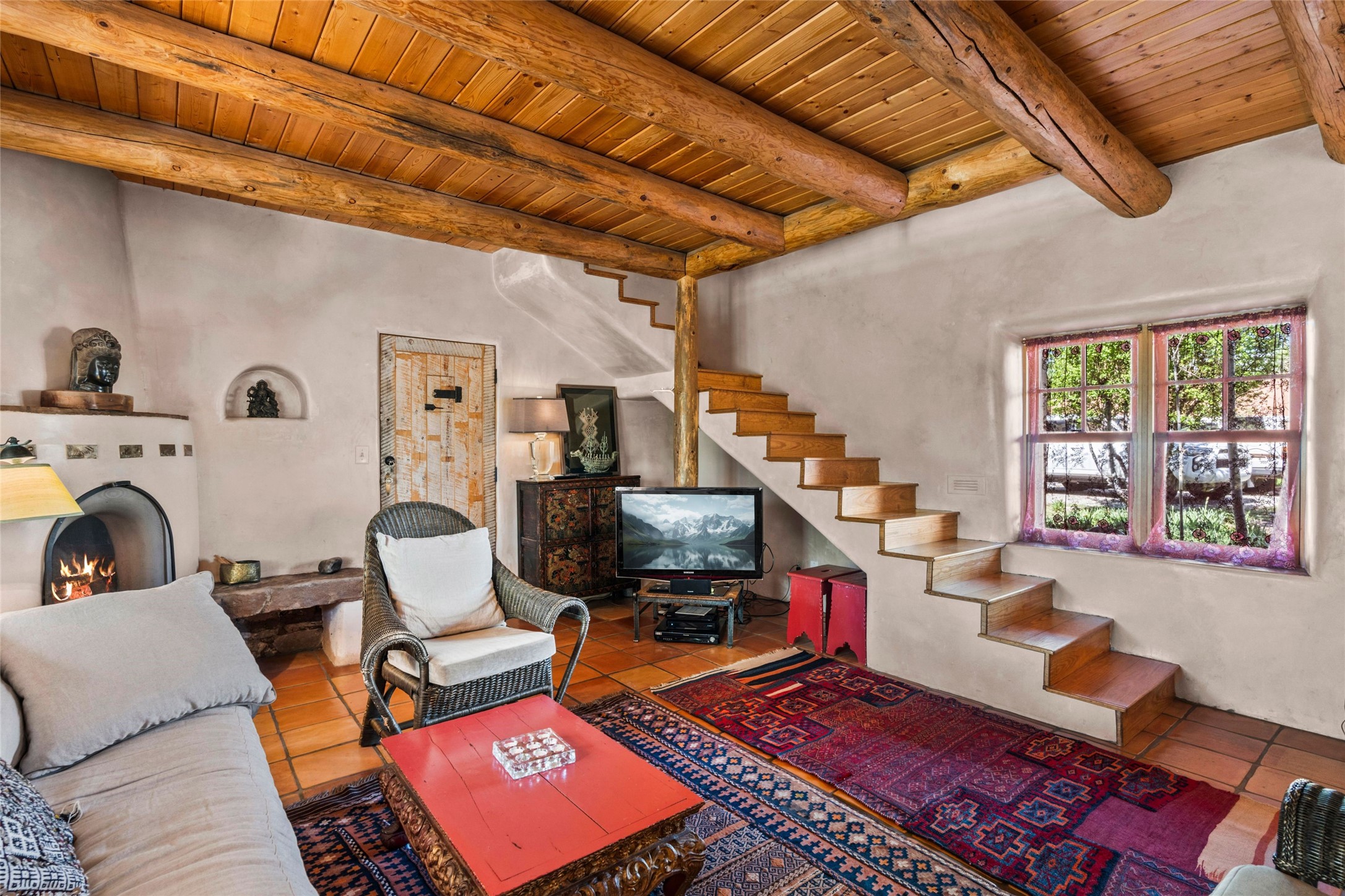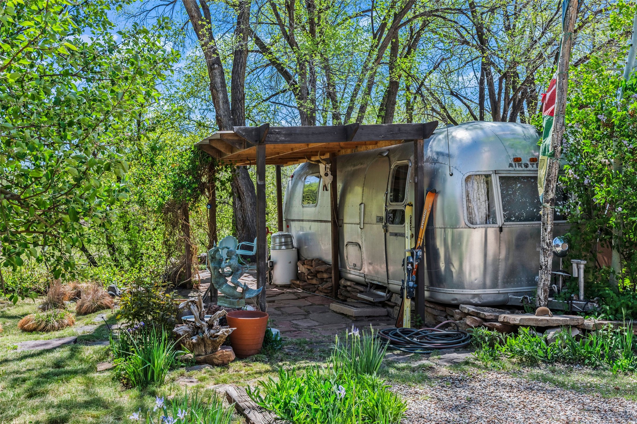 Own a Piece of History - 1865 Adobe Home with Modern ComfortsStep into the past while enjoying modern luxuries in this beautifully redone 2-story adobe home, originally built in 1865. Nestled on the edge of the wilderness, this one-of-a-kind property offers breathtaking views, rich history, and an open layout designed for both comfort and character. Surrounded by a double adobe wall for total privacy. Inside, you'll find classic Southwest details like vigas, Saltillo tile floors, and a striking kiva fireplace in the living room, adorned with Palo Solari tiles and bronze accents. Downstairs offers combined kitchen and dining, living room with kiva, and full bathroom for convenience. Upstairs, the spacious primary bedroom features a second kiva fireplace, an en-suite bathroom with a tub and steam shower, and access to a large wraparound balcony, perfect for soaking in the stunning sunrises and wildlife sightings. Office space or flex space available off of the primary bedroom.Outdoors, enjoy the lush, tree-filled landscape with fruit trees, a seasonal acequia running through, and access to green space below. The double level wrap around portal is an amazing asset. There's potential to build a guest house on-site. Property is enclosed and gated.For guests or added versatility, a vintage, restored Airstream is included, fully hooked to sewer with an outdoor shower--a perfect retreat for visitors.Surrounded by hiking trails, fishing spots, monastery, and just steps from the town's historic church, this home is rich in history. Once the first in the area to offer television and indoor plumbing, it was a gathering place for locals and churchgoers. Nearby amenities in the village of Pecos, or just 20-30 minute drive to Santa Fe. Now, you have the opportunity to own this unique blend of history, nature, and luxury.Don't miss this rare chance to experience timeless New Mexico charm--schedule a viewing today!