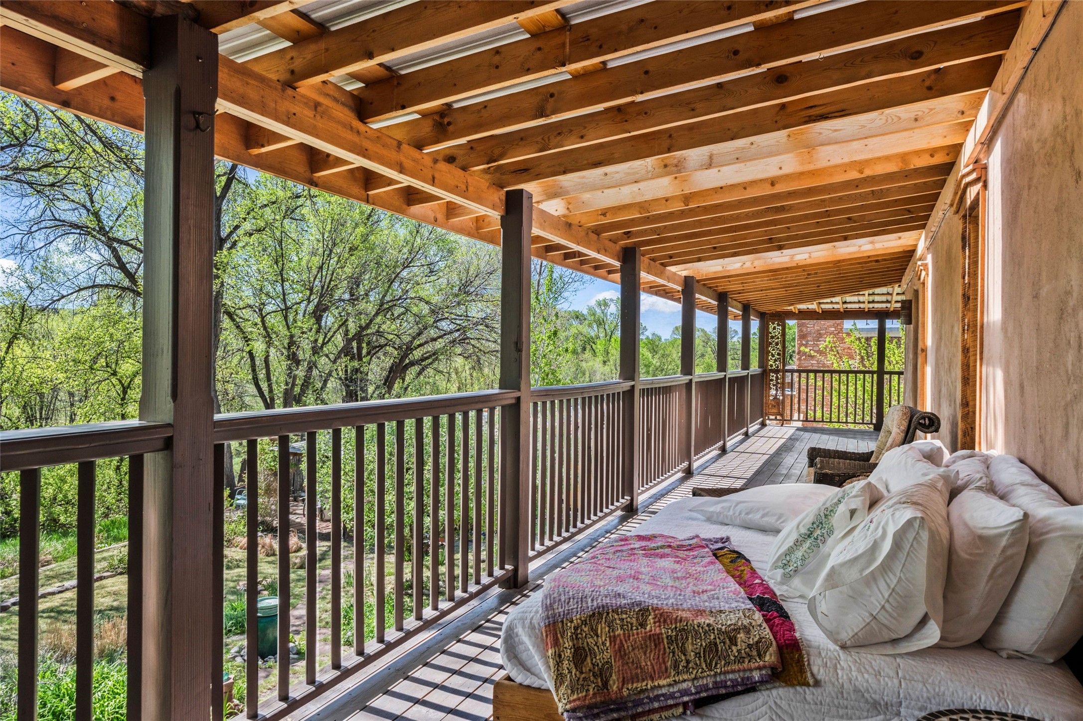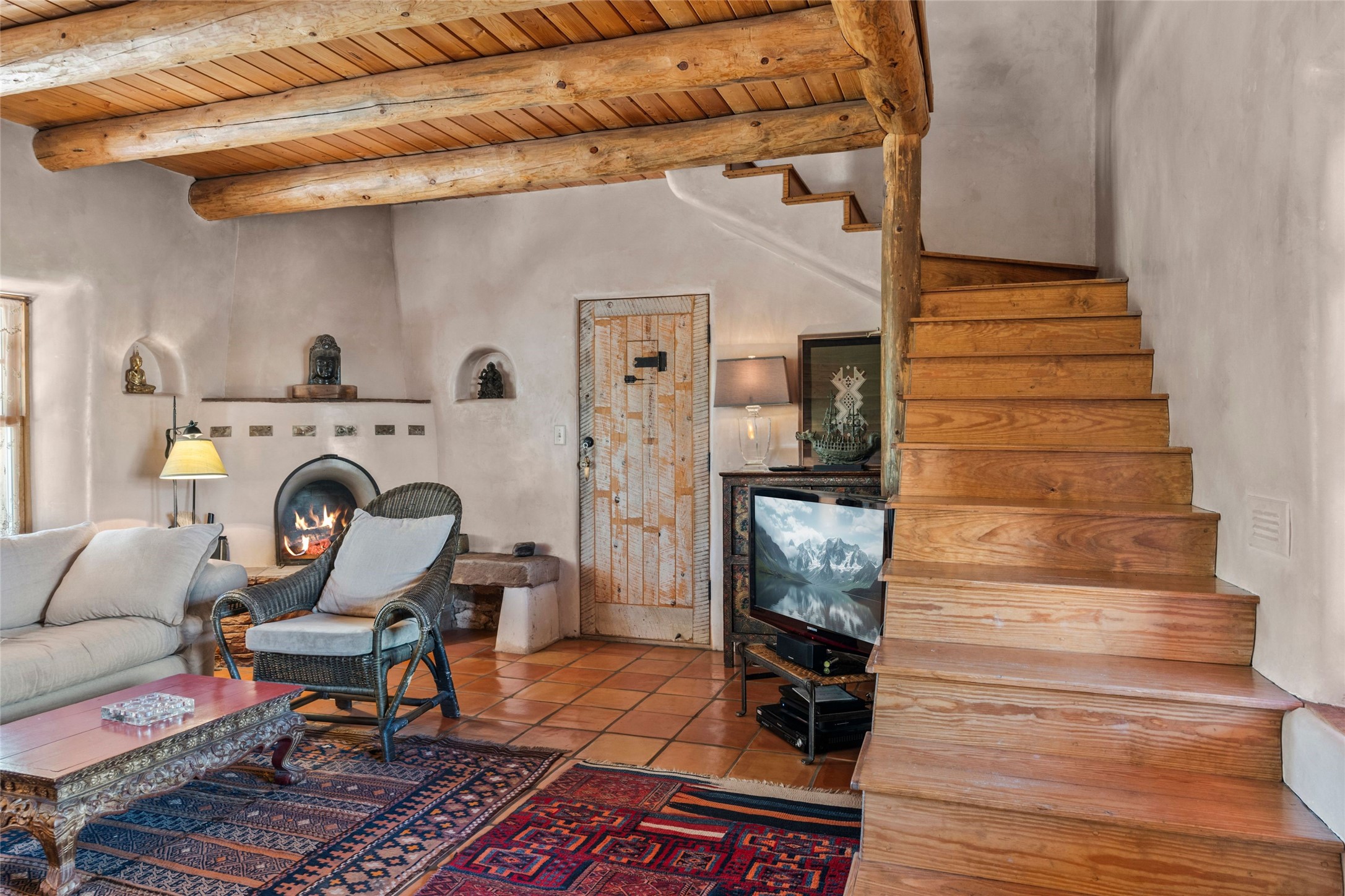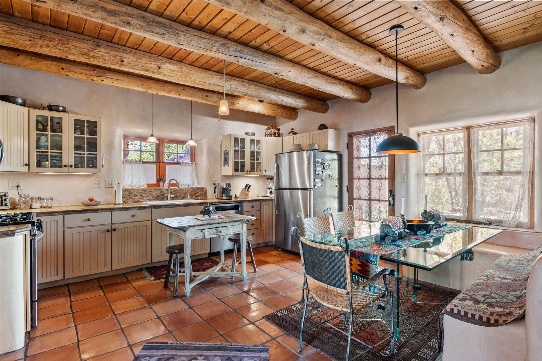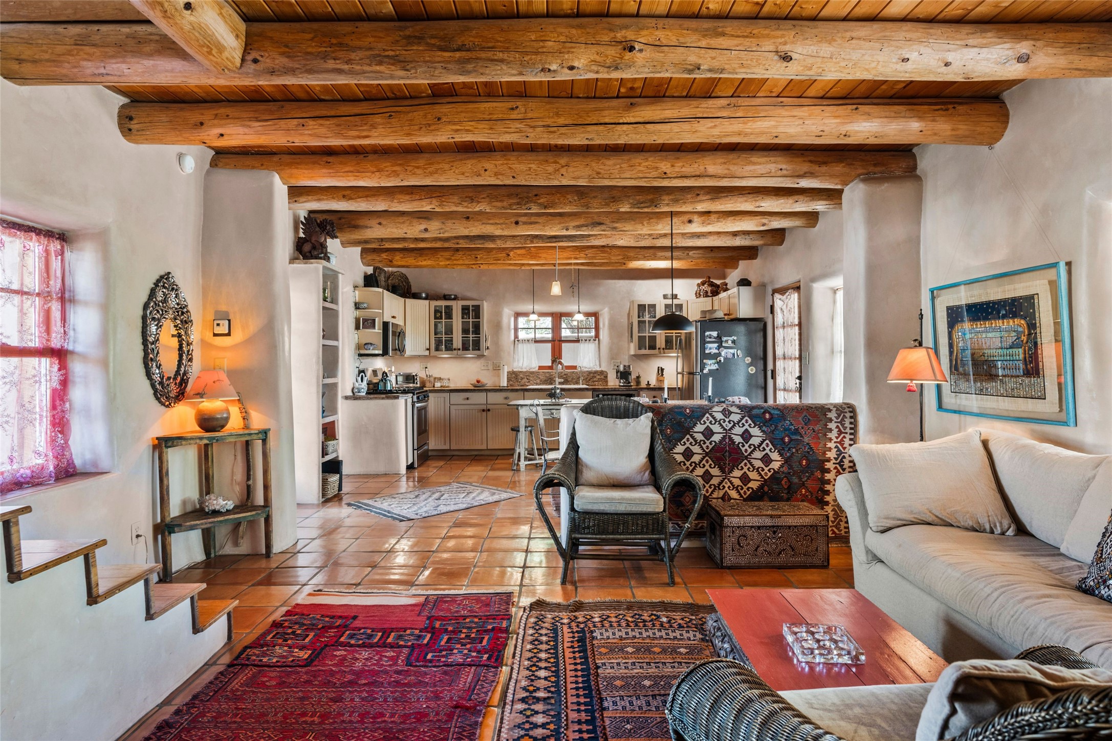 Own a Piece of History - 1865 Adobe Home with Modern ComfortsStep into the past while enjoying modern luxuries in this beautifully redone 2-story adobe home, originally built in 1865. Nestled on the edge of the wilderness, this one-of-a-kind property offers breathtaking views, rich history, and an open layout designed for both comfort and character. Surrounded by a double adobe wall for total privacy. Inside, you'll find classic Southwest details like vigas, Saltillo tile floors, and a striking kiva fireplace in the living room, adorned with Palo Solari tiles and bronze accents. Downstairs offers combined kitchen and dining, living room with kiva, and full bathroom for convenience. Upstairs, the spacious primary bedroom features a second kiva fireplace, an en-suite bathroom with a tub and steam shower, and access to a large wraparound balcony, perfect for soaking in the stunning sunrises and wildlife sightings. Office space or flex space available off of the primary bedroom.Outdoors, enjoy the lush, tree-filled landscape with fruit trees, a seasonal acequia running through, and access to green space below. The double level wrap around portal is an amazing asset. There's potential to build a guest house on-site. Property is enclosed and gated.For guests or added versatility, a vintage, restored Airstream is included, fully hooked to sewer with an outdoor shower--a perfect retreat for visitors.Surrounded by hiking trails, fishing spots, monastery, and just steps from the town's historic church, this home is rich in history. Once the first in the area to offer television and indoor plumbing, it was a gathering place for locals and churchgoers. Nearby amenities in the village of Pecos, or just 20-30 minute drive to Santa Fe. Now, you have the opportunity to own this unique blend of history, nature, and luxury.Don't miss this rare chance to experience timeless New Mexico charm--schedule a viewing today!