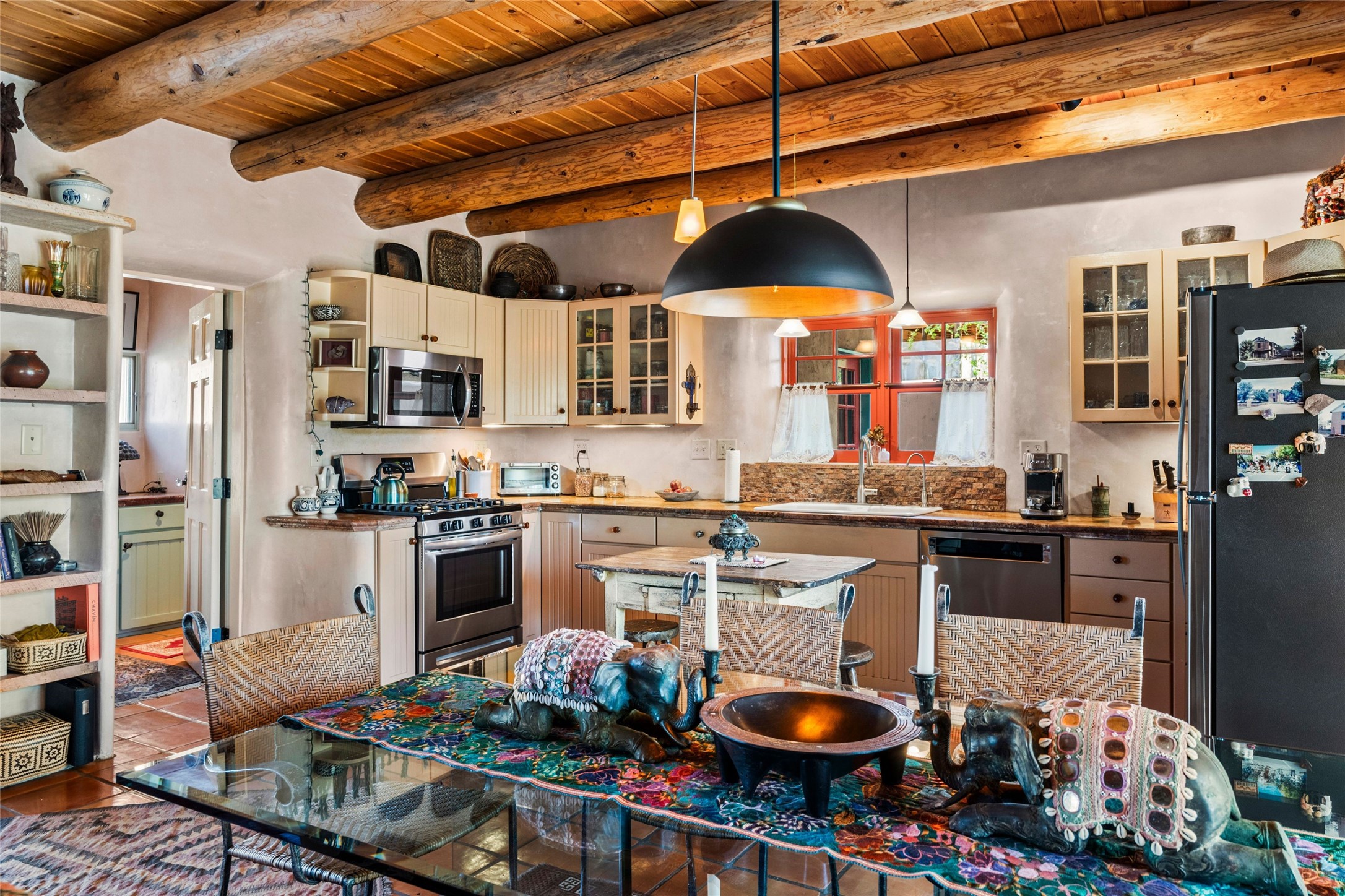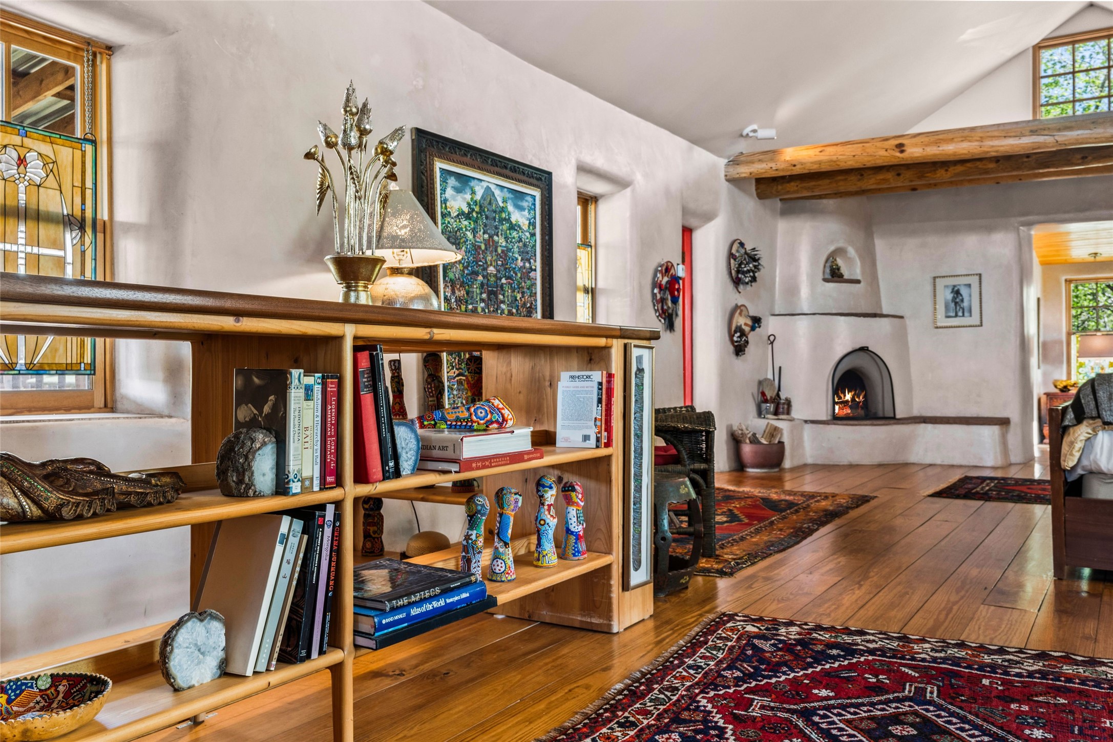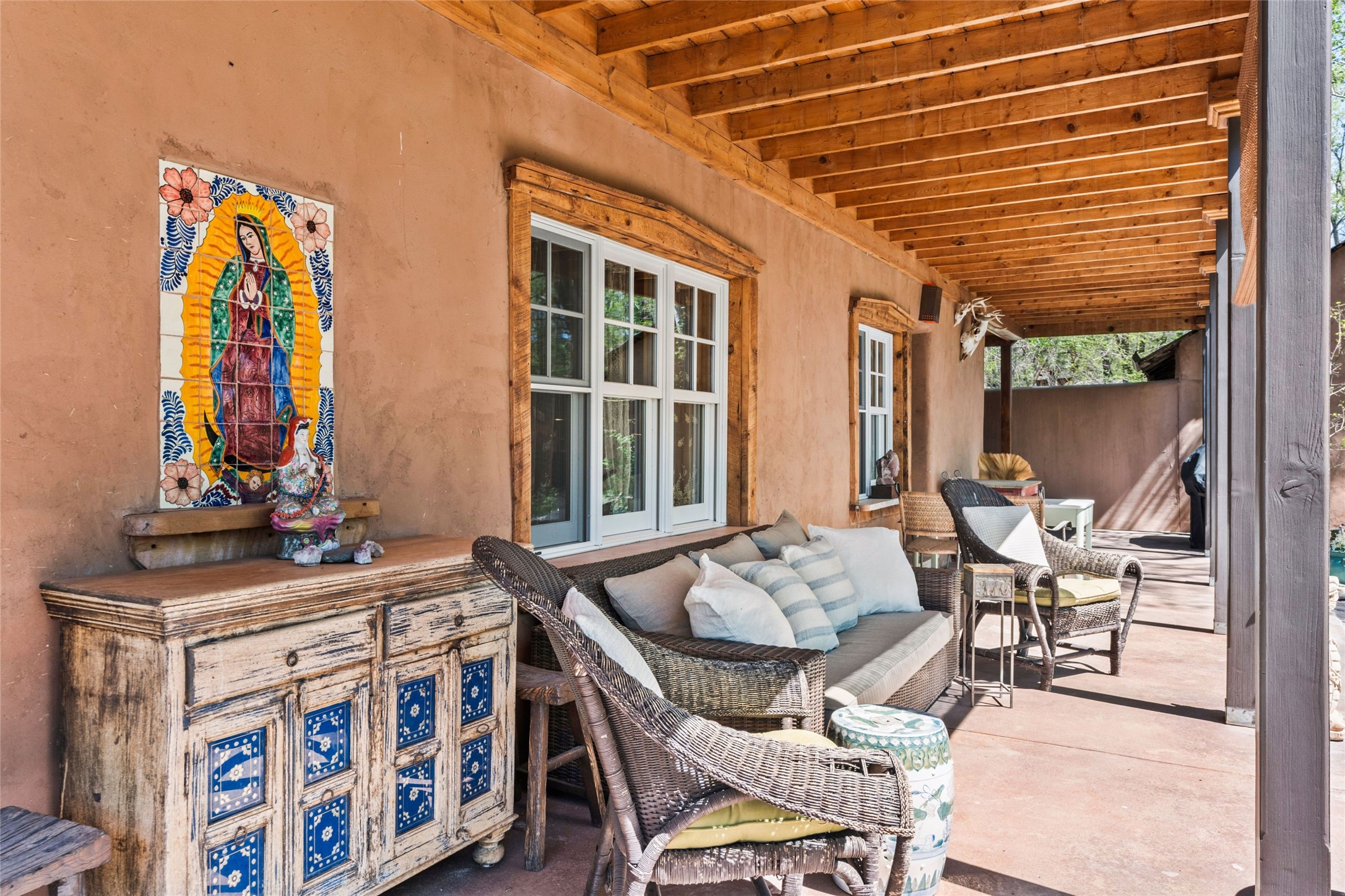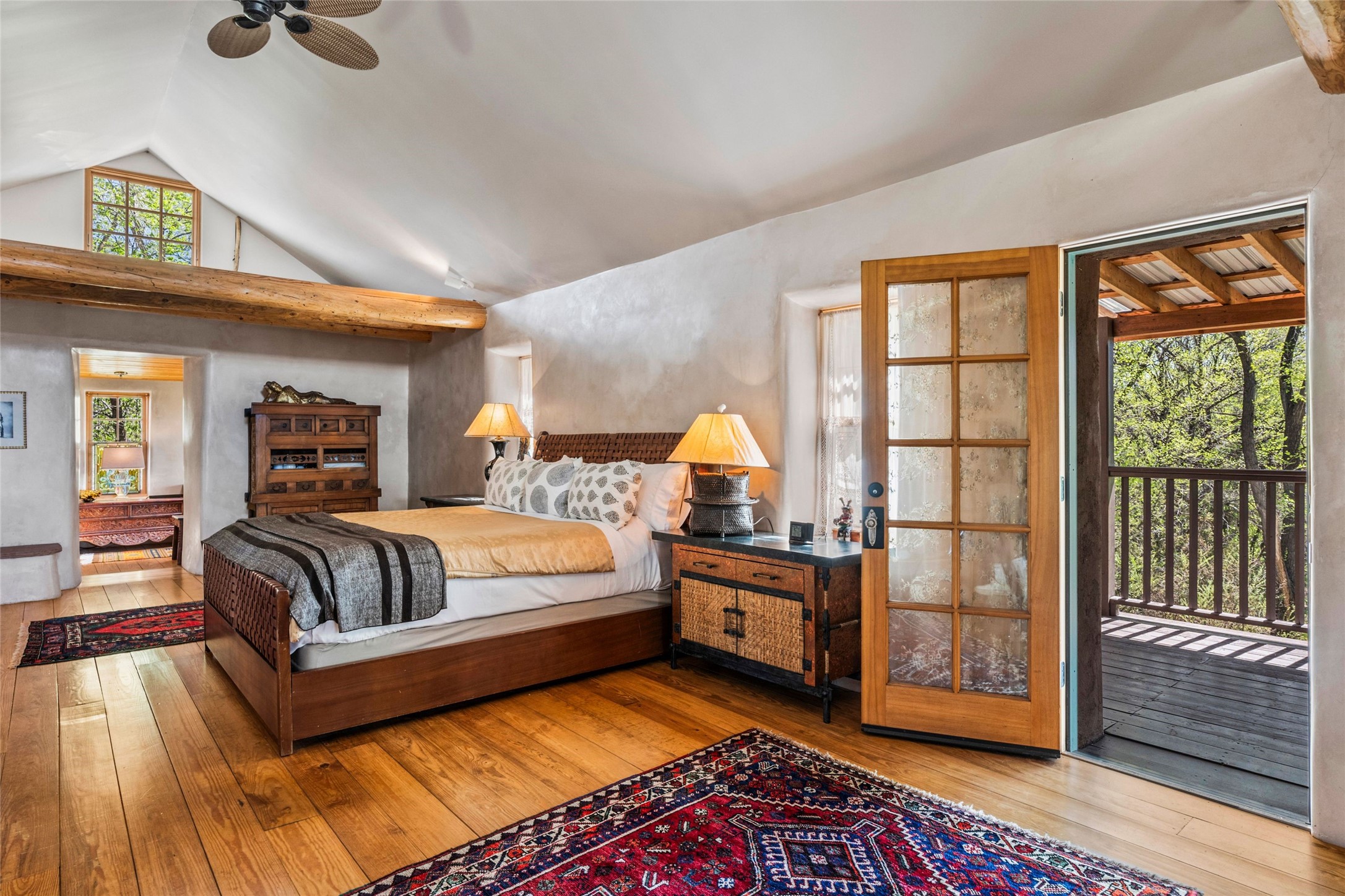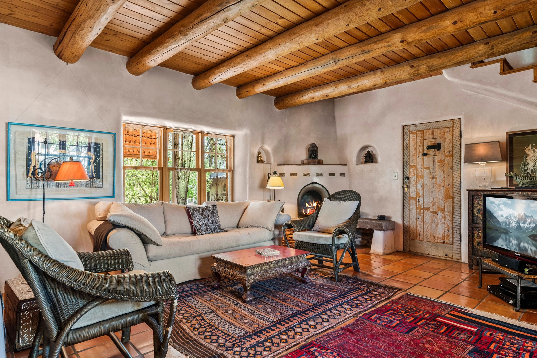 Own a Piece of History - 1865 Adobe Home with Modern ComfortsStep into the past while enjoying modern luxuries in this beautifully redone 2-story adobe home, originally built in 1865. Nestled on the edge of the wilderness, this one-of-a-kind property offers breathtaking views, rich history, and an open layout designed for both comfort and character. Surrounded by a double adobe wall for total privacy. Inside, you'll find classic Southwest details like vigas, Saltillo tile floors, and a striking kiva fireplace in the living room, adorned with Palo Solari tiles and bronze accents. Downstairs offers combined kitchen and dining, living room with kiva, and full bathroom for convenience. Upstairs, the spacious primary bedroom features a second kiva fireplace, an en-suite bathroom with a tub and steam shower, and access to a large wraparound balcony, perfect for soaking in the stunning sunrises and wildlife sightings. Office space or flex space available off of the primary bedroom.Outdoors, enjoy the lush, tree-filled landscape with fruit trees, a seasonal acequia running through, and access to green space below. The double level wrap around portal is an amazing asset. There's potential to build a guest house on-site. Property is enclosed and gated.For guests or added versatility, a vintage, restored Airstream is included, fully hooked to sewer with an outdoor shower--a perfect retreat for visitors.Surrounded by hiking trails, fishing spots, monastery, and just steps from the town's historic church, this home is rich in history. Once the first in the area to offer television and indoor plumbing, it was a gathering place for locals and churchgoers. Nearby amenities in the village of Pecos, or just 20-30 minute drive to Santa Fe. Now, you have the opportunity to own this unique blend of history, nature, and luxury.Don't miss this rare chance to experience timeless New Mexico charm--schedule a viewing today!