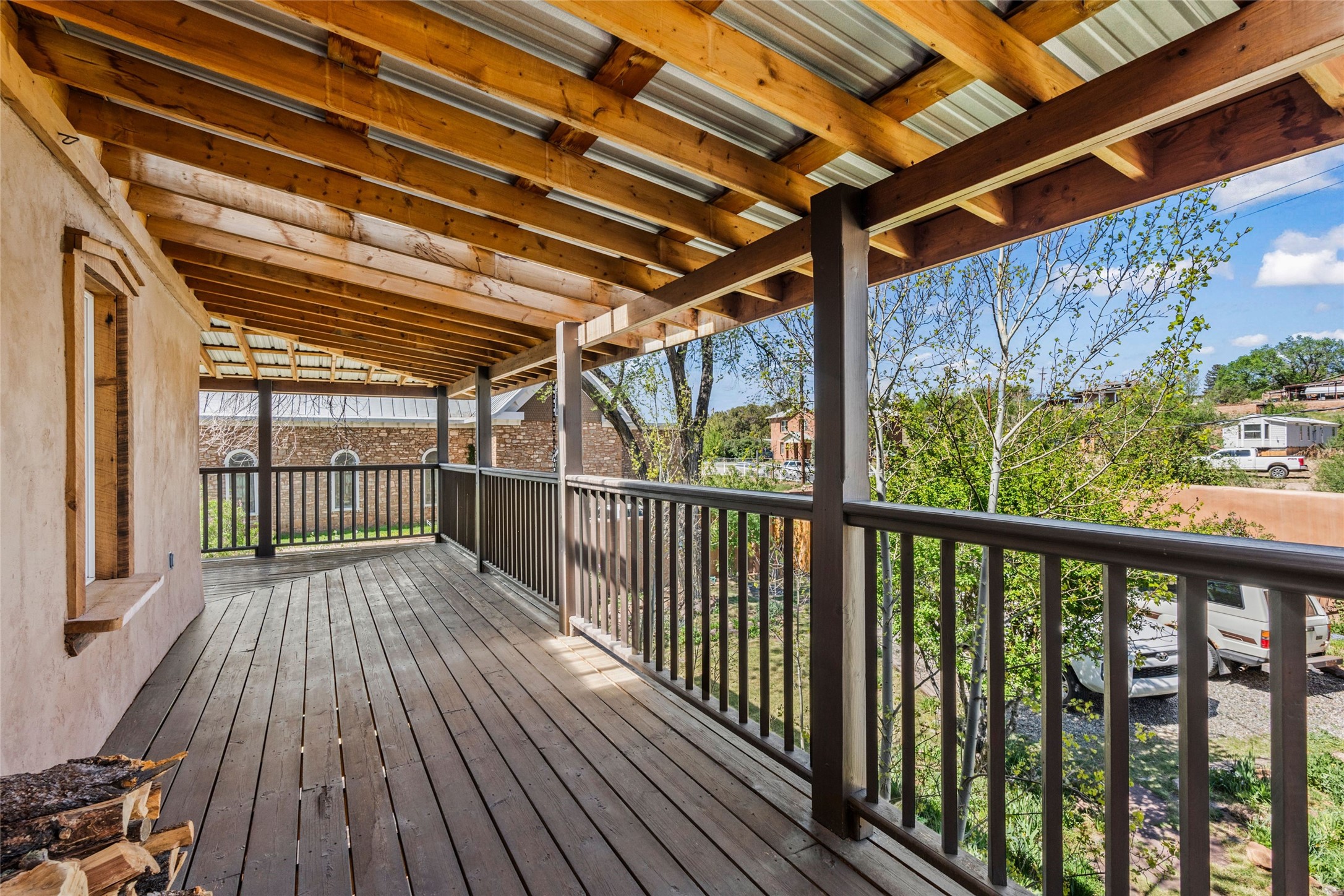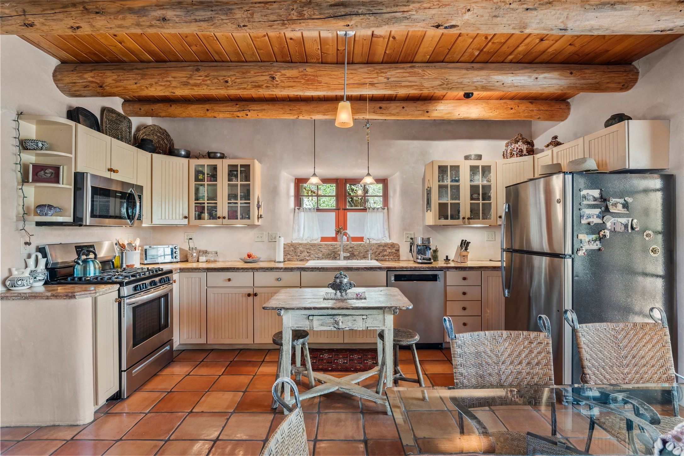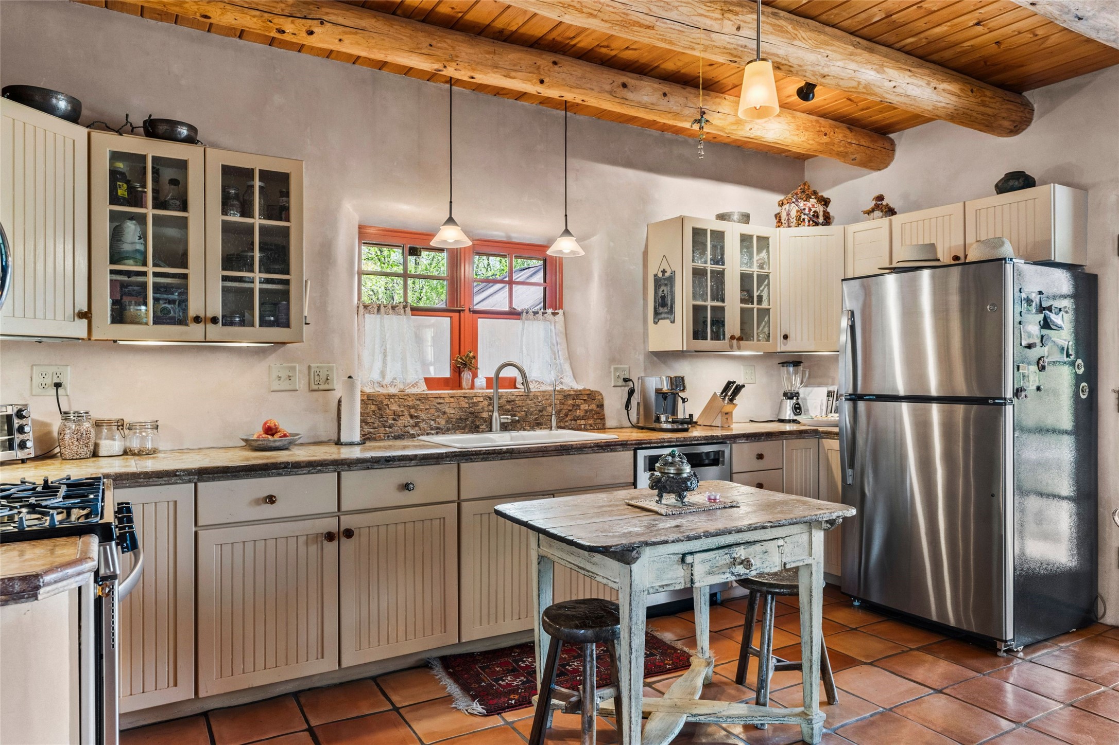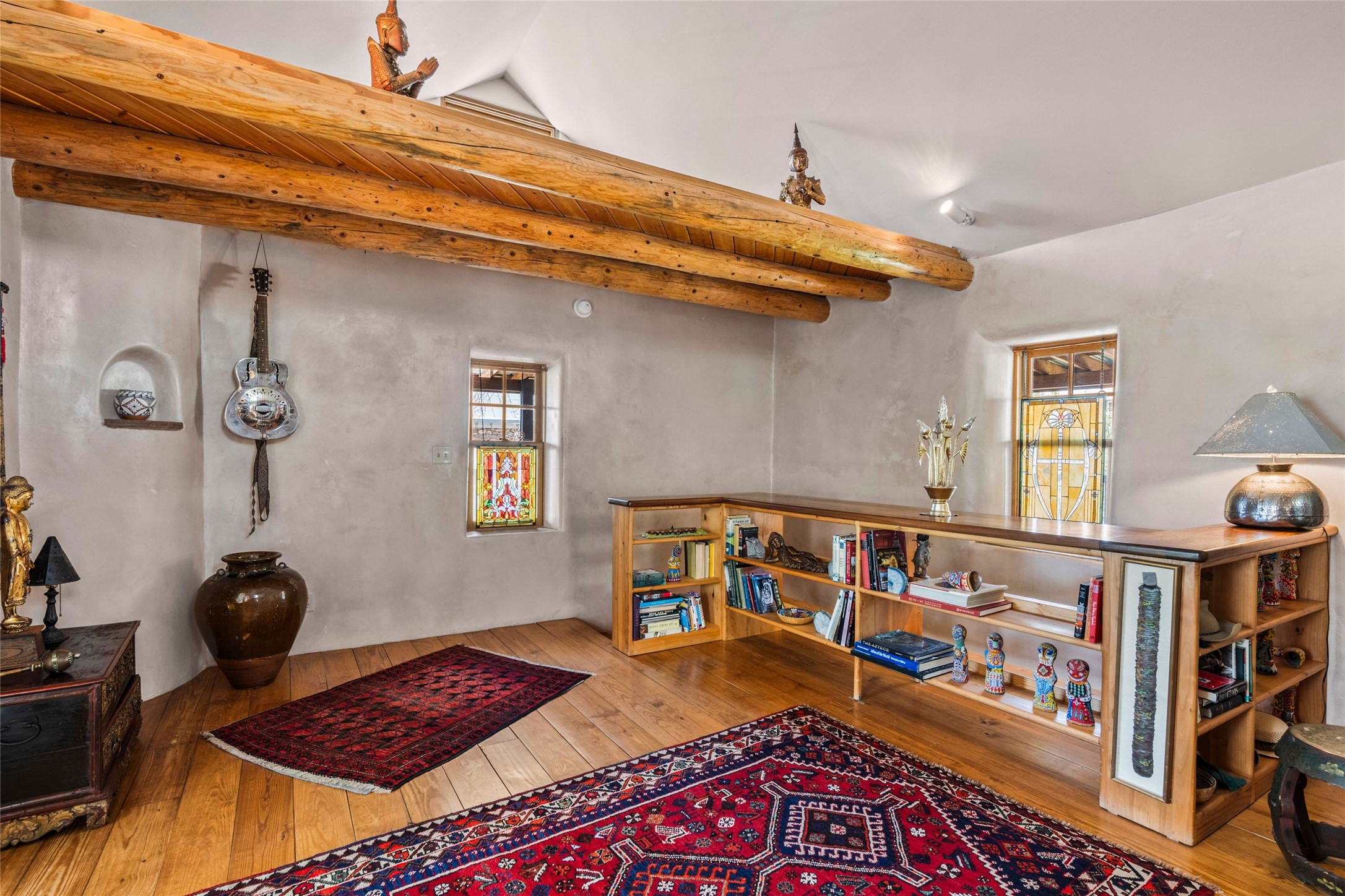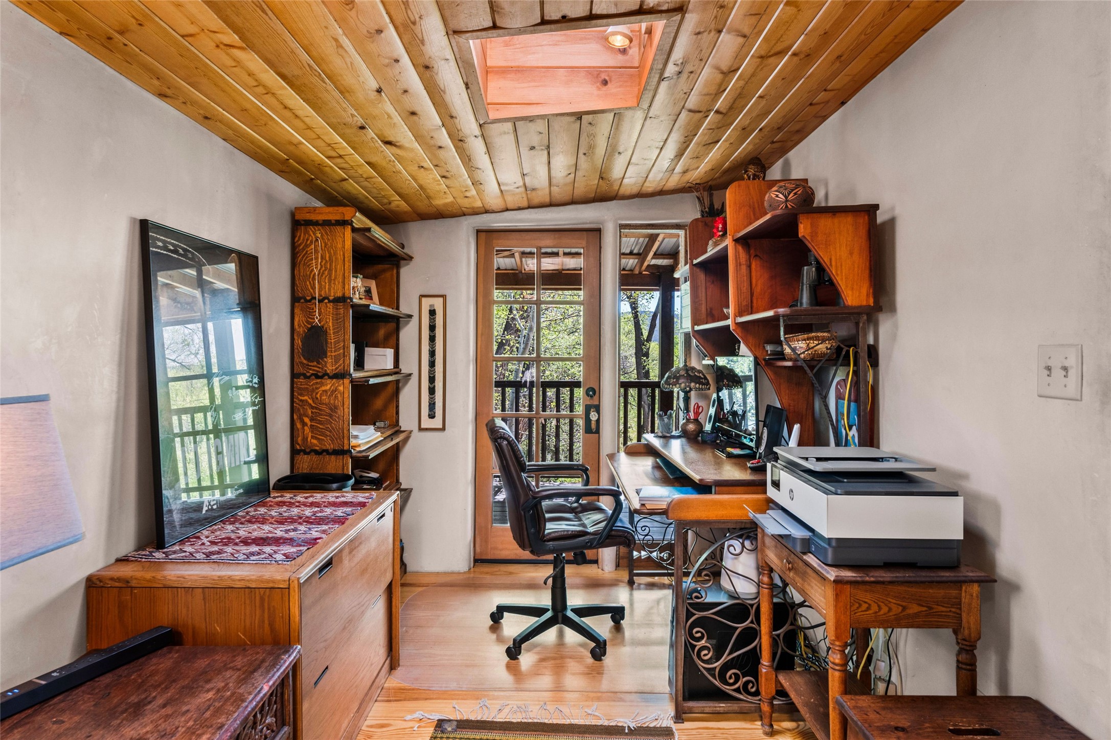 Own a Piece of History - 1865 Adobe Home with Modern ComfortsStep into the past while enjoying modern luxuries in this beautifully redone 2-story adobe home, originally built in 1865. Nestled on the edge of the wilderness, this one-of-a-kind property offers breathtaking views, rich history, and an open layout designed for both comfort and character. Surrounded by a double adobe wall for total privacy. Inside, you'll find classic Southwest details like vigas, Saltillo tile floors, and a striking kiva fireplace in the living room, adorned with Palo Solari tiles and bronze accents. Downstairs offers combined kitchen and dining, living room with kiva, and full bathroom for convenience. Upstairs, the spacious primary bedroom features a second kiva fireplace, an en-suite bathroom with a tub and steam shower, and access to a large wraparound balcony, perfect for soaking in the stunning sunrises and wildlife sightings. Office space or flex space available off of the primary bedroom.Outdoors, enjoy the lush, tree-filled landscape with fruit trees, a seasonal acequia running through, and access to green space below. The double level wrap around portal is an amazing asset. There's potential to build a guest house on-site. Property is enclosed and gated.For guests or added versatility, a vintage, restored Airstream is included, fully hooked to sewer with an outdoor shower--a perfect retreat for visitors.Surrounded by hiking trails, fishing spots, monastery, and just steps from the town's historic church, this home is rich in history. Once the first in the area to offer television and indoor plumbing, it was a gathering place for locals and churchgoers. Nearby amenities in the village of Pecos, or just 20-30 minute drive to Santa Fe. Now, you have the opportunity to own this unique blend of history, nature, and luxury.Don't miss this rare chance to experience timeless New Mexico charm--schedule a viewing today!
