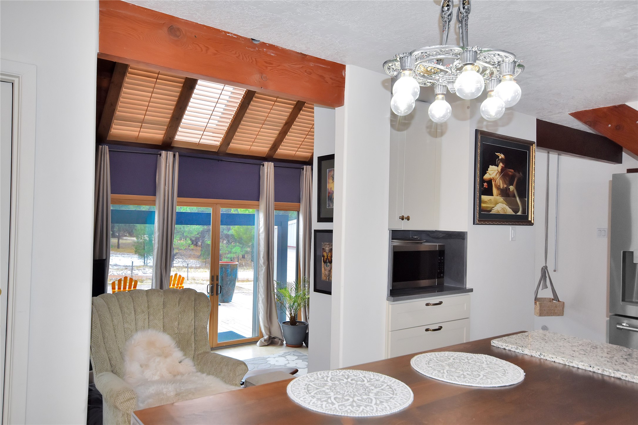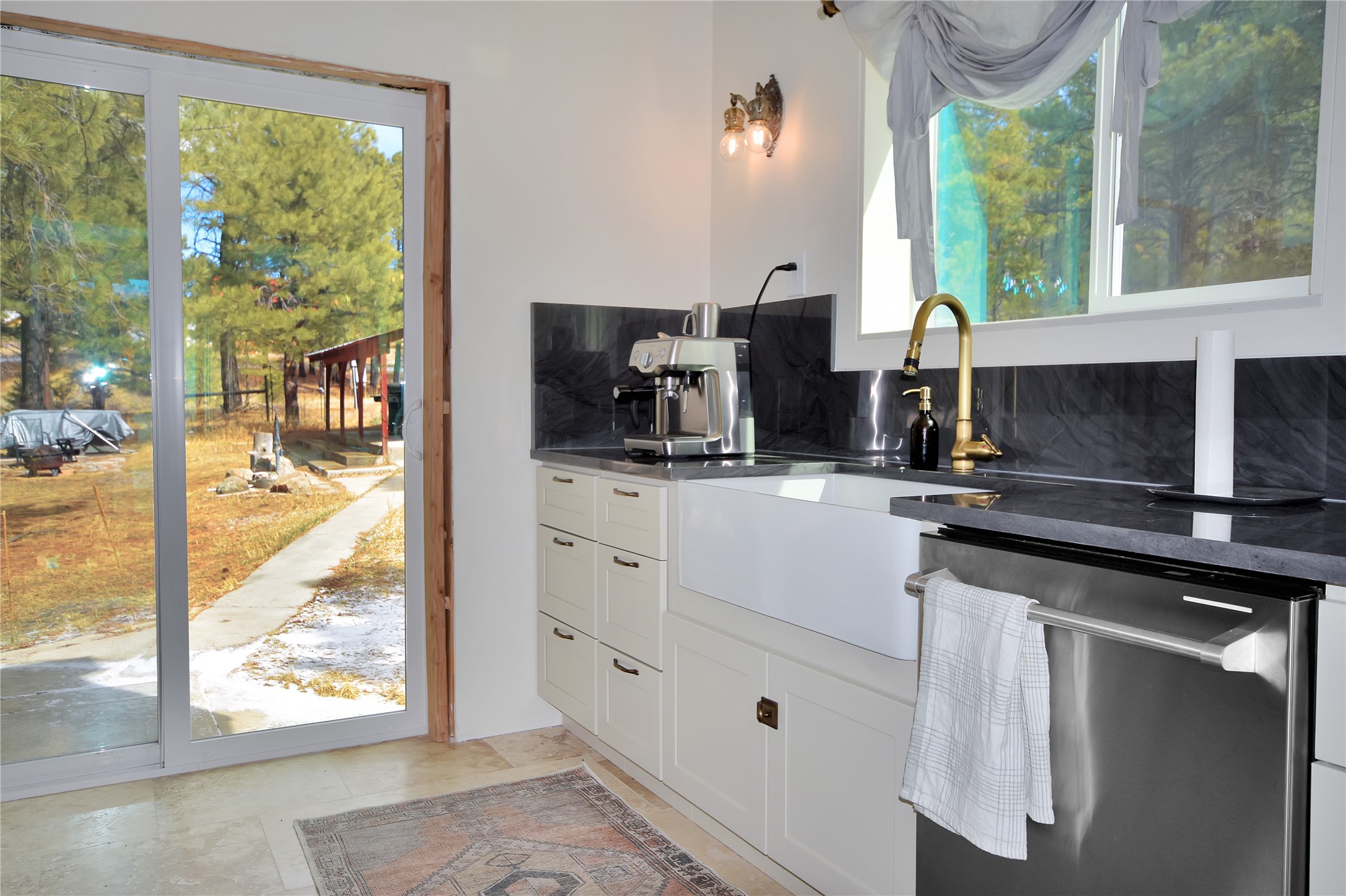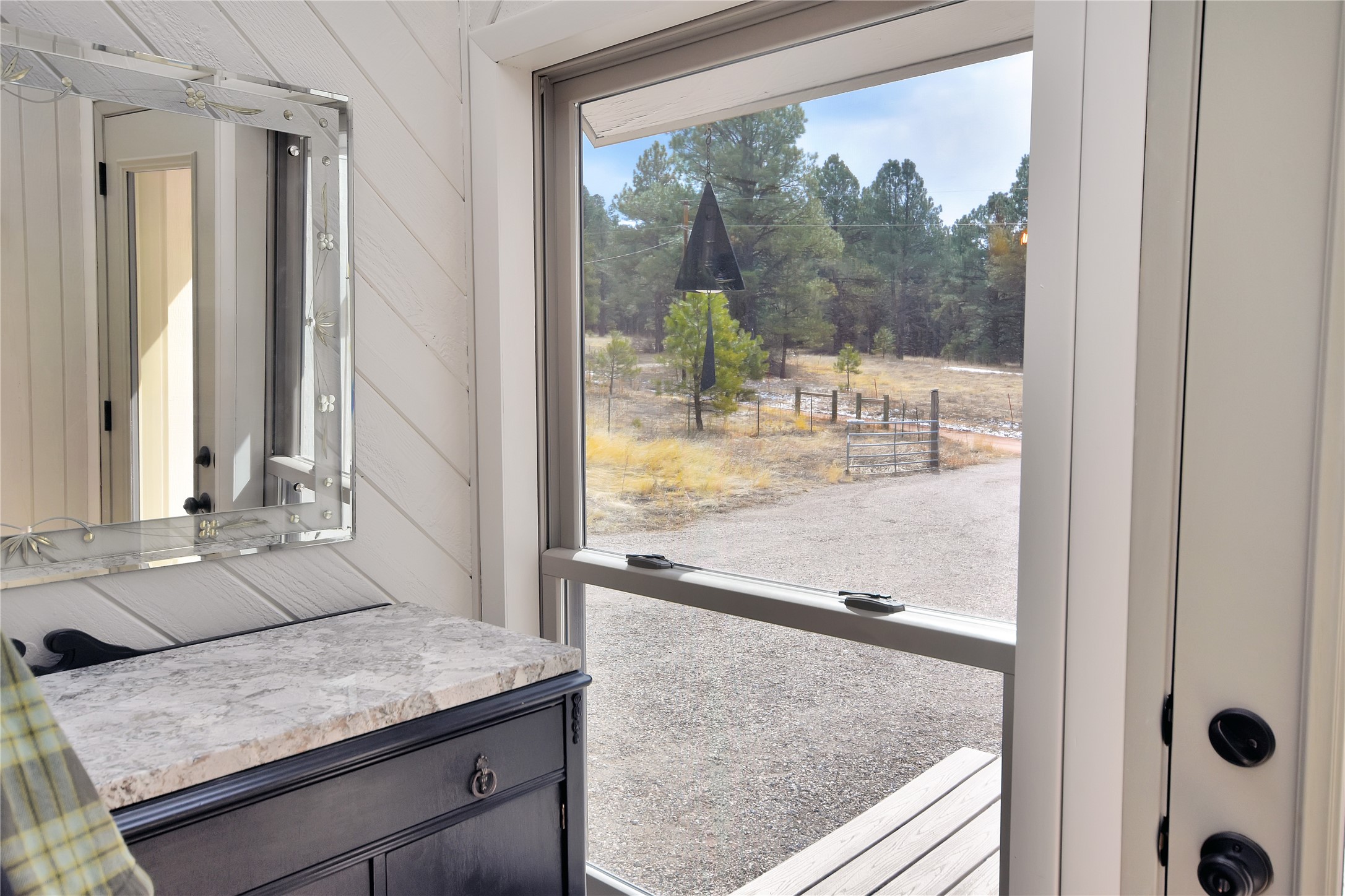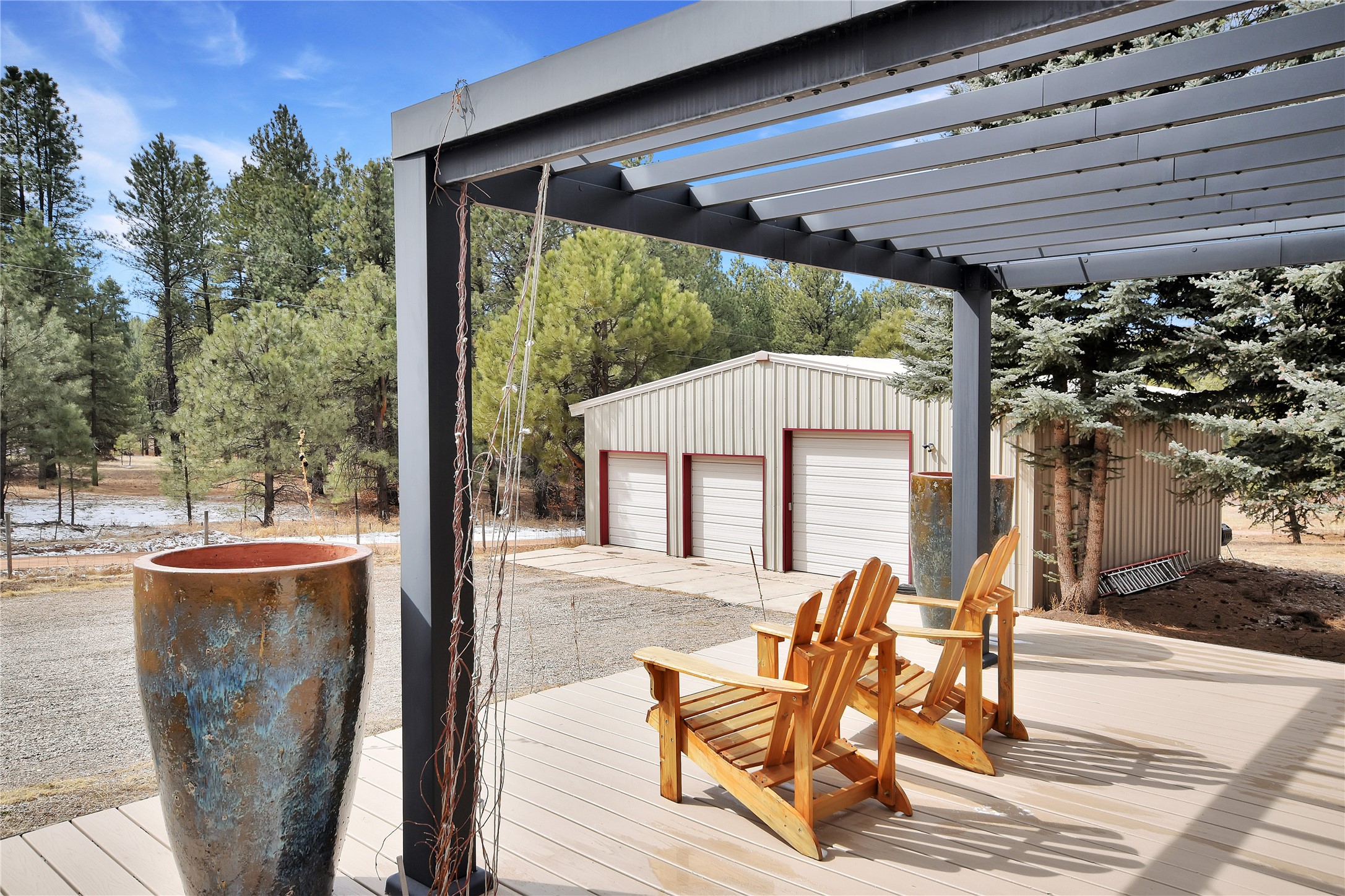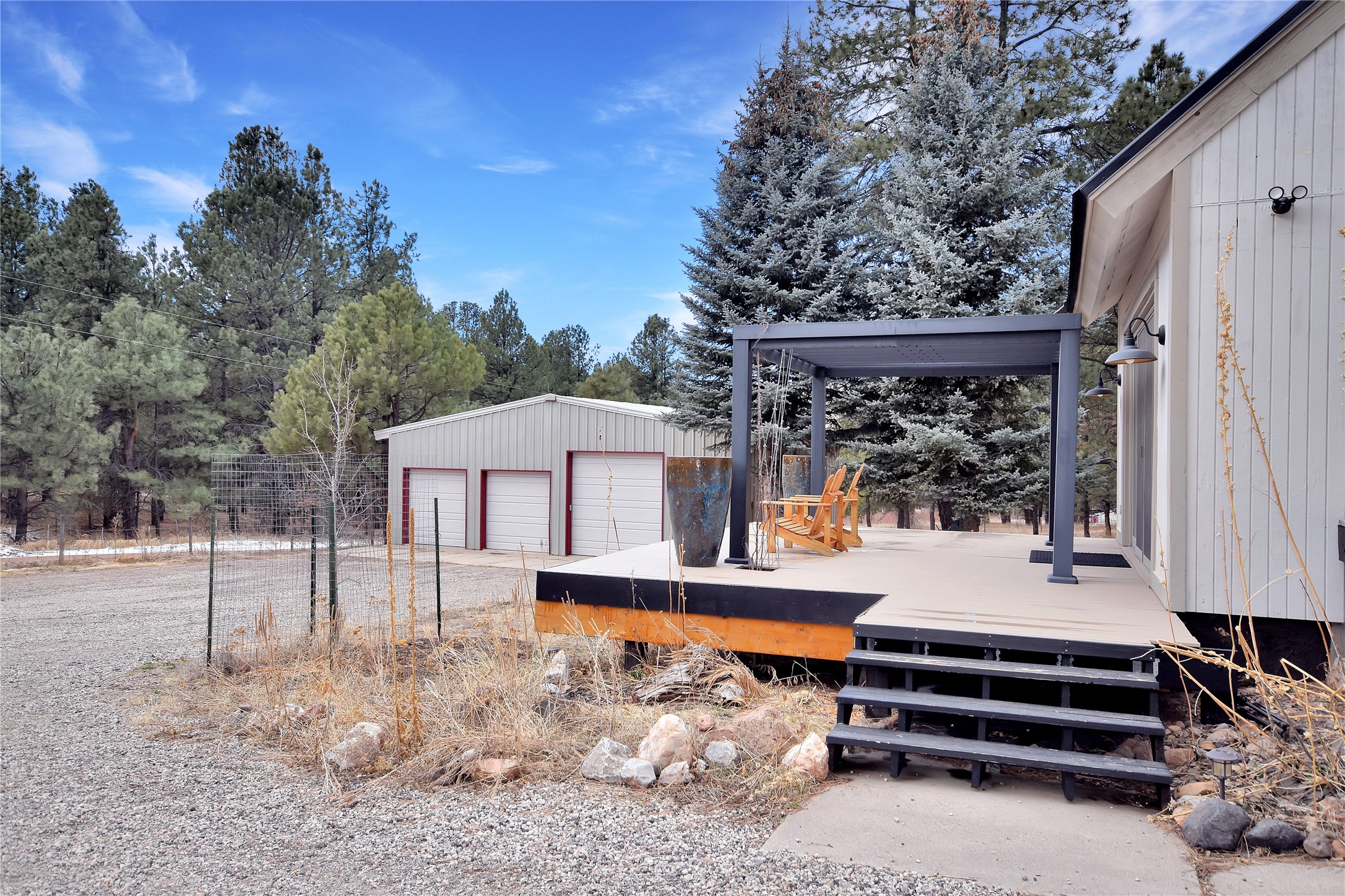 Bright, Beautiful and IMMACULATE! This one has most everything on your list! 1750 sq. ft. of pure, blissful, homey, and modern living space! Passive solar home with an open flow living space that includes 3 bedrooms and 2 baths, a lovely living area with woodstove and sweet modern kitchen with updated appliances and cabinetry. Anderson windows and doors, updated lighting, reverse osmosis water filtration, water softener, solar hot water heater, roomy basement that includes a space for crafting with ample storage...the list just goes on and on!! Front and back decks with balconies off two bedrooms for enjoying the outdoors every-which-way!1200 sq. ft. spacious 3 bay shop with an RV bay perfect for working on all your projects and storing all your toys and cars! A separate 500 square foot garage with work shop area that could easily be turned into a she-shed! Step out the front yard into the Santa Fe National Forest! A few steps further, you're on the western edge of the Valles Caldera National Preserve. Tucked in a nice neighborhood on a 1-acre lot off a county-maintained road. Reasonable year-round commute to Los Alamos. You're gonna wanna see this one SOON!
