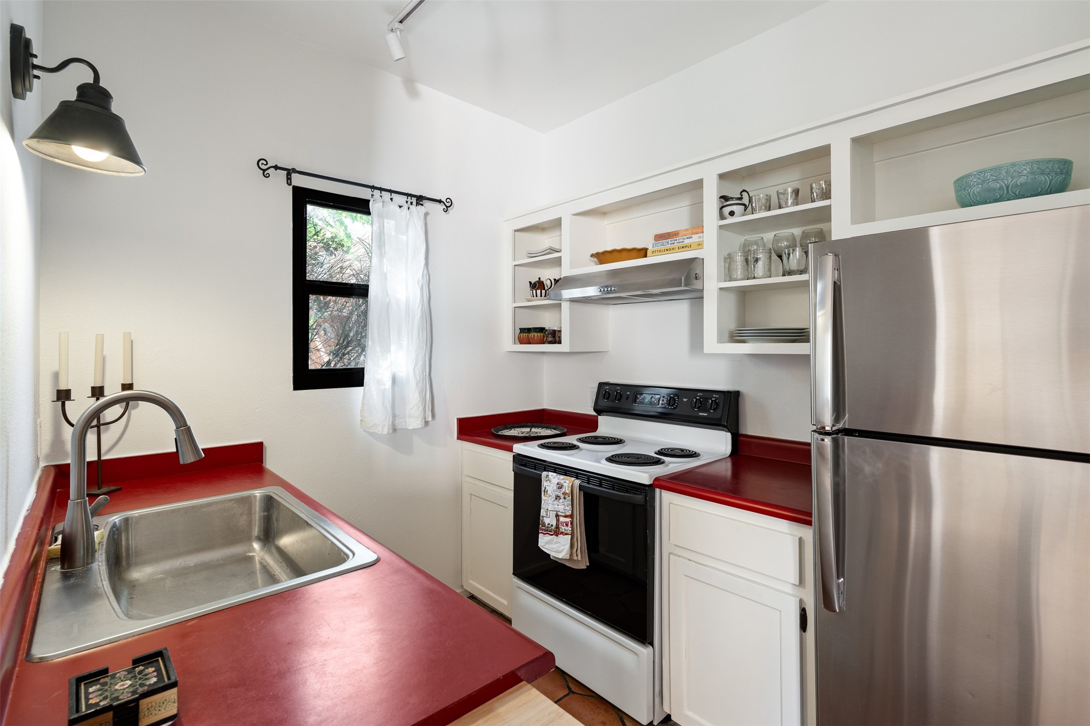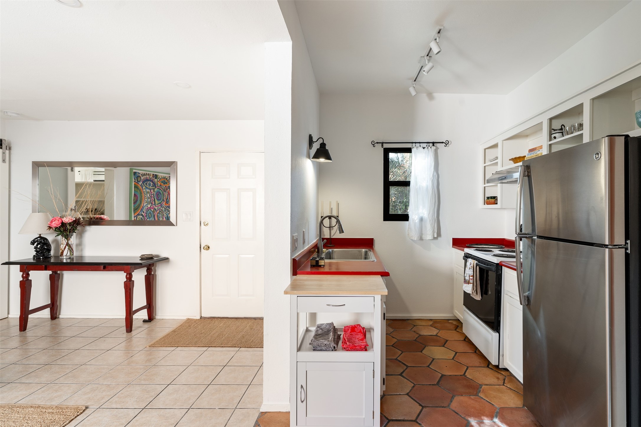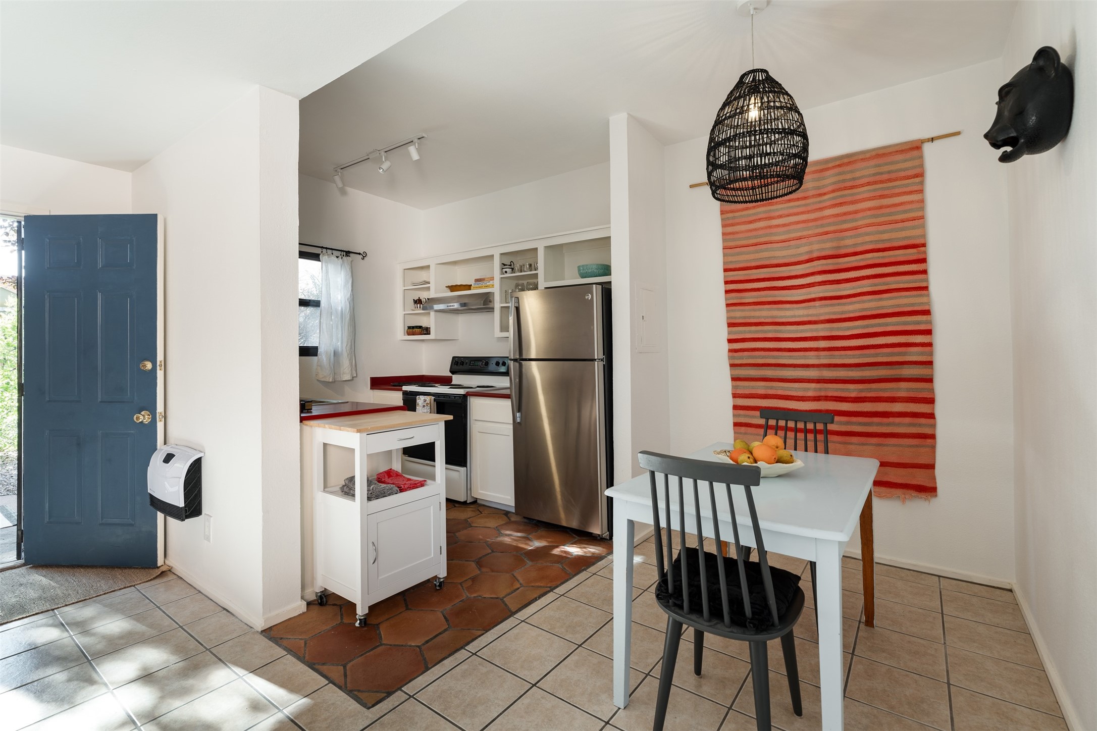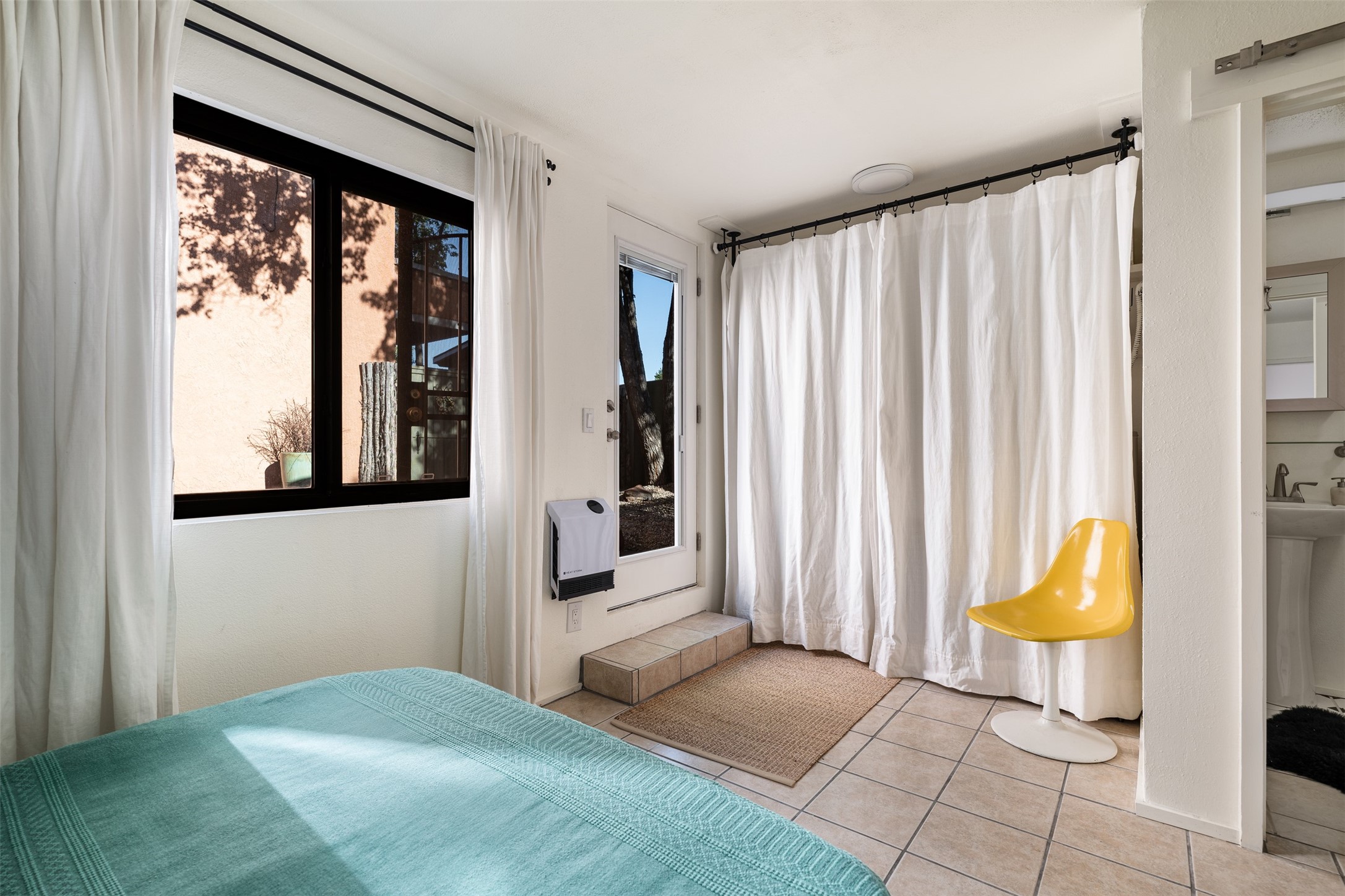 Welcoming, modern style condo in a peaceful garden setting tucked away on a side street in the desirable Santa Fe triangle. This central location has close proximity to the Santa Fe Rail Trail, parks, shopping (including Trader Joe's), and major thoroughfares with easy access to downtown. Enjoy the best of all worlds amidst stunning Santa Fe scenery - convenient living and urban sophistication.Enter through a landscaped courtyard into an open concept living and dining area with a cozy kitchen. The bright bedroom features sleek barn doors, built-in shelving, a laundry area and separate entry. Savor your morning coffee and dinners al fresco in your own back courtyard that can be gated for privacy. This move-in ready condo is a fantastic opportunity for those seeking a vibrant lifestyle near everything Santa Fe has to offer. Schedule a showing today!