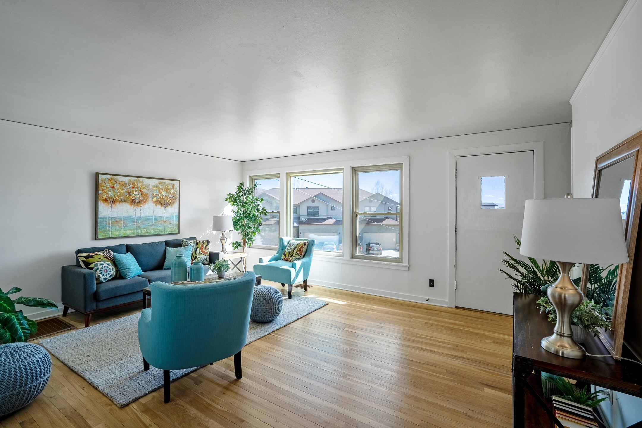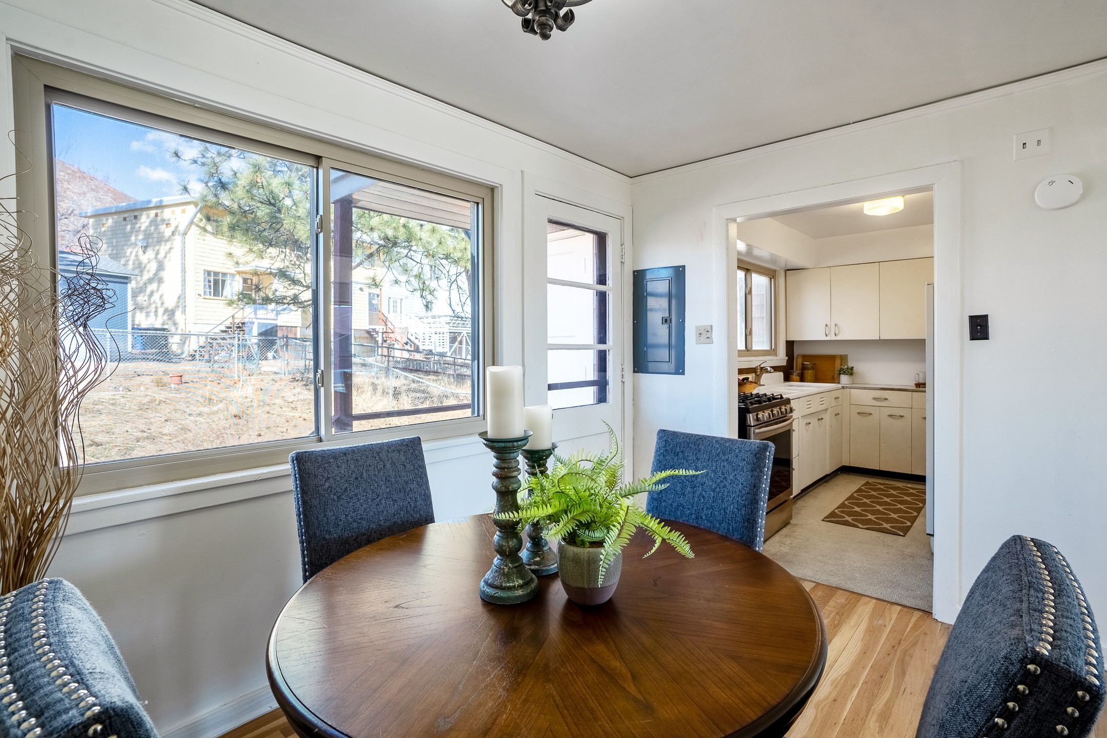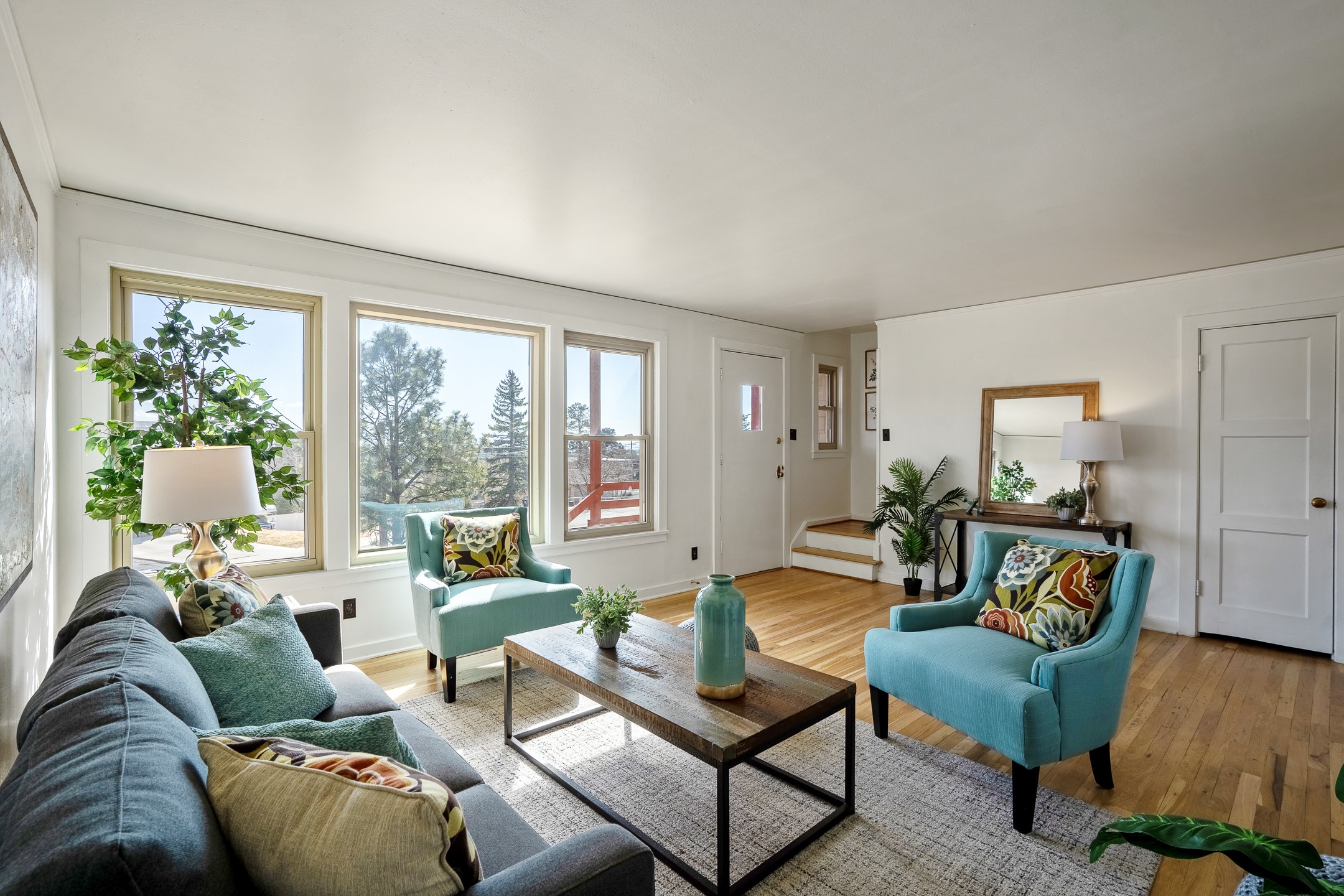 Affordable Quad, 3 Bedrooms, Fenced Yard, Refinished Hardwood Floors, Fresh Paint, Abundant Natural Light, Great Views of the Sangres, and More! Welcome to 2439-C 46th Street! As you enter this property, you are greeted by a wall of east-facing windows and a comfortable living room with refinished hardwood floors. The dining room features built-in cabinets and a west-facing window that provides great sunset views. This unit has a galley-style kitchen with white cabinets, a gas stove, and views of the backyard. Upstairs, you'll find three bedrooms and a full bathroom. Each spacious bedroom features large windows, refinished floors, and a closet, and both east-facing bedrooms have great views of the Sangre de Cristos to enjoy the sunrise. The bathroom has a new vanity and toilet and updated shower tile. Outside, you will find a fully-fenced backyard with a tiered landscape ready for your four-legged friends. Schedule your showing today to see all that this condo has to offer!