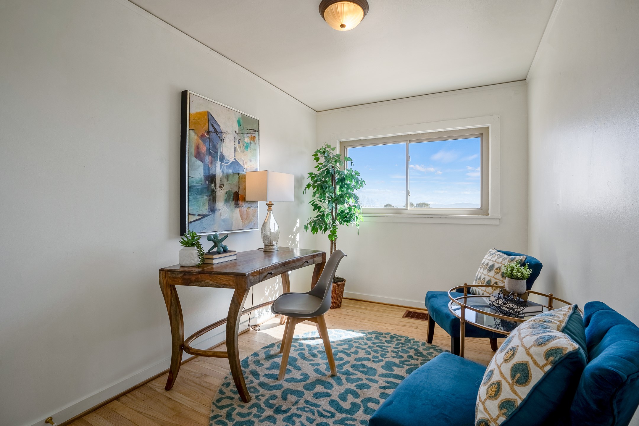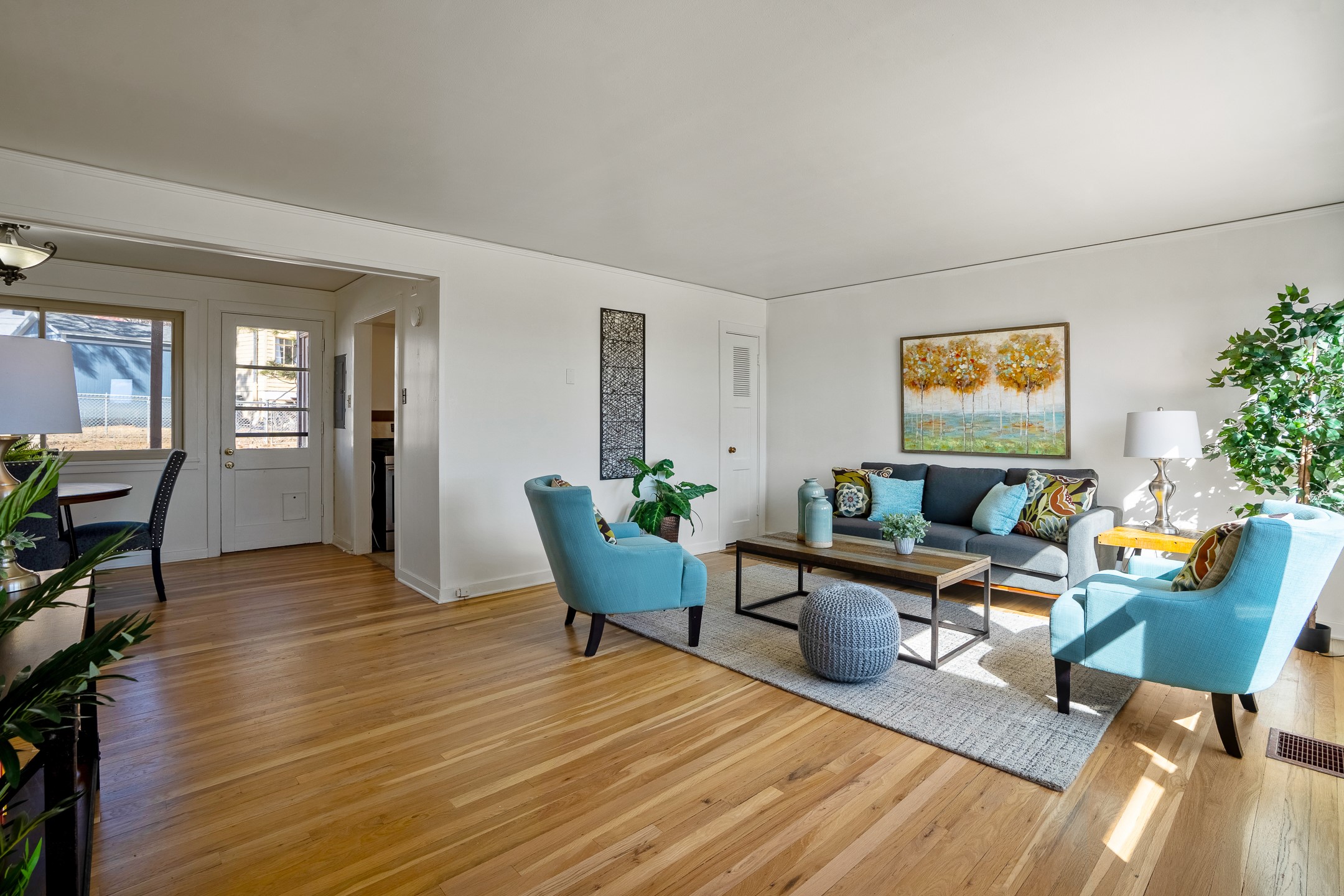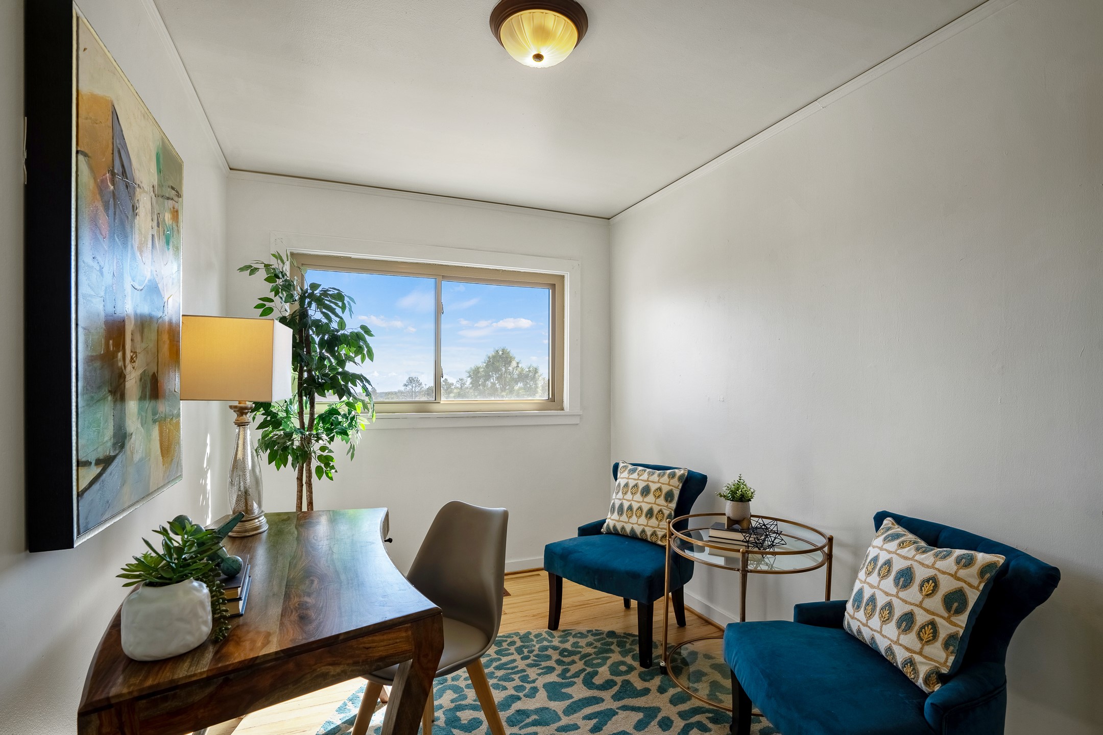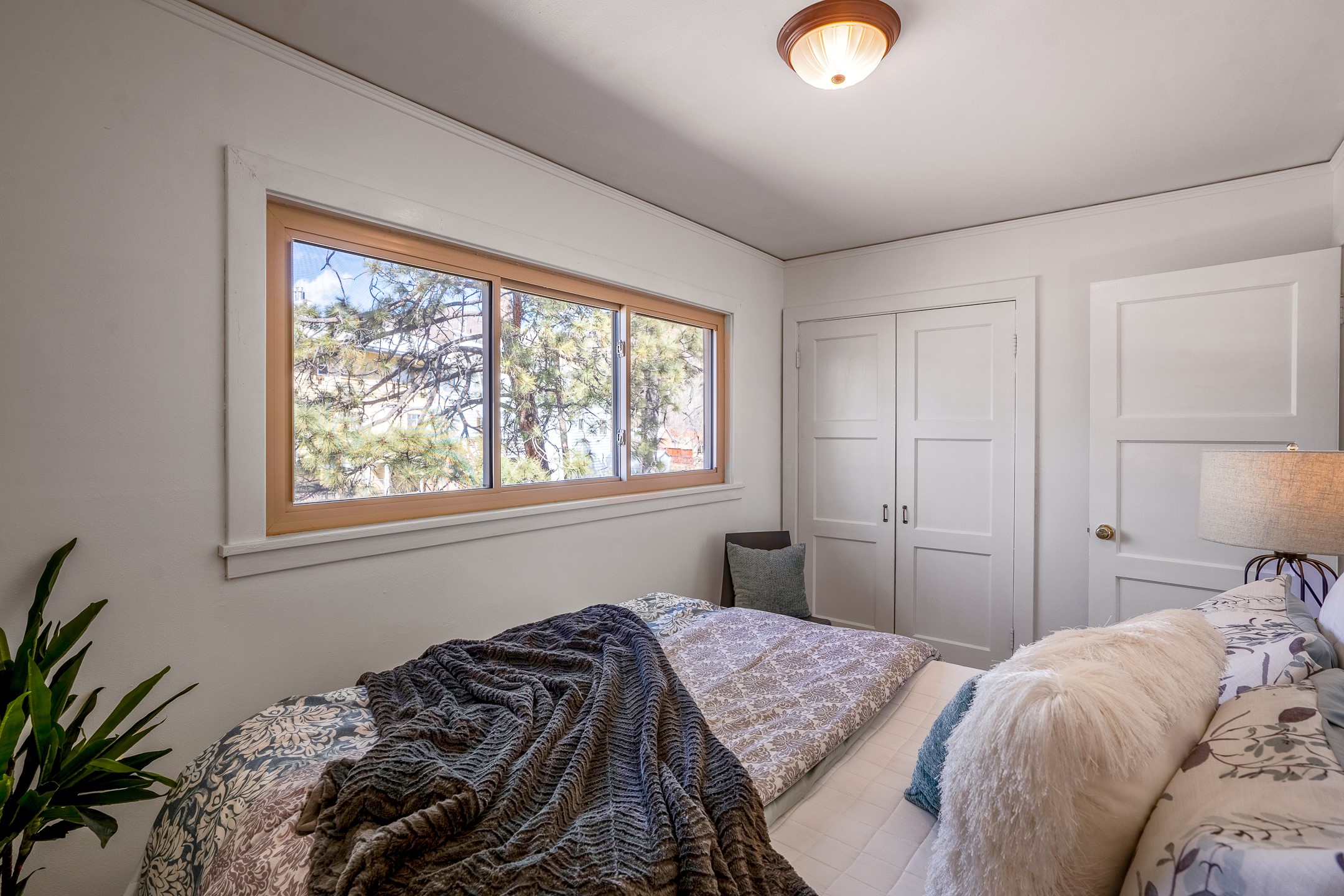 Affordable Quad, 3 Bedrooms, Fenced Yard, Refinished Hardwood Floors, Fresh Paint, Abundant Natural Light, Great Views of the Sangres, and More! Welcome to 2439-C 46th Street! As you enter this property, you are greeted by a wall of east-facing windows and a comfortable living room with refinished hardwood floors. The dining room features built-in cabinets and a west-facing window that provides great sunset views. This unit has a galley-style kitchen with white cabinets, a gas stove, and views of the backyard. Upstairs, you'll find three bedrooms and a full bathroom. Each spacious bedroom features large windows, refinished floors, and a closet, and both east-facing bedrooms have great views of the Sangre de Cristos to enjoy the sunrise. The bathroom has a new vanity and toilet and updated shower tile. Outside, you will find a fully-fenced backyard with a tiered landscape ready for your four-legged friends. Schedule your showing today to see all that this condo has to offer!